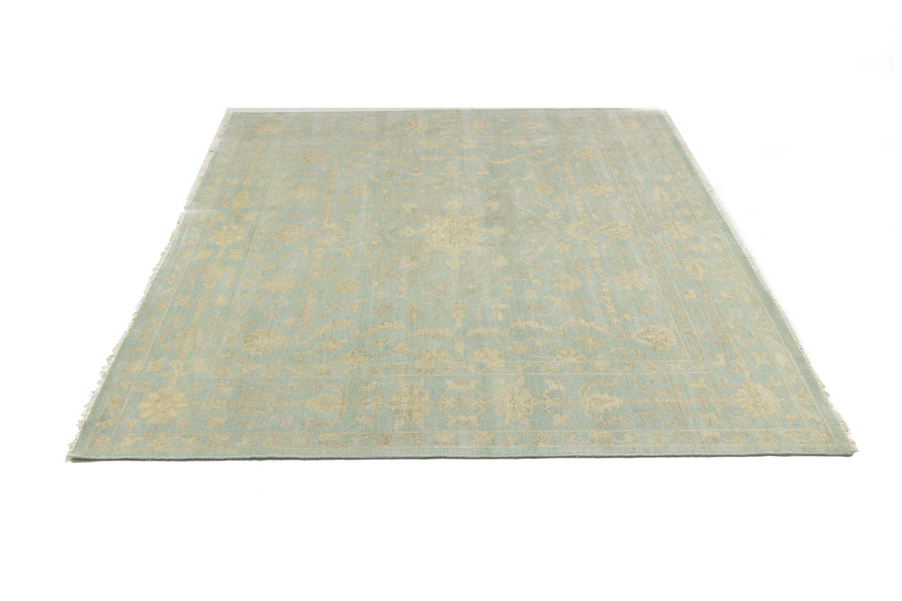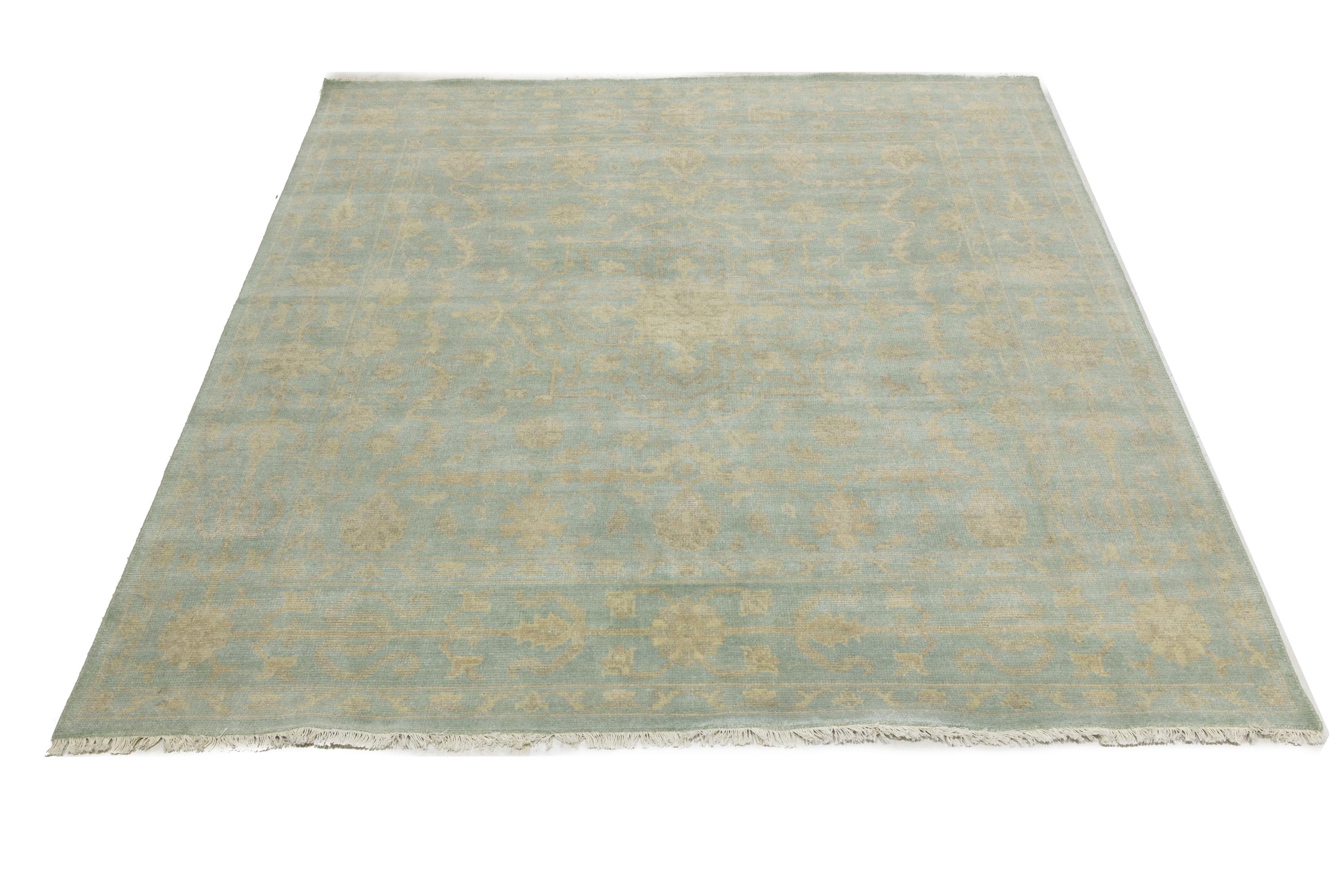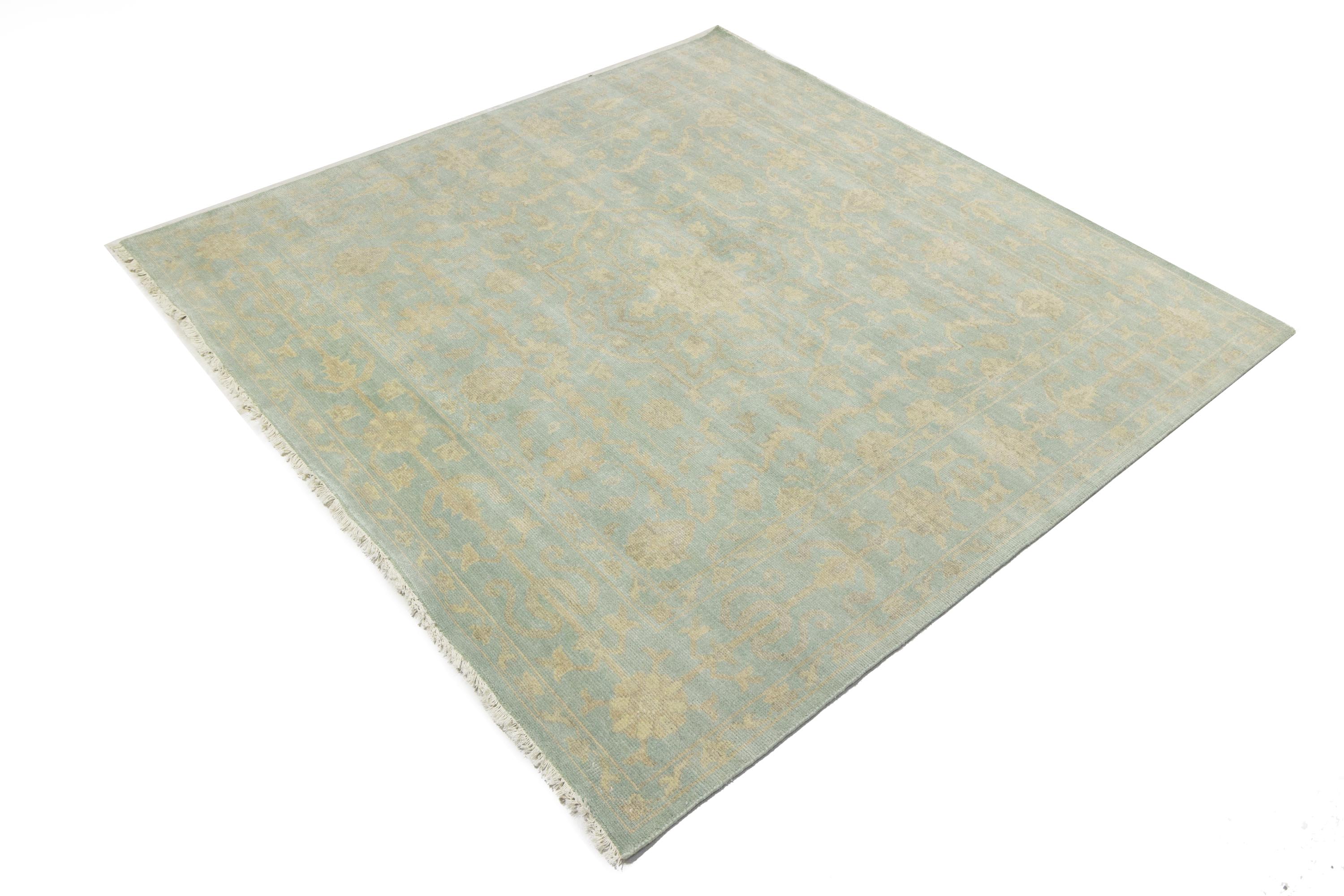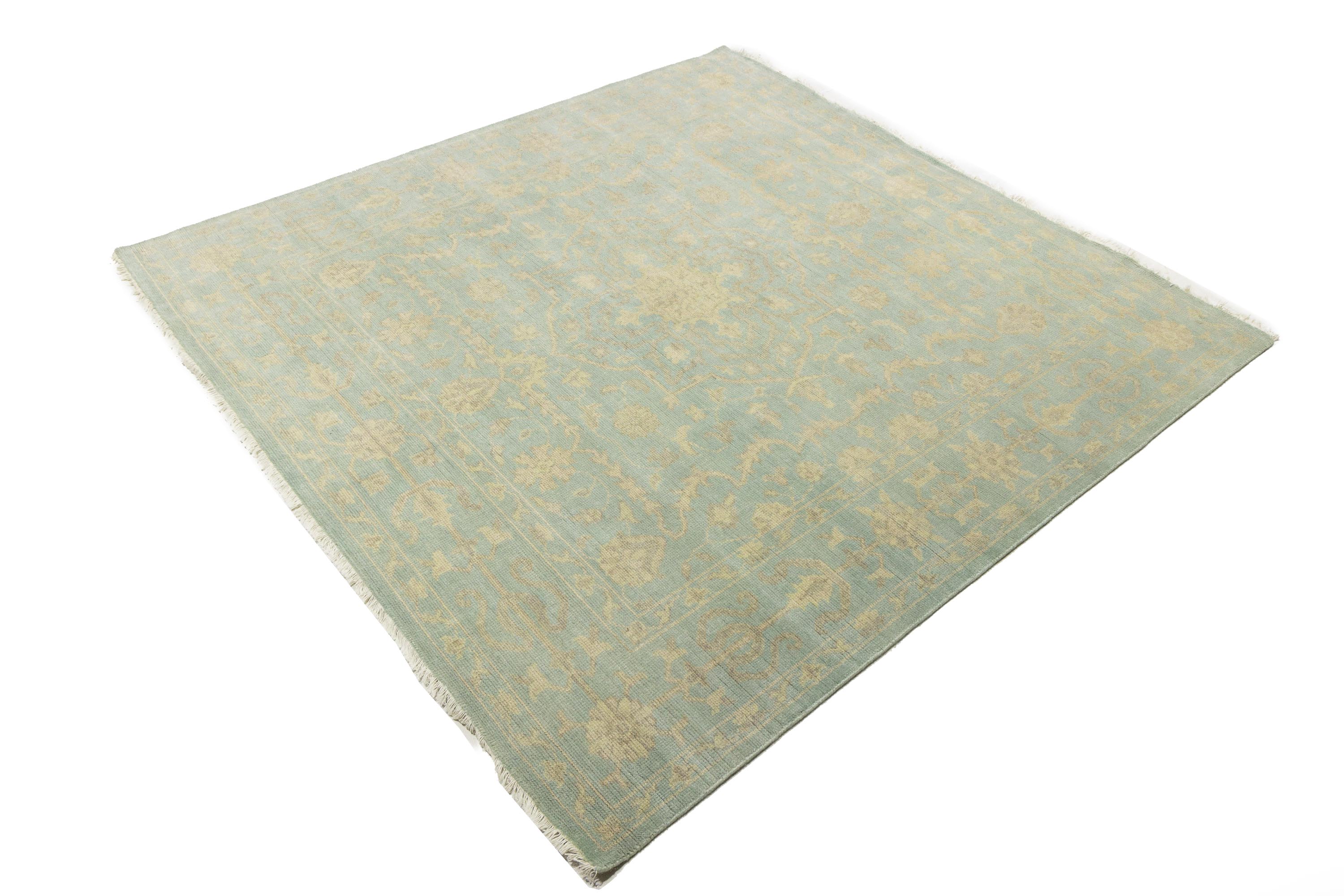 Muted Aqua Blue Floral 8x8Transitional Oriental Square Rug