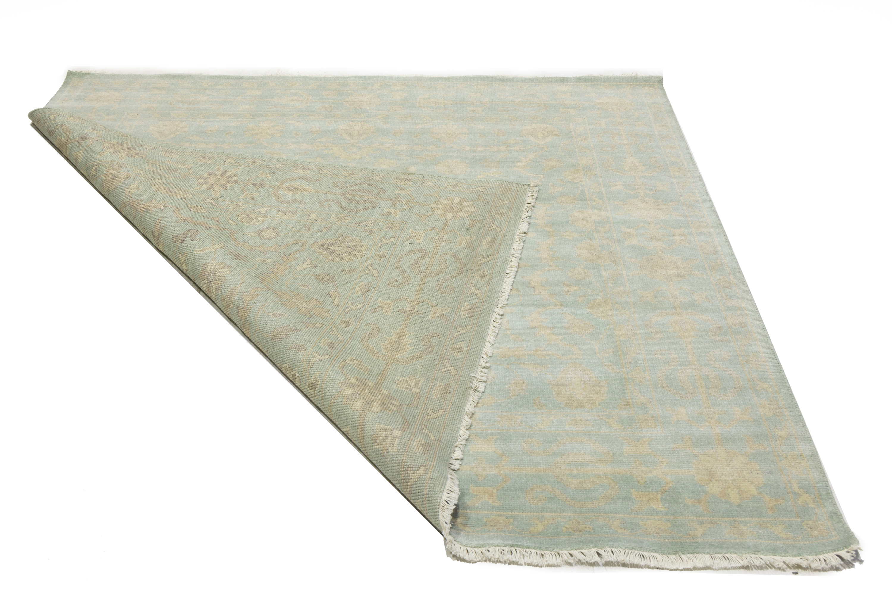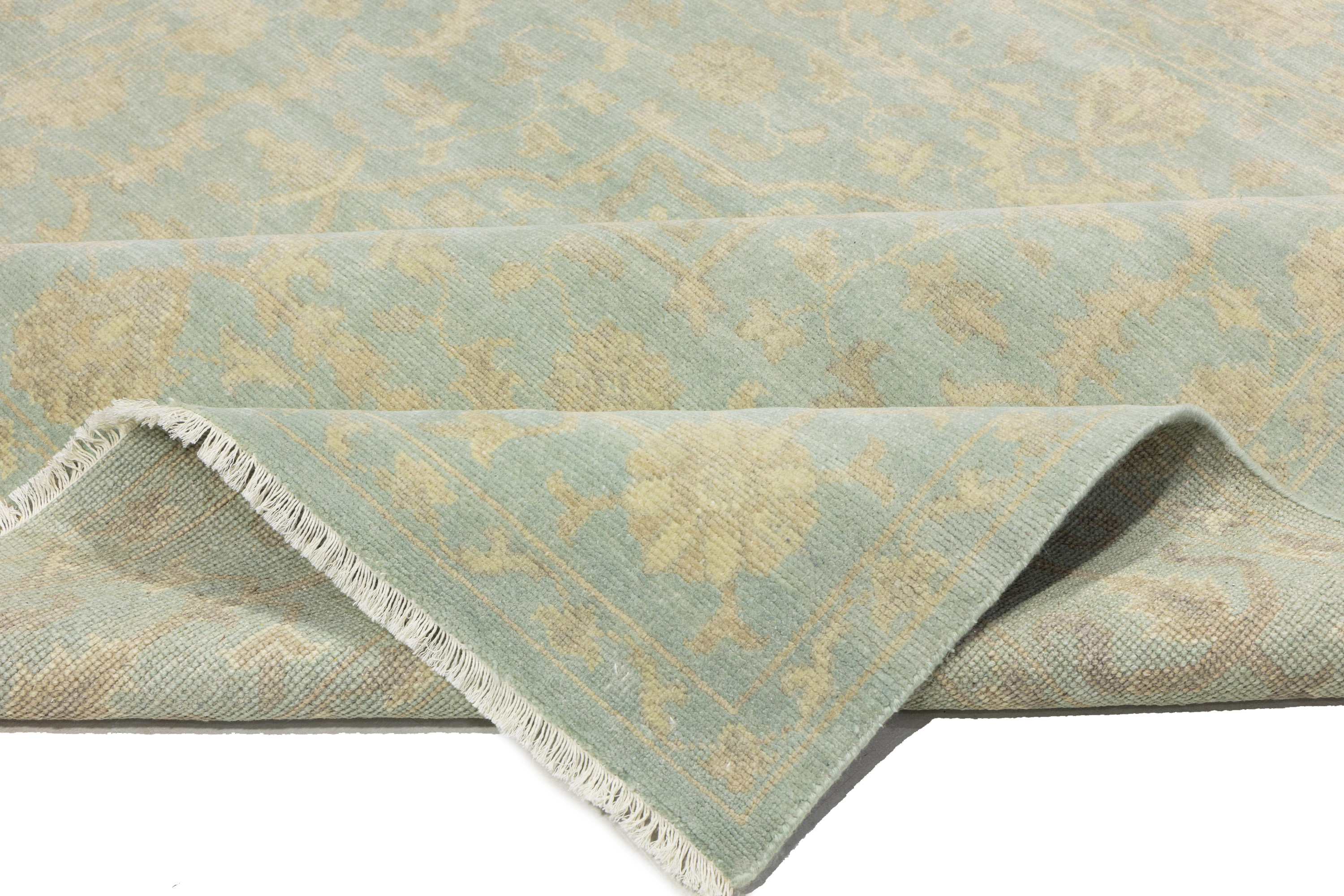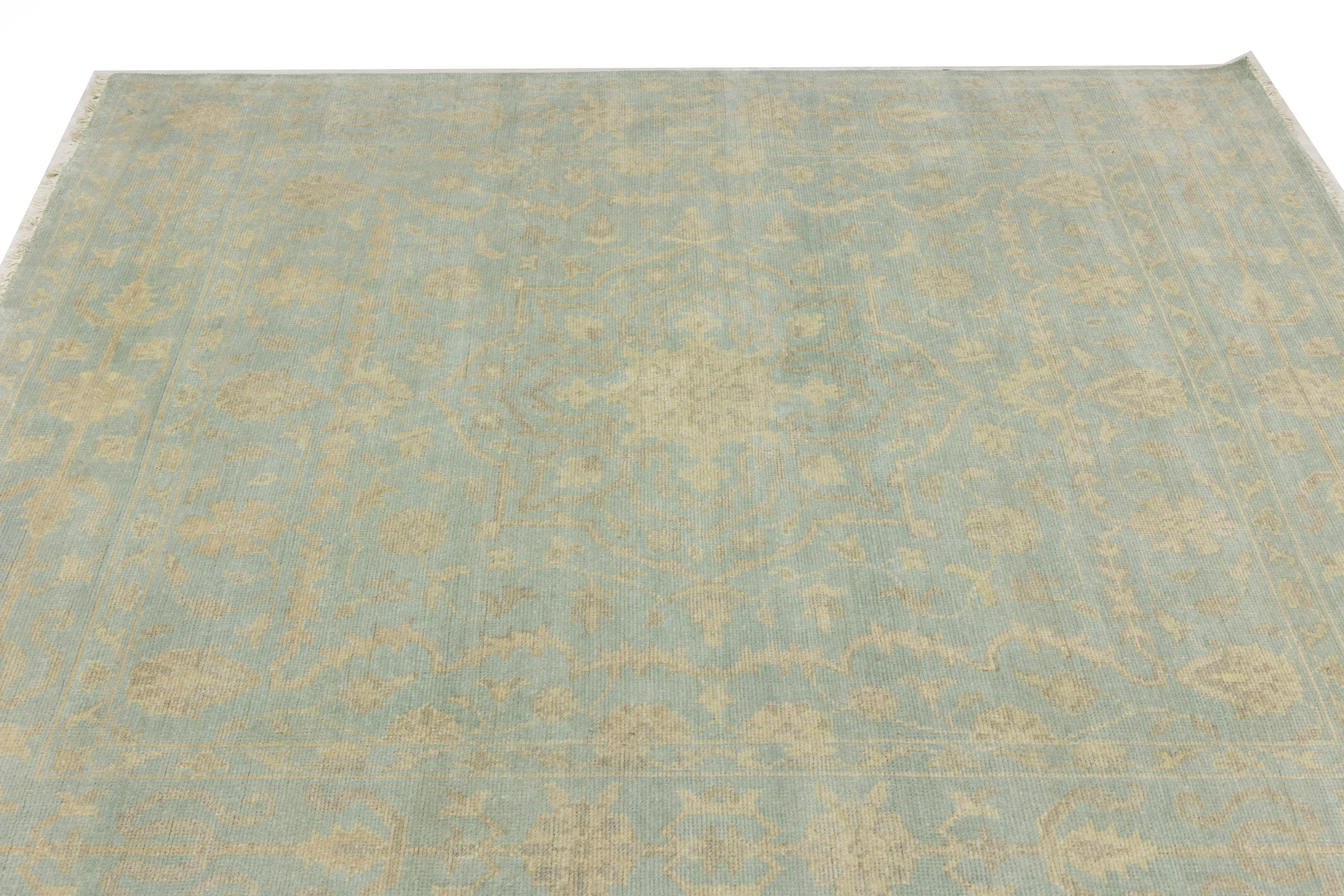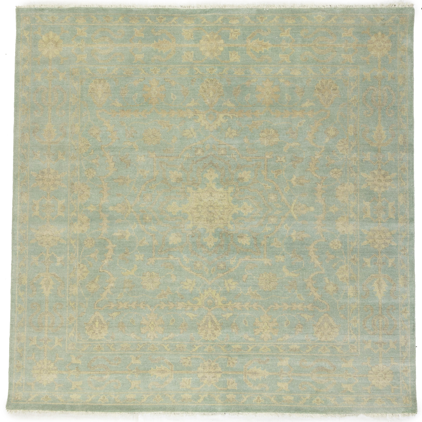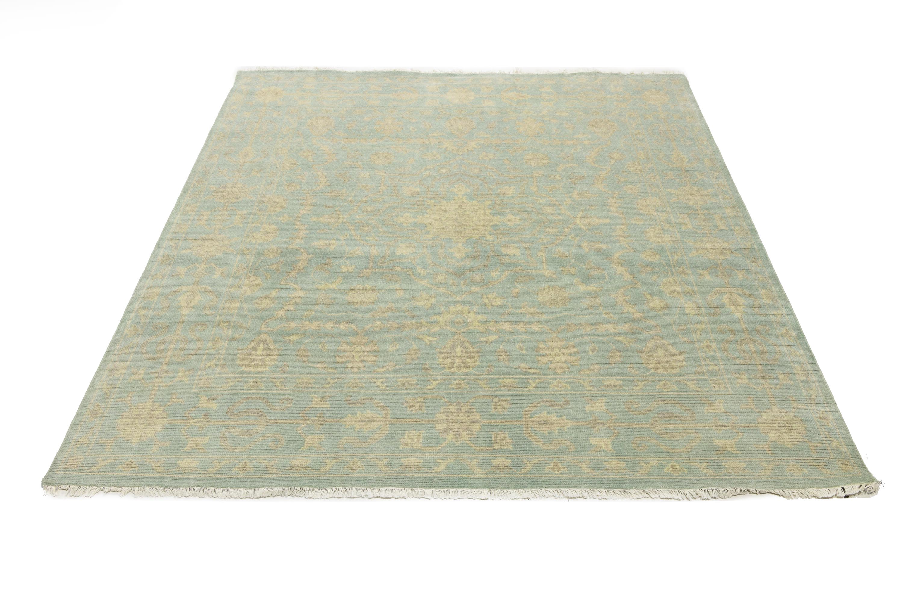 Muted Aqua Blue Floral 8x8Transitional Oriental Square Rug