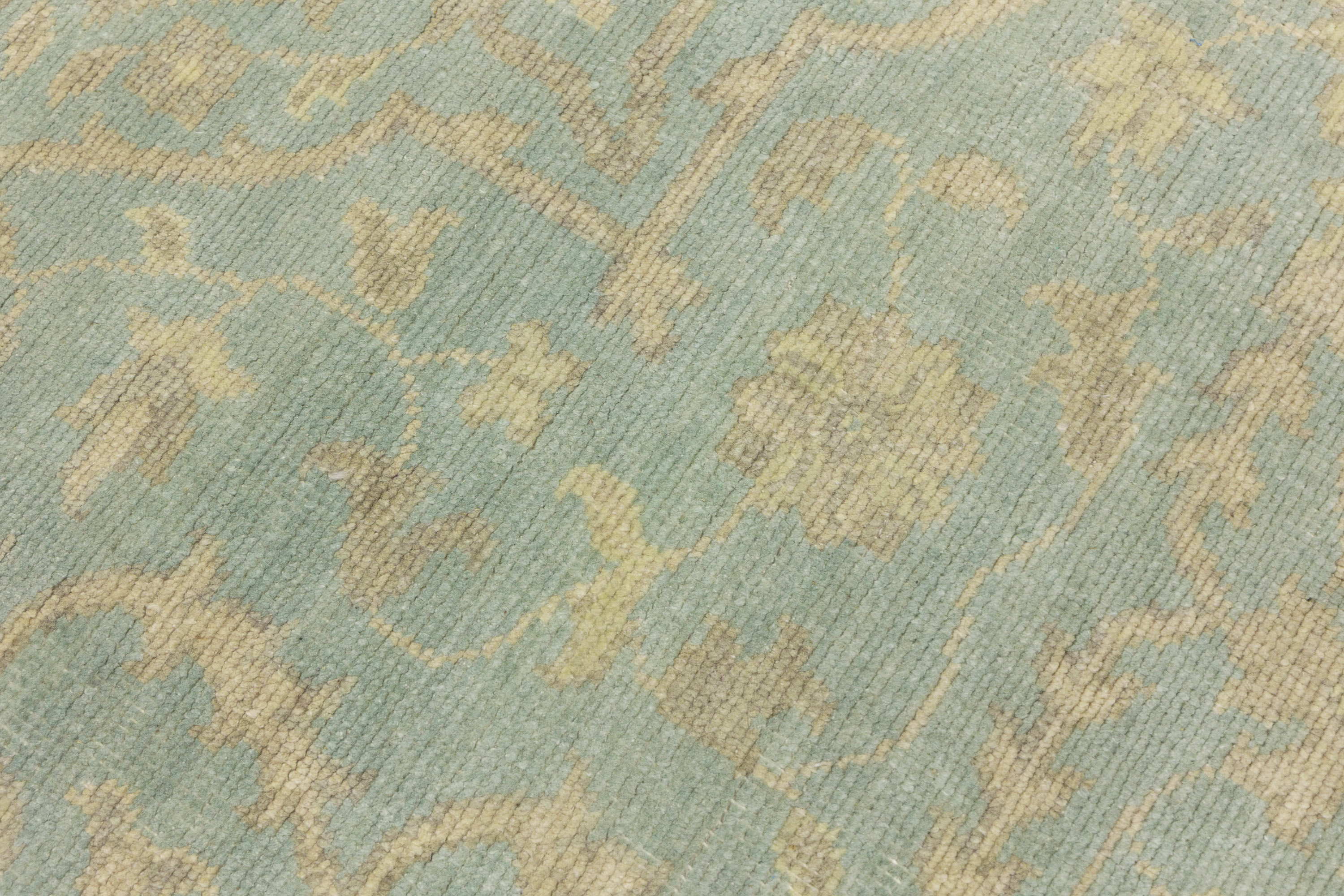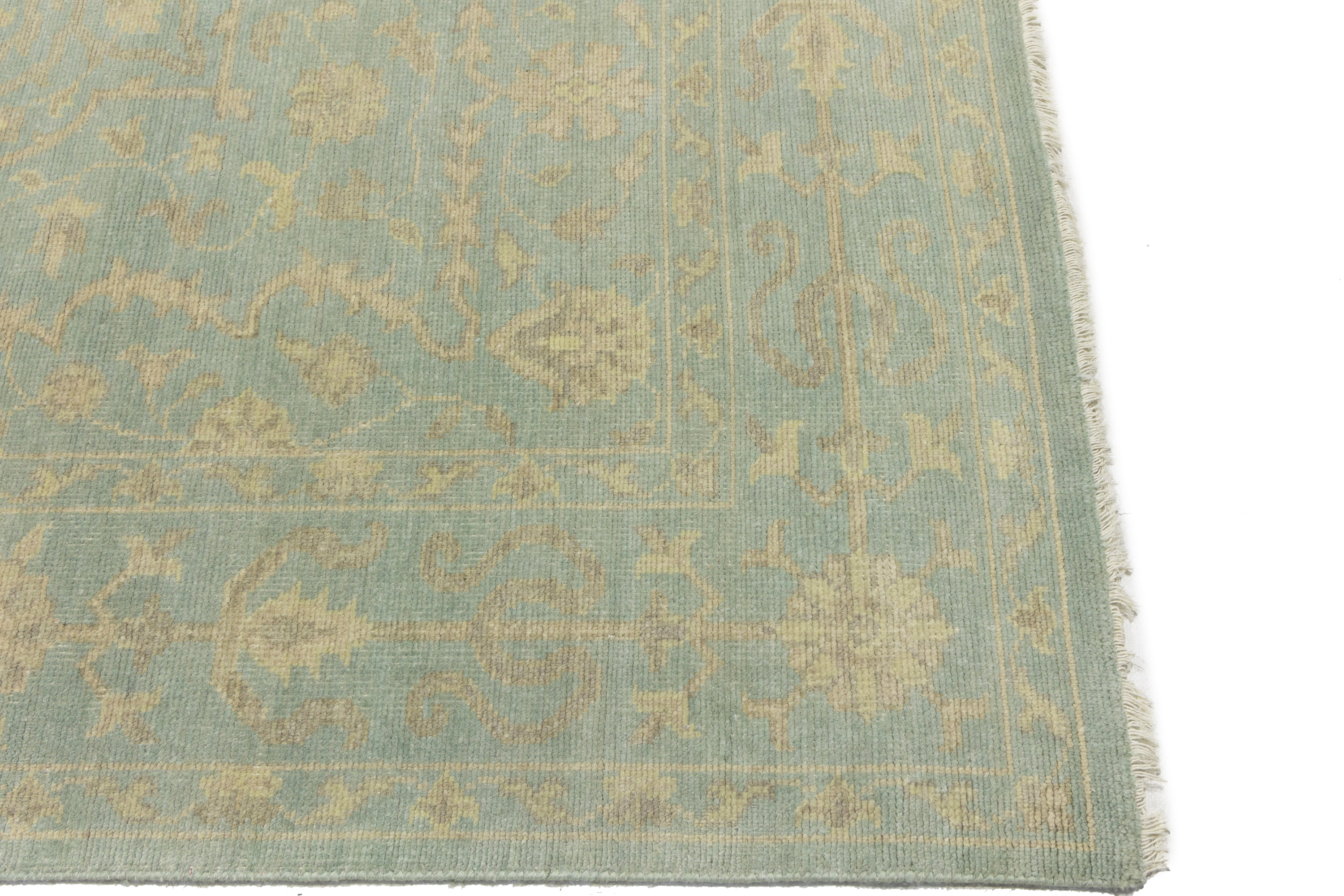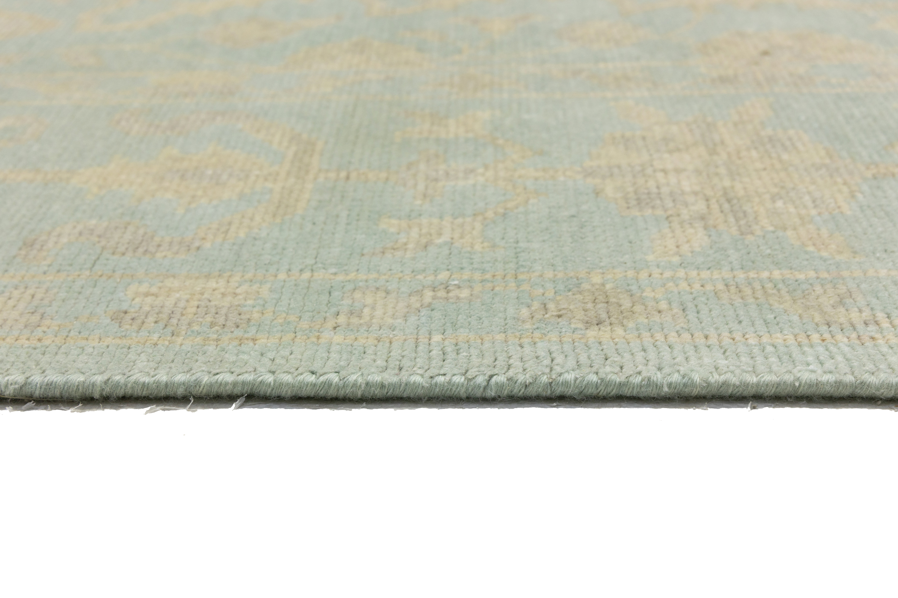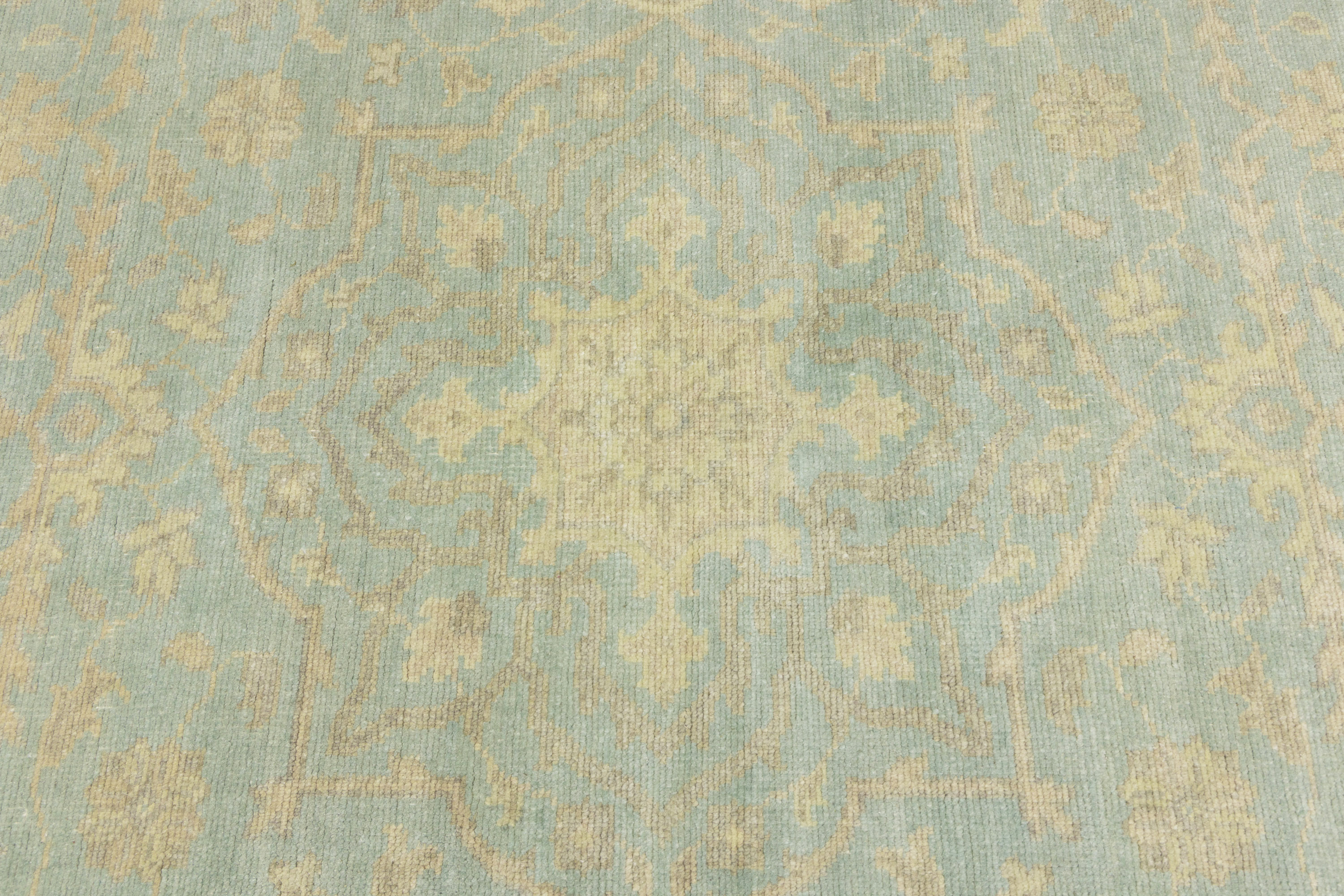 Muted Aqua Blue Floral 8x8Transitional Oriental Square Rug