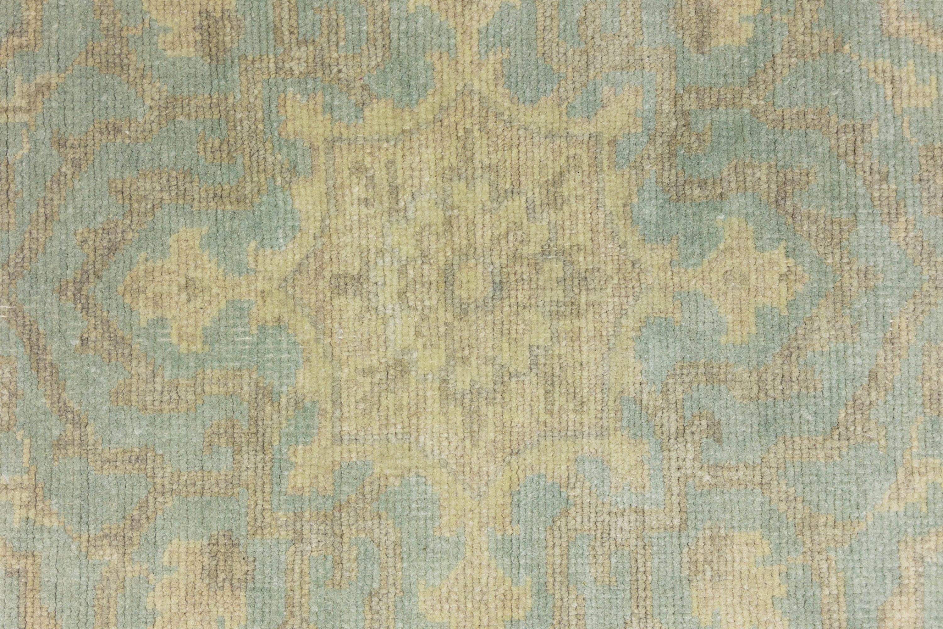 This genuine 8x8 Aqua blue new Oriental rug was made by the hands of gifted weavers inspired by a variety of spectacular artistic designs, to recreate the aged look of the original piece with a richness of color and ornately patterned background field. What set this vintage style Oriental area rug from the others are the material and dye used (wool pile and cotton foundation), knot count, ancient designs, fantastic grades, and its regional historical connection: it has deep roots, from the story of the people who produced it to the meaning of the symbols and colors displayed across its canvas that have been praised for centuries. This Indian home décor carpet will be completely cozy and inviting that never will go out of style! Also, this Oriental rug would be among your most valuable treasures, it is a great investment that accrues value over time, and it will last for generations because was woven with high-quality, all-natural wool. Environmentally friendly, opulent yet affordable; this rug will give you a thorough amount of character to help define your living space with elegance and warmth that will capture the eyes and attention of your audience (homeowners, designers, decorators, family and friends). OT-11808