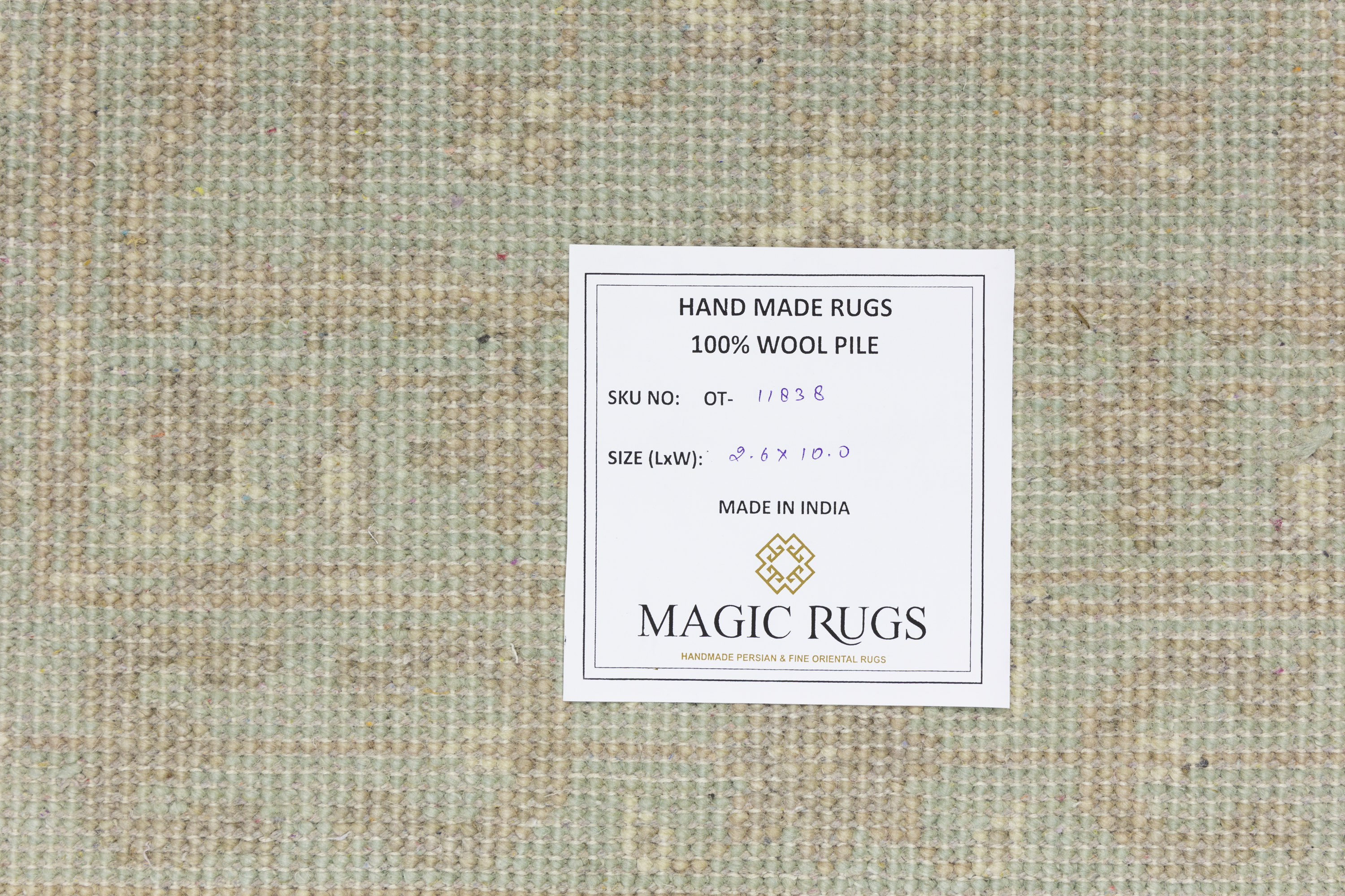 - Hand-knotted in India using traditional techniques