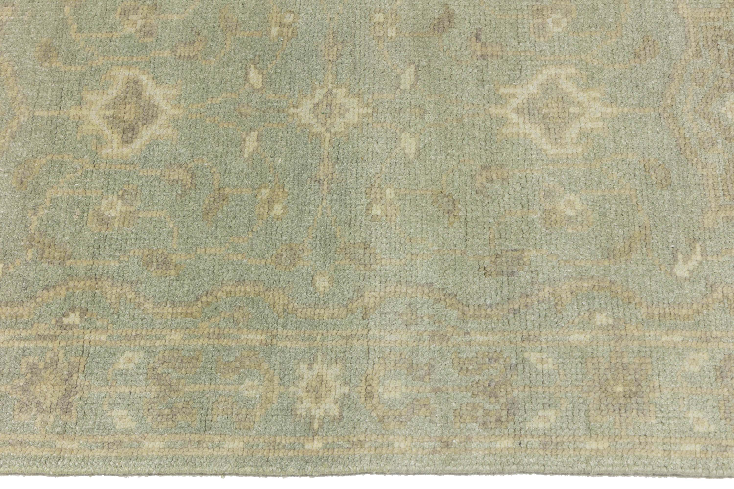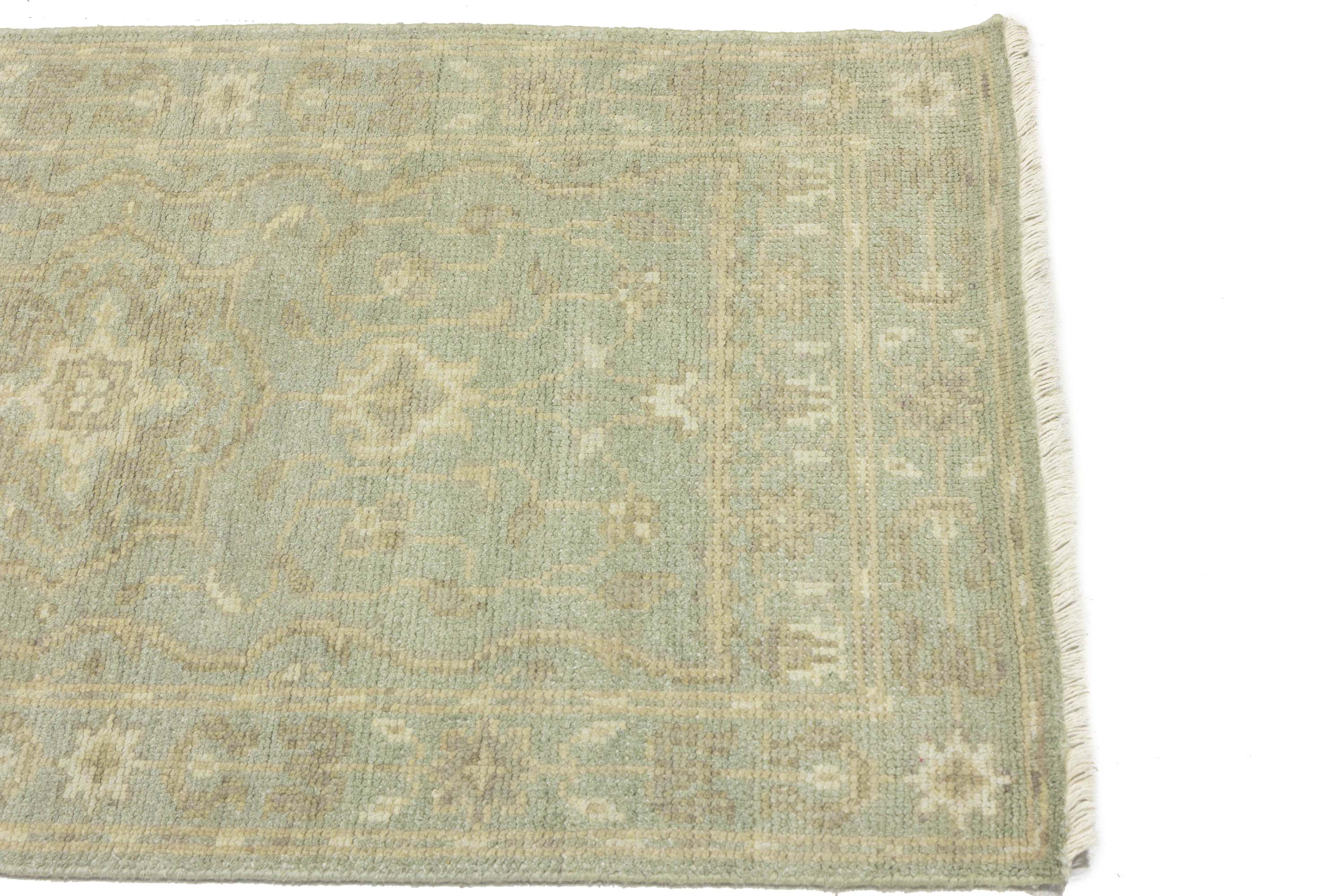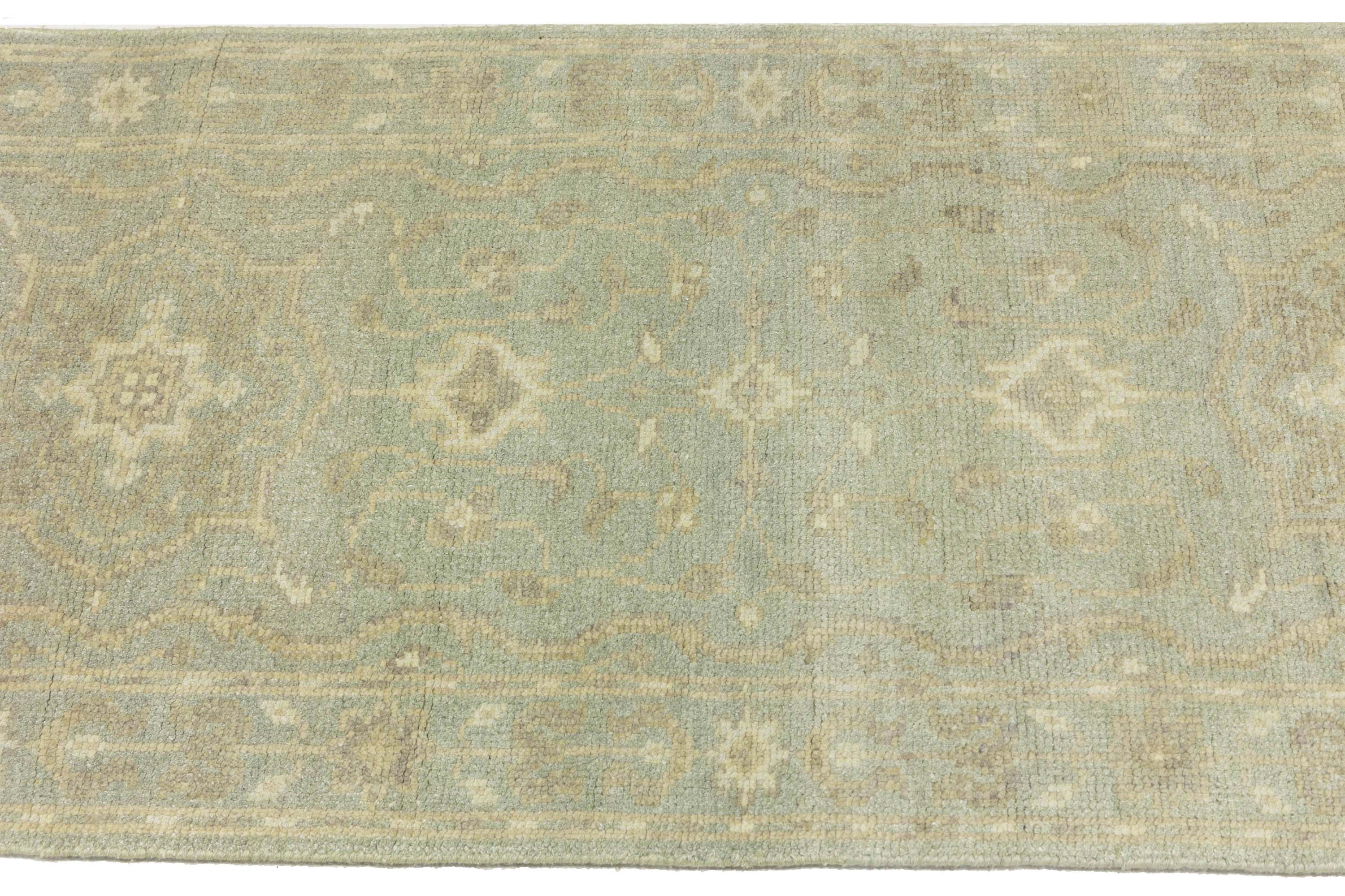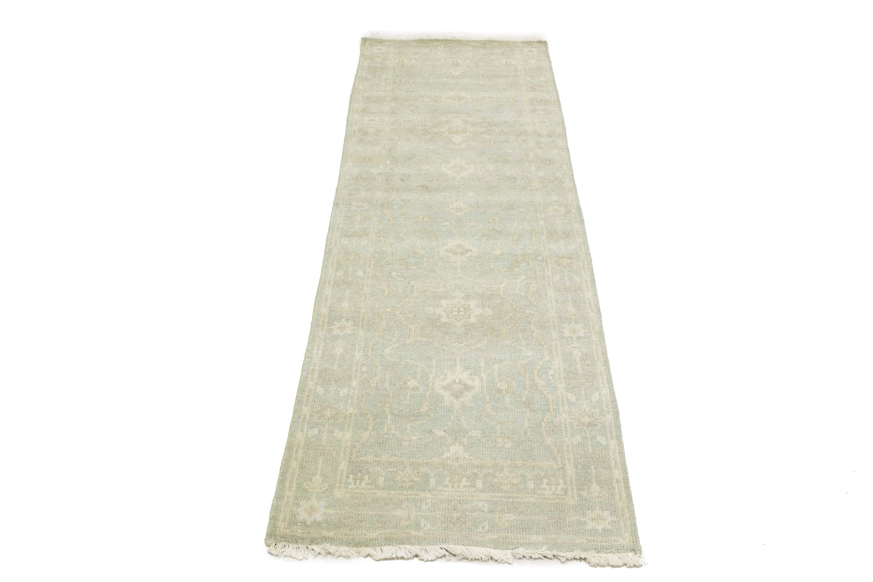 Muted Aqua Blue Floral Transitional 3X8 Oriental Runner Rug