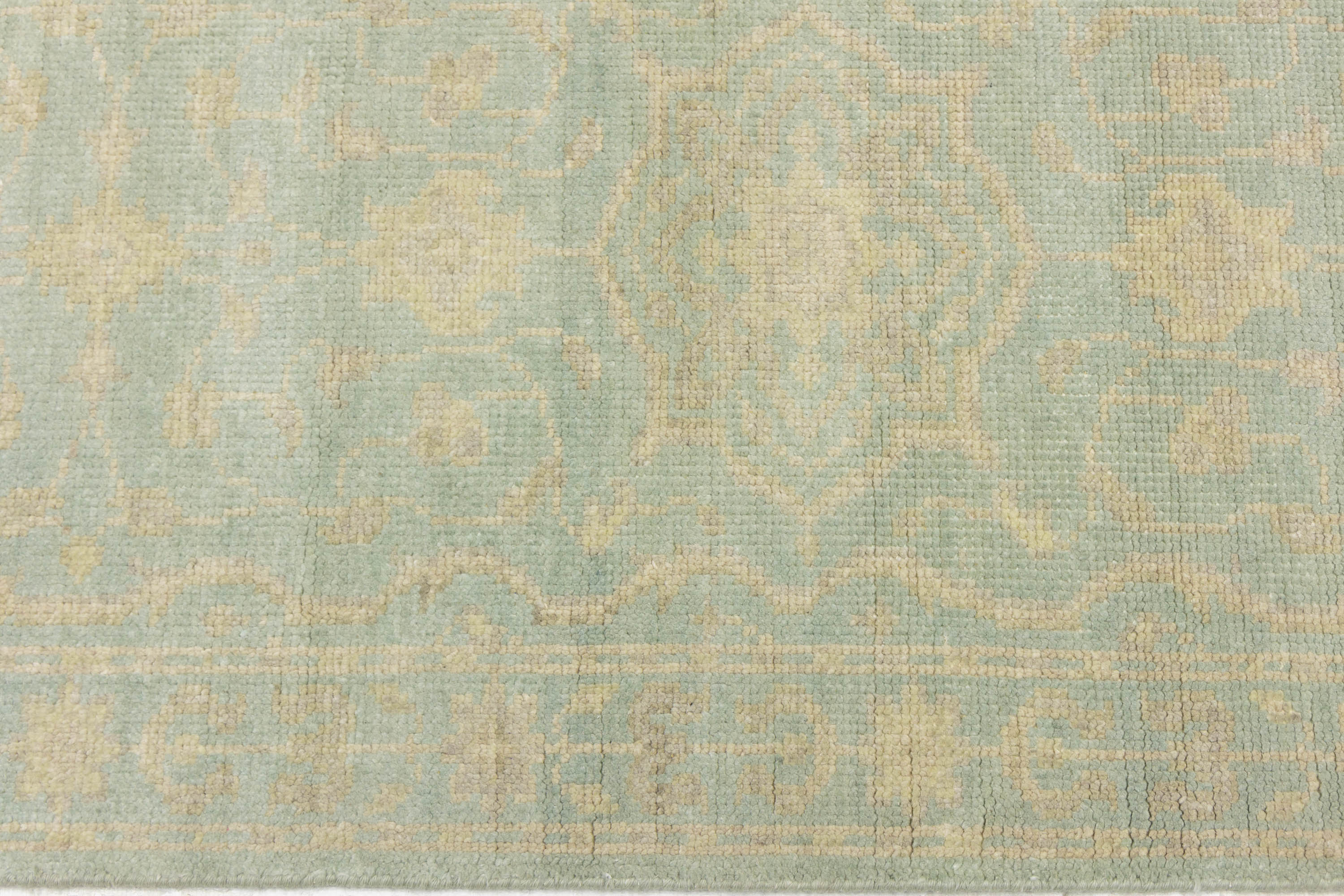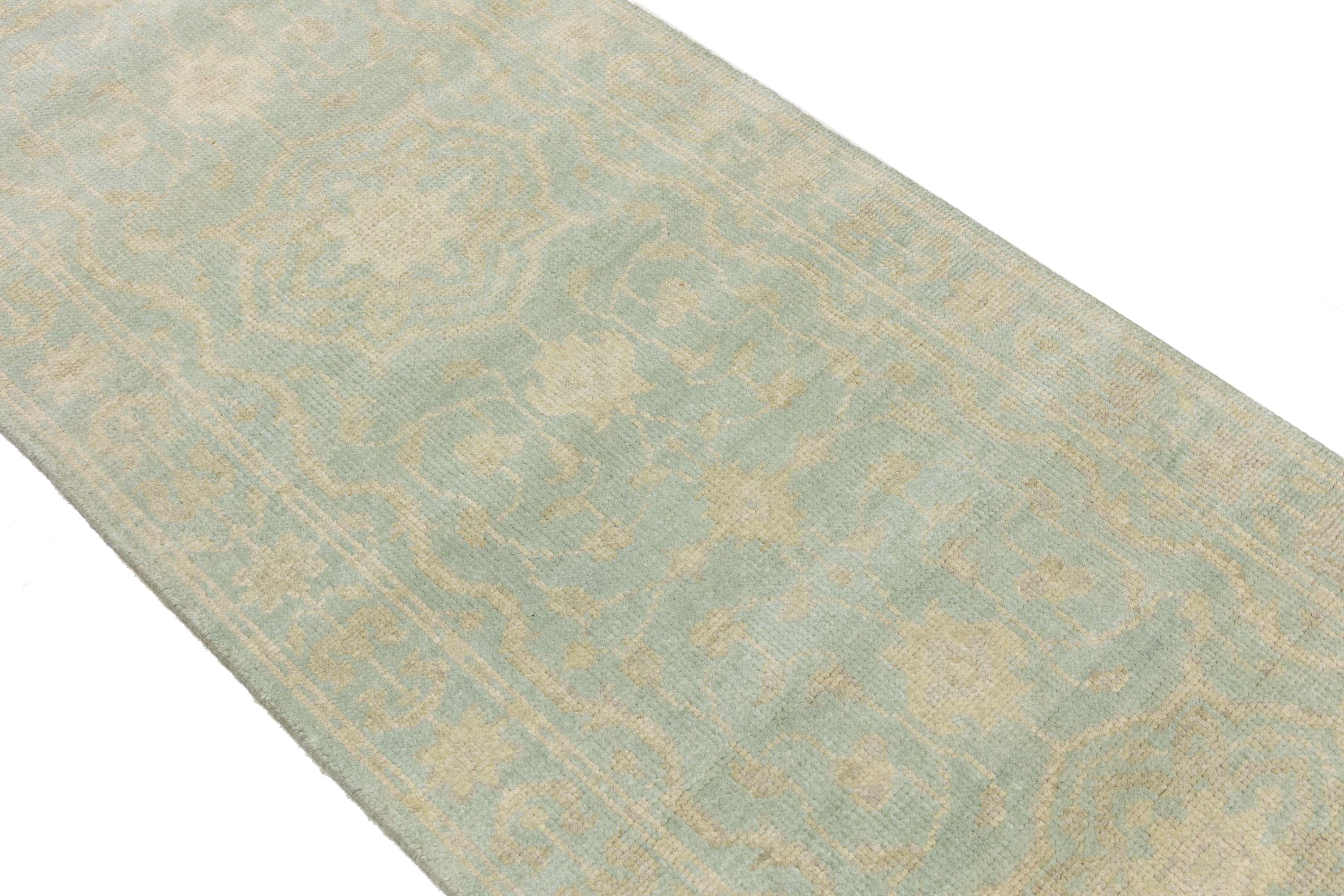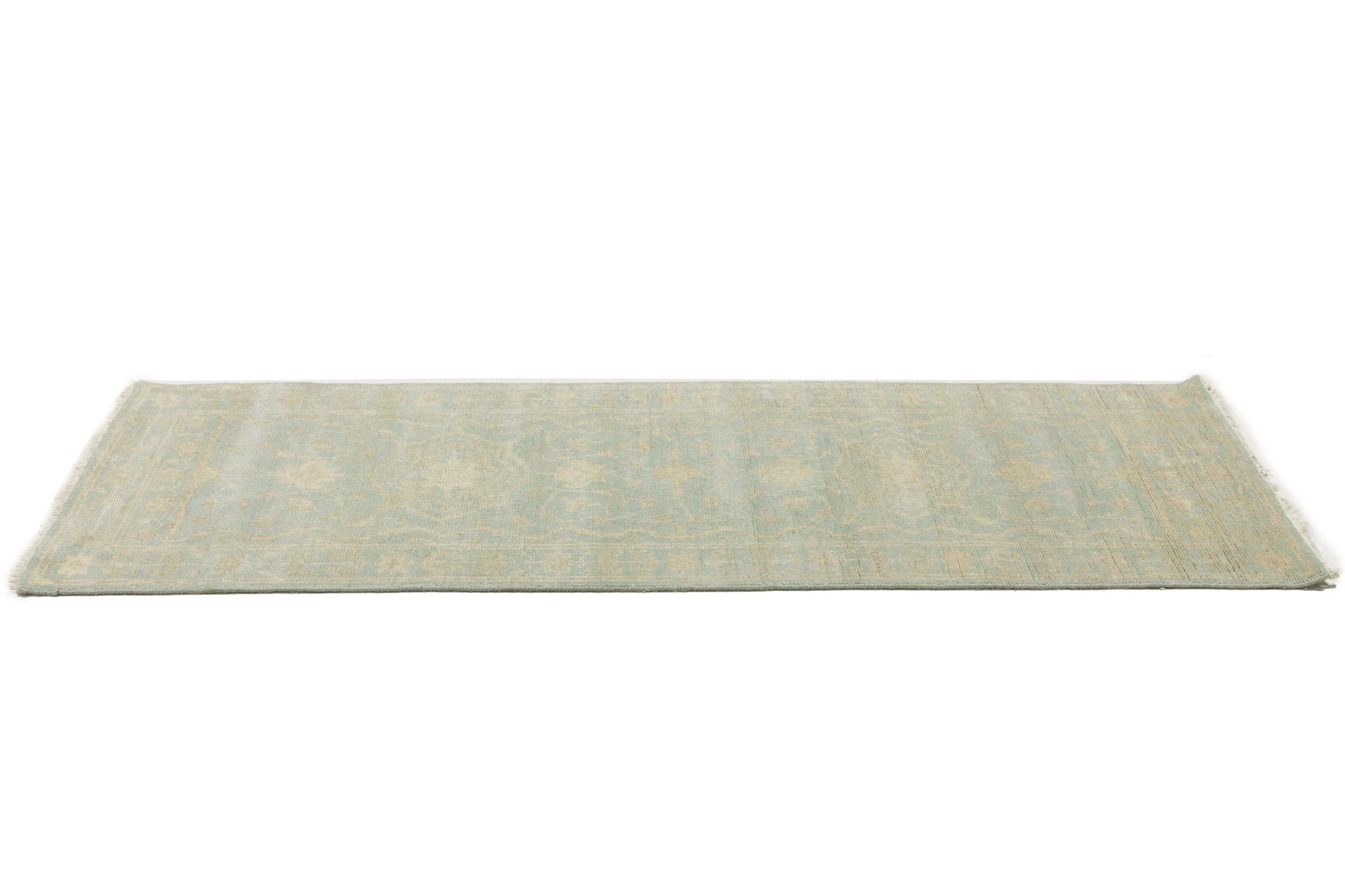 Muted Aqua Blue Floral Transitional 3X8 Oriental Runner Rug