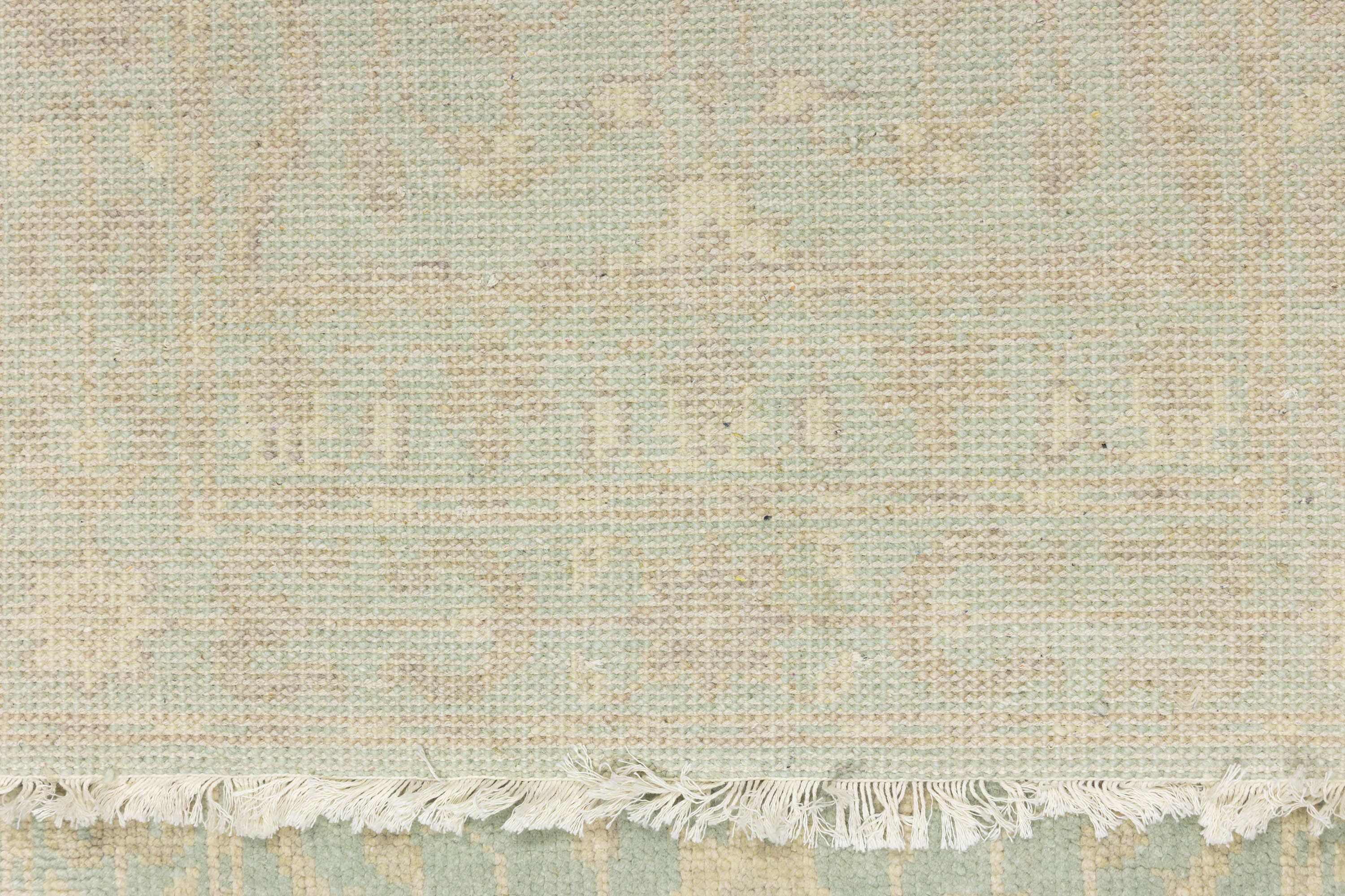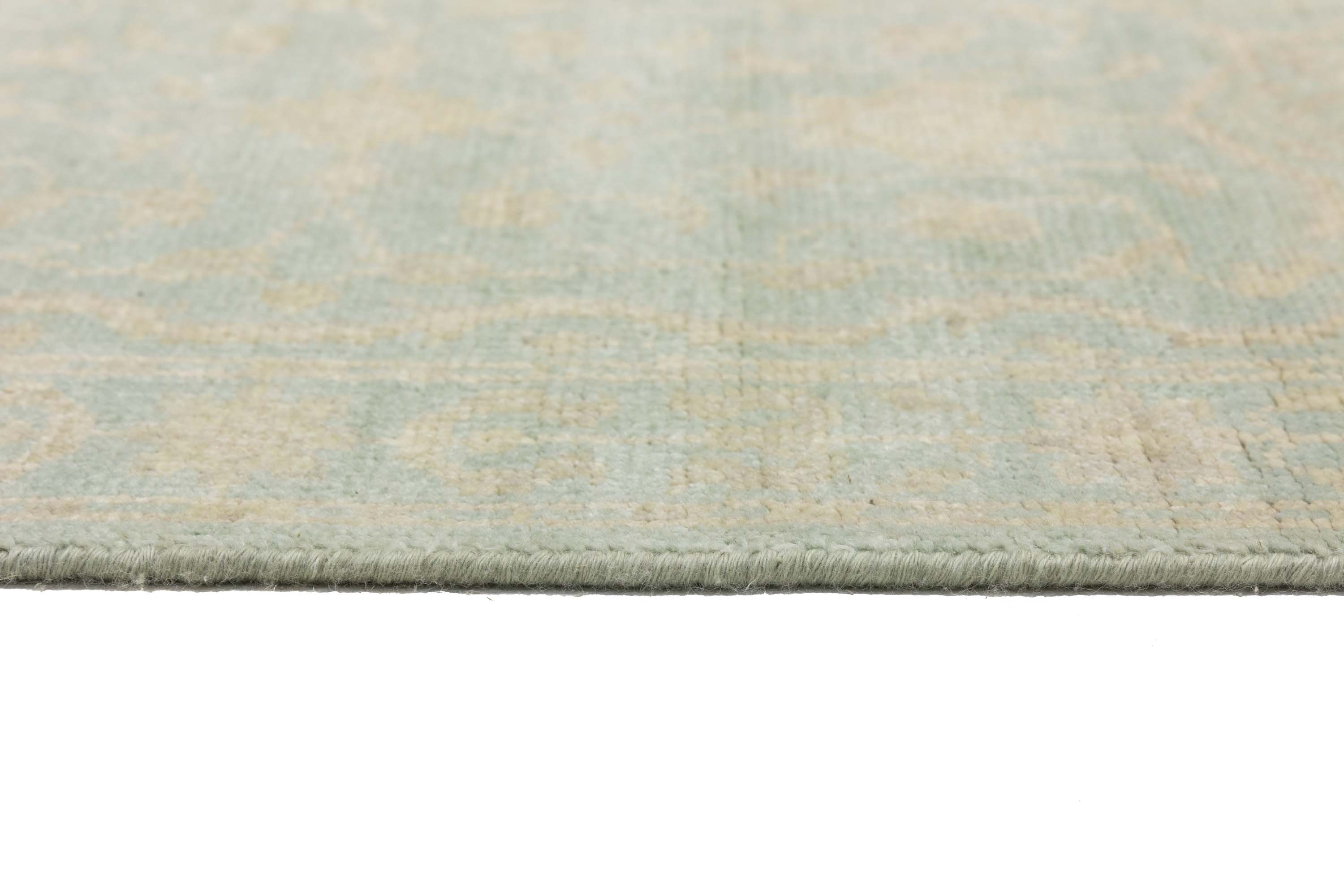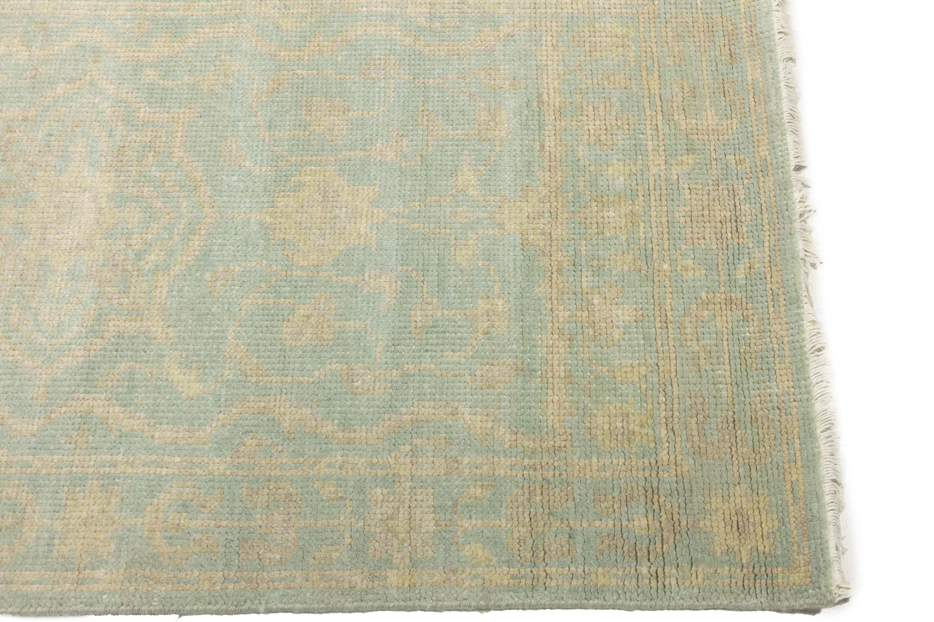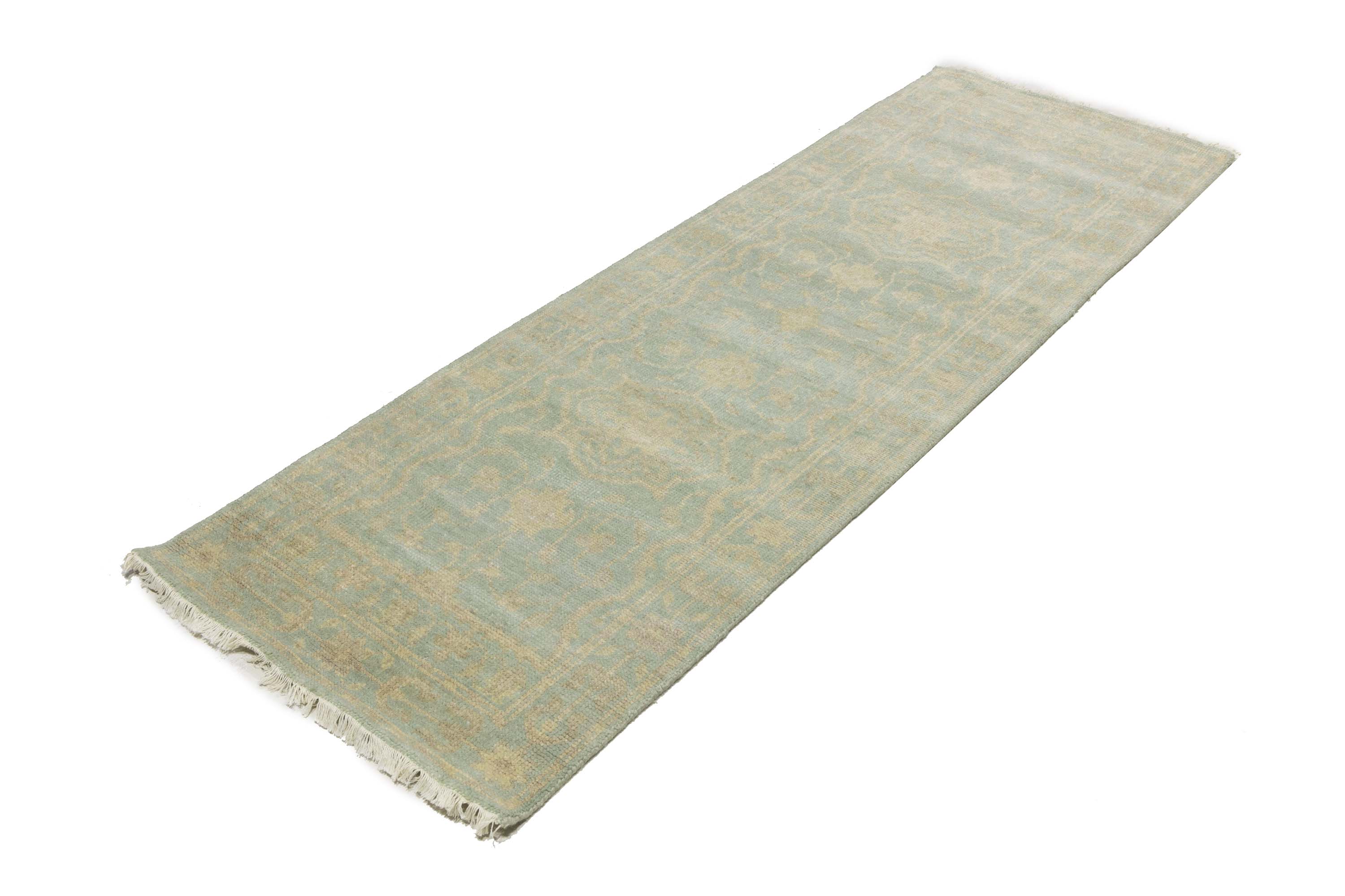 This original 3X8 aqua blue new Oriental runner was made by the hands of talented weavers influenced by a variety of gorgeous symmetrical artistic designs, to recreate the aged look of the unique piece with a richness of color and very balanced background field. What set this vintage style Oriental area runner from the others are the material and dye used (wool pile and cotton foundation), knot count, antique designs, fantastic grades, and its regional historical connection: it has deep roots, from the story of the people who produced it to the meaning of the symbols and colors displayed across its canvas that have been praised for centuries. This Indian home décor carpet will be completely cozy and inviting that never will go out of style! Also, this Oriental rug would be among your most valuable treasures, it is a great investment that accrues value over time, and it will last a lifetime because was woven with high-quality, all-natural wool. Eco-friendly, opulent yet affordable; this runner will give you an extra pop of character to help define your home environment with sophistication and warmth that will capture the eyes and attention of your audience (homeowners, designers, decorators, family and friends). OT-12014