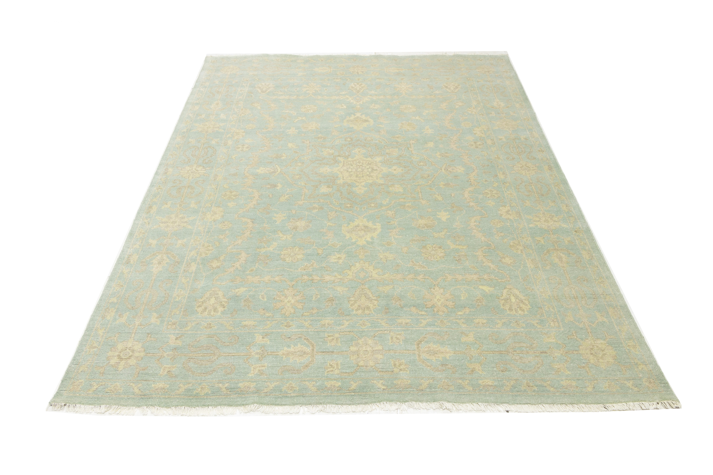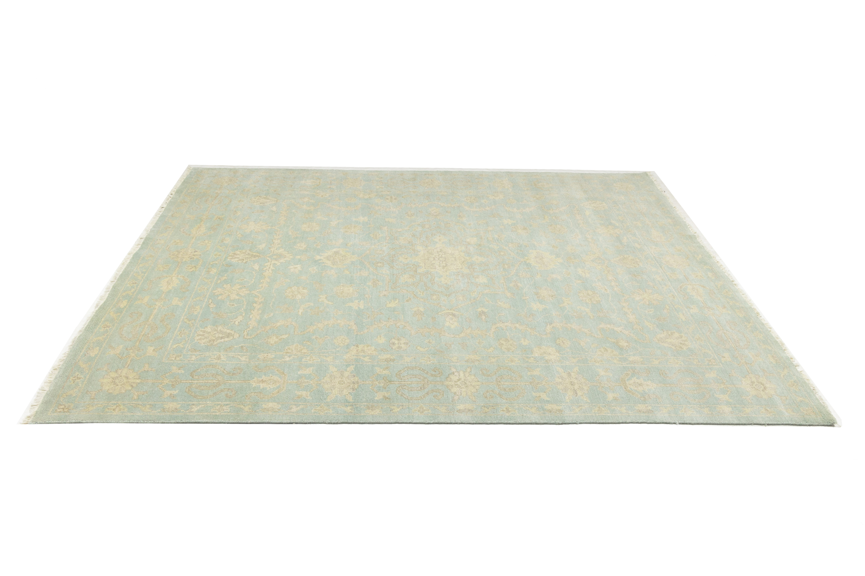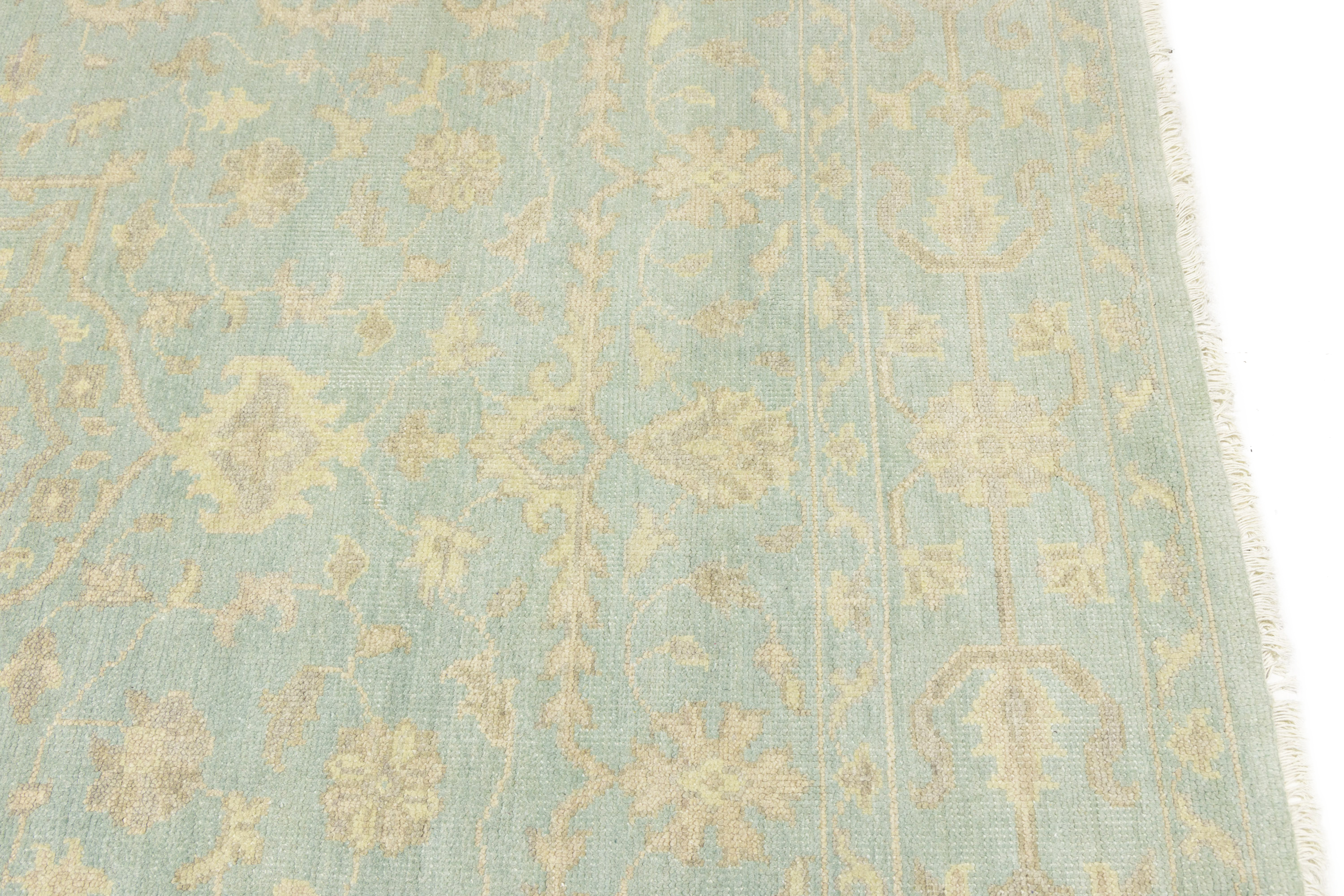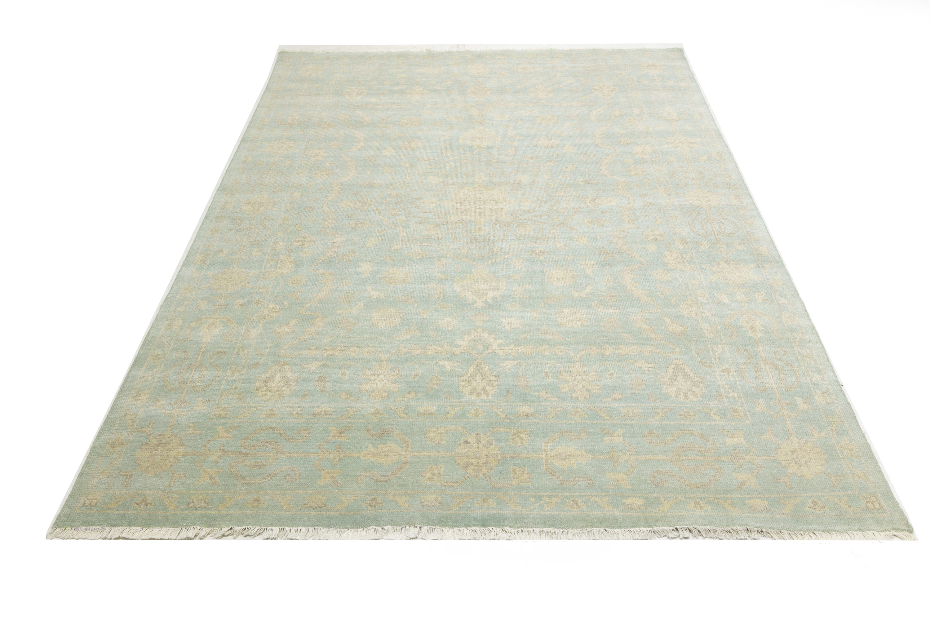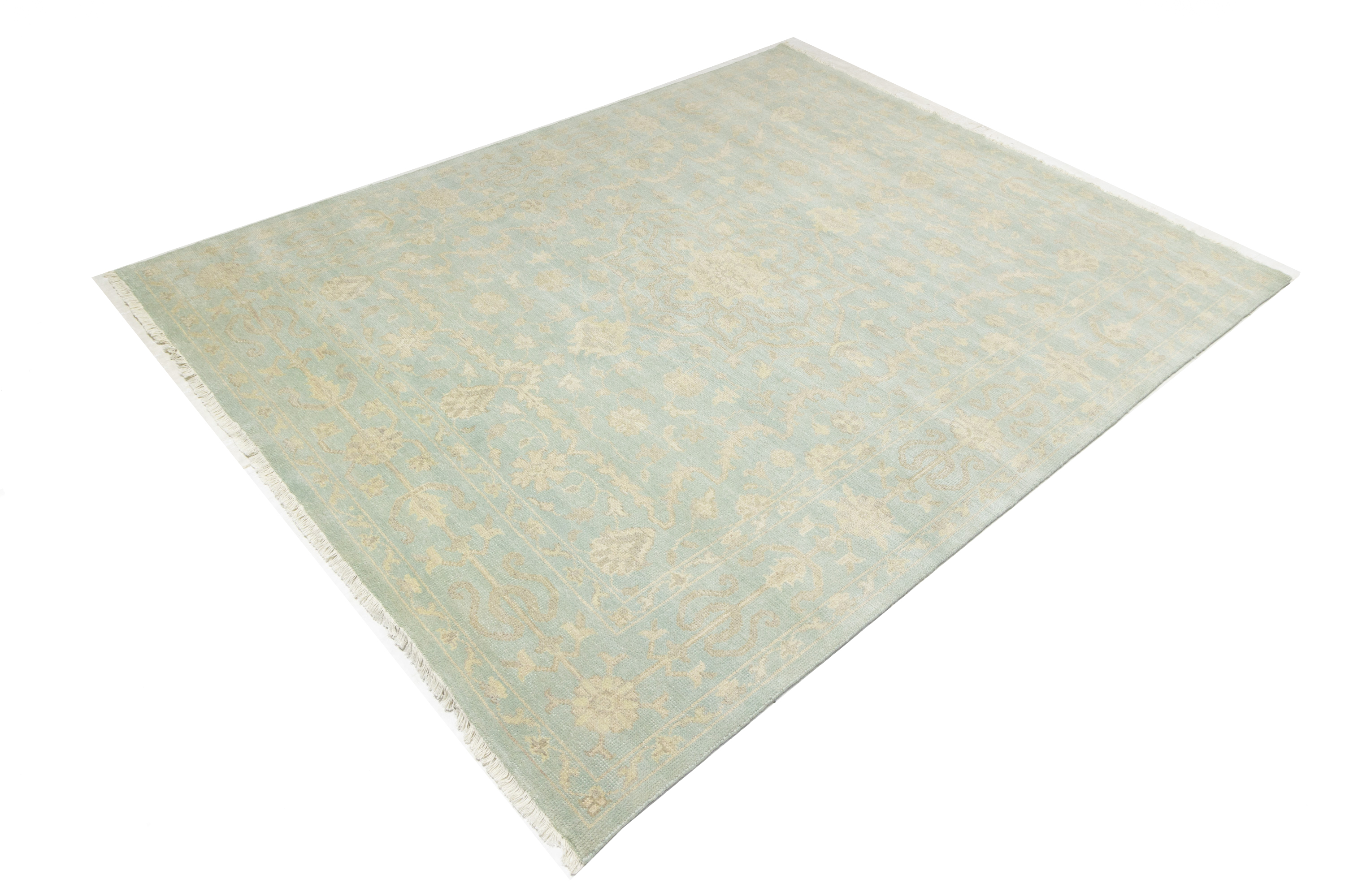 Muted Aqua Blue Floral Transitional 8X10 Oriental Rug