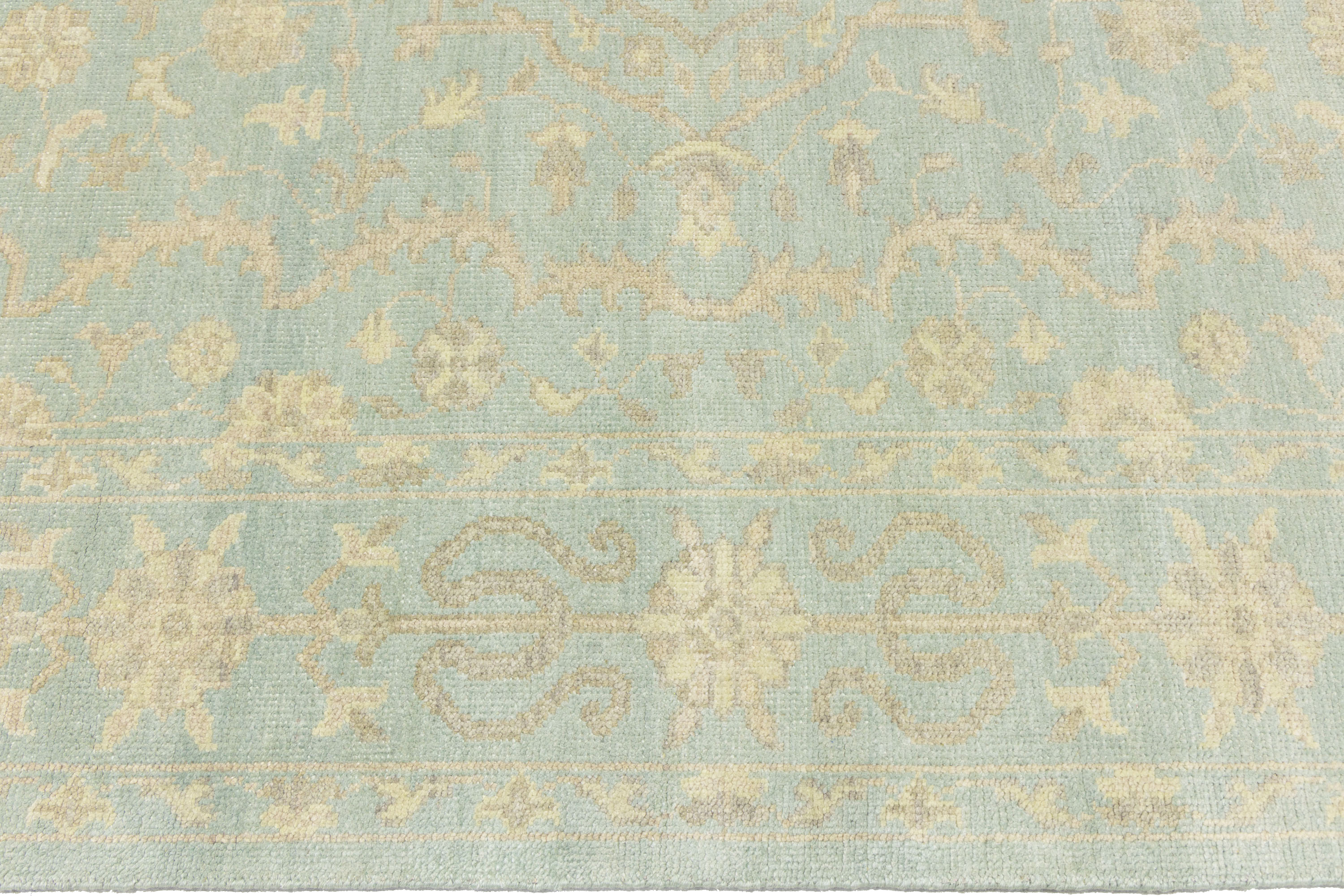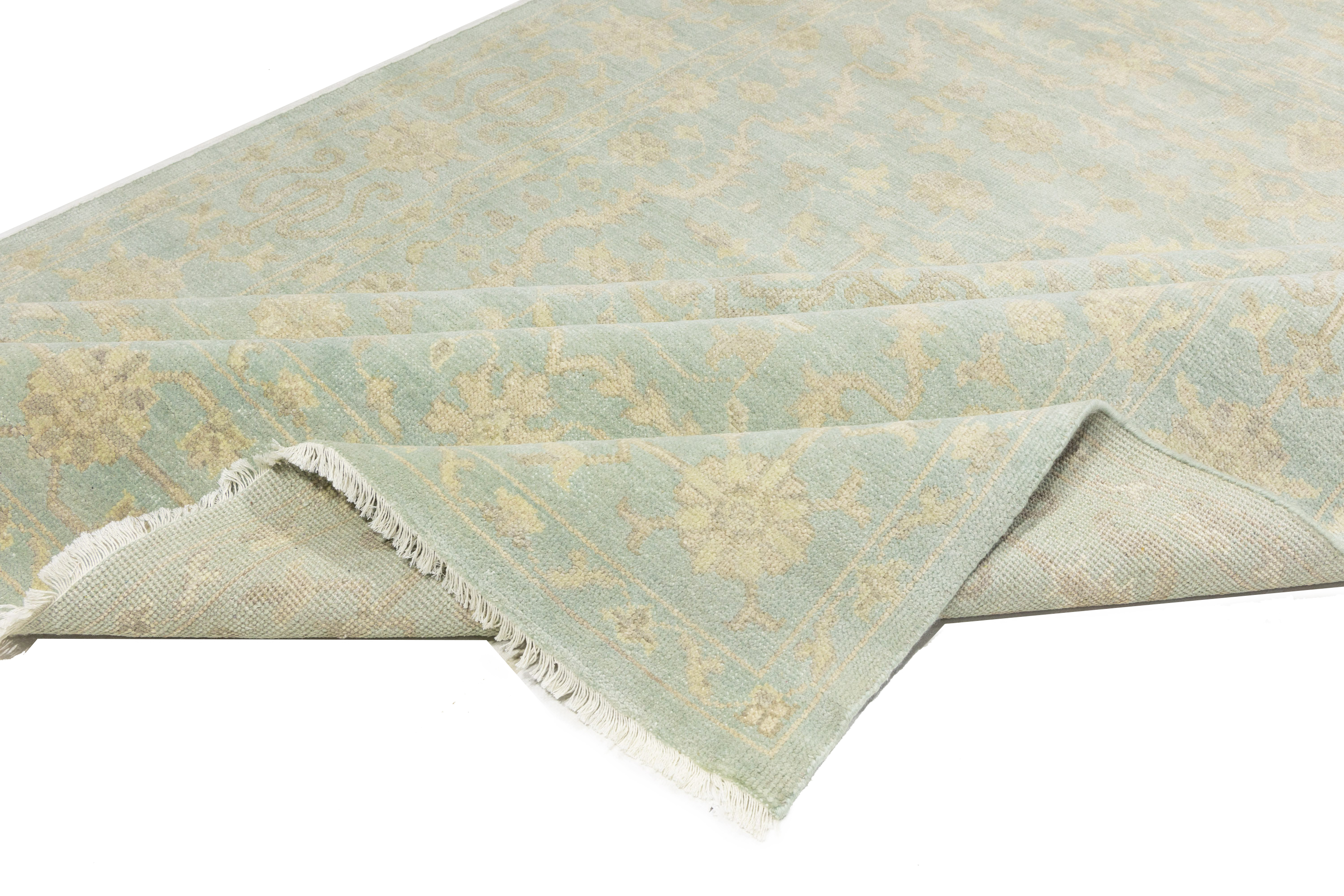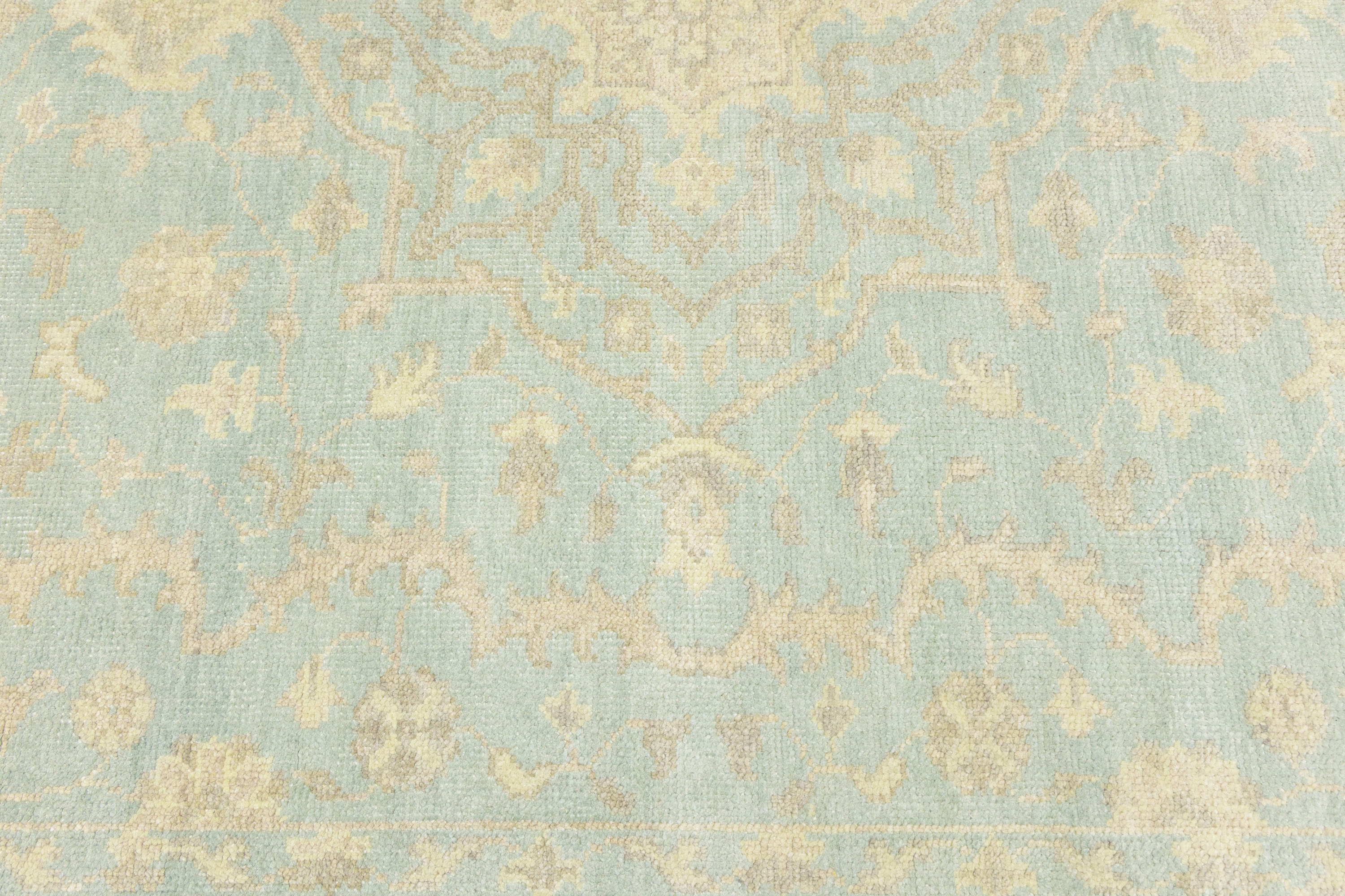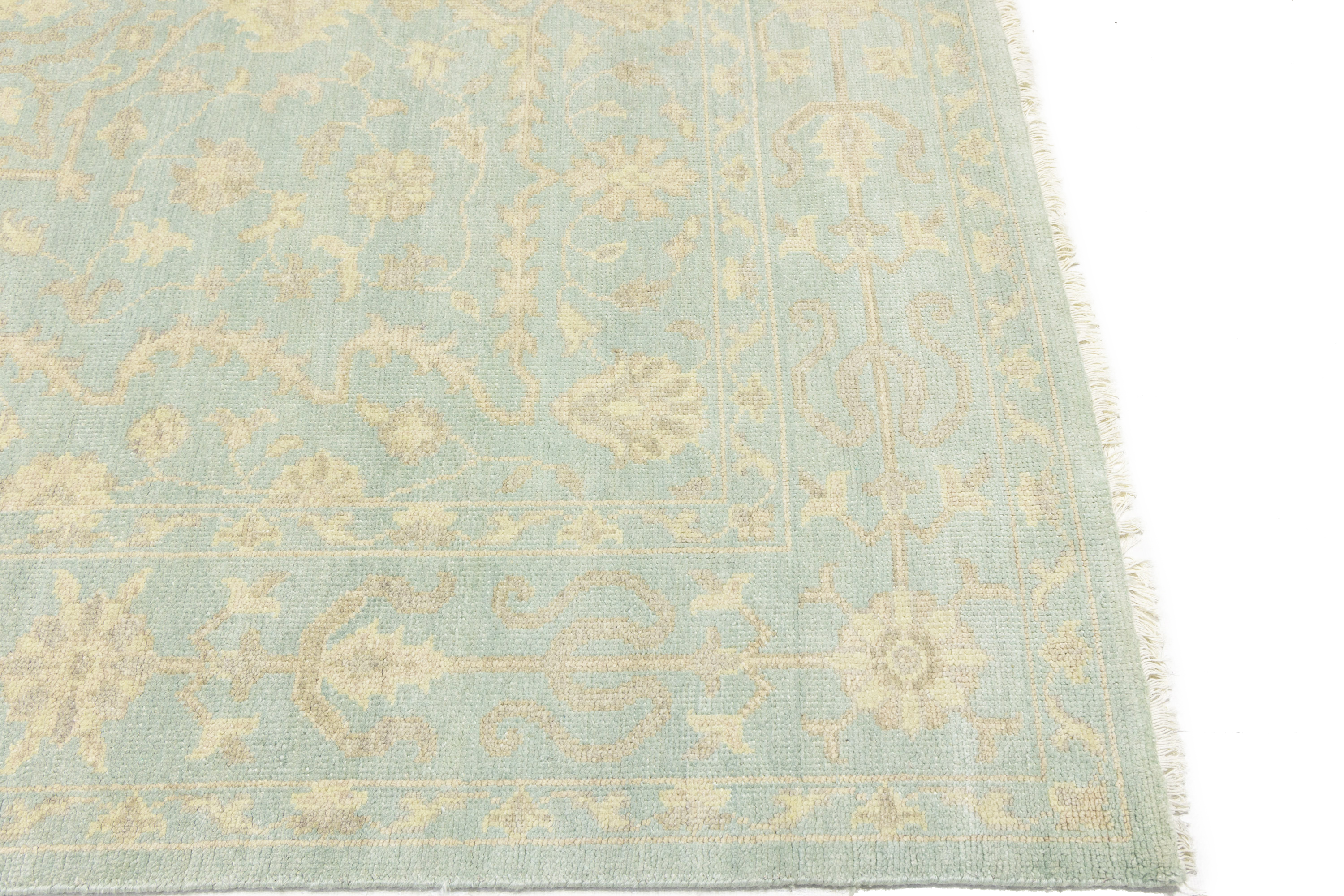 Muted Aqua Blue Floral Transitional 8X10 Oriental Rug