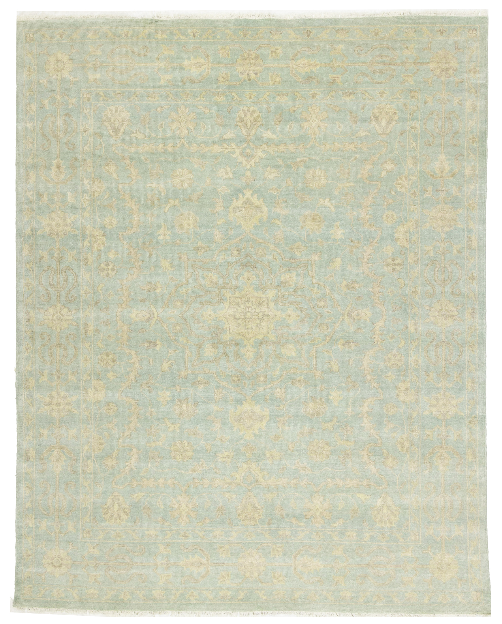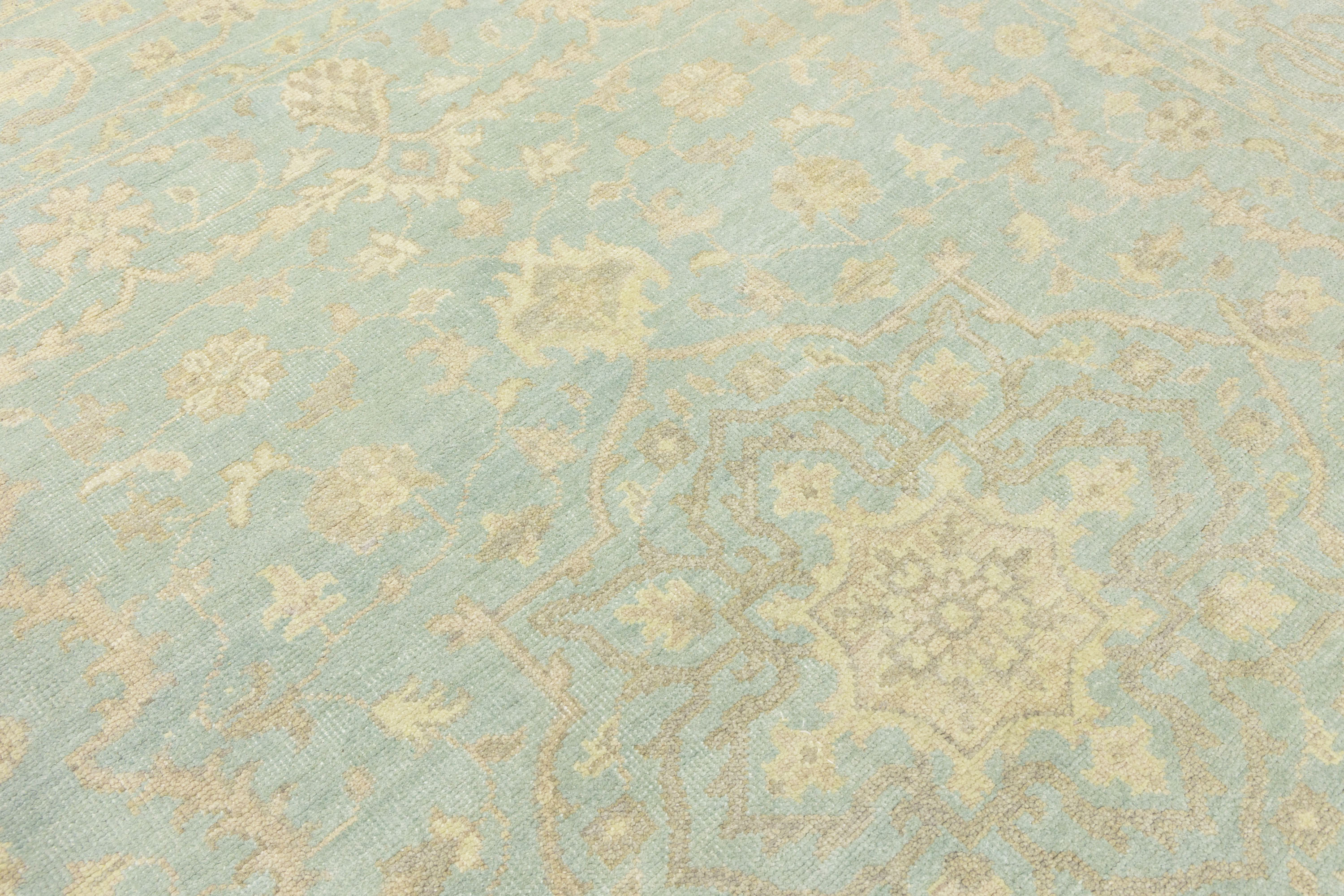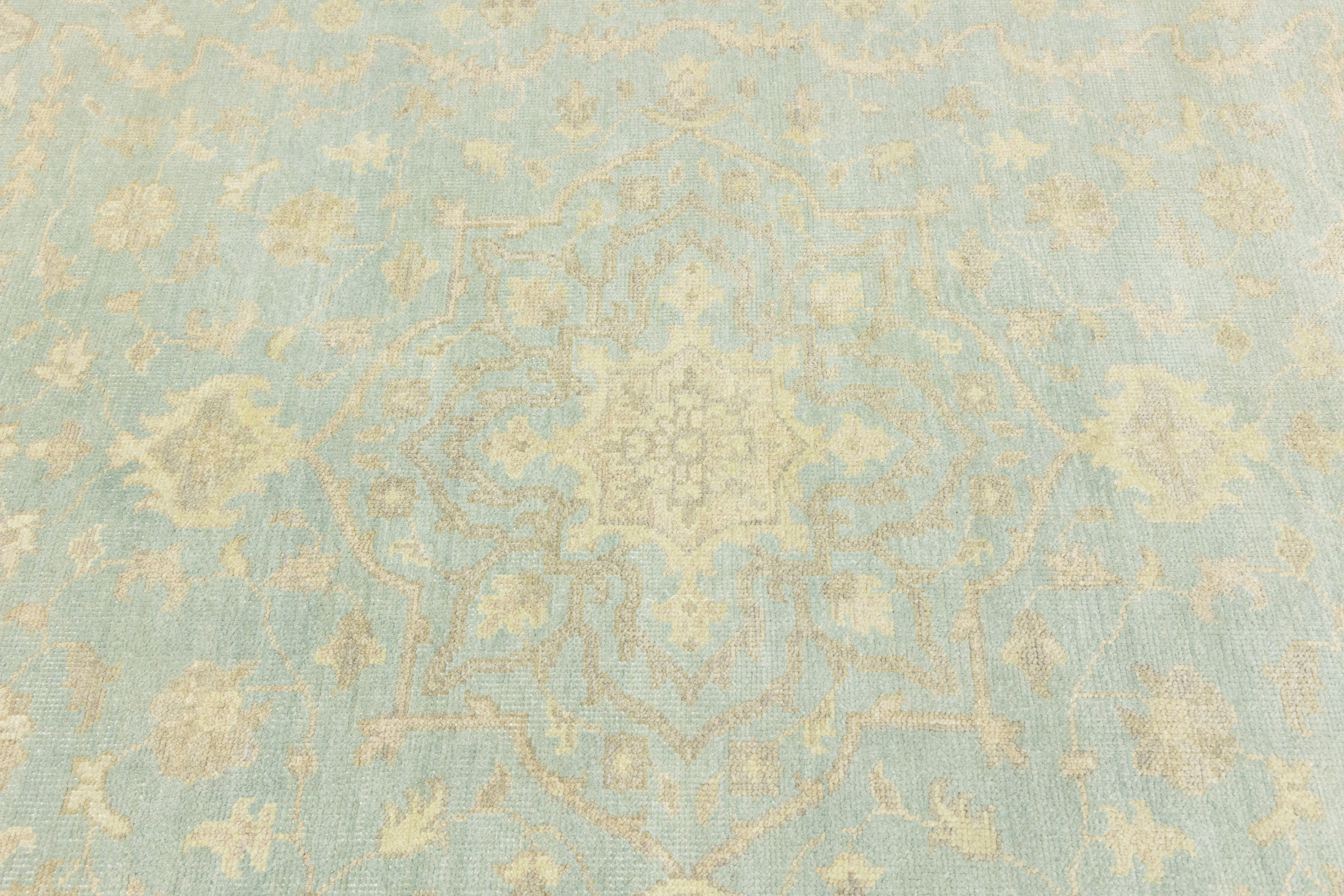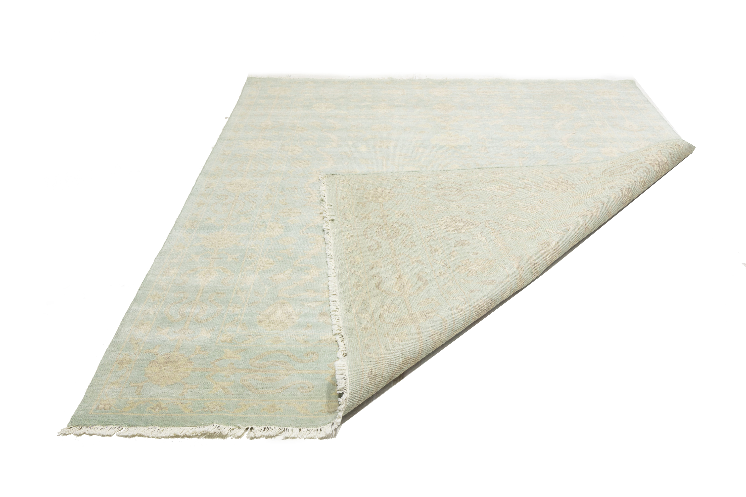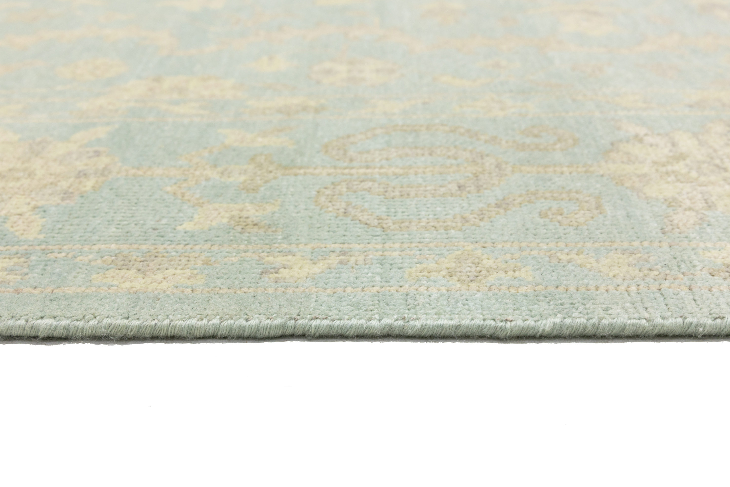 Muted Aqua Blue Floral Transitional 8X10 Oriental Rug