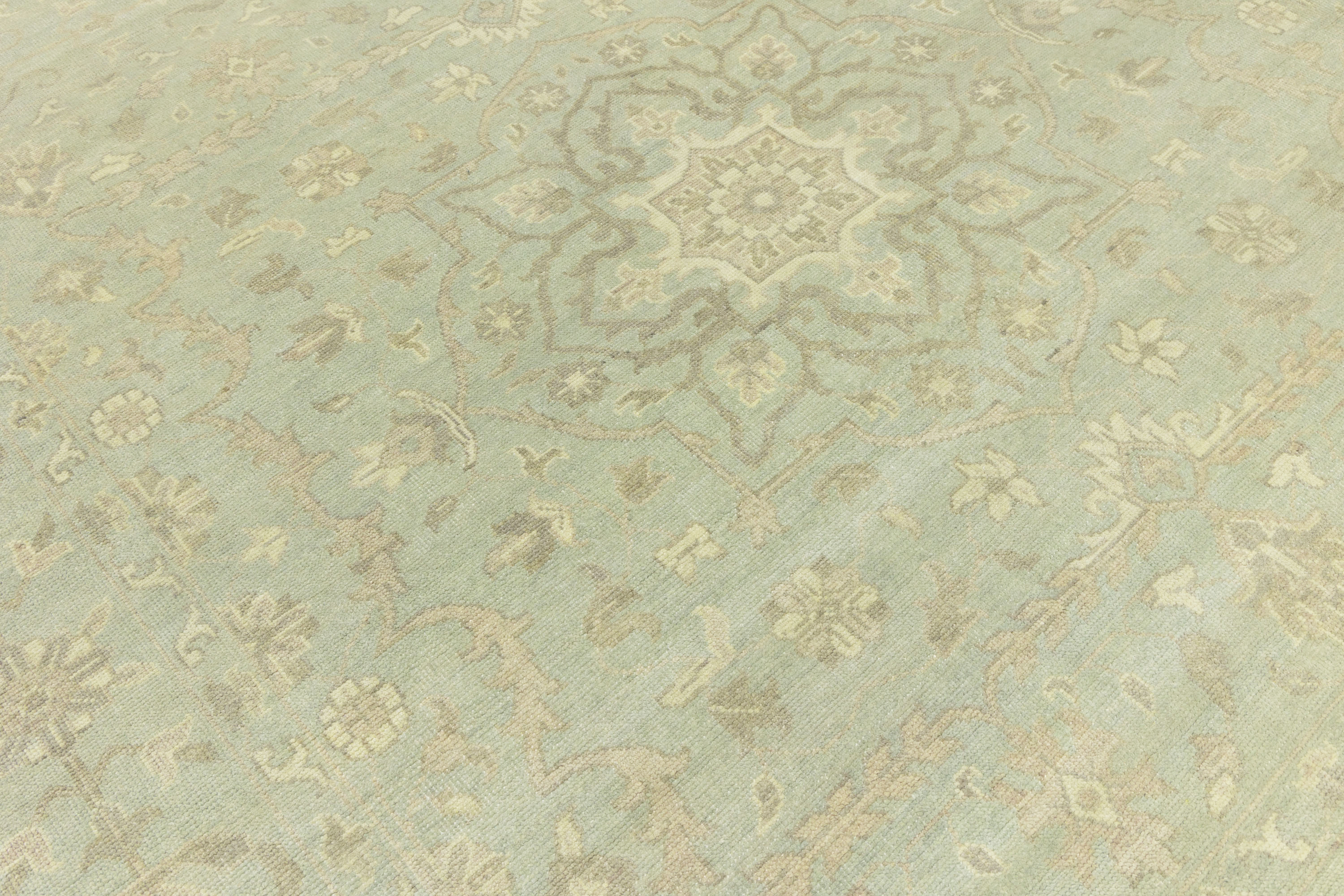 Muted Aqua Green Floral 10X10 Transitional Oriental Round Rug