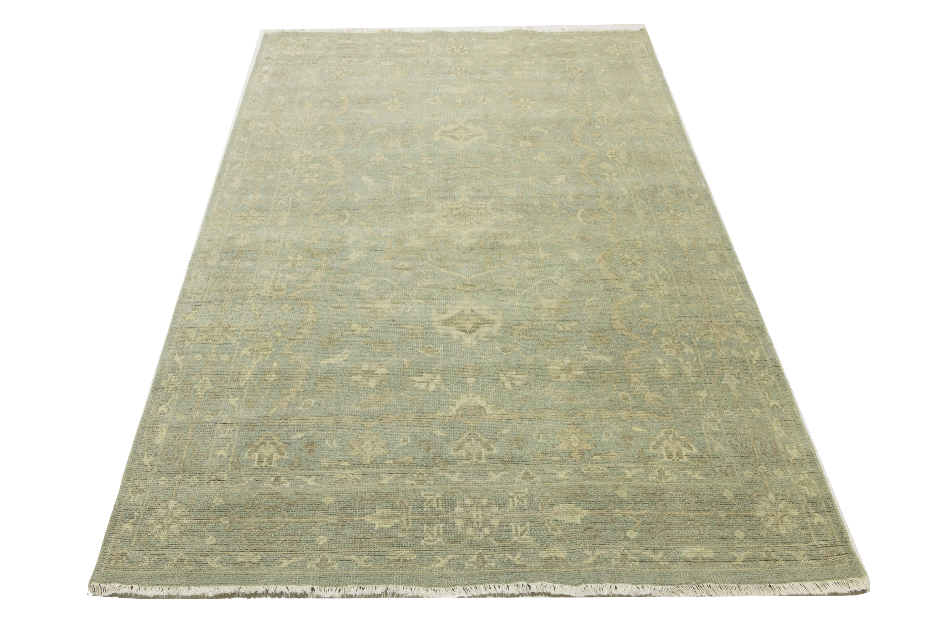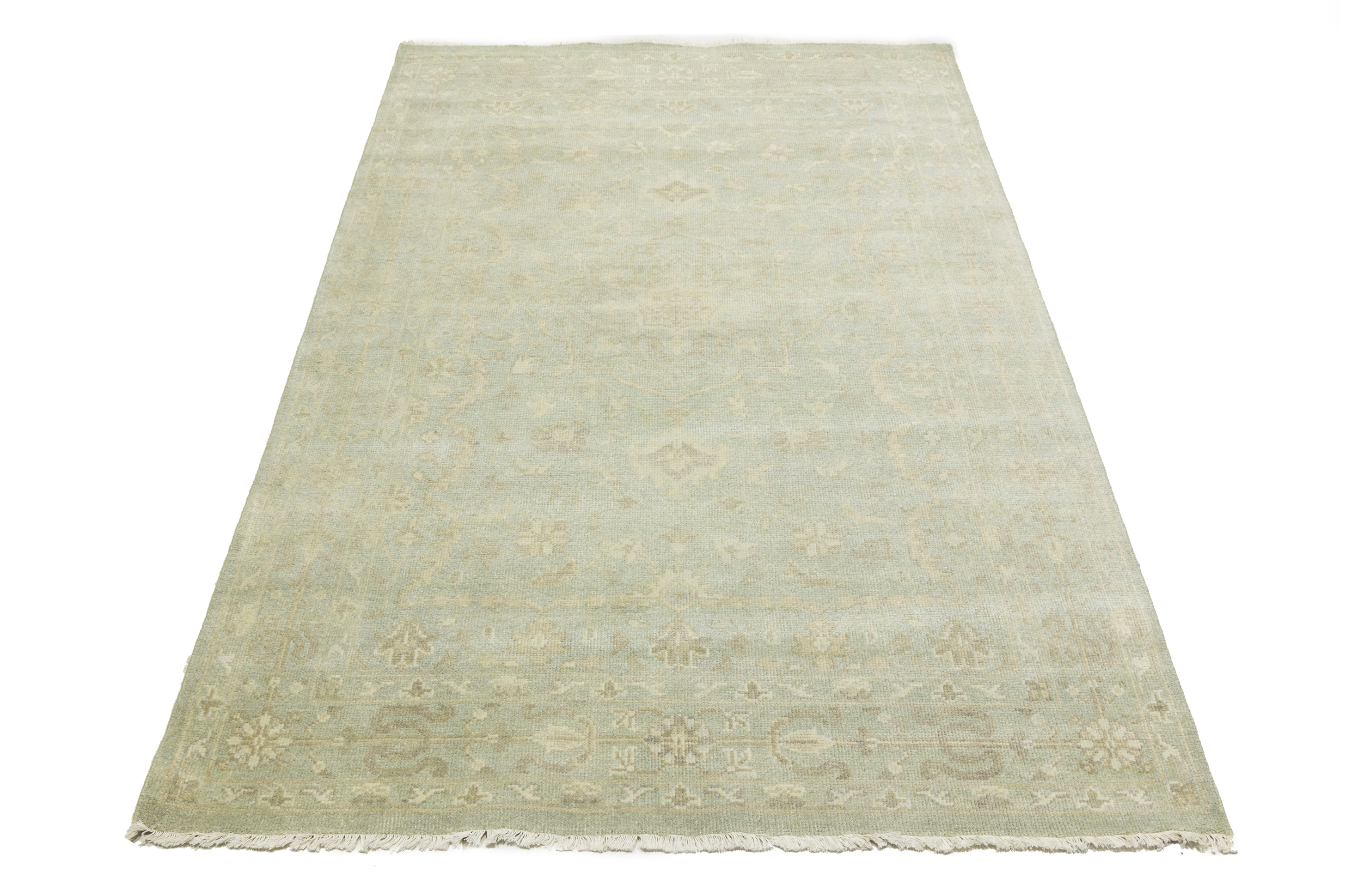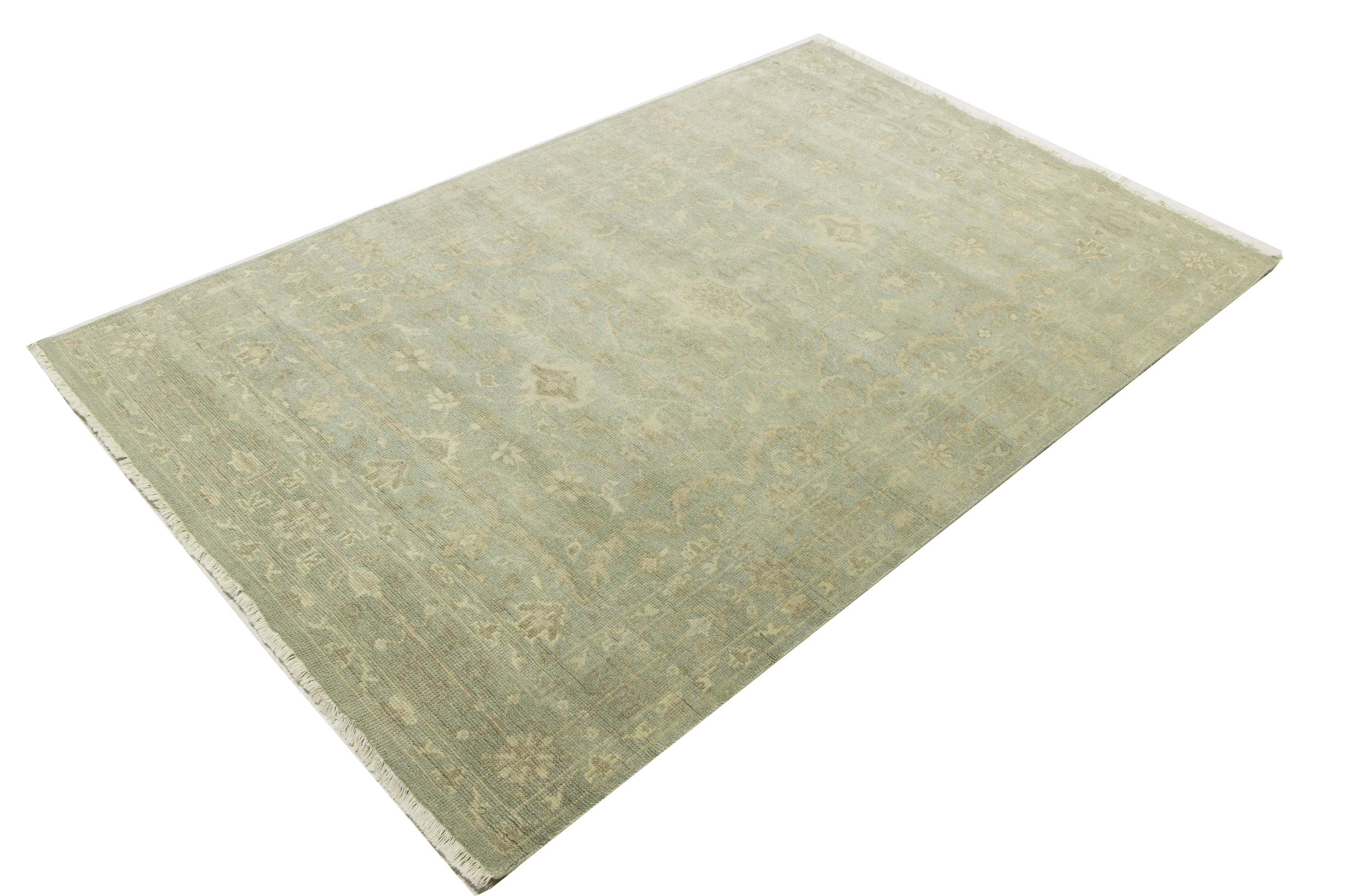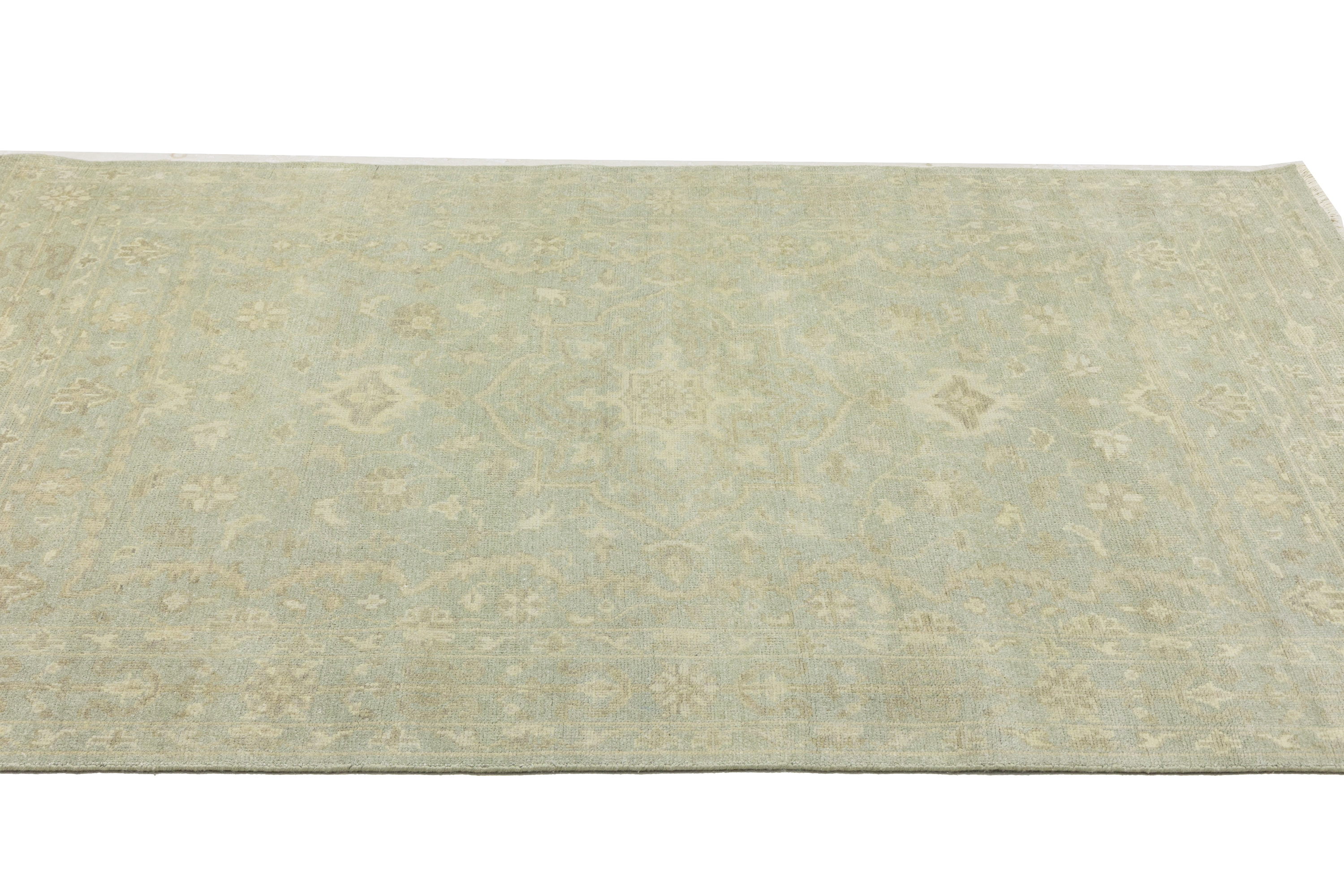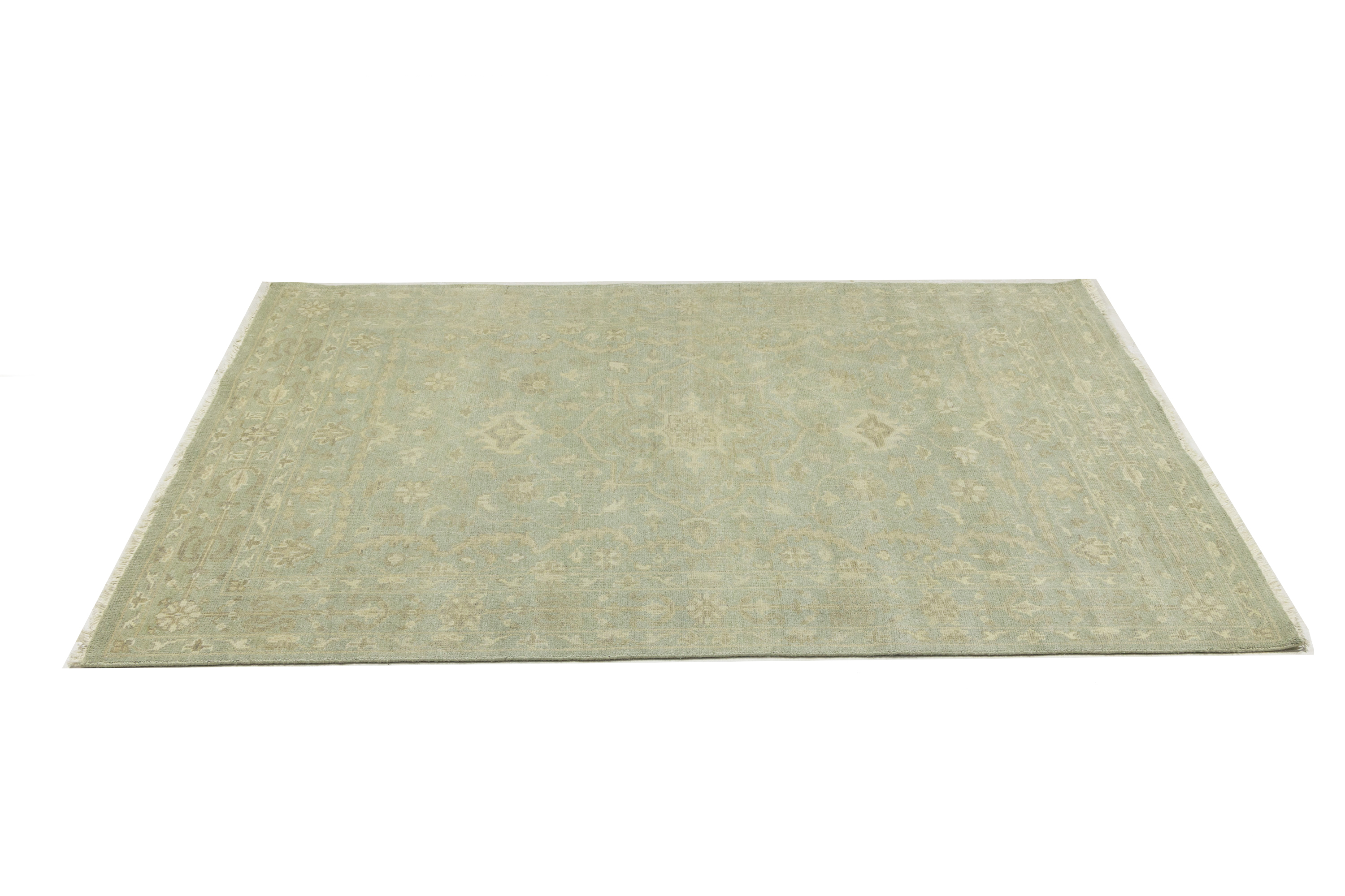 Muted Aqua Green Floral 6X9 Transitional Oriental Rug