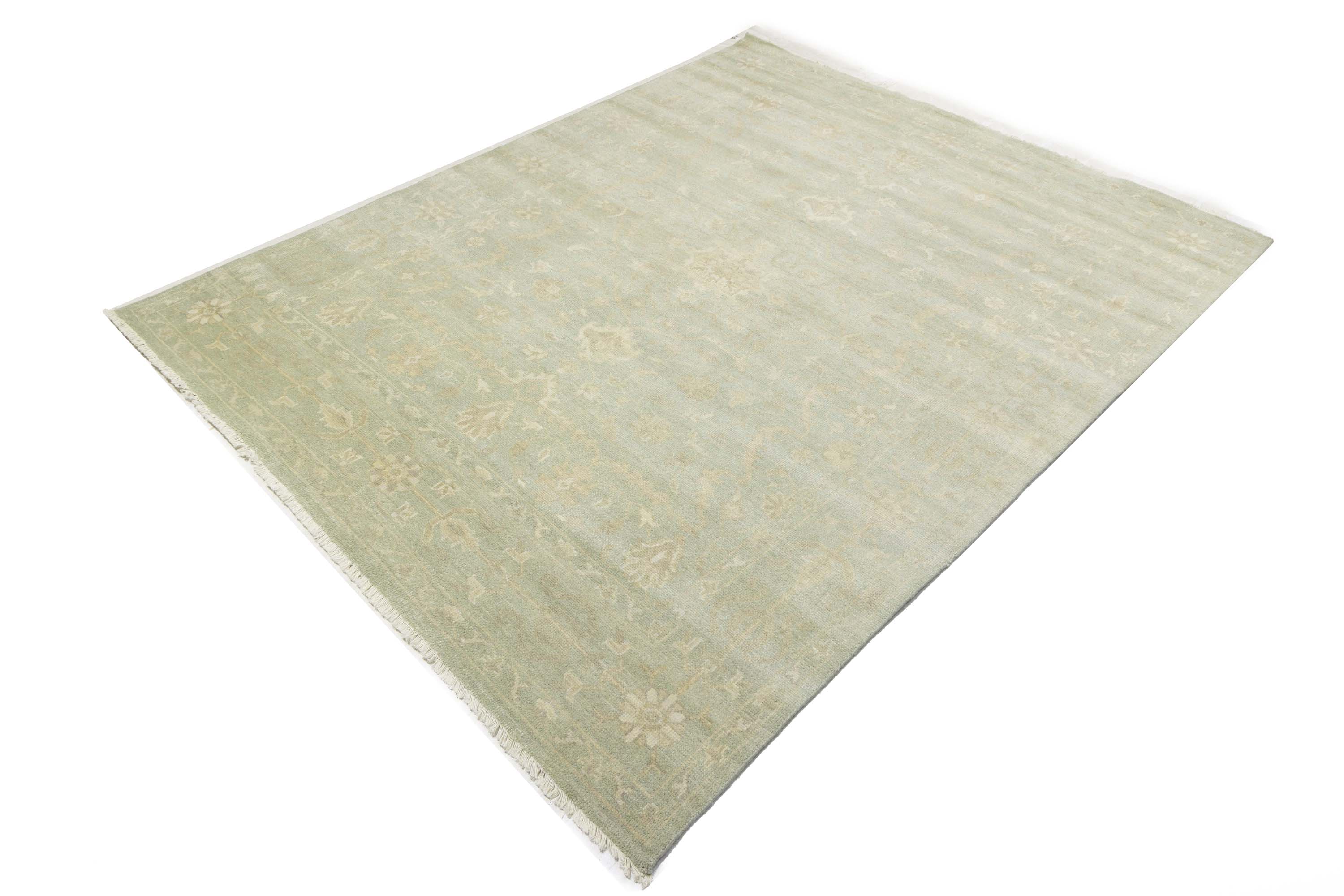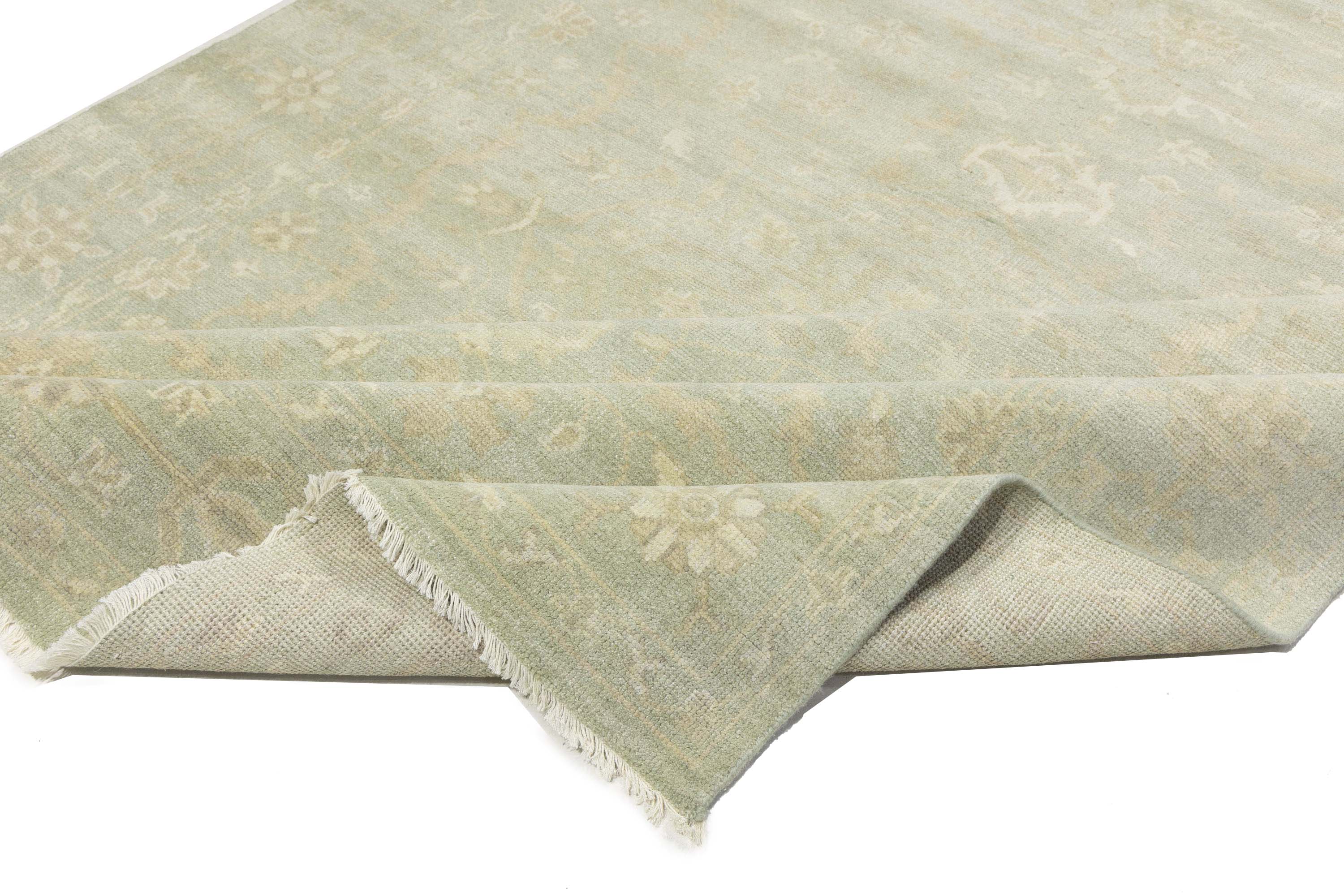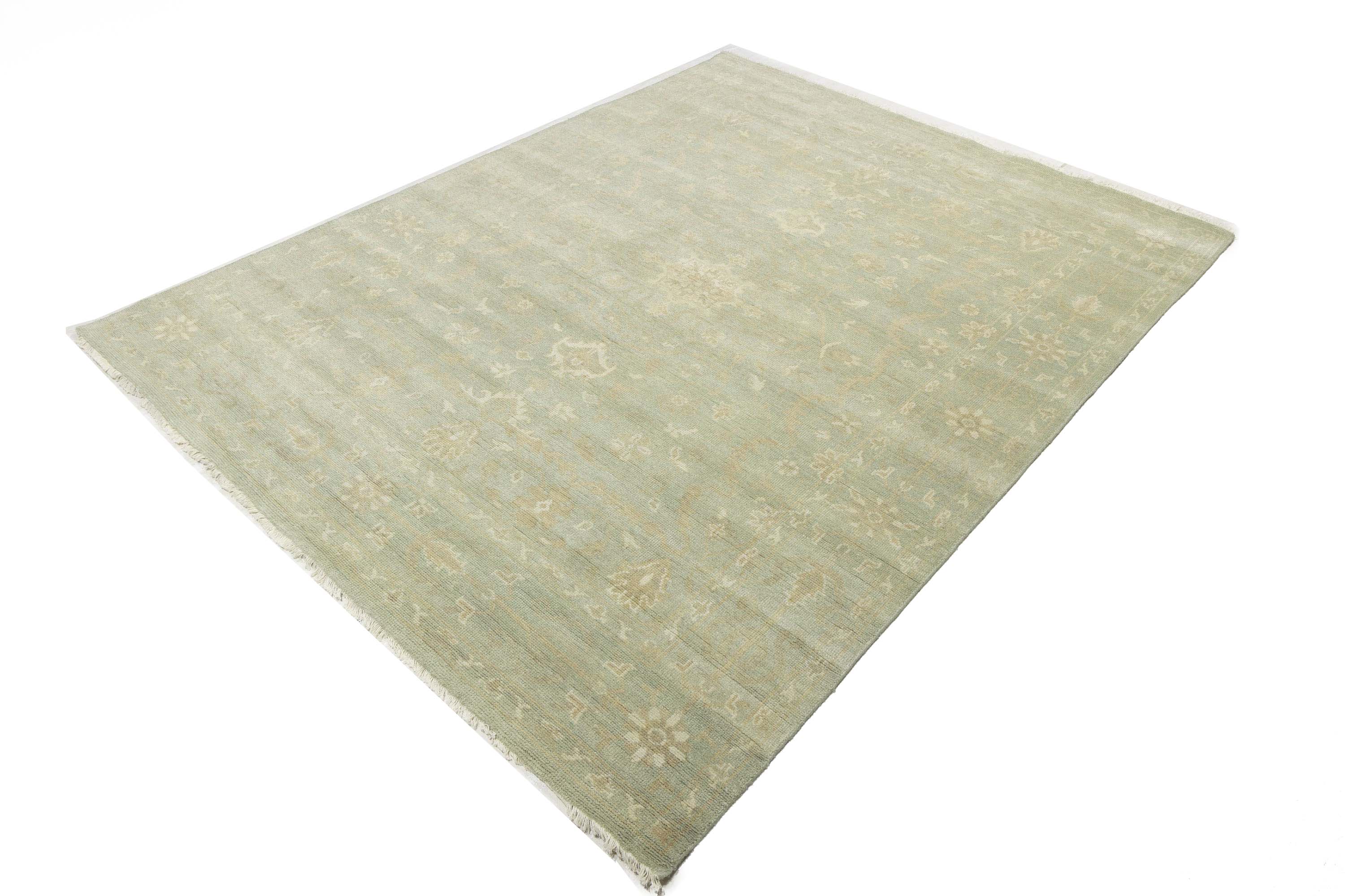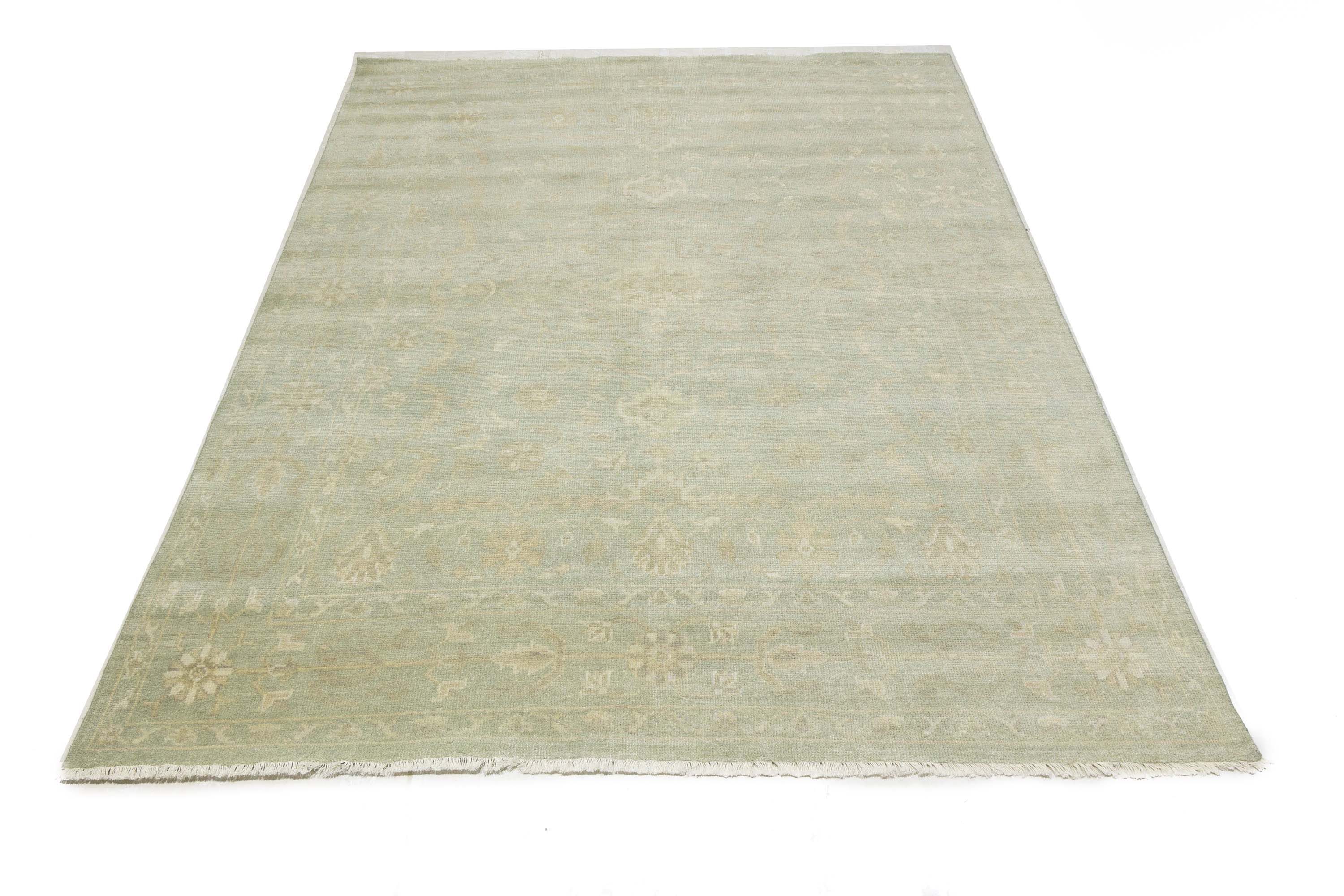 Muted Aqua Green Floral 8x10 Transitional Oriental Area Rug