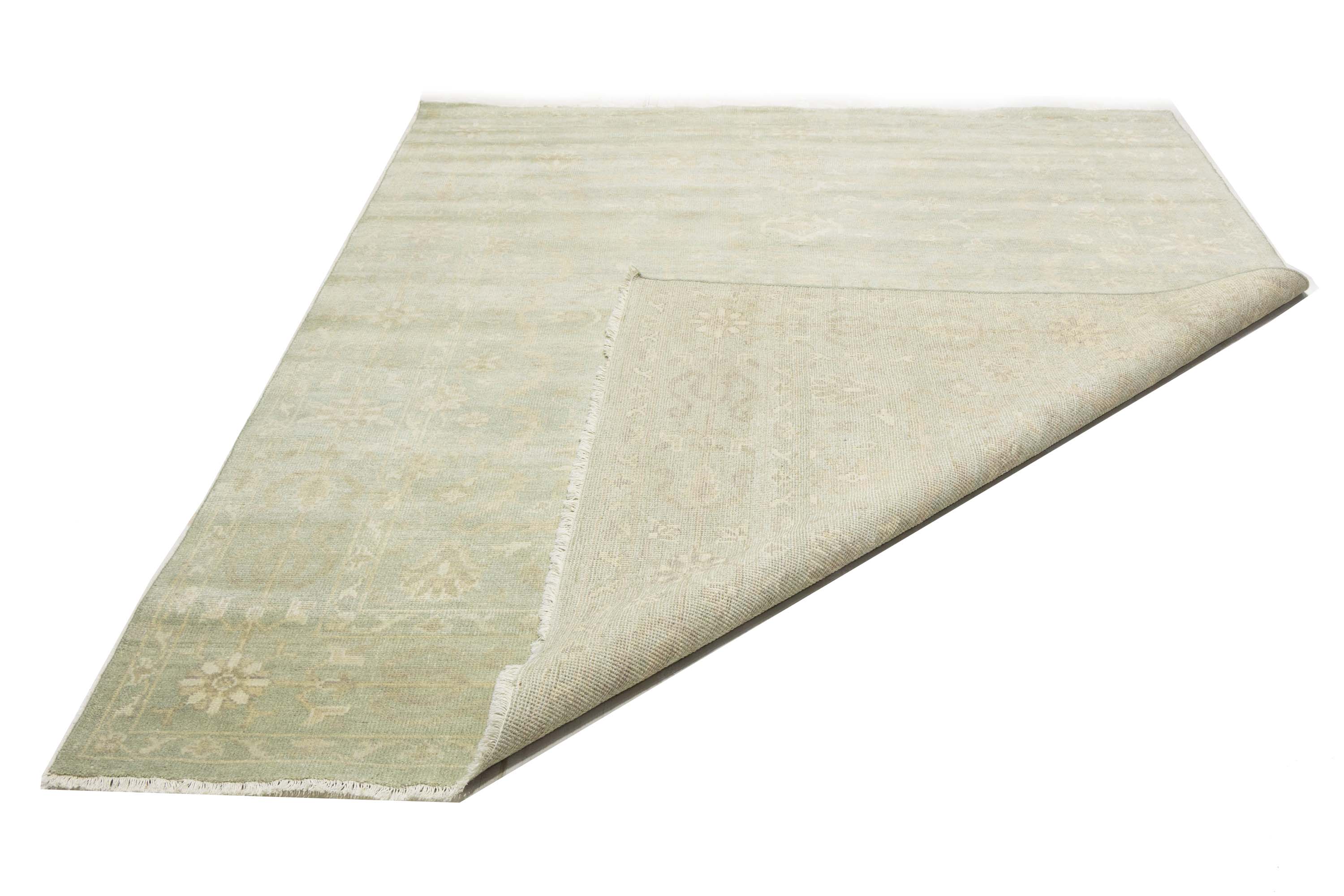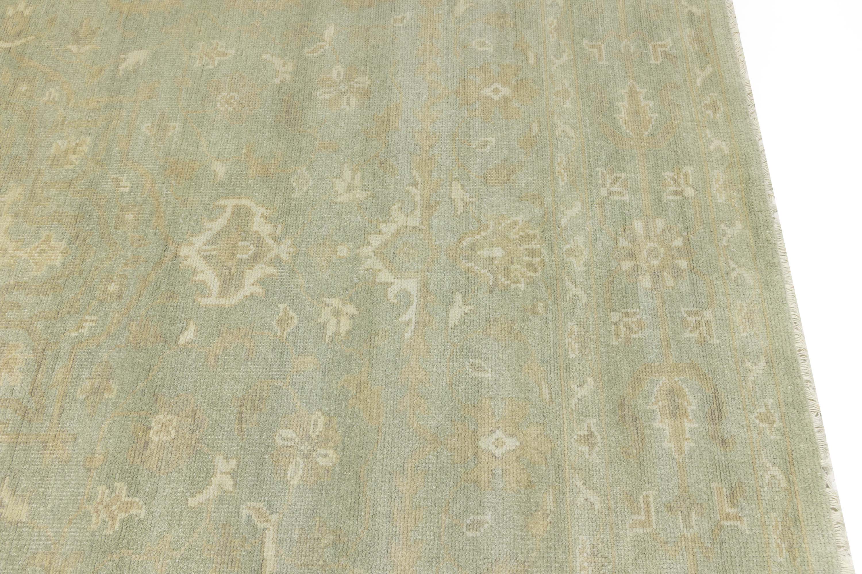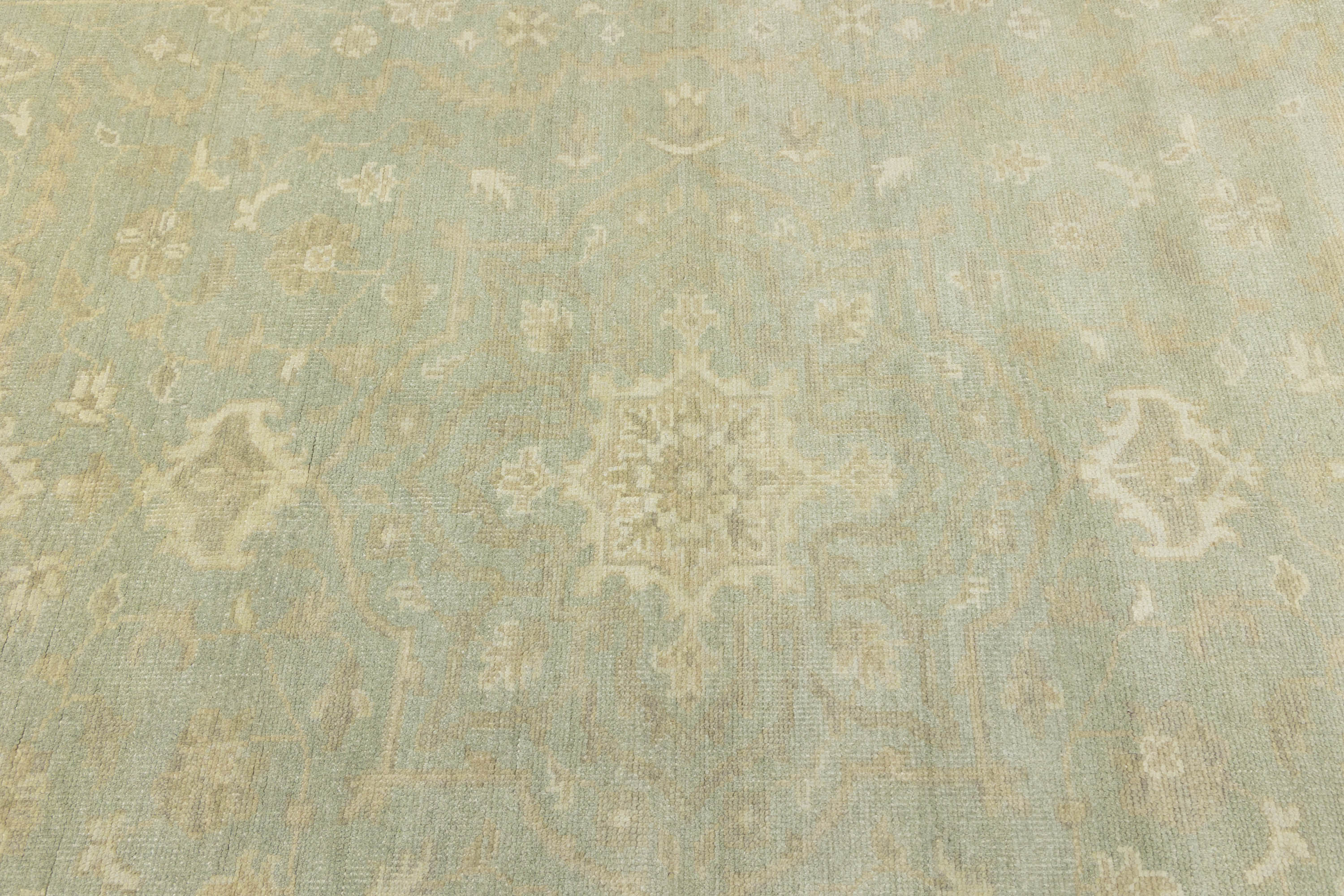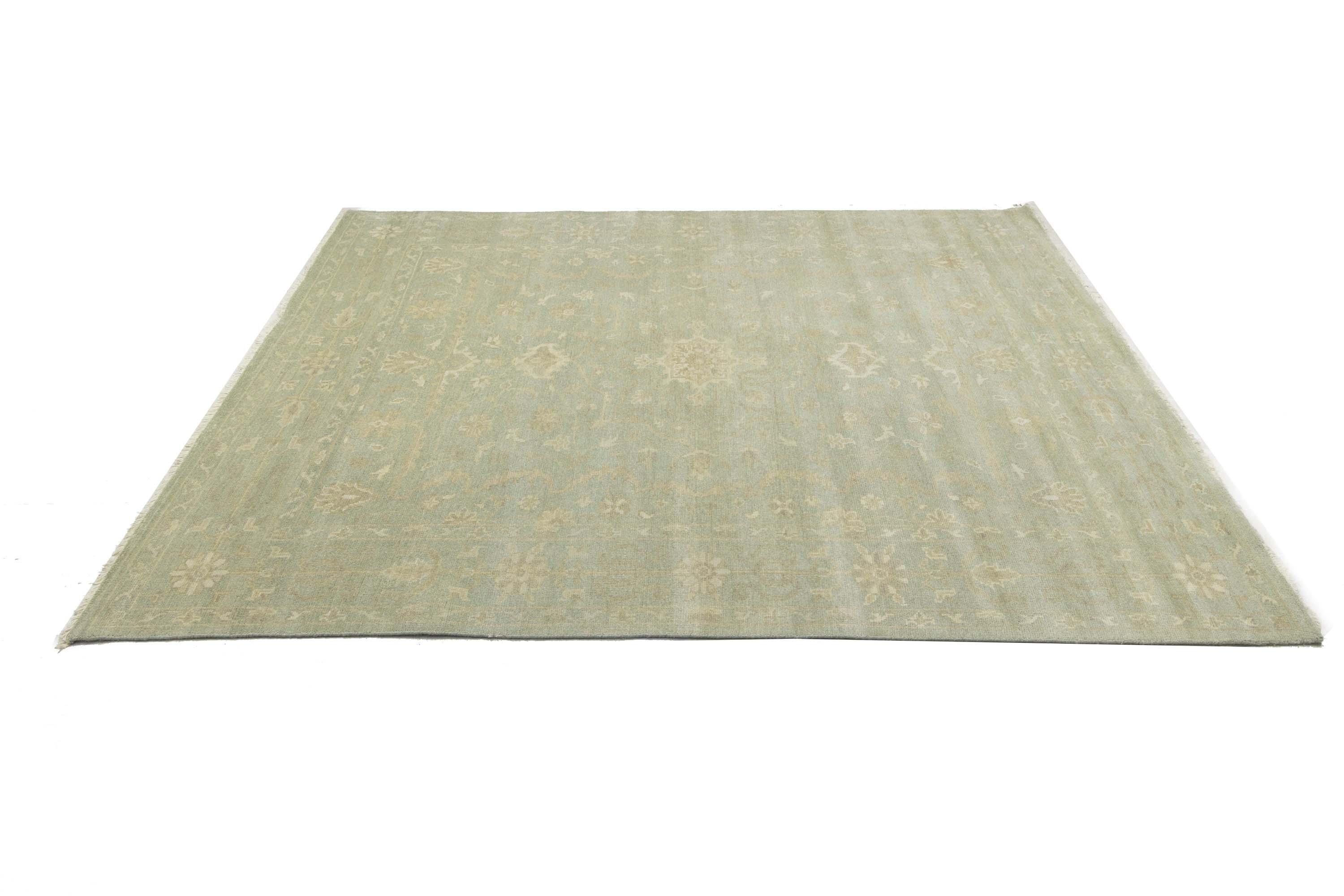 Muted Aqua Green Floral 8x10 Transitional Oriental Area Rug