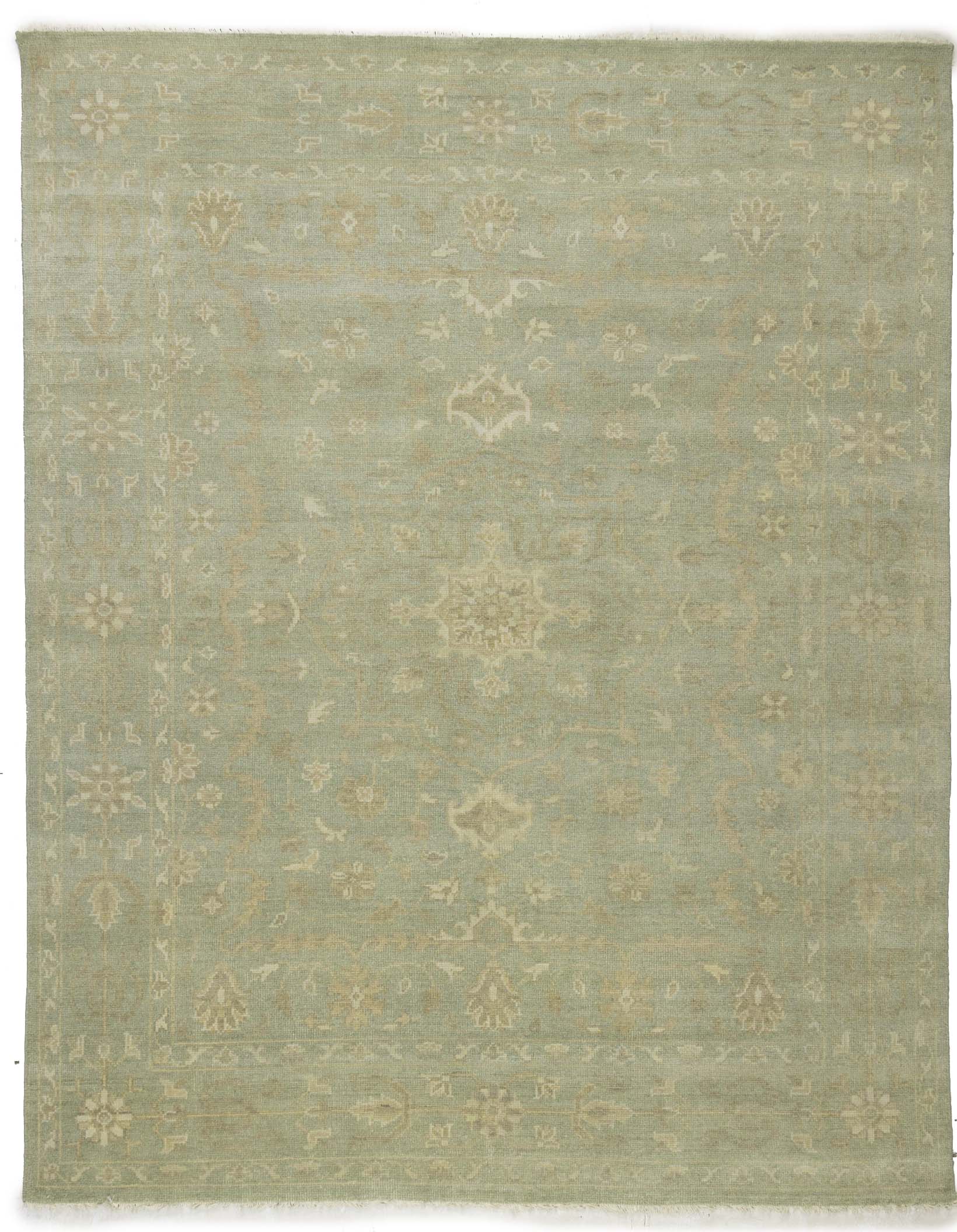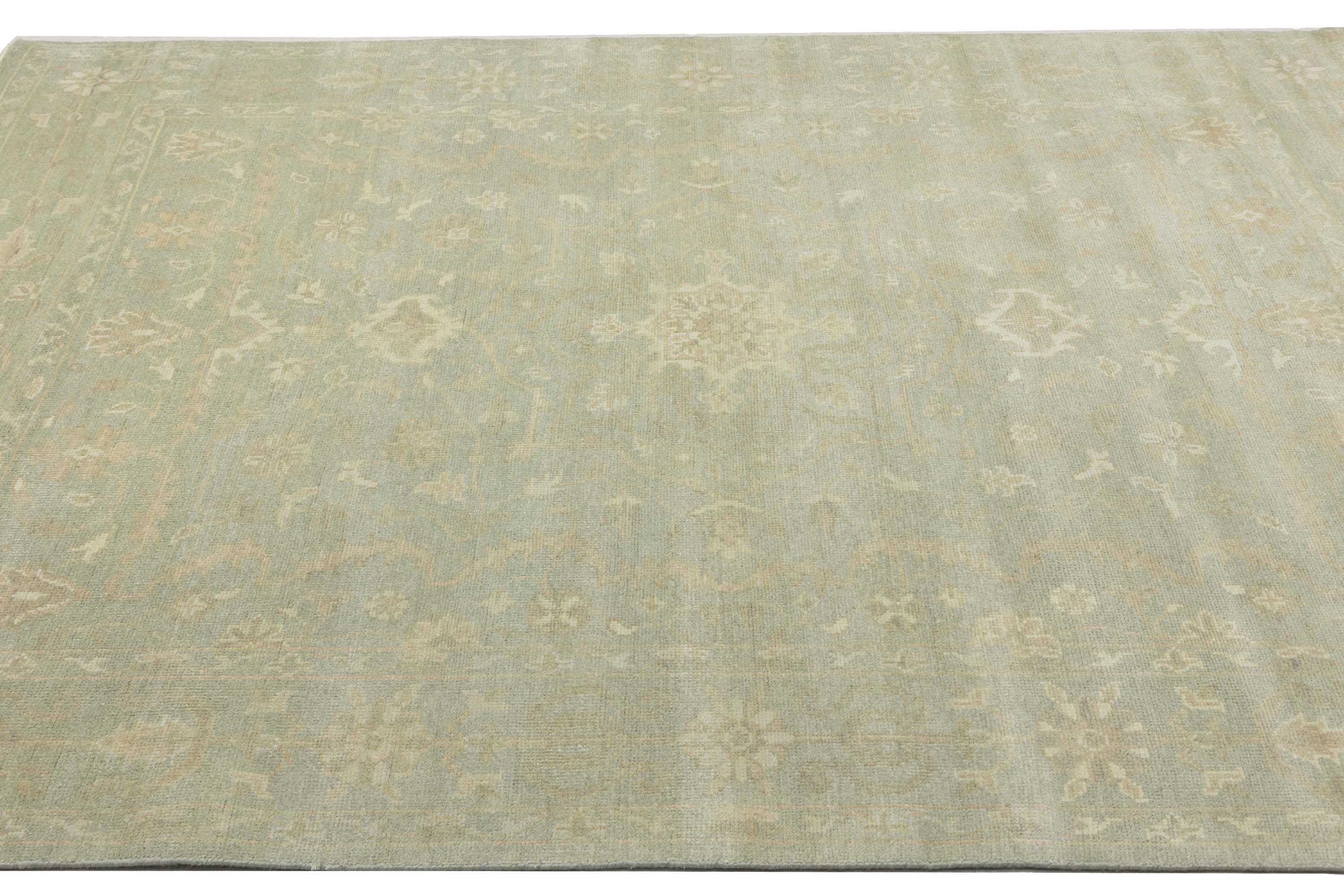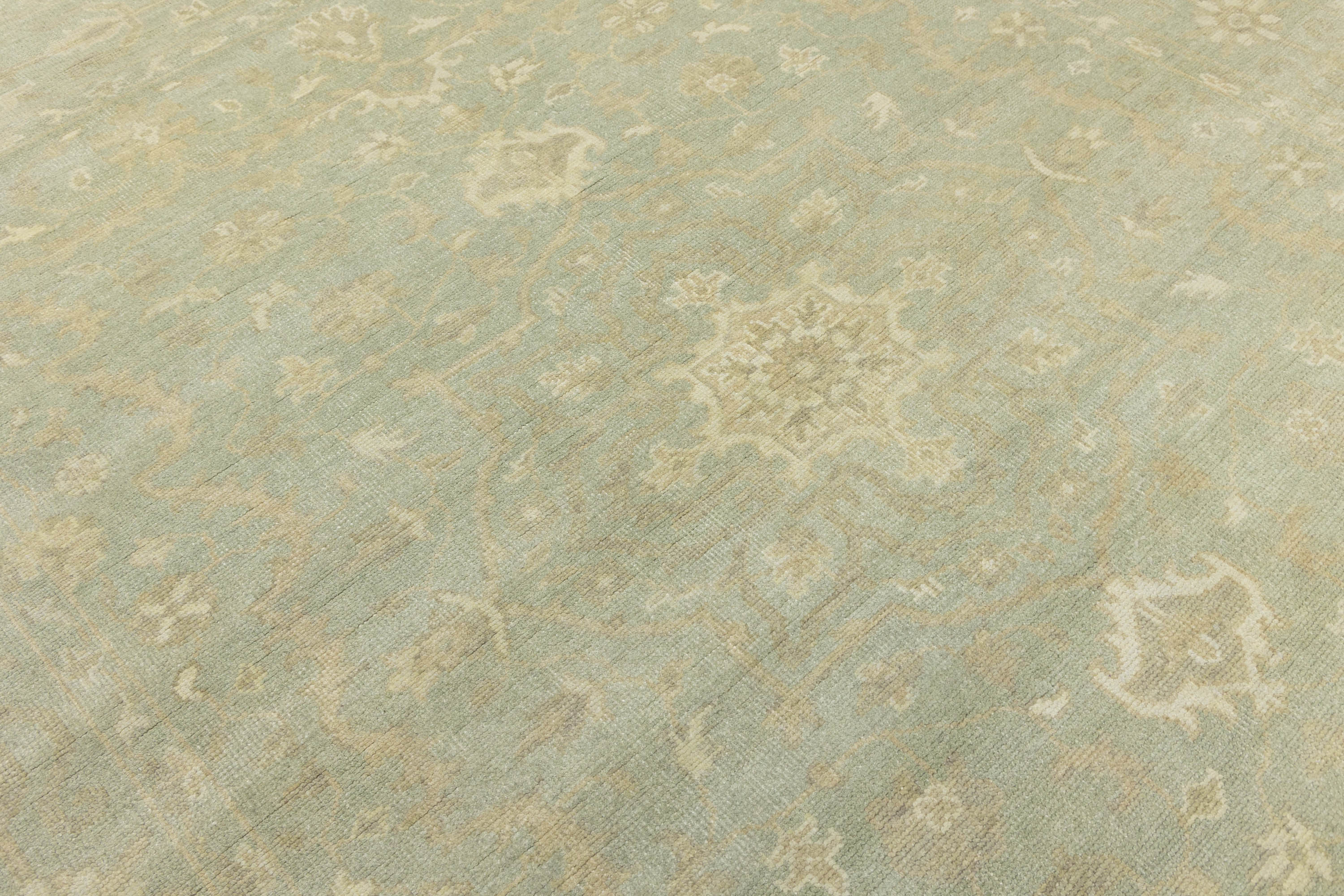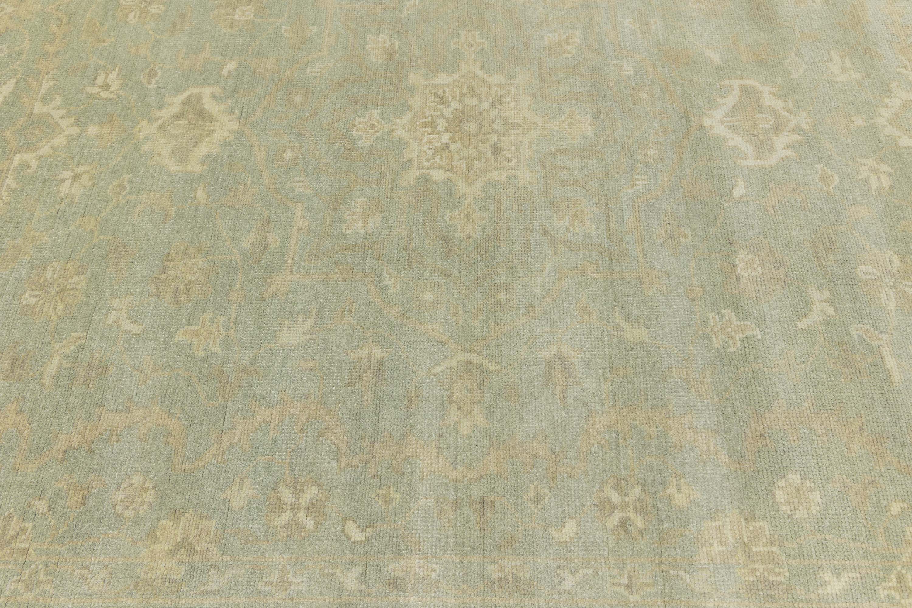 Muted Aqua Green Floral 8x10 Transitional Oriental Area Rug