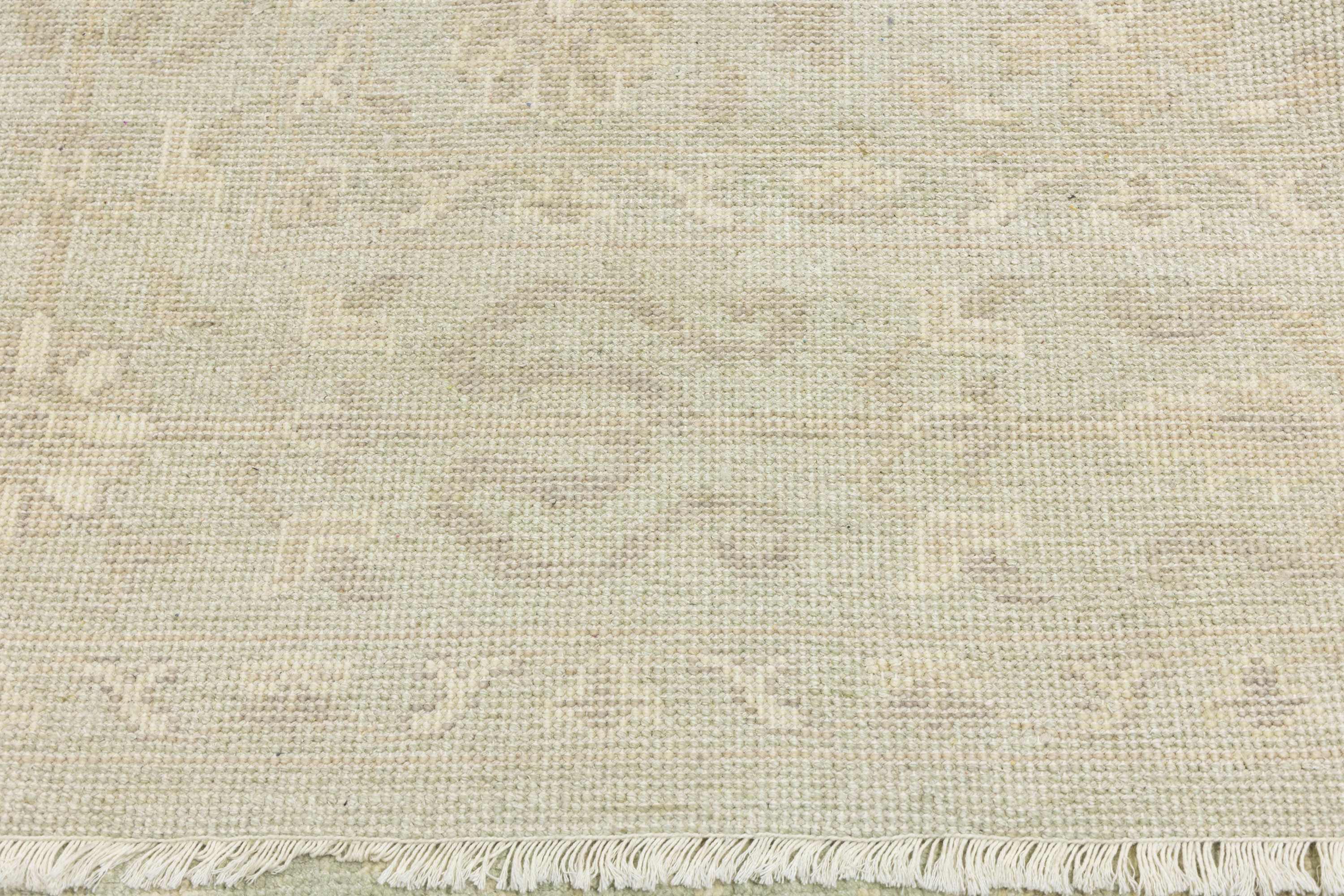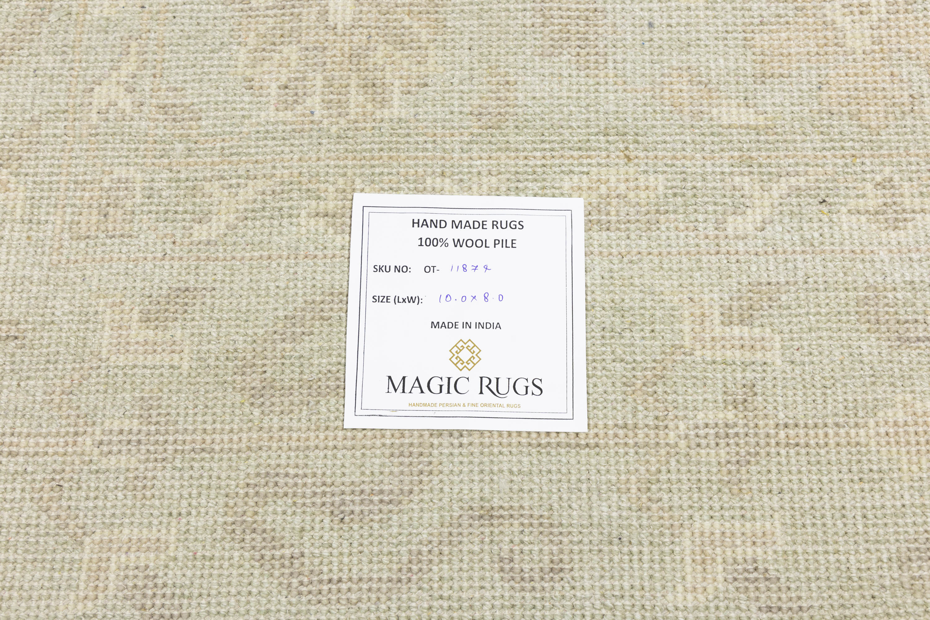 This genuine 8X10 Aqua green new Oriental rug was made by the hands of gifted weavers inspired by a variety of spectacular artistic designs, to recreate the aged look of the original piece with a richness of color and ornately patterned background field. What set this vintage style Oriental area rug from the others are the material and dye used (wool pile and cotton foundation), knot count, ancient designs, fantastic grades, and its regional historical connection: it has deep roots, from the story of the people who produced it to the meaning of the symbols and colors displayed across its canvas that have been praised for centuries. This Indian home décor carpet will be completely cozy and inviting that never will go out of style! Also, this Oriental rug would be among your most valuable treasures, it is a great investment that accrues value over time, and it will last for generations because was woven with high-quality, all-natural wool. Environmentally friendly, opulent yet affordable; this rug will give you a thorough amount of character to help define your living space with elegance and warmth that will capture the eyes and attention of your audience (homeowners, designers, decorators, family and friends). OT-11874