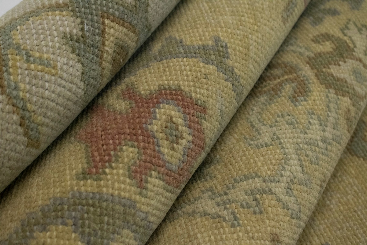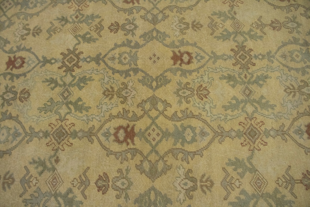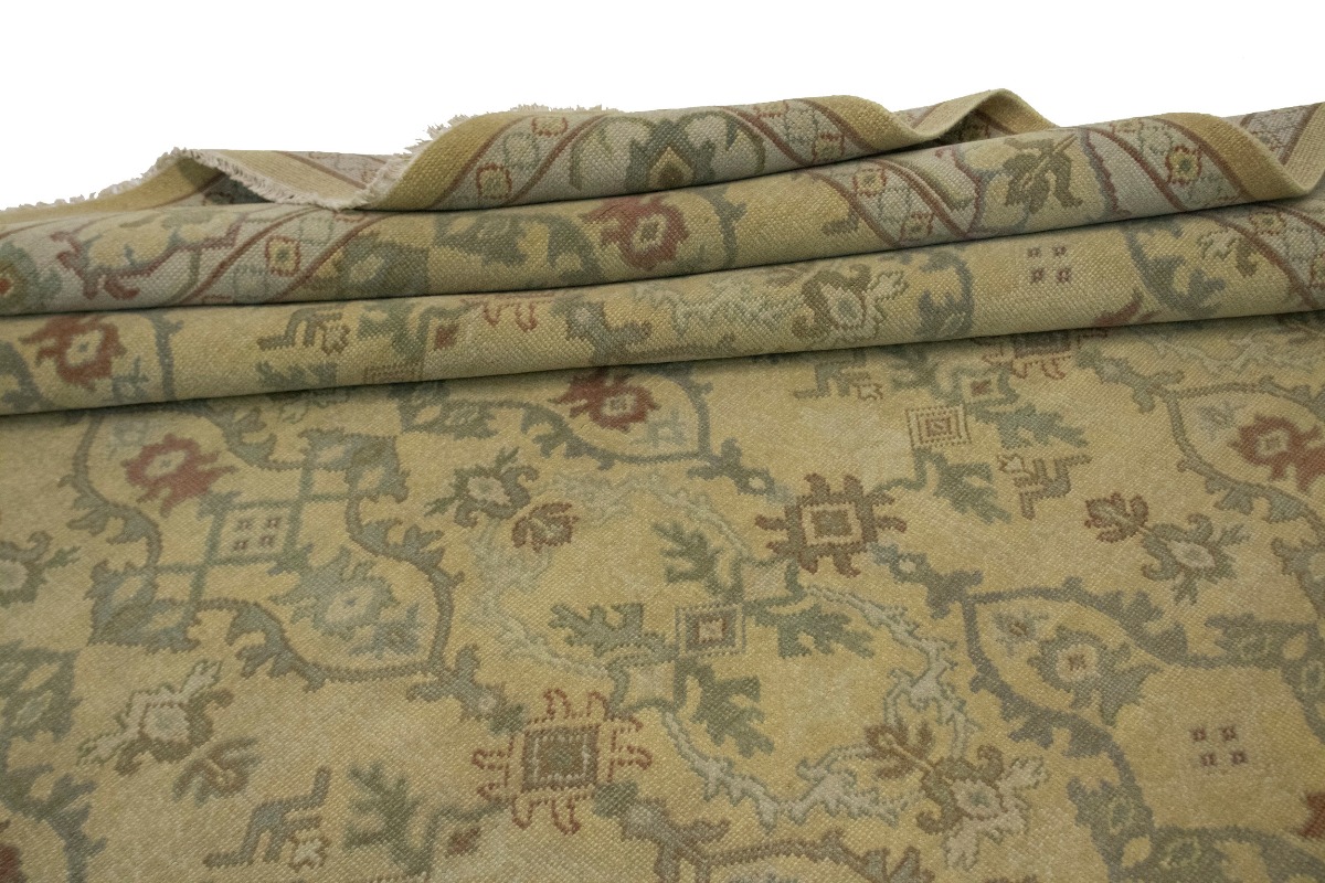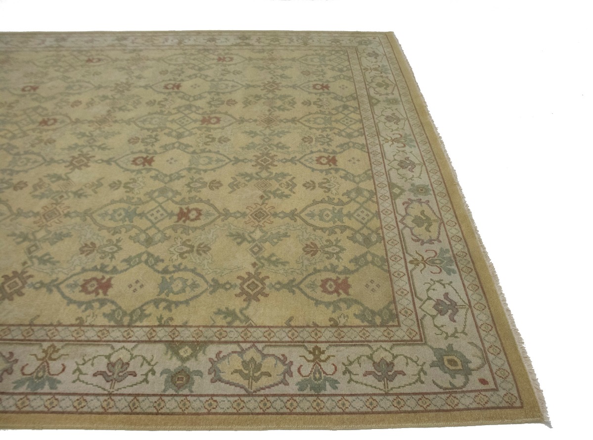 This genuine 10X14 beige new Oriental rug was made by the hands of gifted weavers inspired by a variety of spectacular artistic designs, to recreate the aged look of the original piece with a richness of color and ornately patterned background field. What set this vintage style Oriental area rug from the others are the material and dye used (wool pile and cotton foundation), knot count, ancient designs, fantastic grades, and its regional historical connection: it has deep roots, from the story of the people who produced it to the meaning of the symbols and colors displayed across its canvas that have been praised for centuries. This Indian home décor carpet will be completely cozy and inviting that never will go out of style! Also, this Oriental rug would be among your most valuable treasures, it is a great investment that accrues value over time, and it will last for generations because was woven with high-quality, all-natural wool. Environmentally friendly, opulent yet affordable; this rug/runner will give you a thorough amount of character to help define your living space with elegance and warmth that will capture the eyes and attention of your audience (homeowners, designers, decorators, family and friends). OT-1934