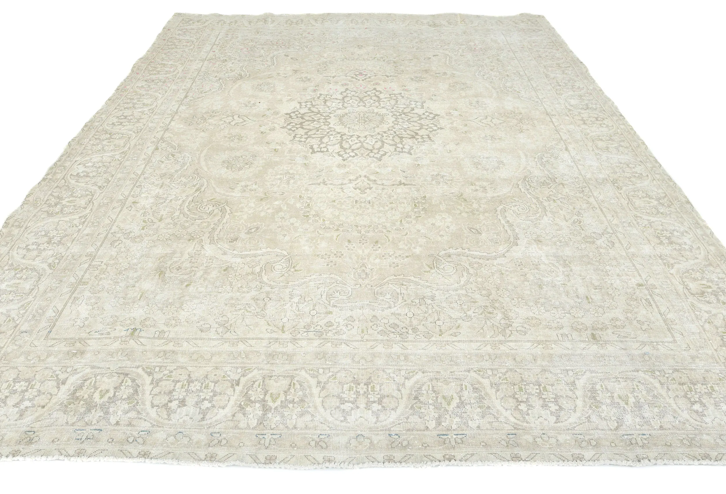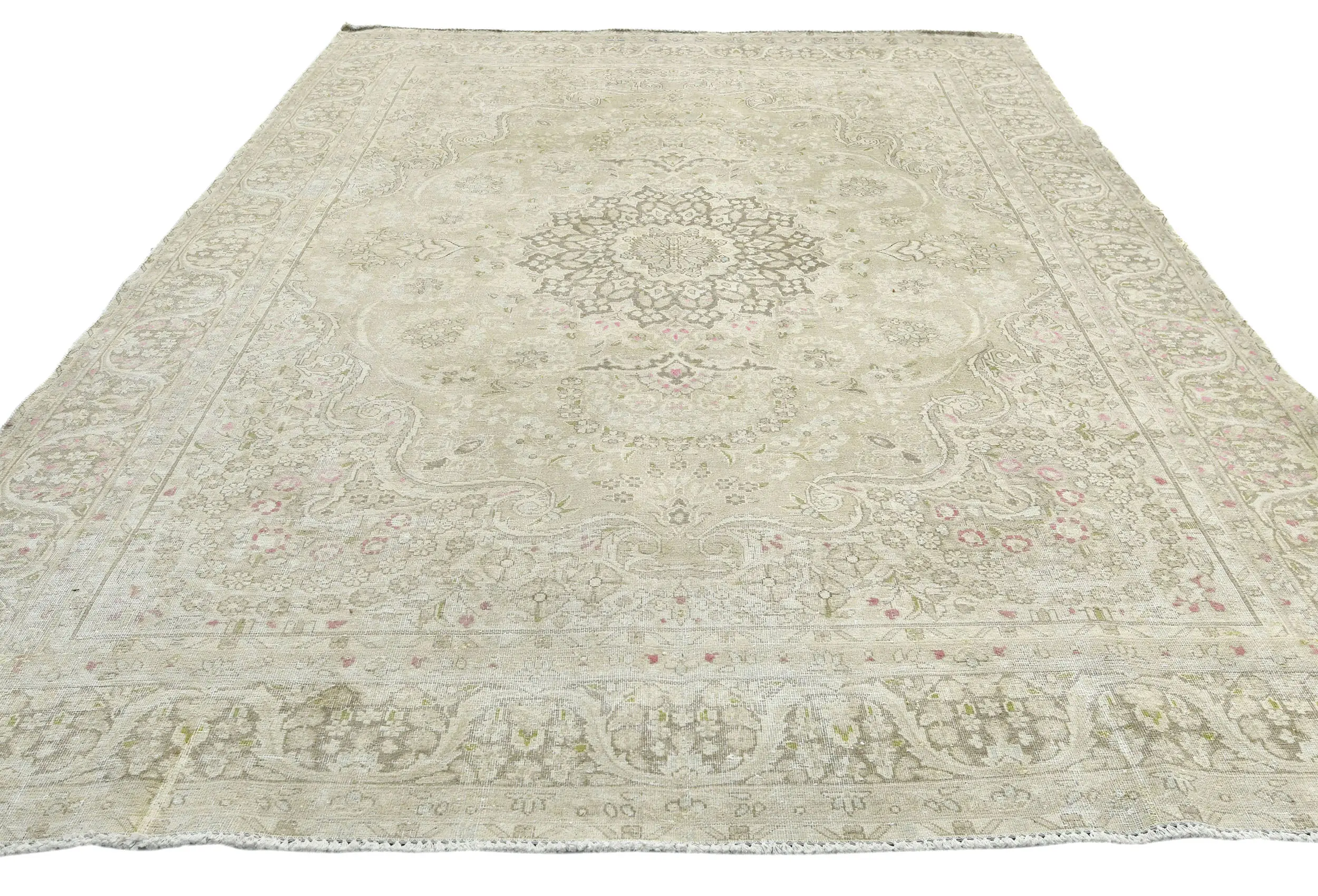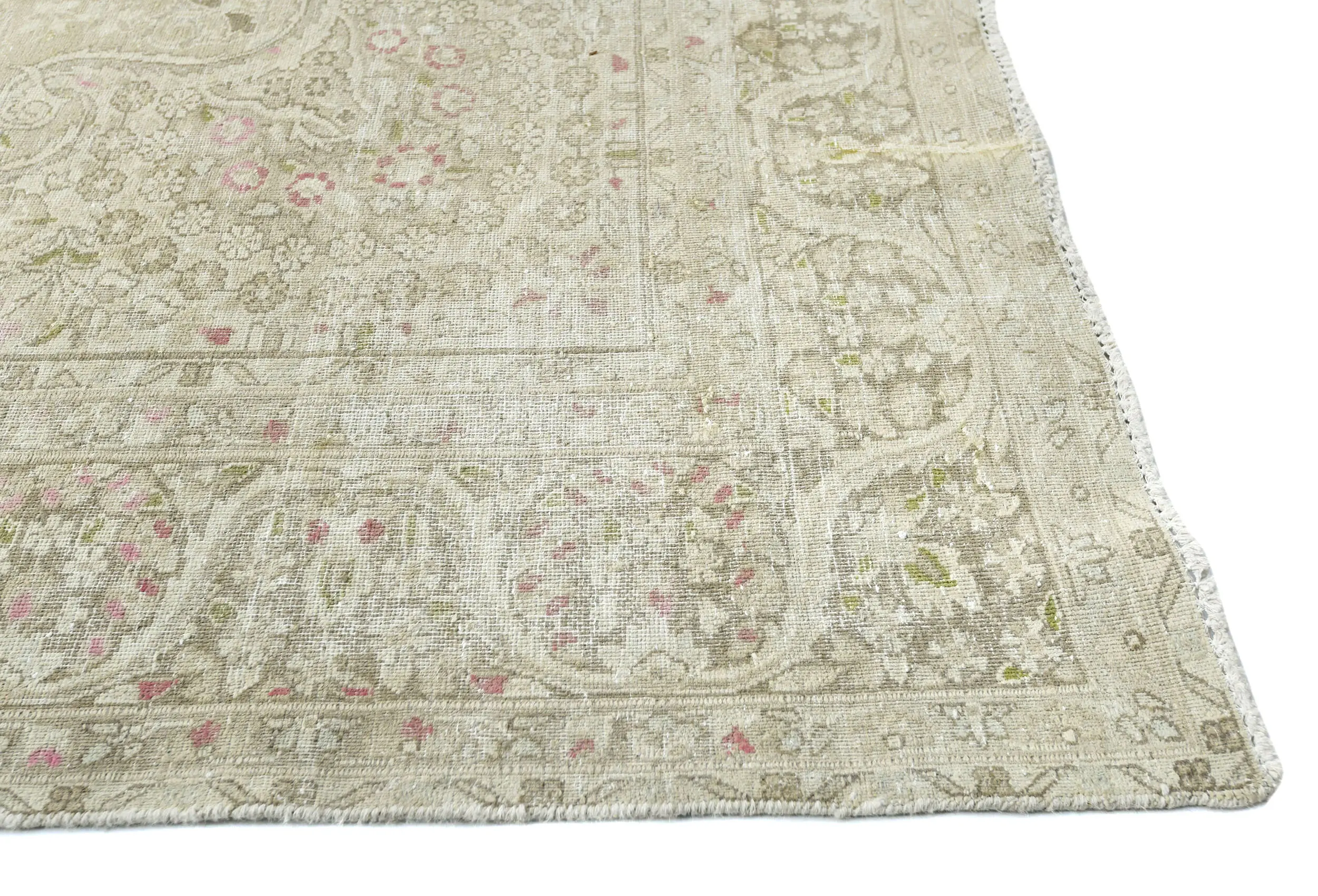 Muted Beige Floral 8X11 Distressed Vintage Oriental Rug