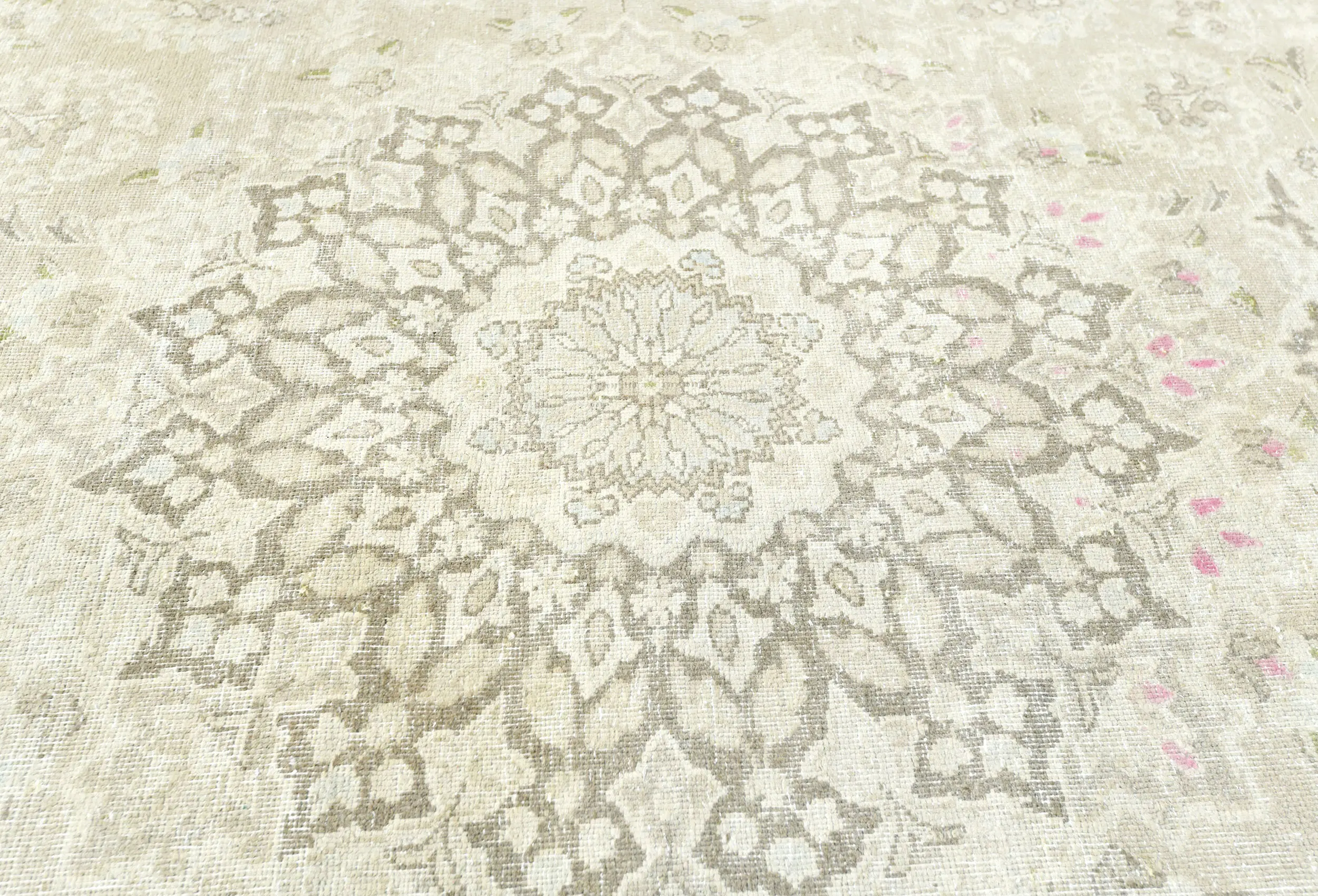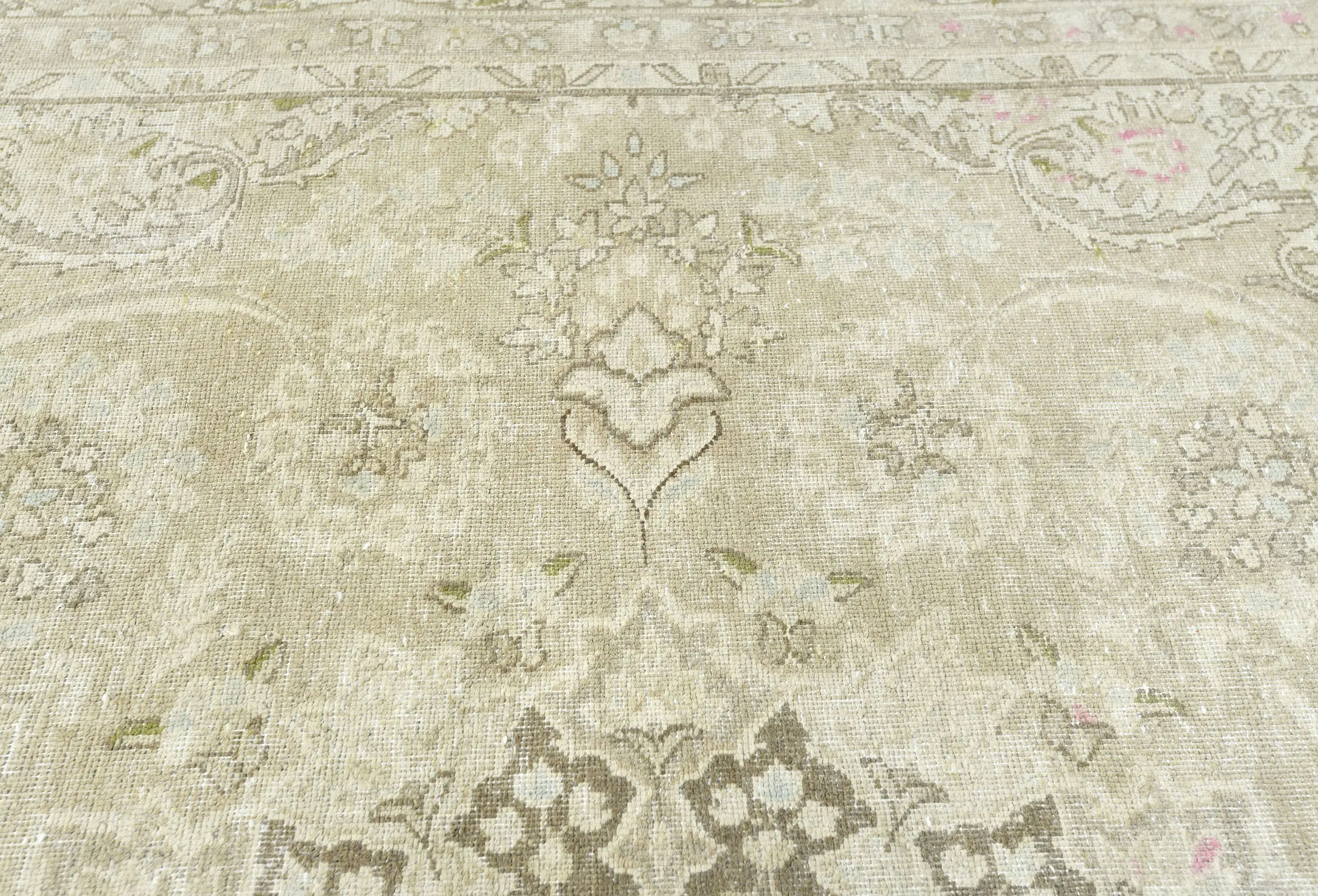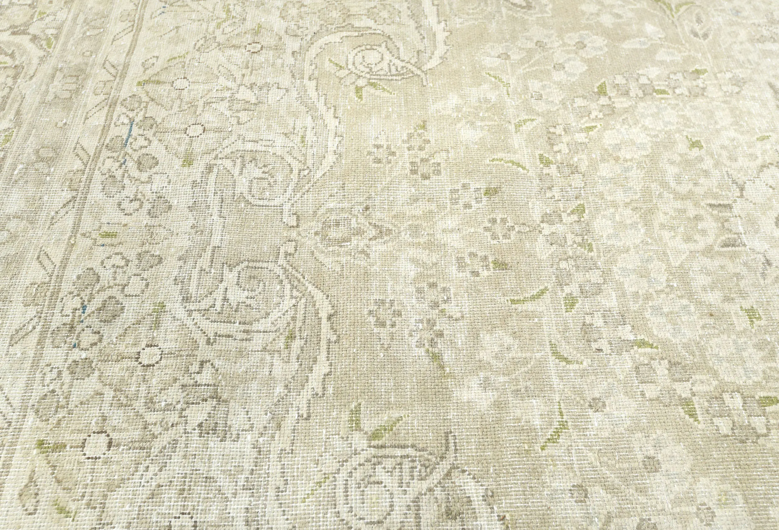 Muted Beige Floral 8X11 Distressed Vintage Oriental Rug