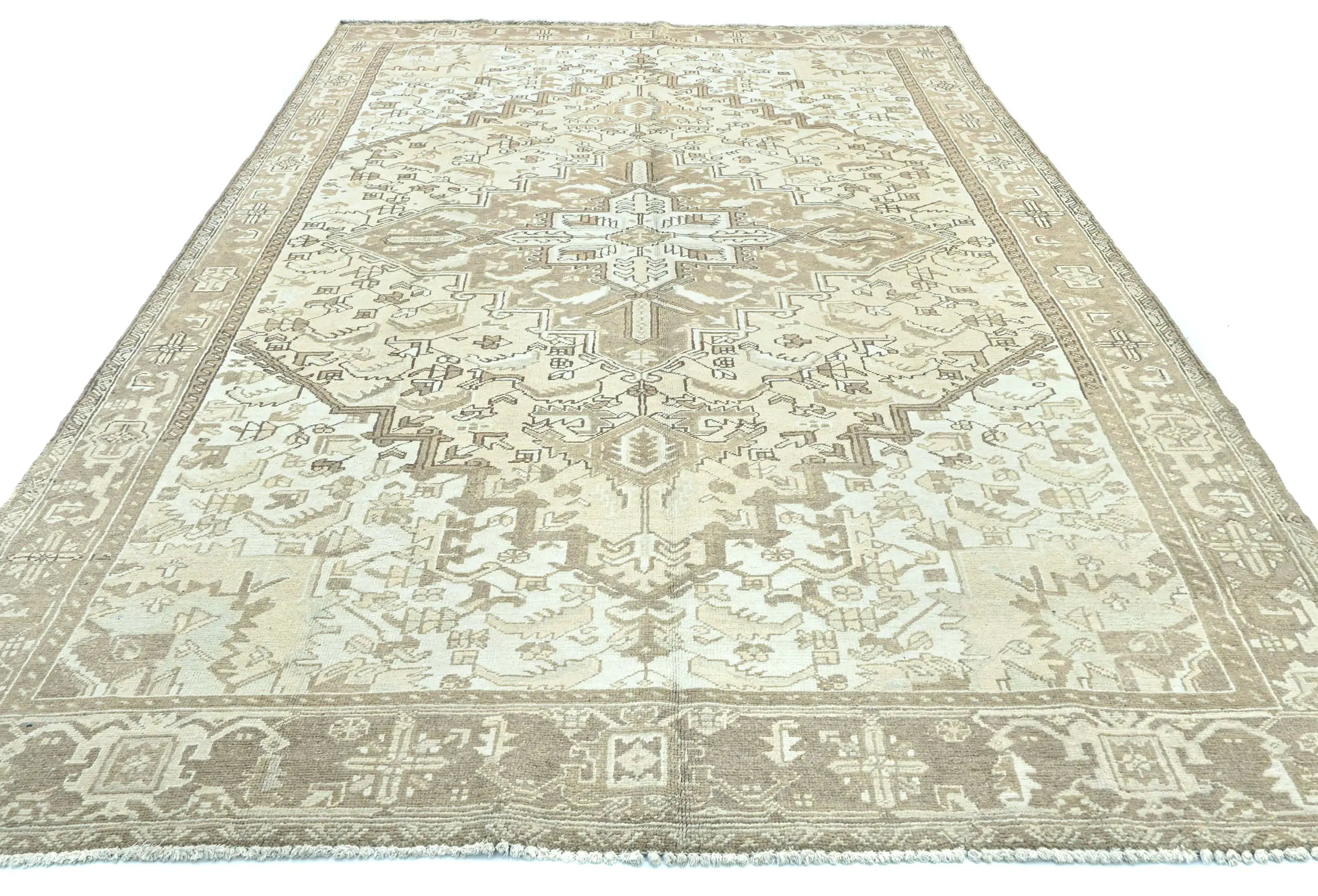 This authentic 8X11 beige vintage Oriental rug was finely knotted by the hands of weavers influenced by a variety of amazing artistic designs, to recreate the aged look of the exceptional piece with a richness of color and embellished background field. What set this tribal Oriental area rug from the others are the material and dye used (wool pile and cotton foundation), knot count, antique designs, fantastic grades, and its regional historical connection: it has deep roots, from the story of the people who produced it to the meaning of the symbols and colors displayed across its canvas that have been praised for centuries. This home décor carpet will be completely cozy and inviting that never will go out of style! Also, this Oriental rug would be among your most valuable treasures, it is a great investment that increase in value over time, and it will last a lifetime because was woven with high-quality, all-natural wool; it won’t rip, tear, or shed. Eco-friendly, opulent yet affordable; this Persian rug will give you an extra pop of character to help define your home environment with luxury and warmth that will capture the eyes and attention of your audience (homeowners, designers, decorators, family and friends).