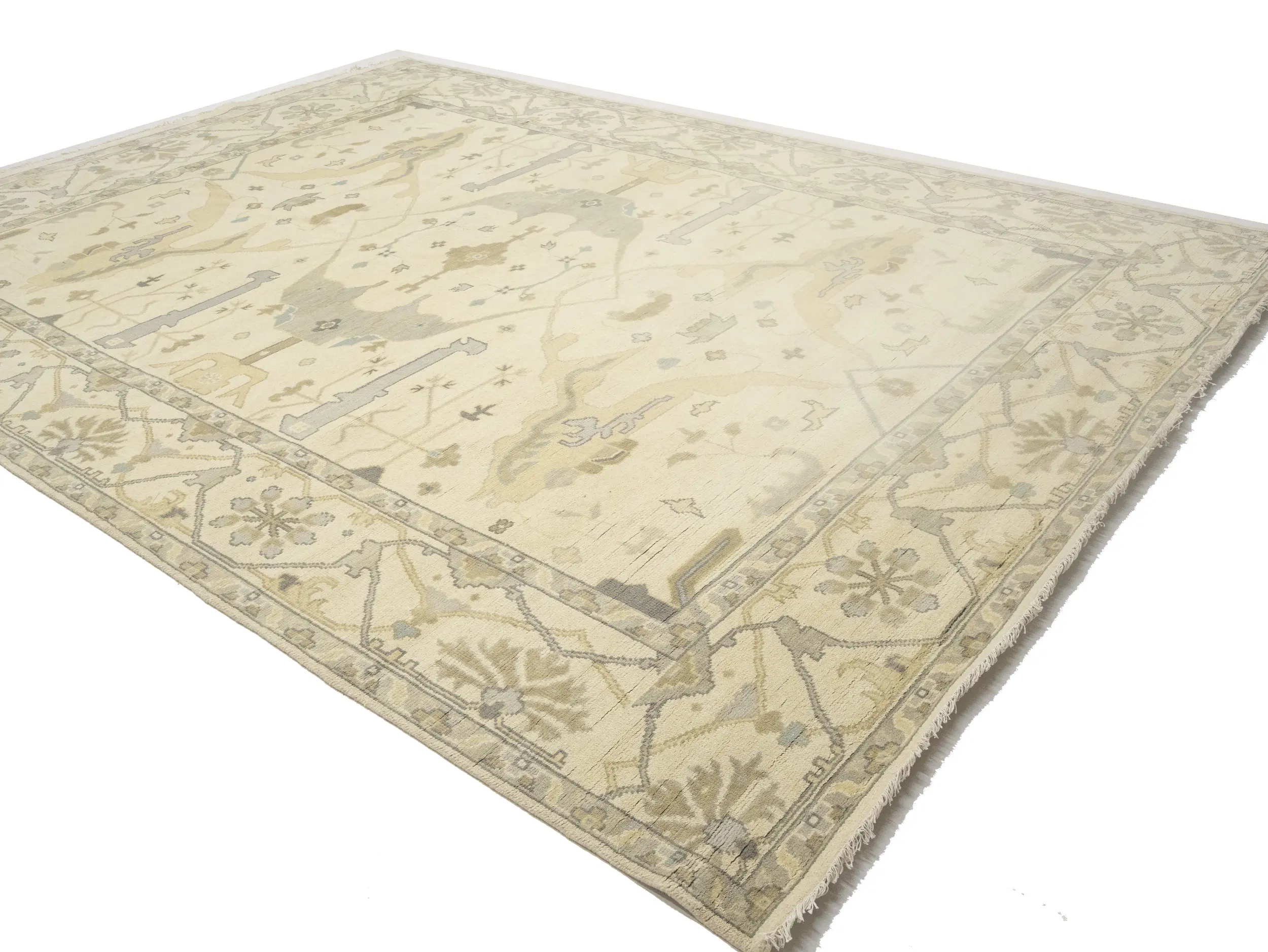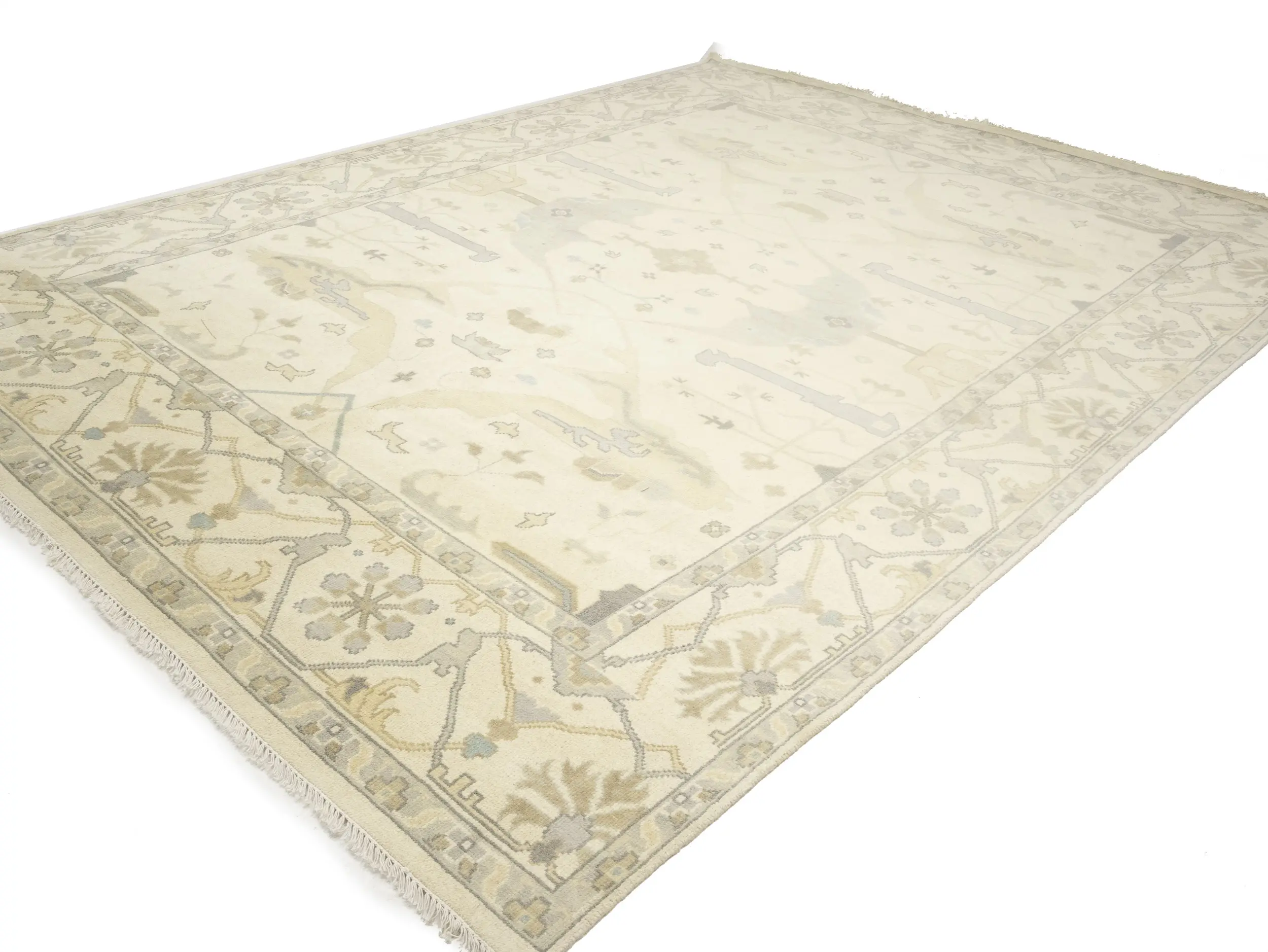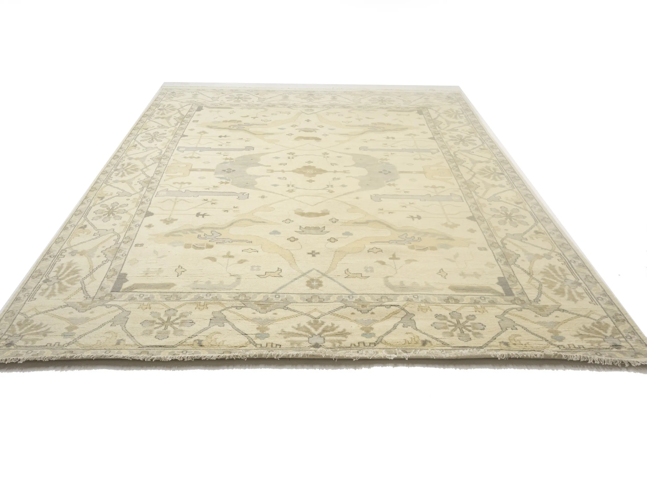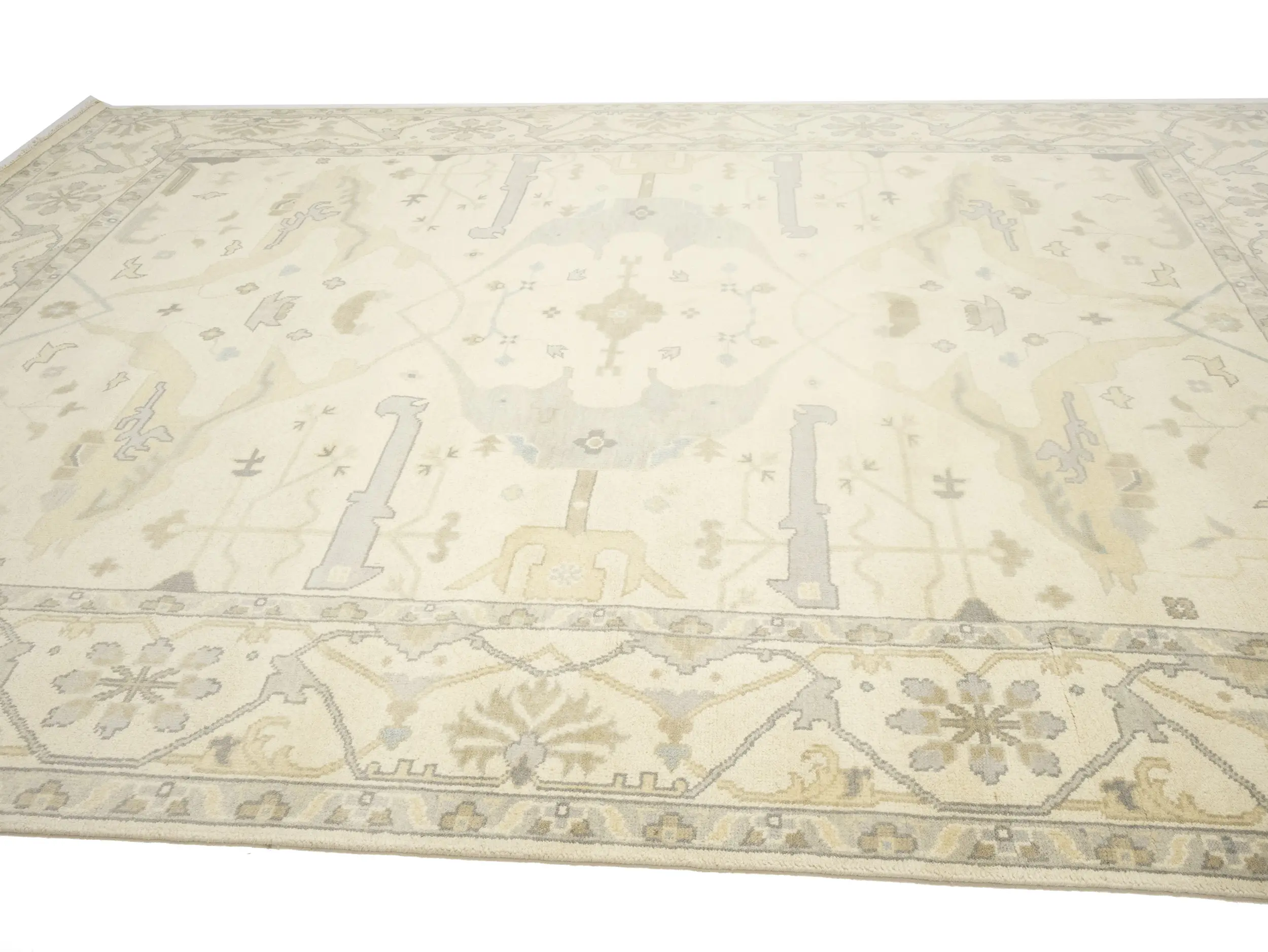 Muted Beige Floral Transitional 10X14 Oushak Oriental Rug