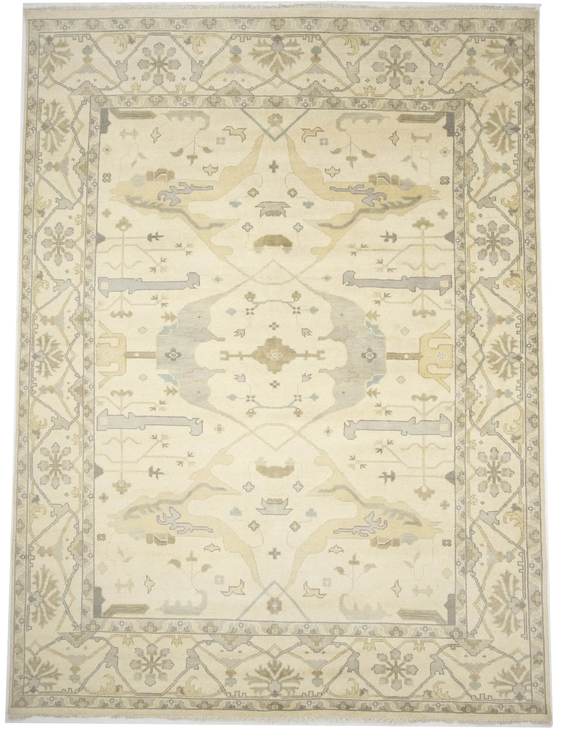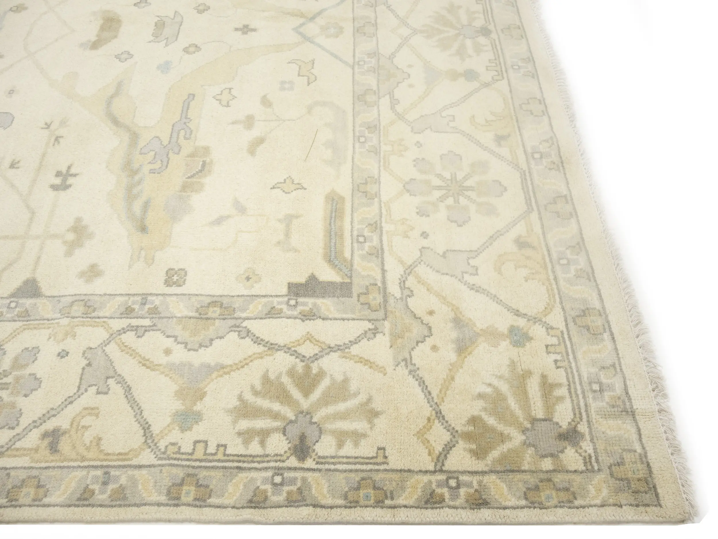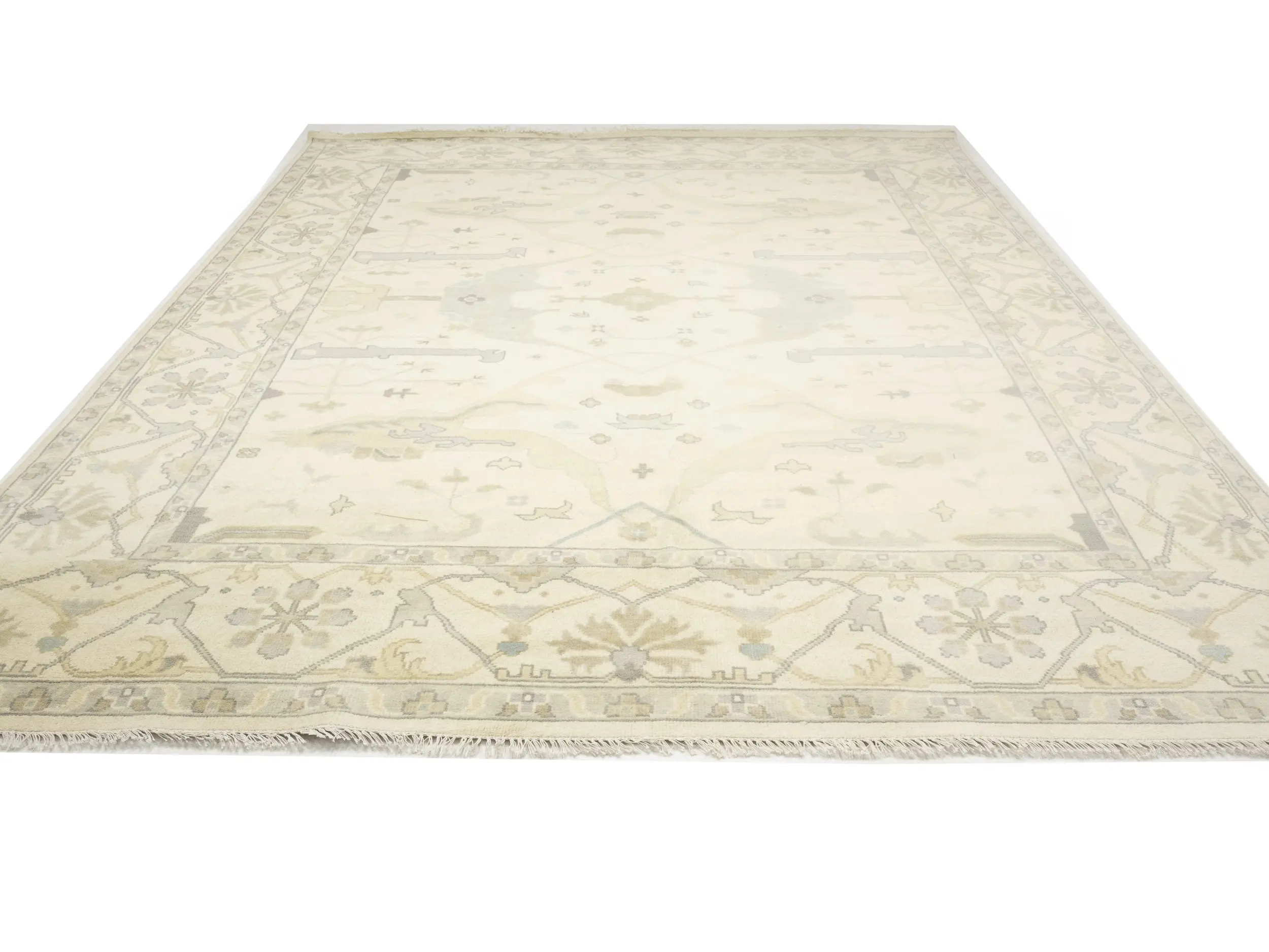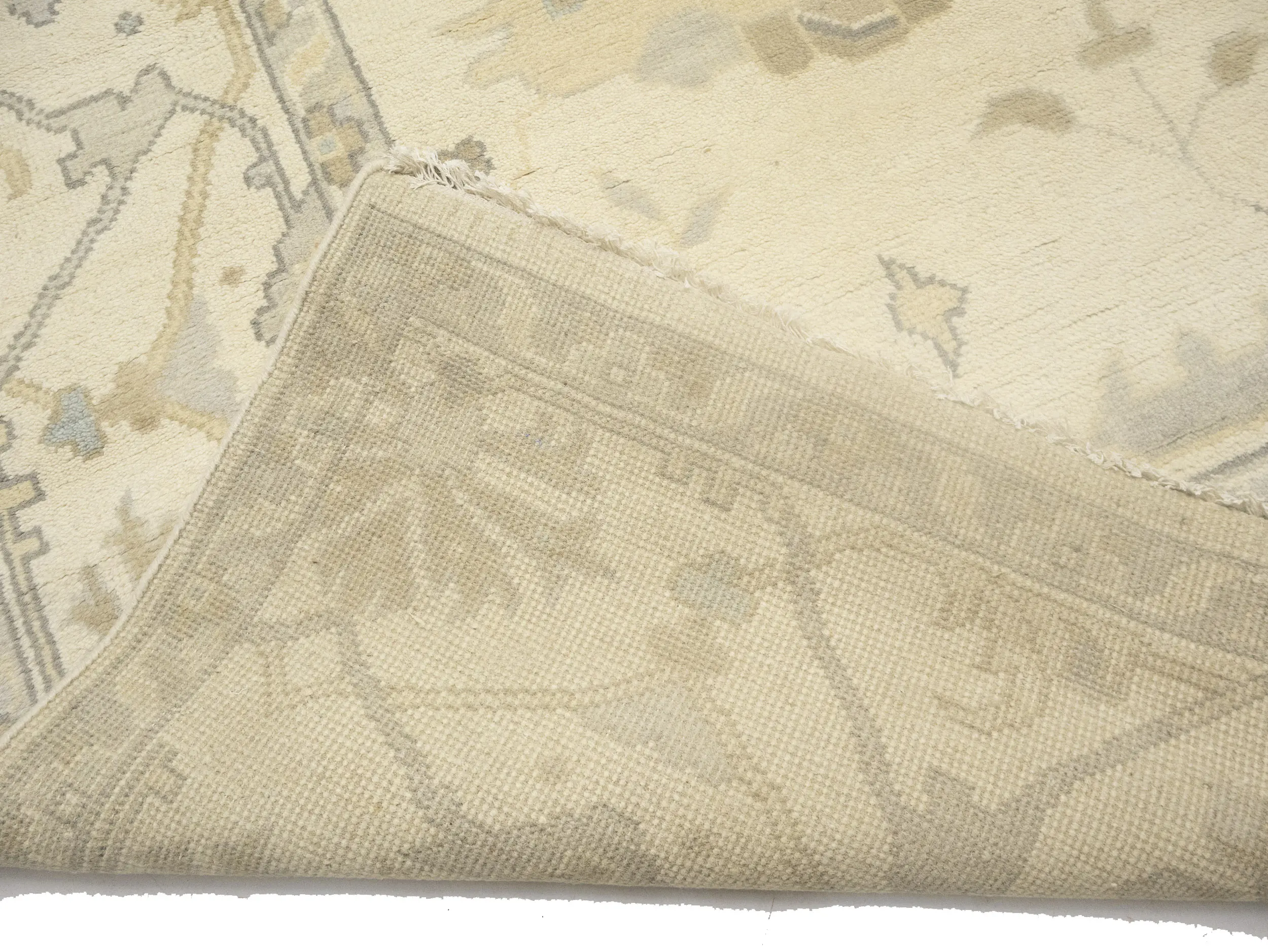 Muted Beige Floral Transitional 10X14 Oushak Oriental Rug