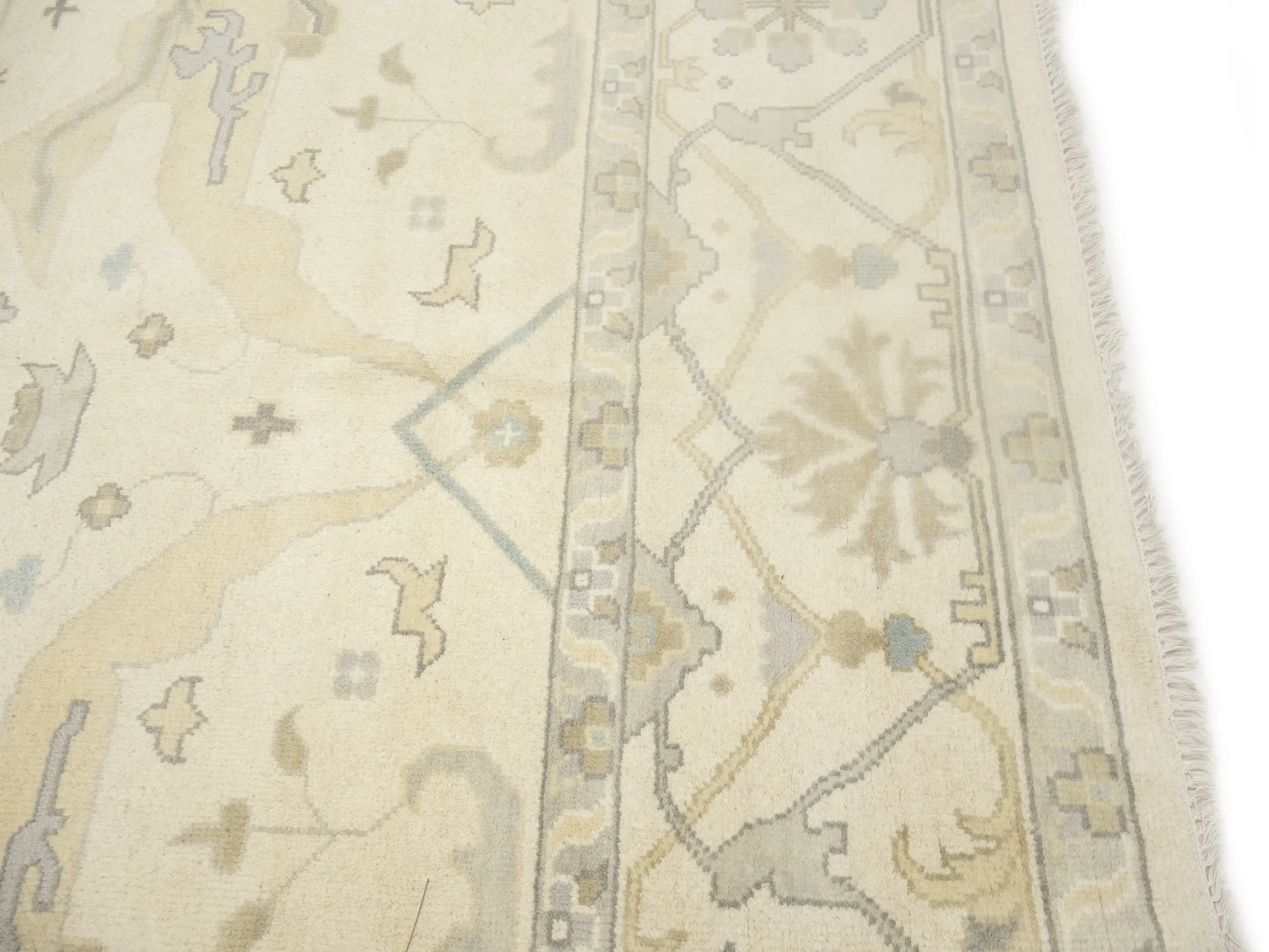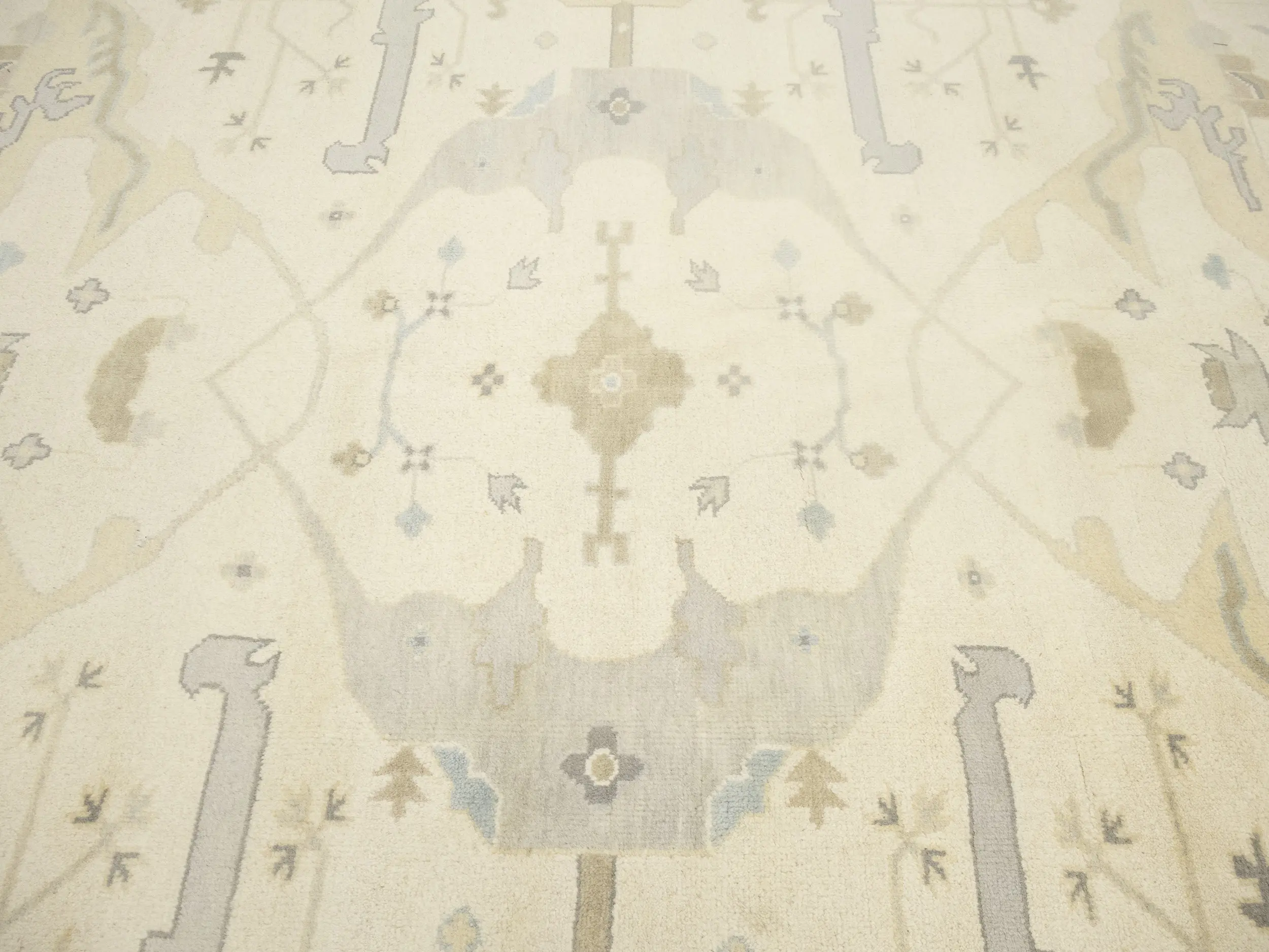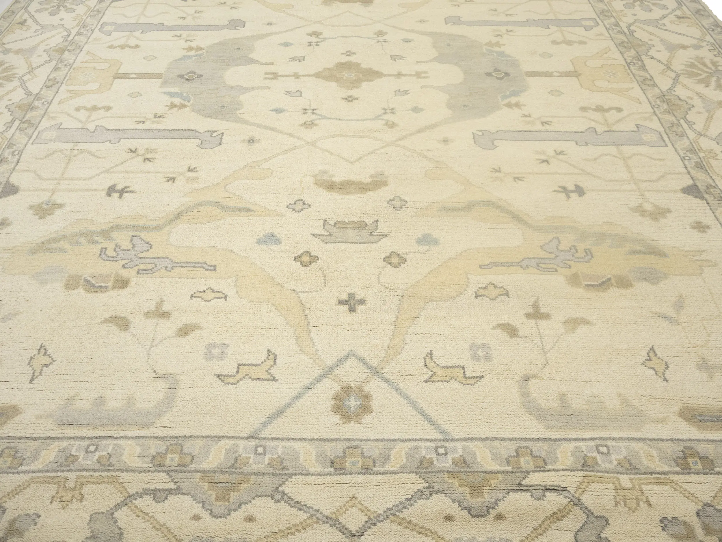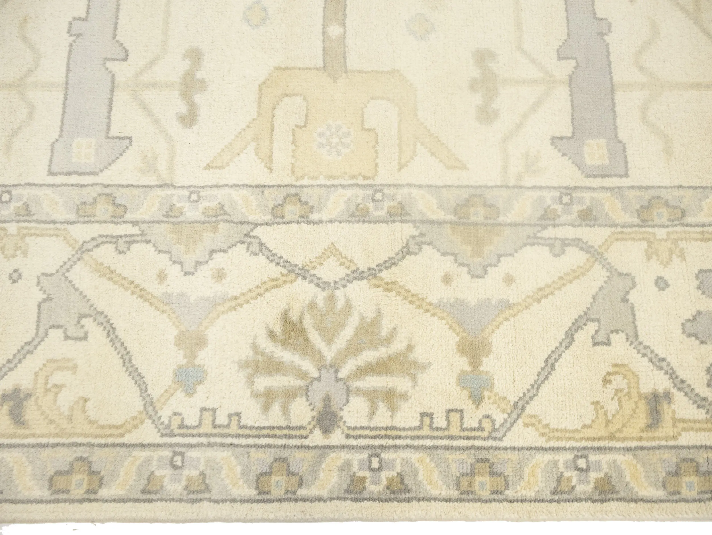 Muted Beige Floral Transitional 10X14 Oushak Oriental Rug