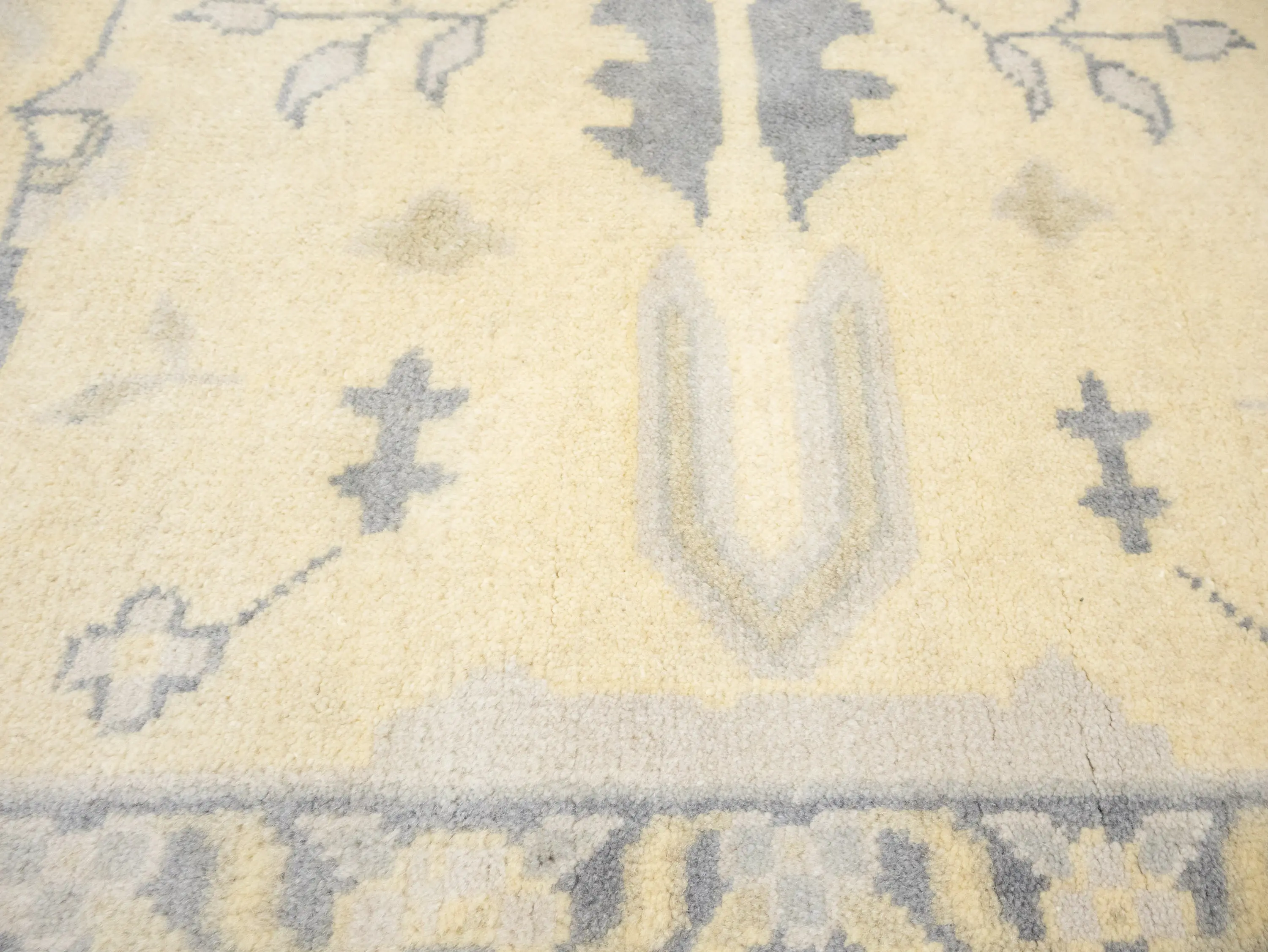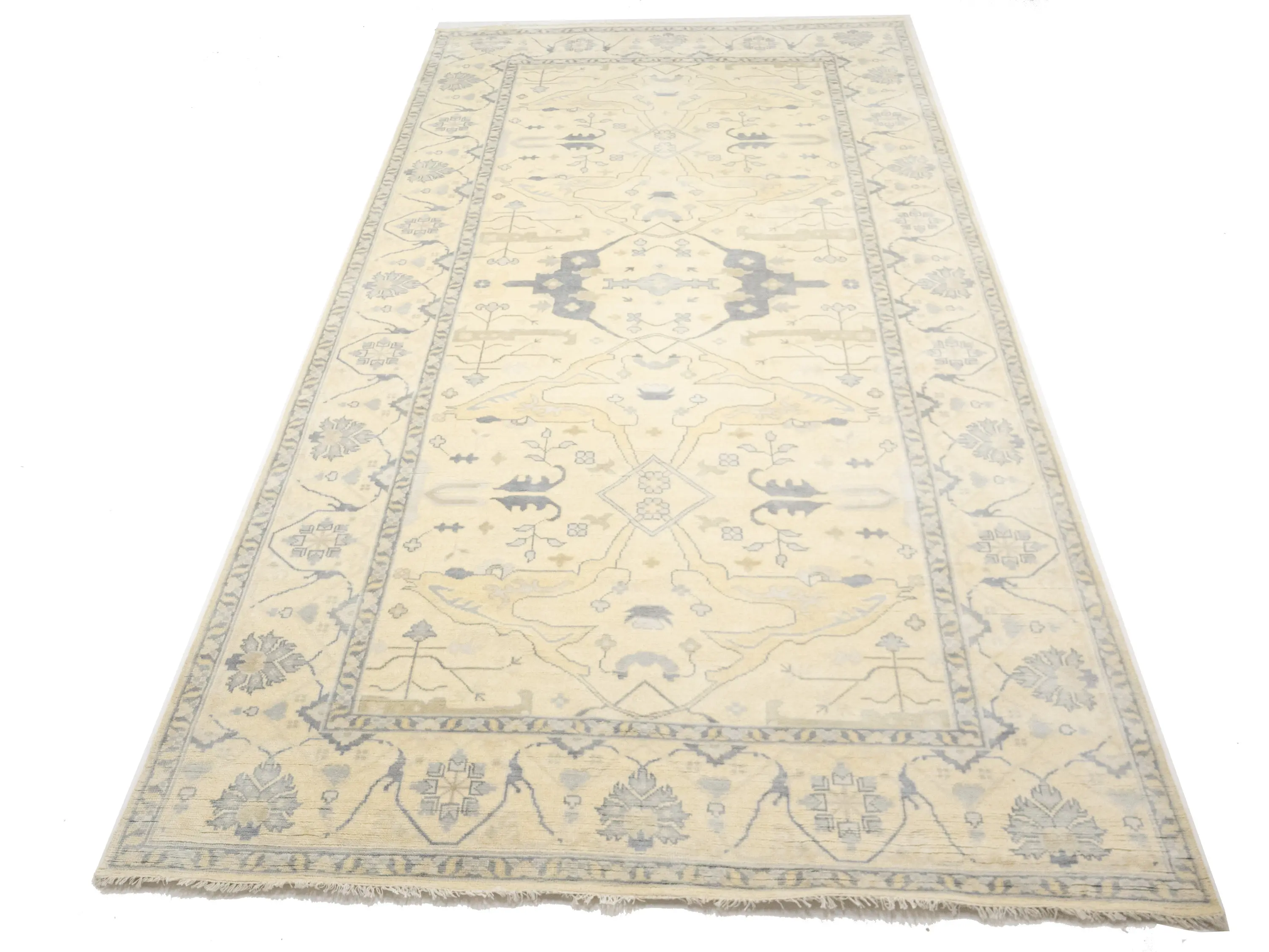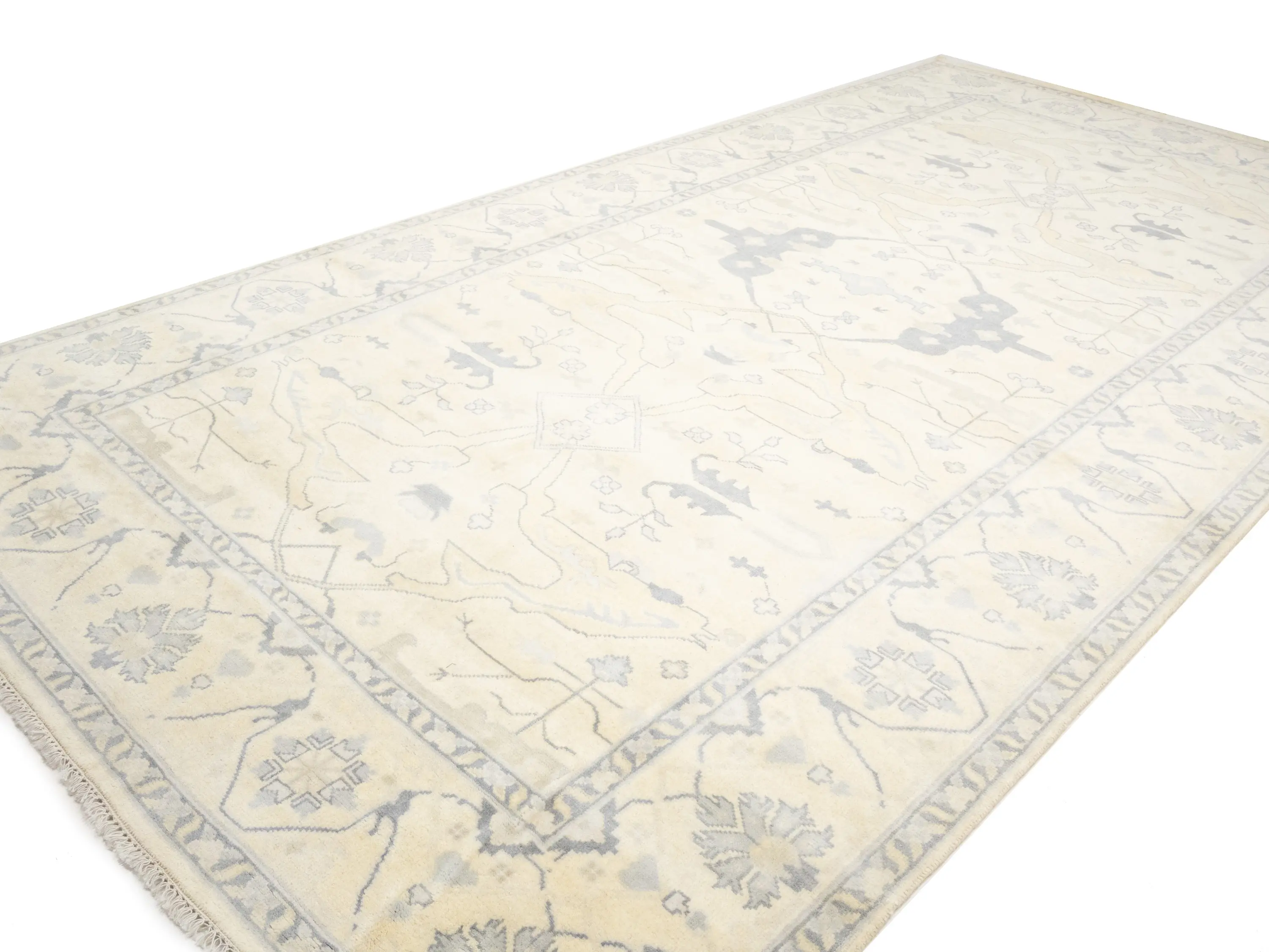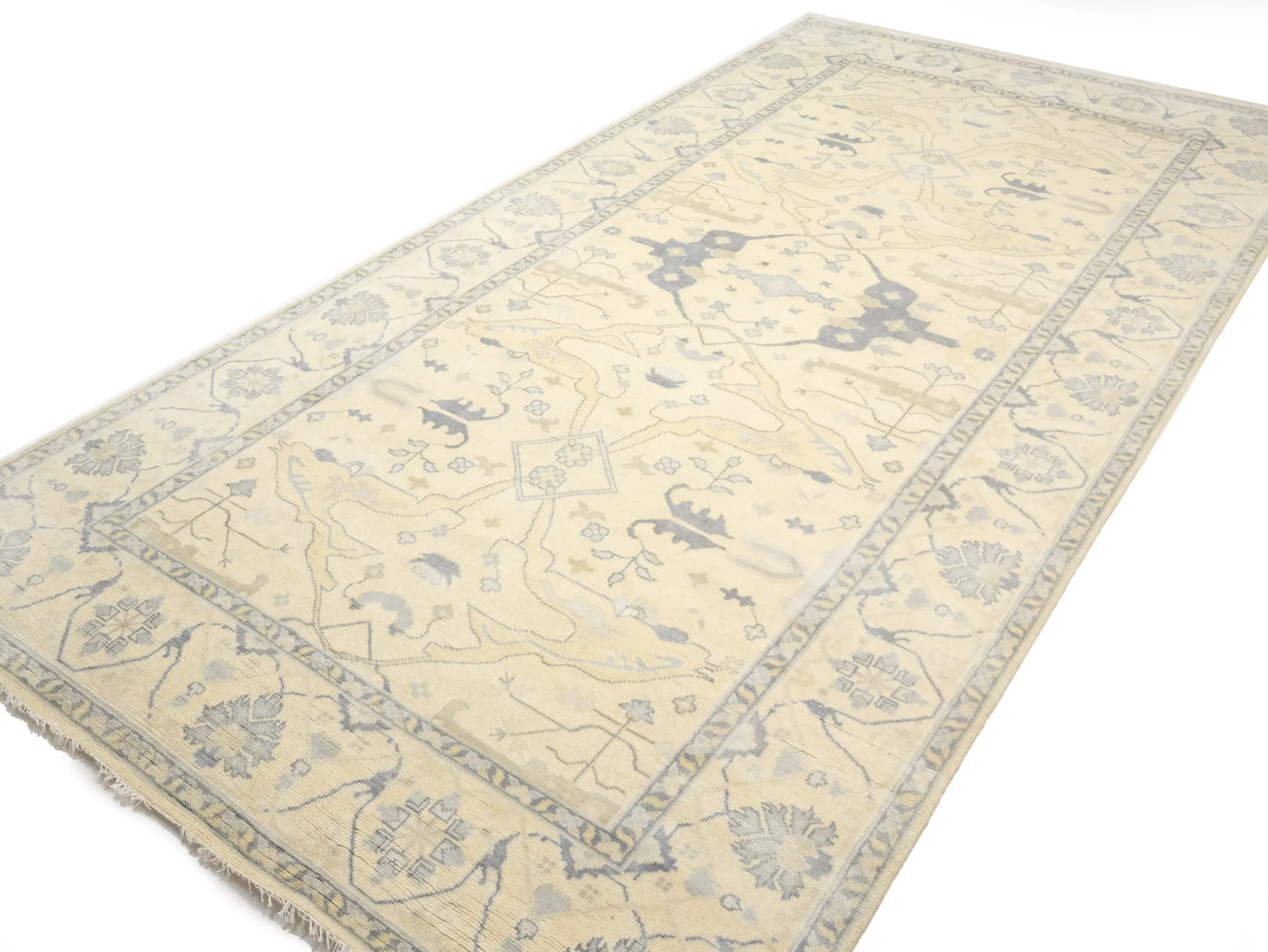 Muted Beige Floral Transitional 9X18 Oushak Oriental Rug