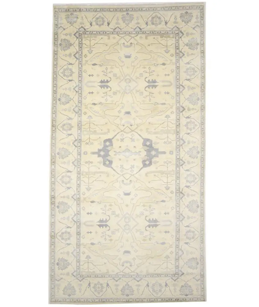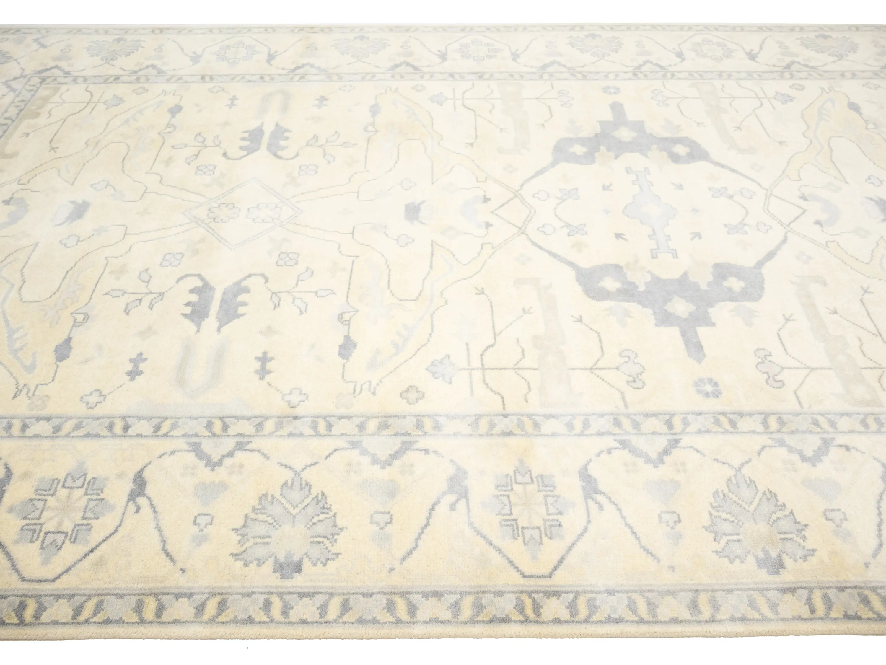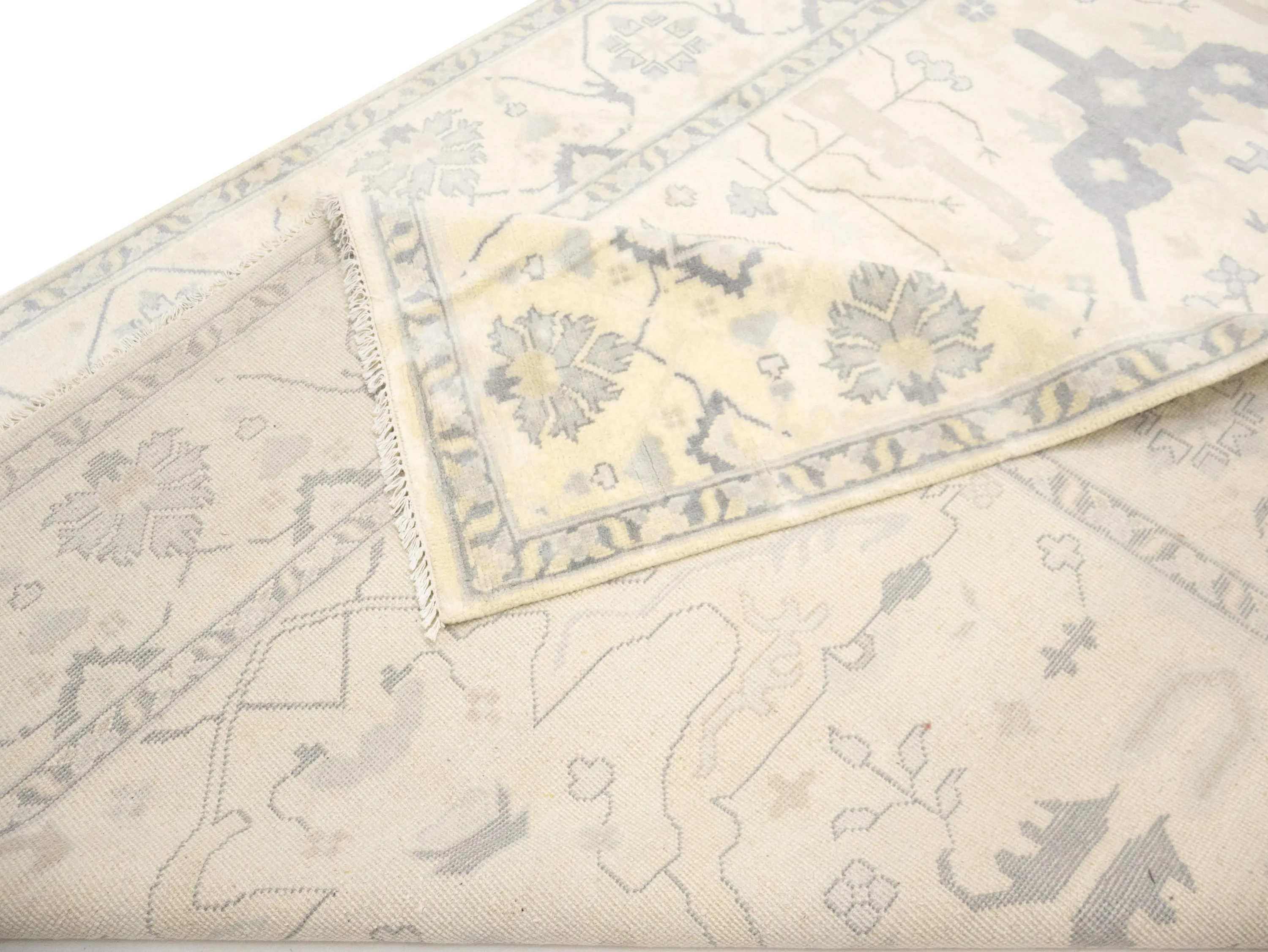 Muted Beige Floral Transitional 9X18 Oushak Oriental Rug