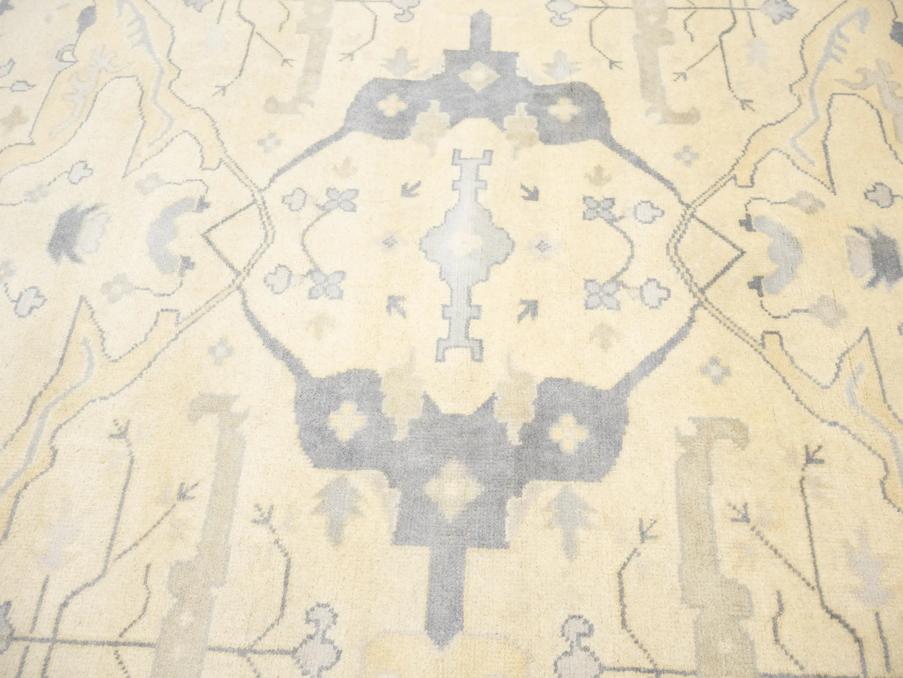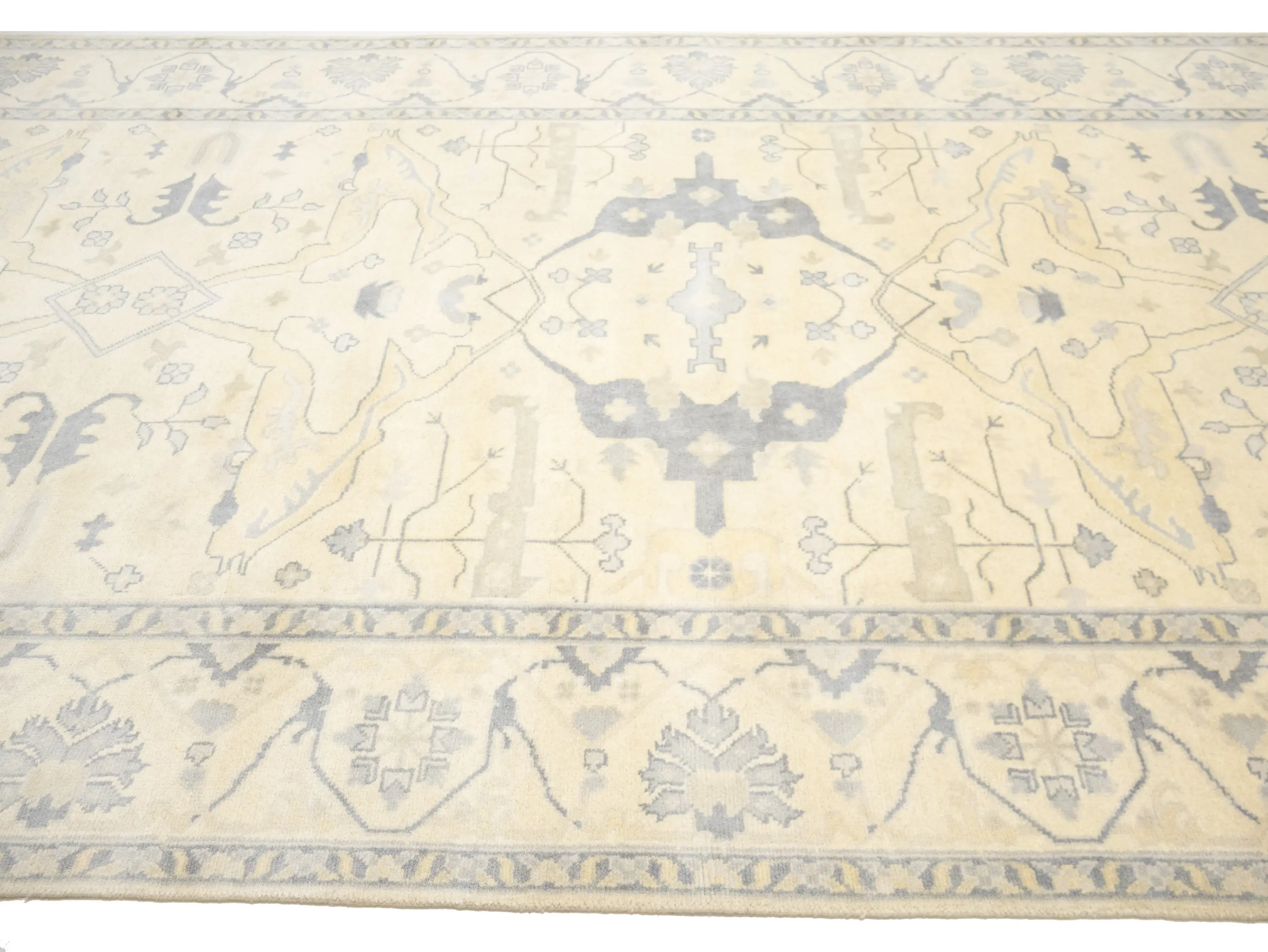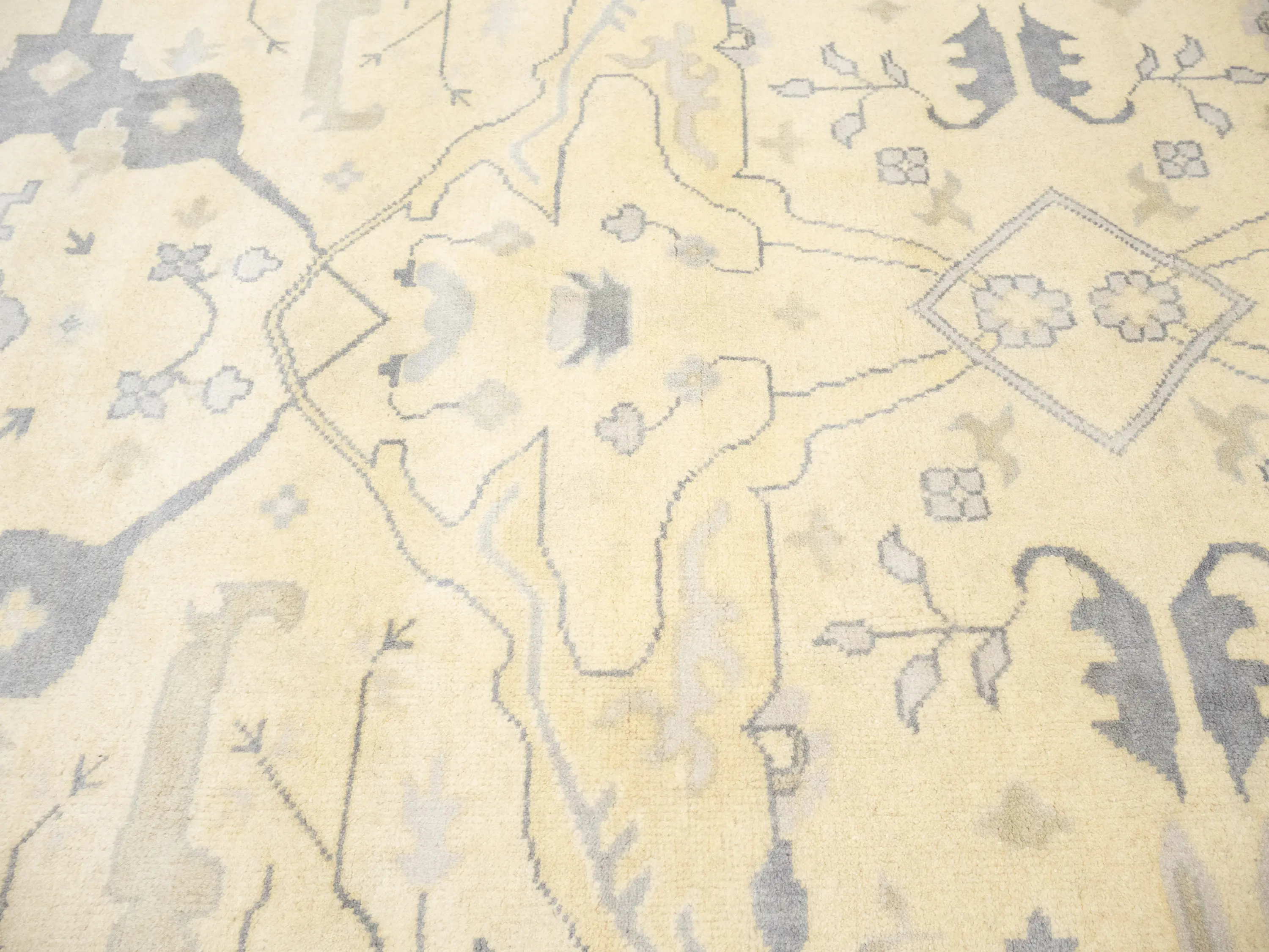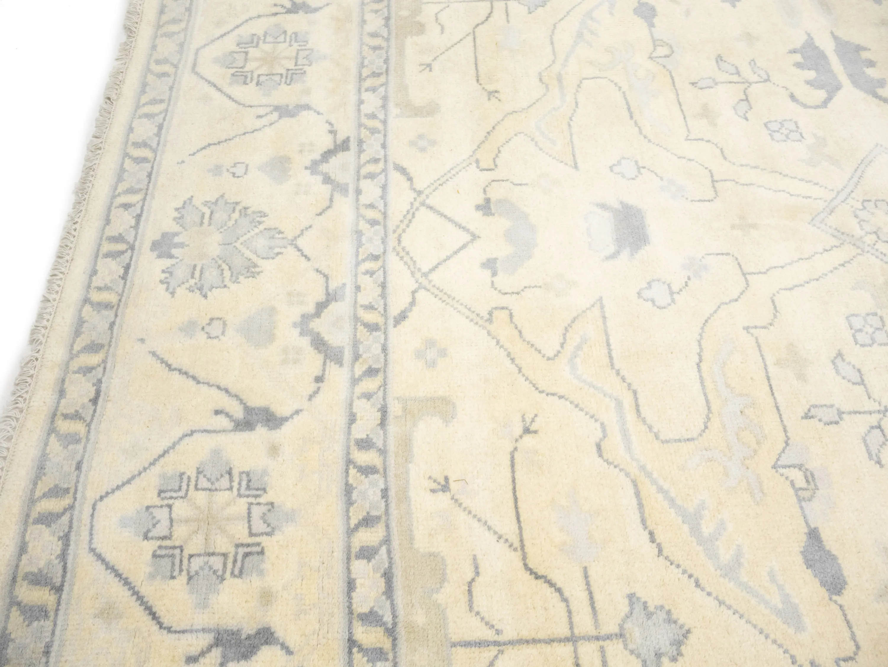 Muted Beige Floral Transitional 9X18 Oushak Oriental Rug