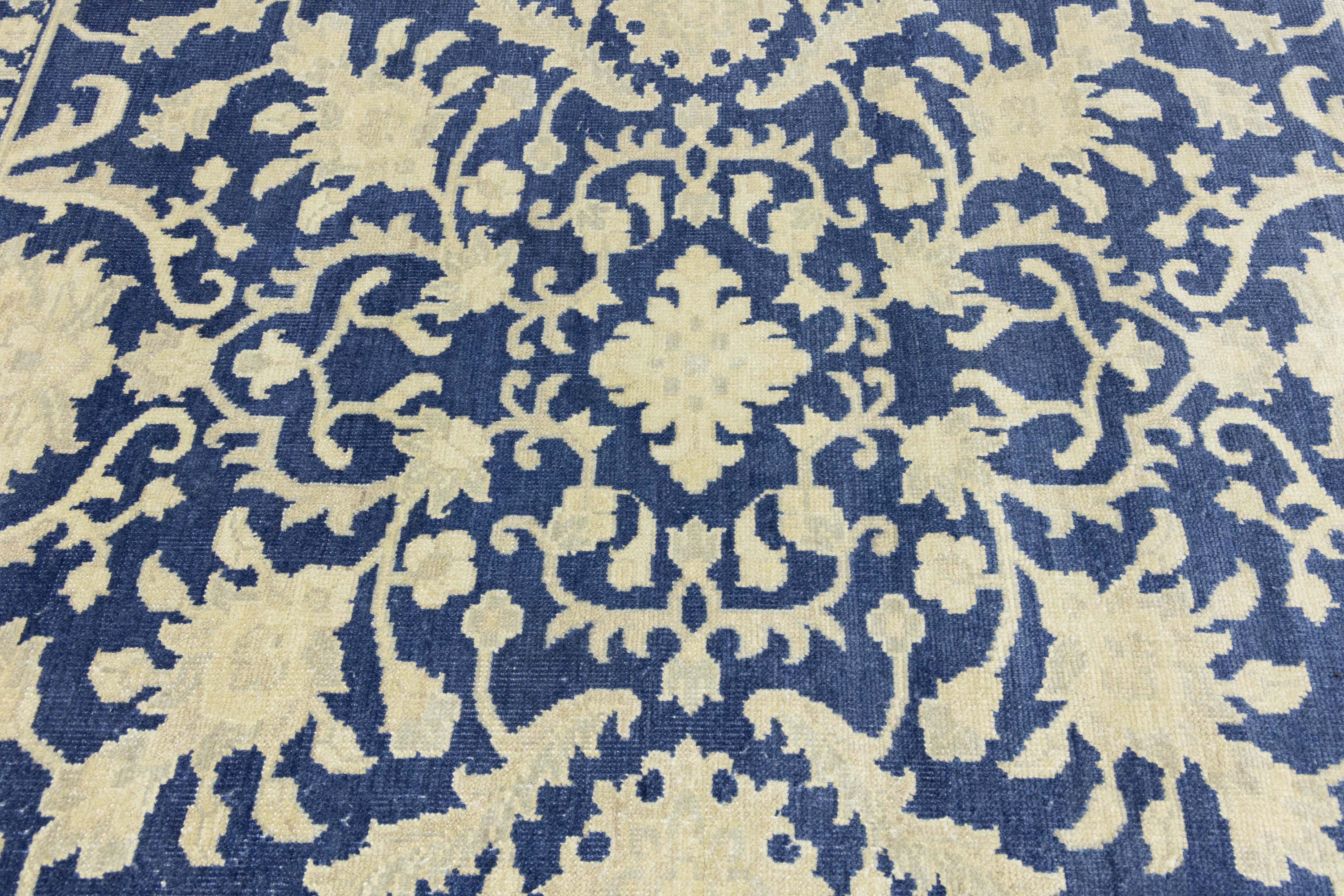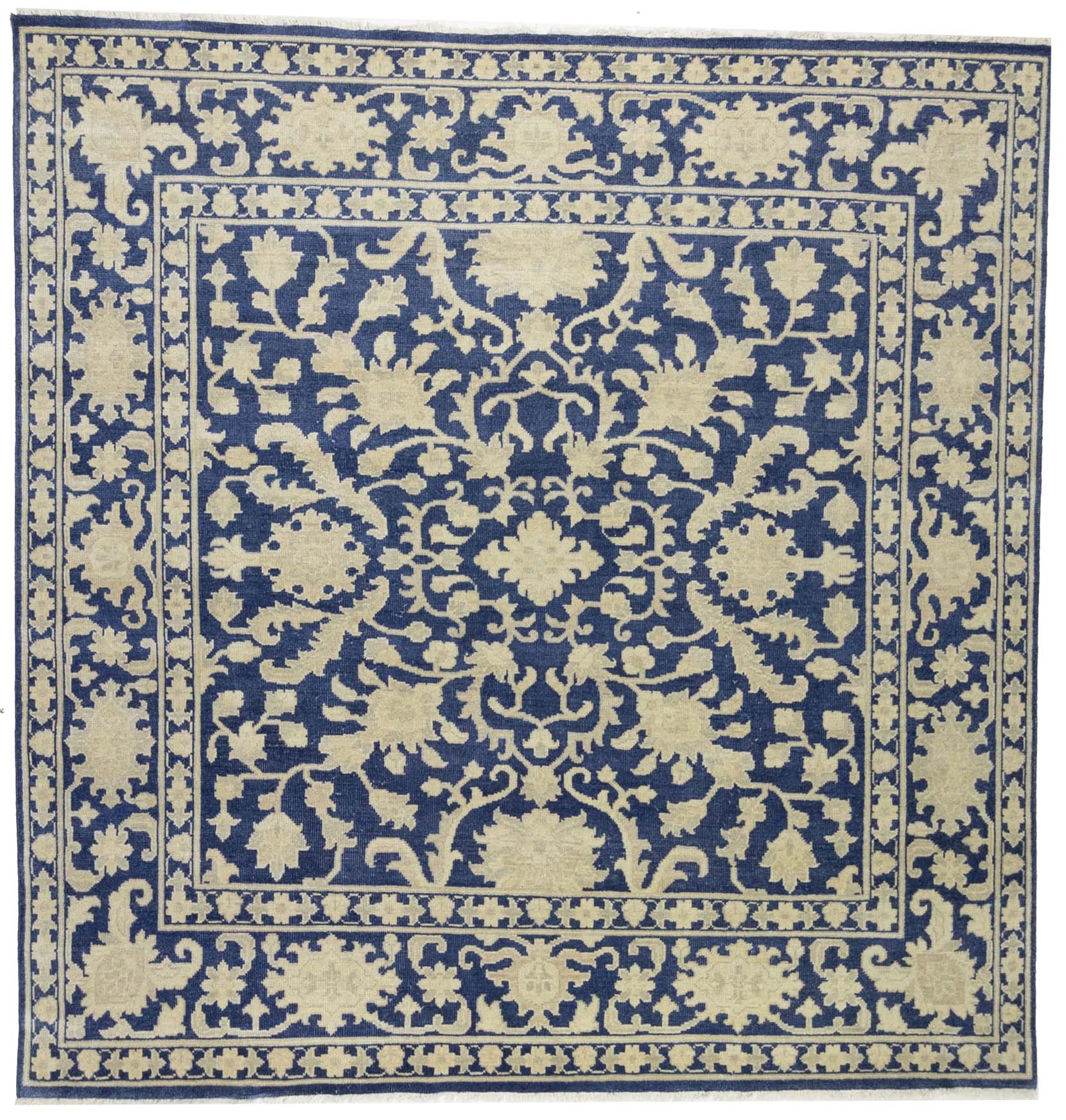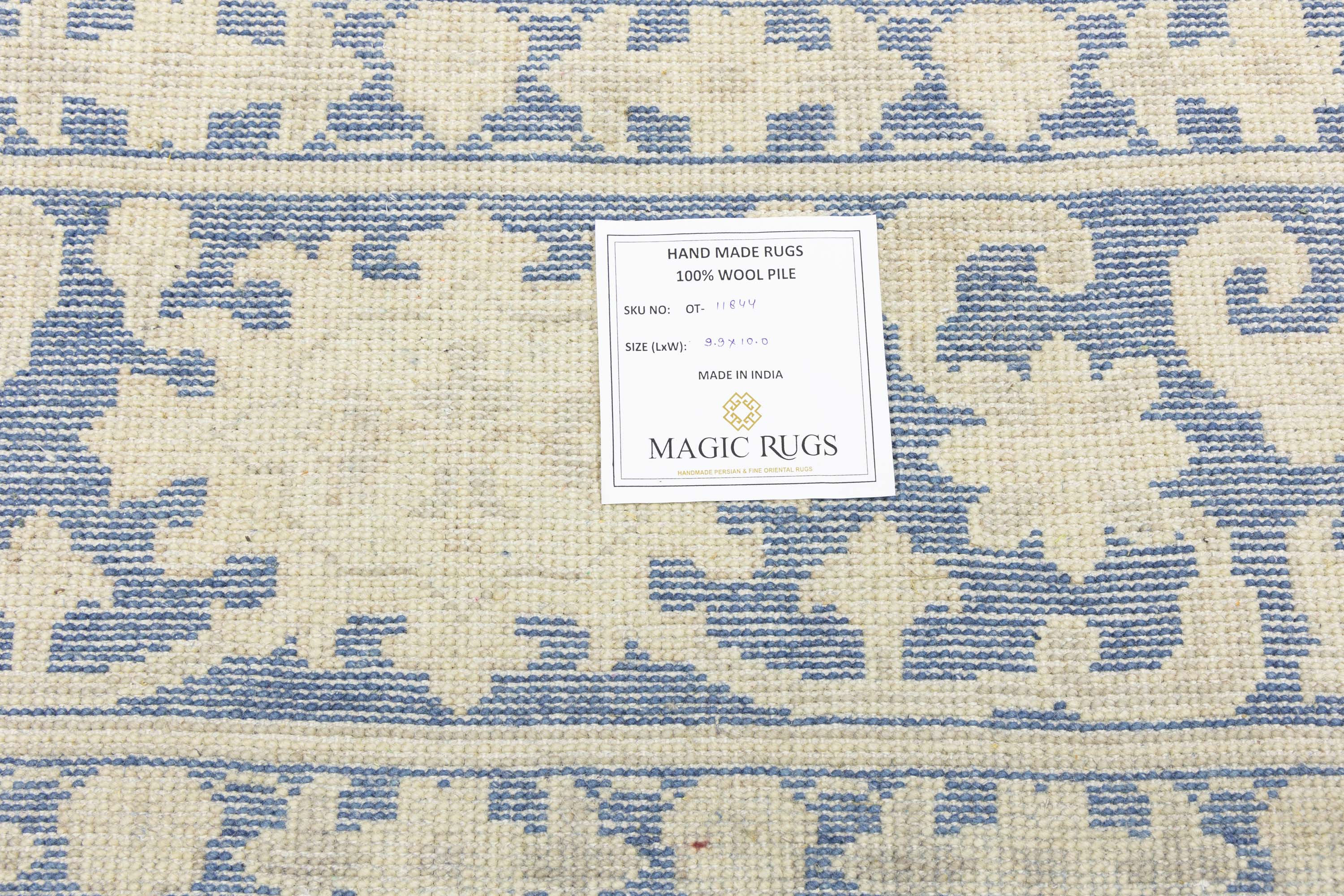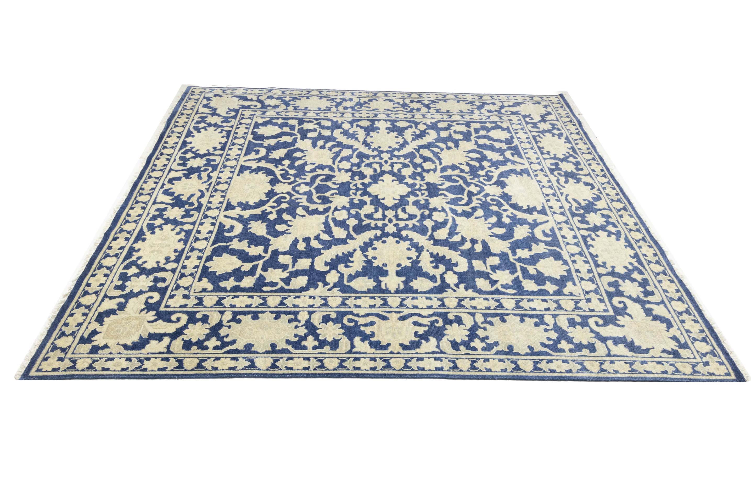 This genuine 10x10 Blue new Oriental rug was made by the hands of gifted weavers inspired by a variety of spectacular artistic designs, to recreate the aged look of the original piece with a richness of color and ornately patterned background field. What set this vintage style Oriental area rug from the others are the material and dye used (wool pile and cotton foundation), knot count, ancient designs, fantastic grades, and its regional historical connection: it has deep roots, from the story of the people who produced it to the meaning of the symbols and colors displayed across its canvas that have been praised for centuries. This Indian home décor carpet will be completely cozy and inviting that never will go out of style! Also, this Oriental rug would be among your most valuable treasures, it is a great investment that accrues value over time, and it will last for generations because was woven with high-quality, all-natural wool. Environmentally friendly, opulent yet affordable; this rug will give you a thorough amount of character to help define your living space with elegance and warmth that will capture the eyes and attention of your audience (homeowners, designers, decorators, family and friends). OT-11844