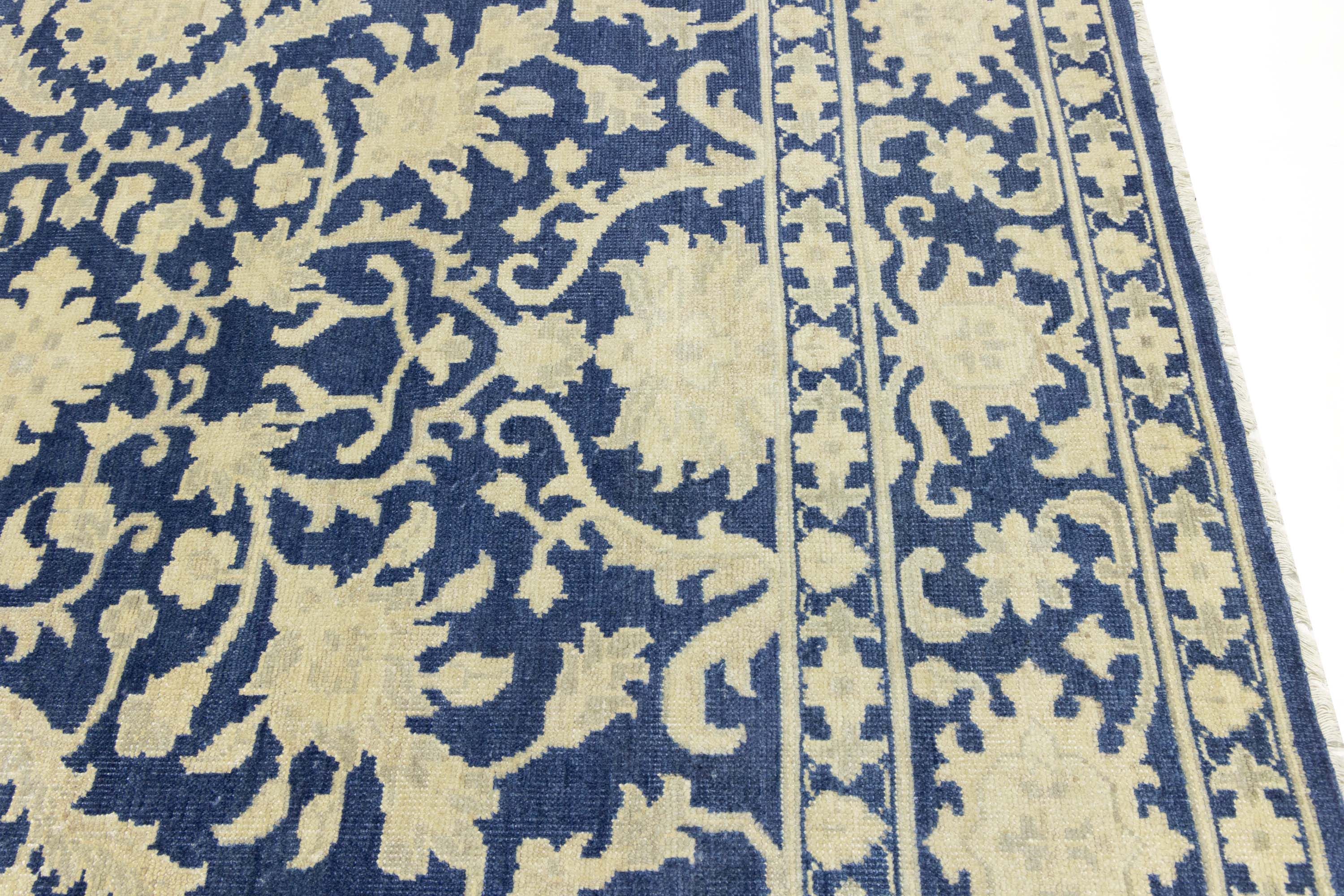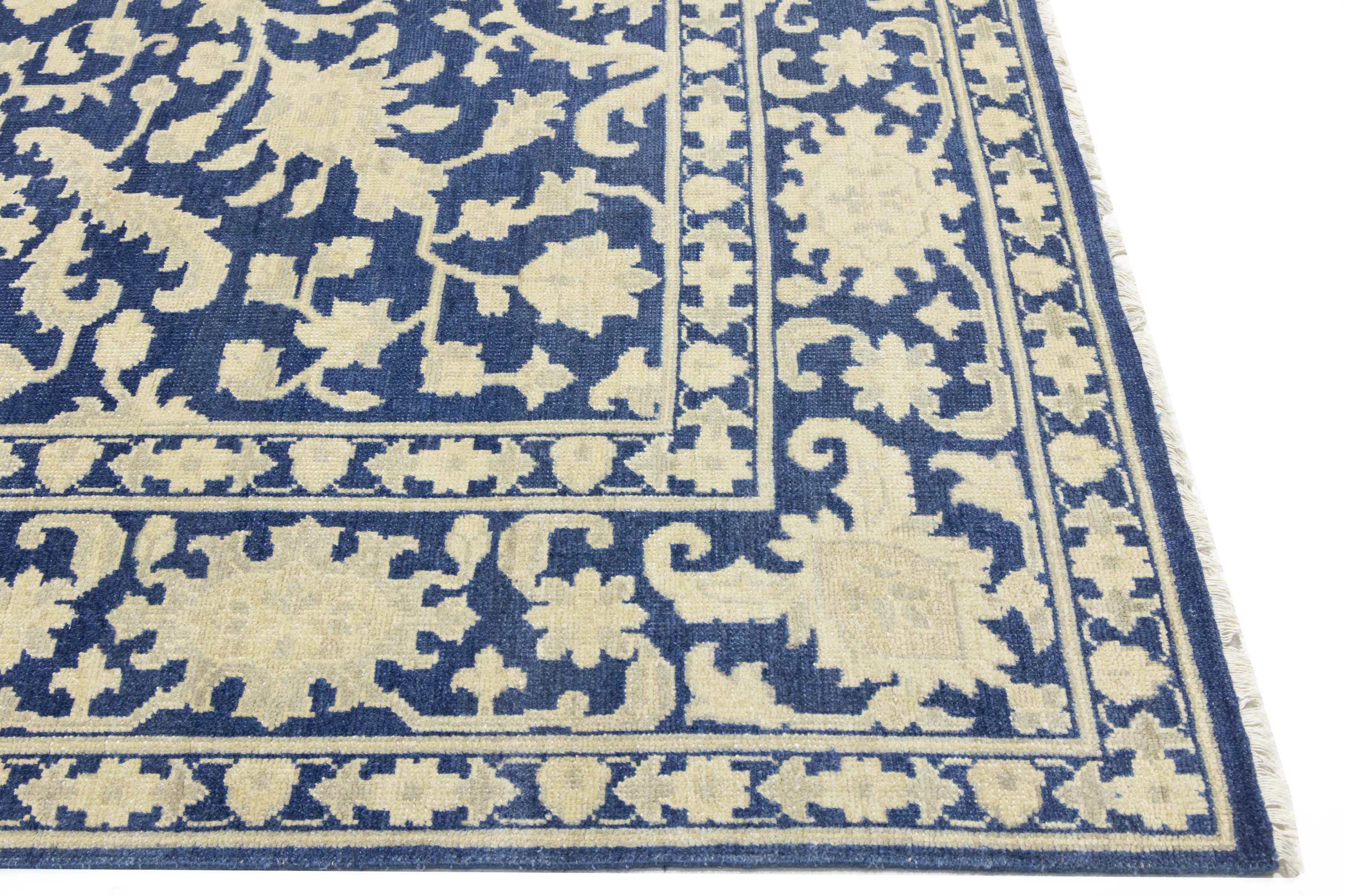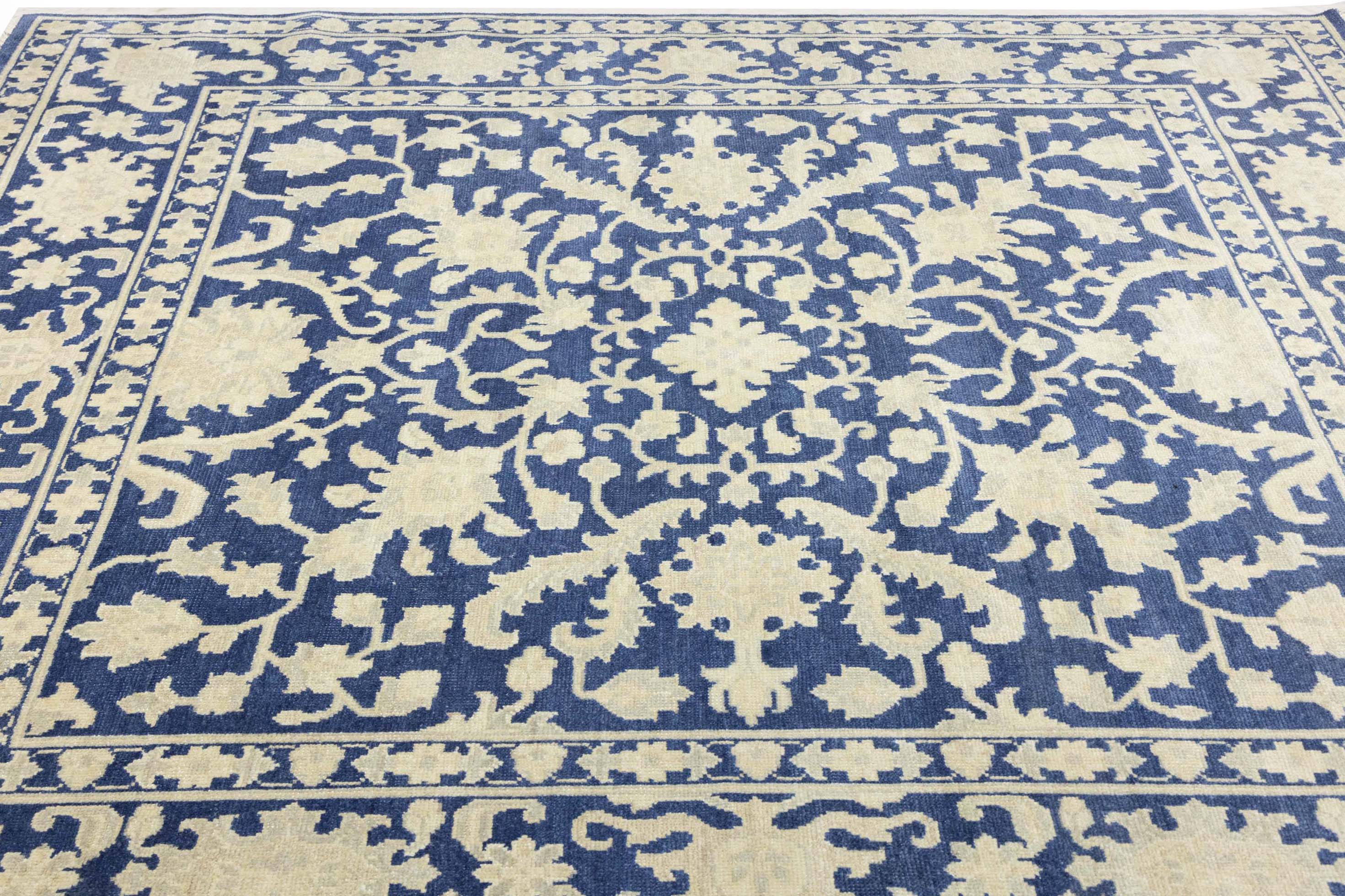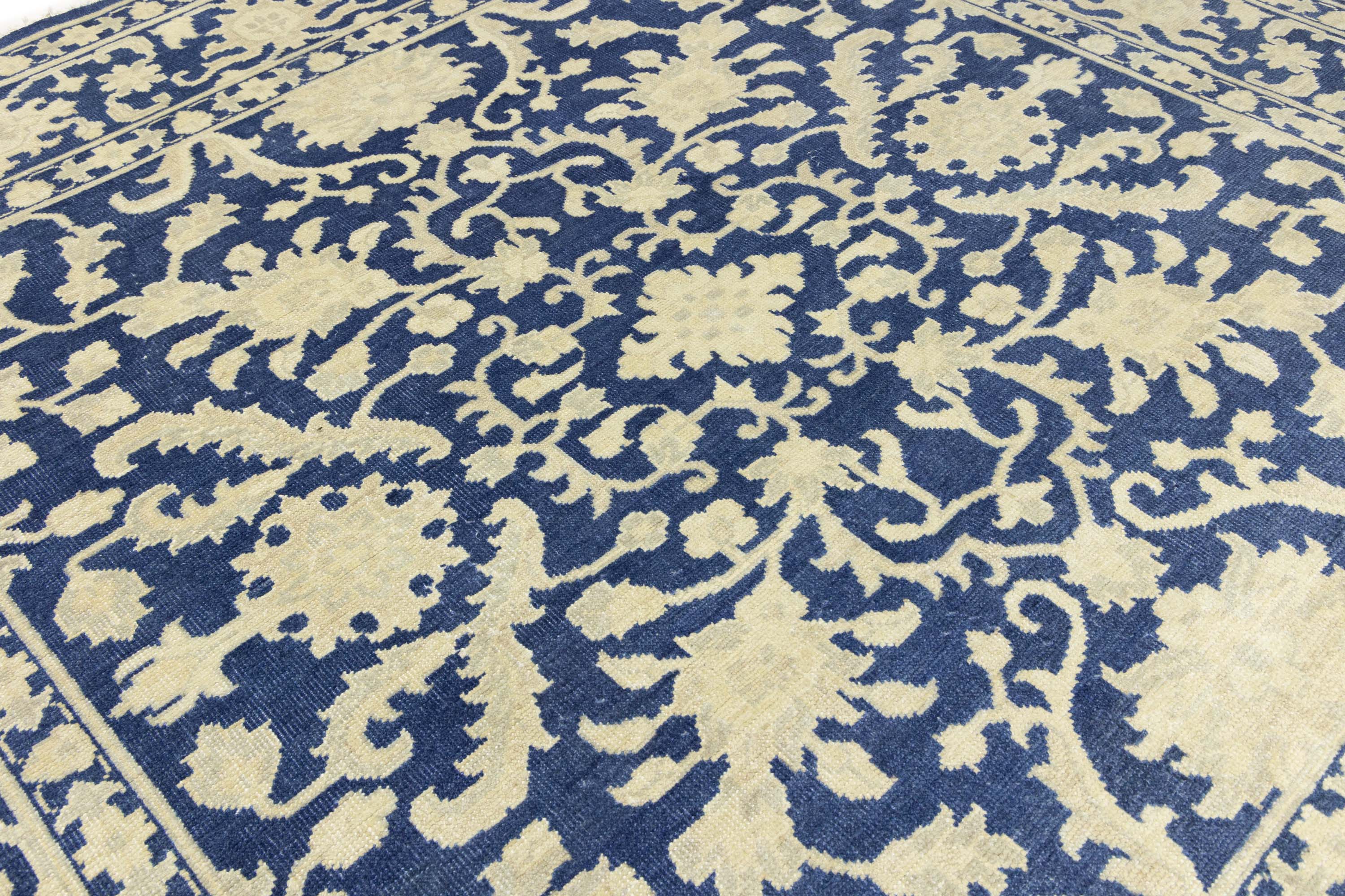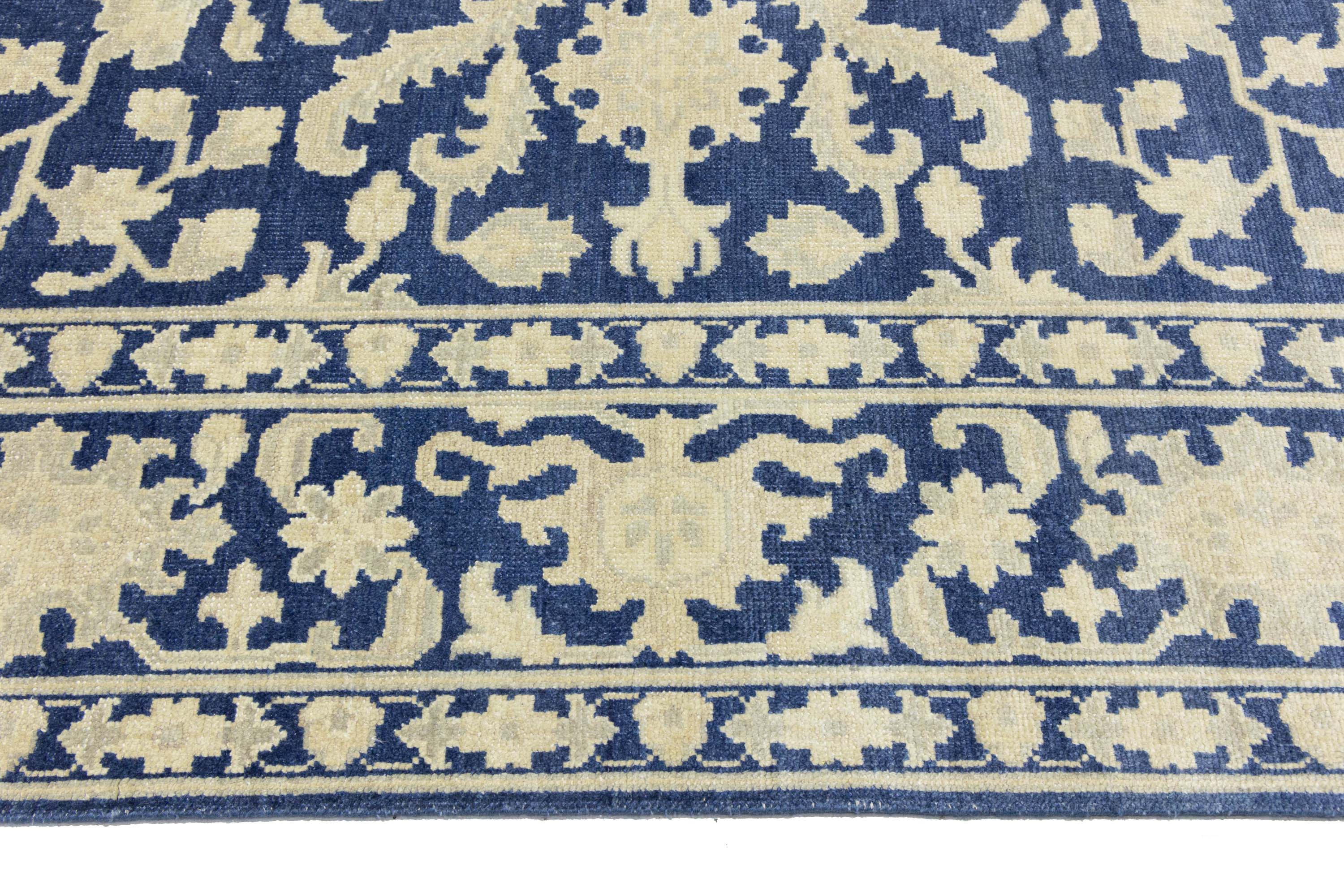 This genuine 10x10 Blue new Oriental rug was made by the hands of gifted weavers inspired by a variety of spectacular artistic designs, to recreate the aged look of the original piece with a richness of color and ornately patterned background field. What set this vintage style Oriental area rug from the others are the material and dye used (wool pile and cotton foundation), knot count, ancient designs, fantastic grades, and its regional historical connection: it has deep roots, from the story of the people who produced it to the meaning of the symbols and colors displayed across its canvas that have been praised for centuries. This Indian home décor carpet will be completely cozy and inviting that never will go out of style! Also, this Oriental rug would be among your most valuable treasures, it is a great investment that accrues value over time, and it will last for generations because was woven with high-quality, all-natural wool. Environmentally friendly, opulent yet affordable; this rug will give you a thorough amount of character to help define your living space with elegance and warmth that will capture the eyes and attention of your audience (homeowners, designers, decorators, family and friends). OT-11844