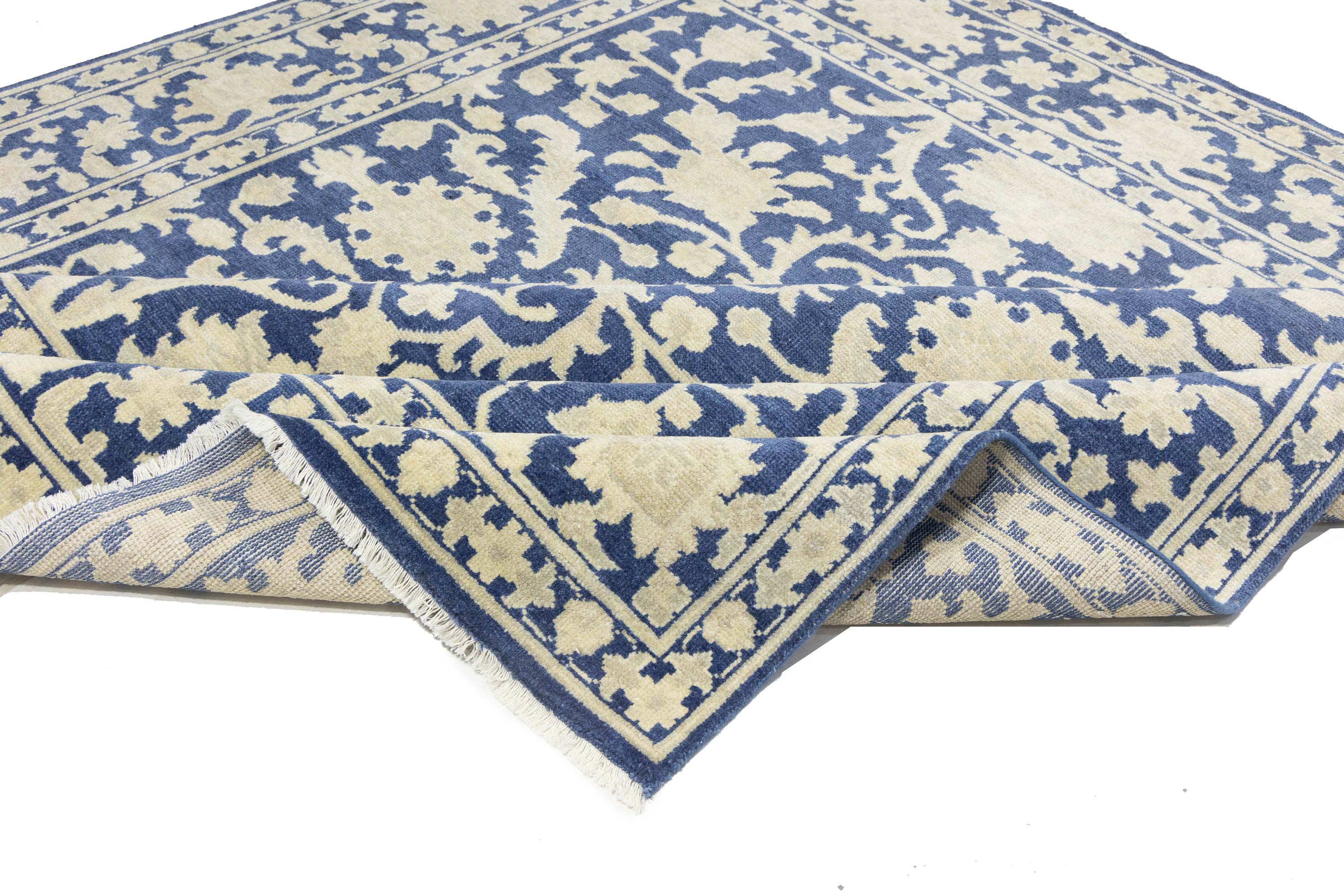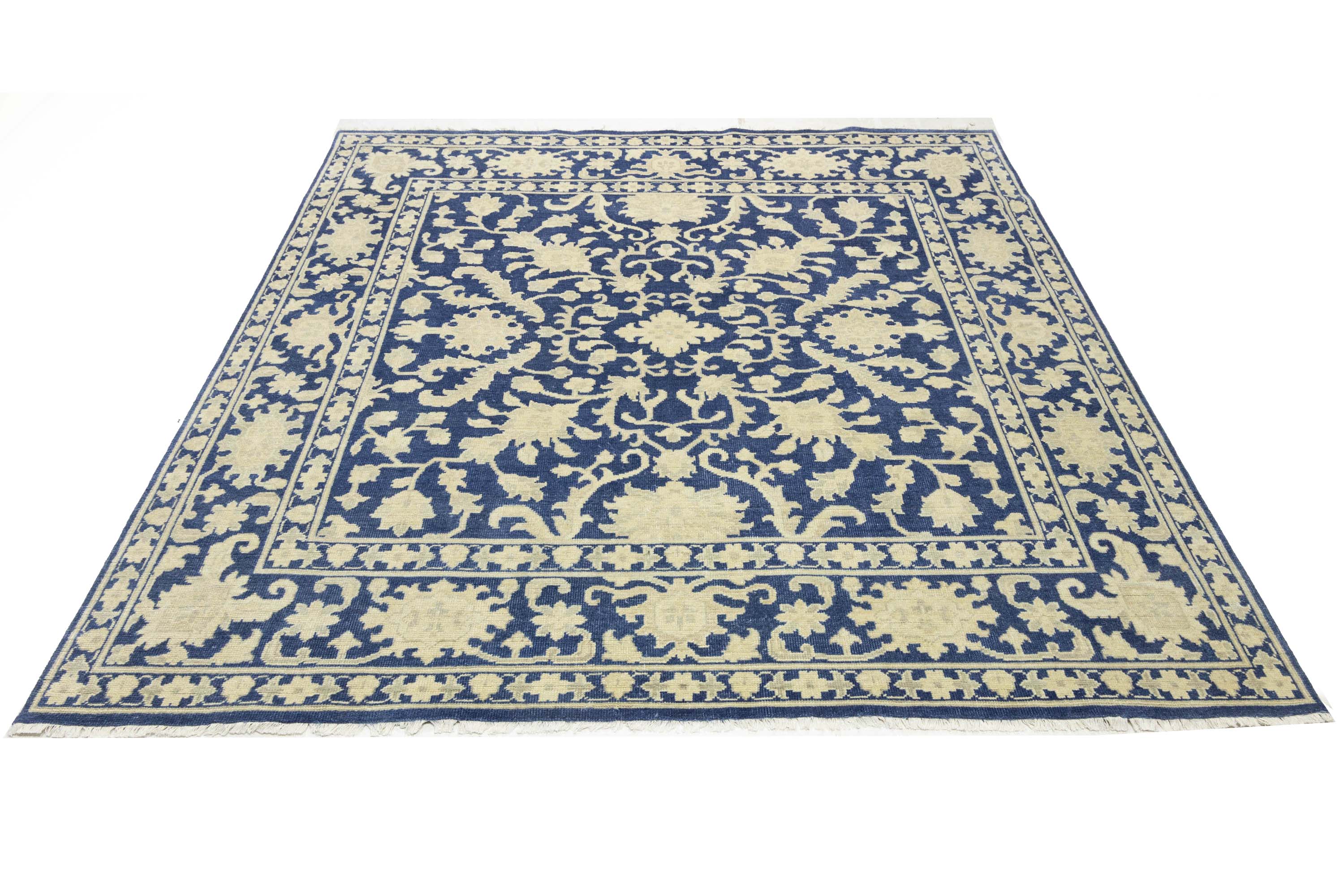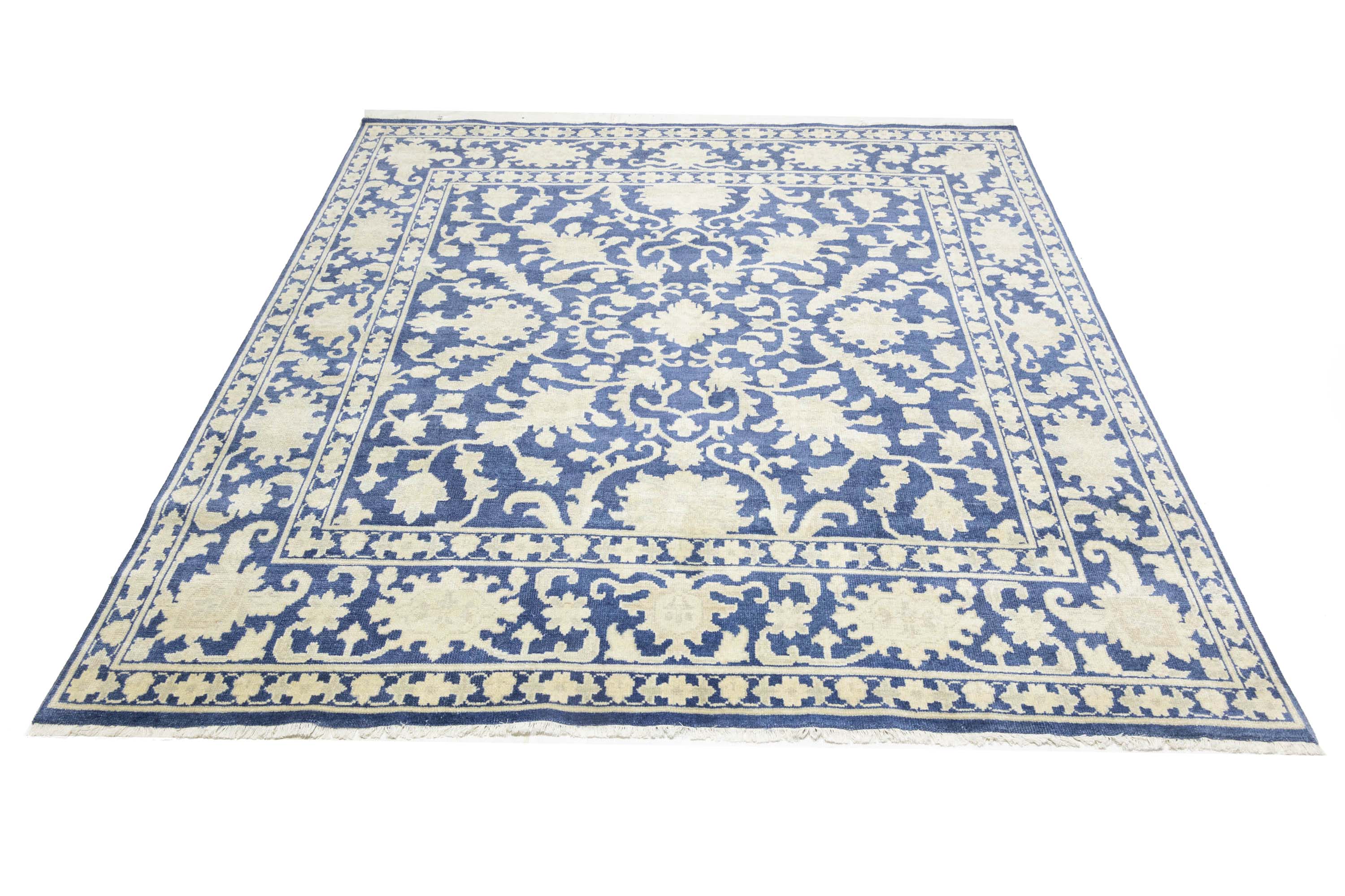 Muted Blue Floral 10x10 Transitional Oriental Square Rug