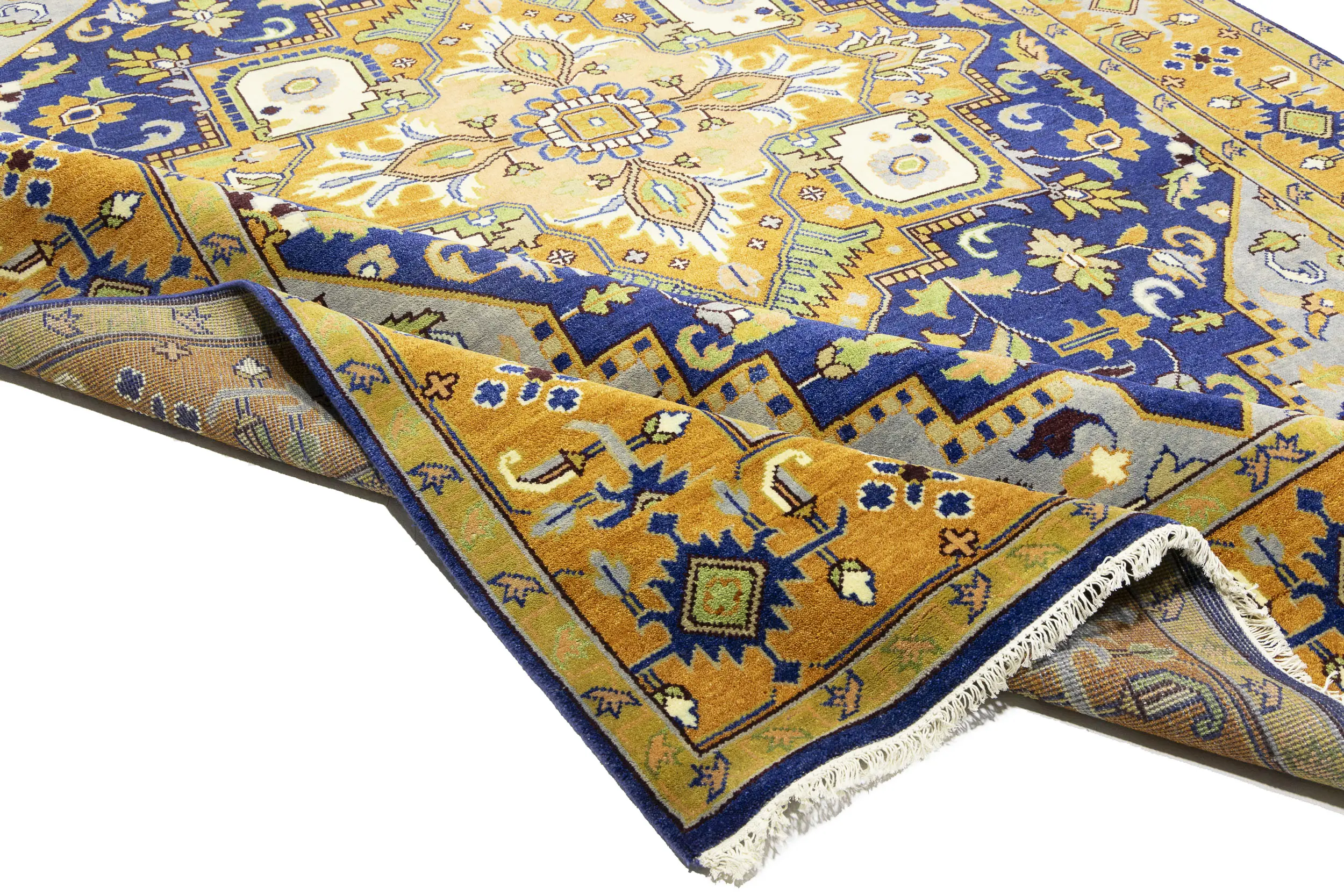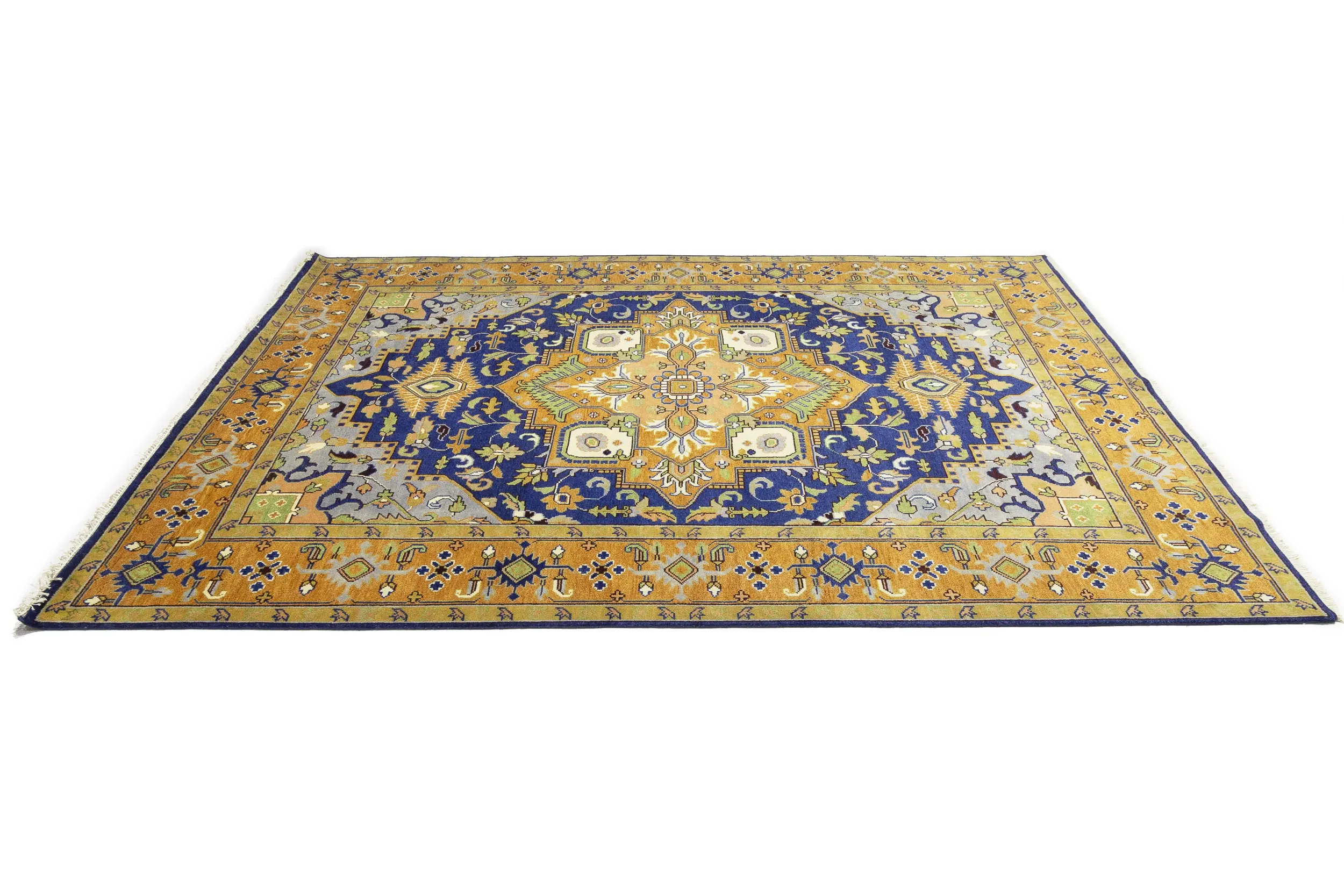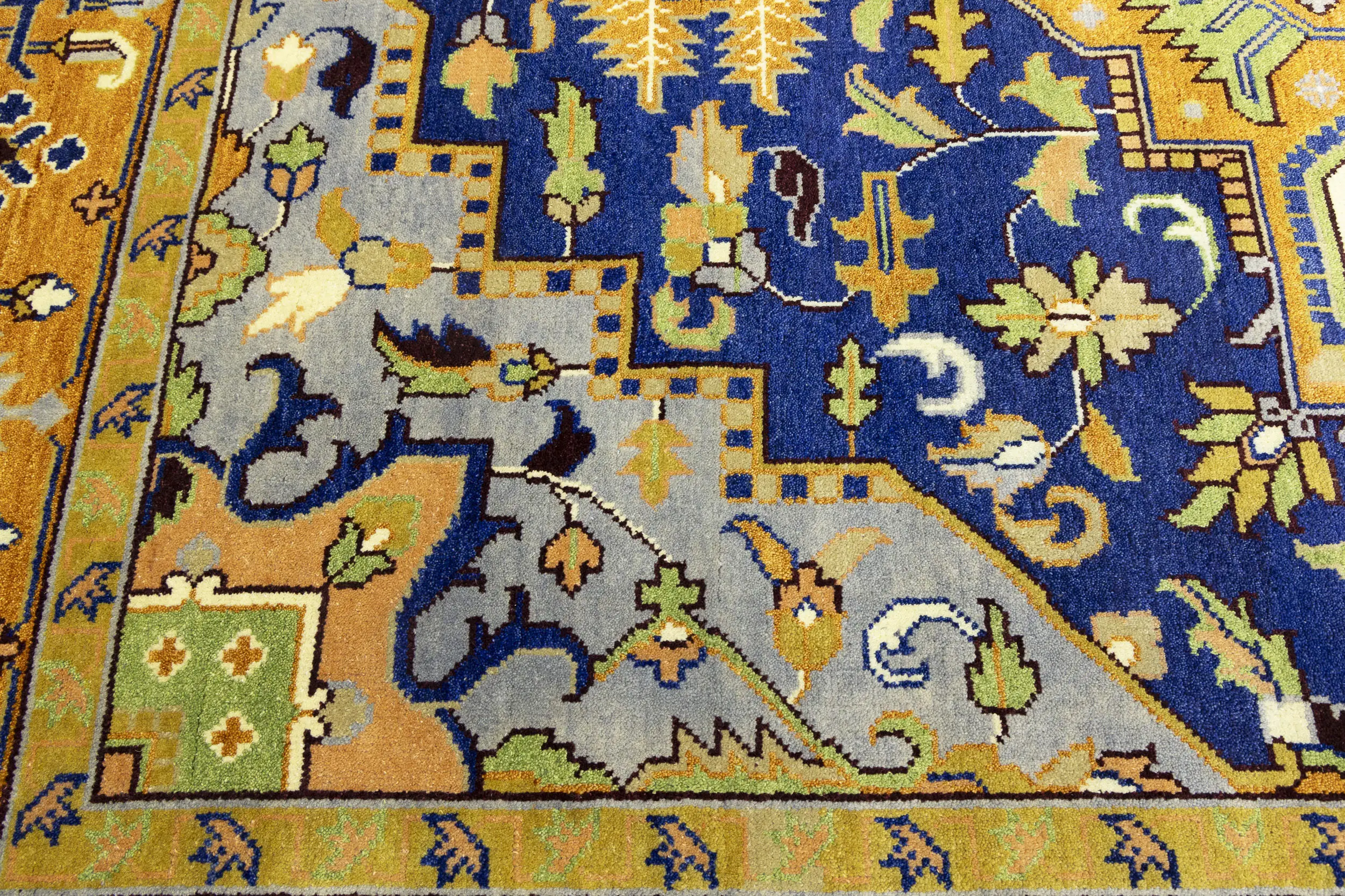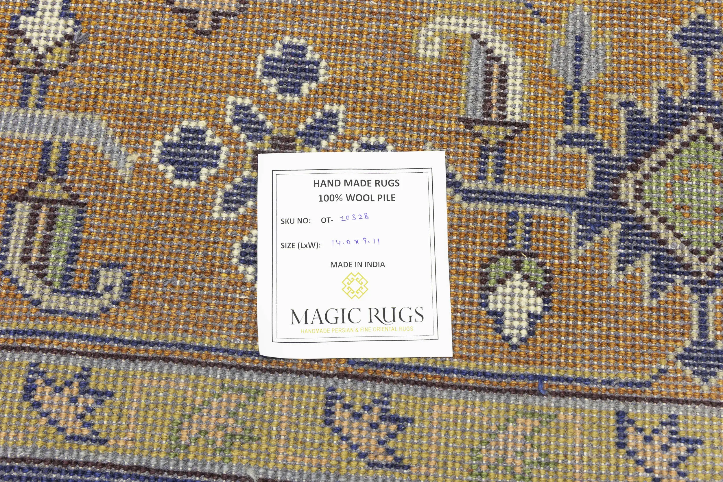 This original 10X14 Blue new Oriental rug was finely knotted by the hands of weavers influenced by a variety of amazing artistic designs, to recreate the aged look of the exceptional piece with a richness of color and embellished background field. What set this vintage style Oriental area rug from the others are the material and dye used (wool pile and cotton foundation), knot count, antique designs, fantastic grades, and its regional historical connection: it has deep roots, from the story of the people who produced it to the meaning of the symbols and colors displayed across its canvas that have been praised for centuries. This Indian home décor carpet will be completely cozy and inviting that never will go out of style! Also, this Oriental rug would be among your most valuable treasures, it is a great investment that increase in value over time, and it will last a lifetime because was woven with high-quality, all-natural wool. Eco-friendly, opulent yet affordable; this rug will give you an extra pop of character to help define your home environment with luxury and warmth that will capture the eyes and attention of your audience (homeowners, designers, decorators, family and friends).