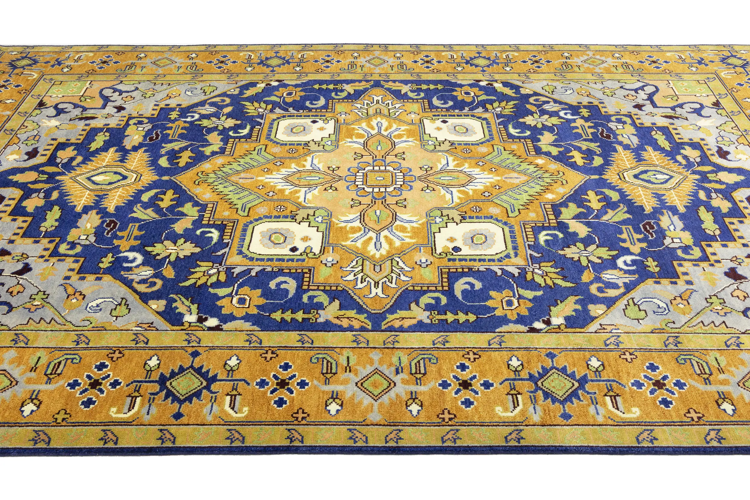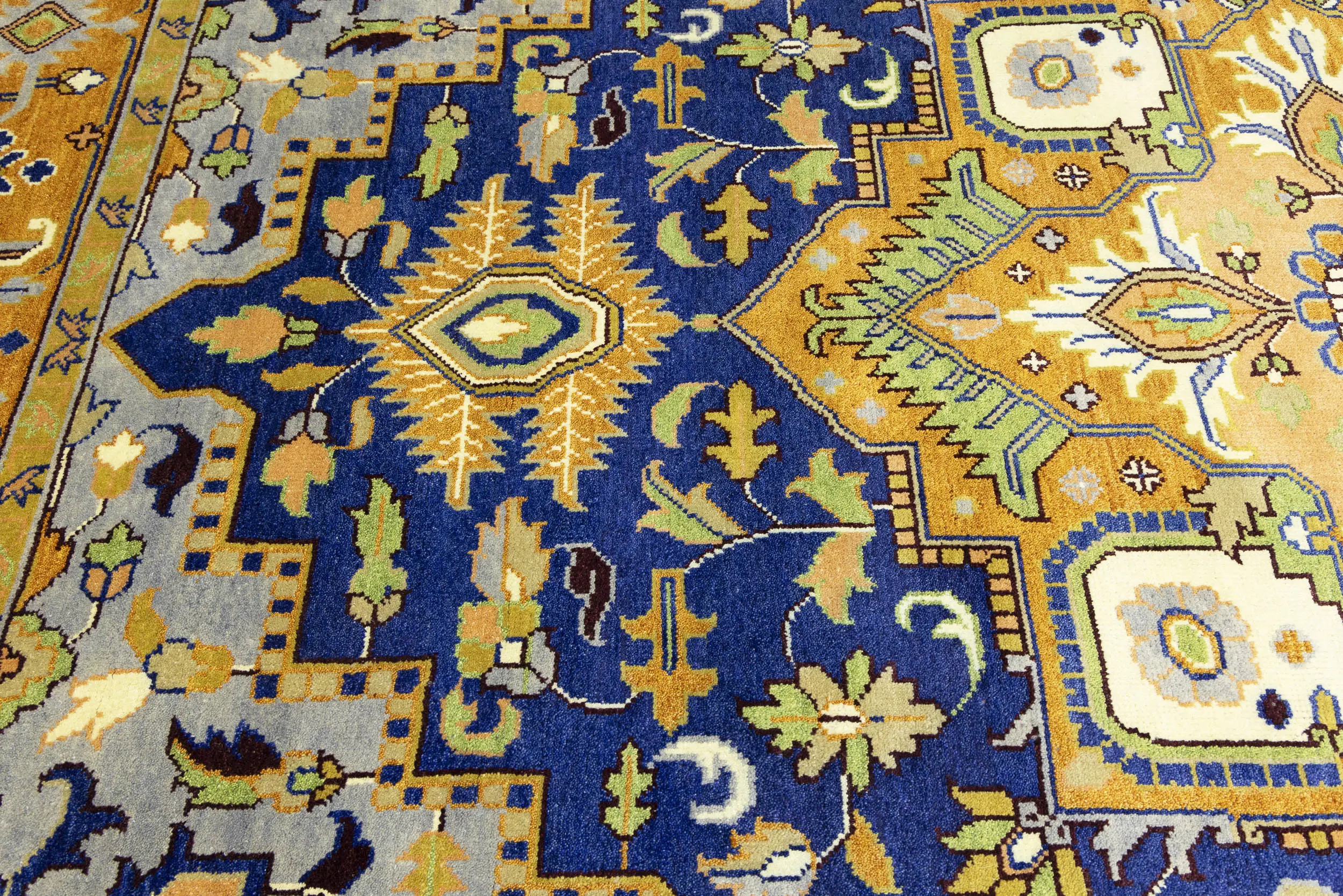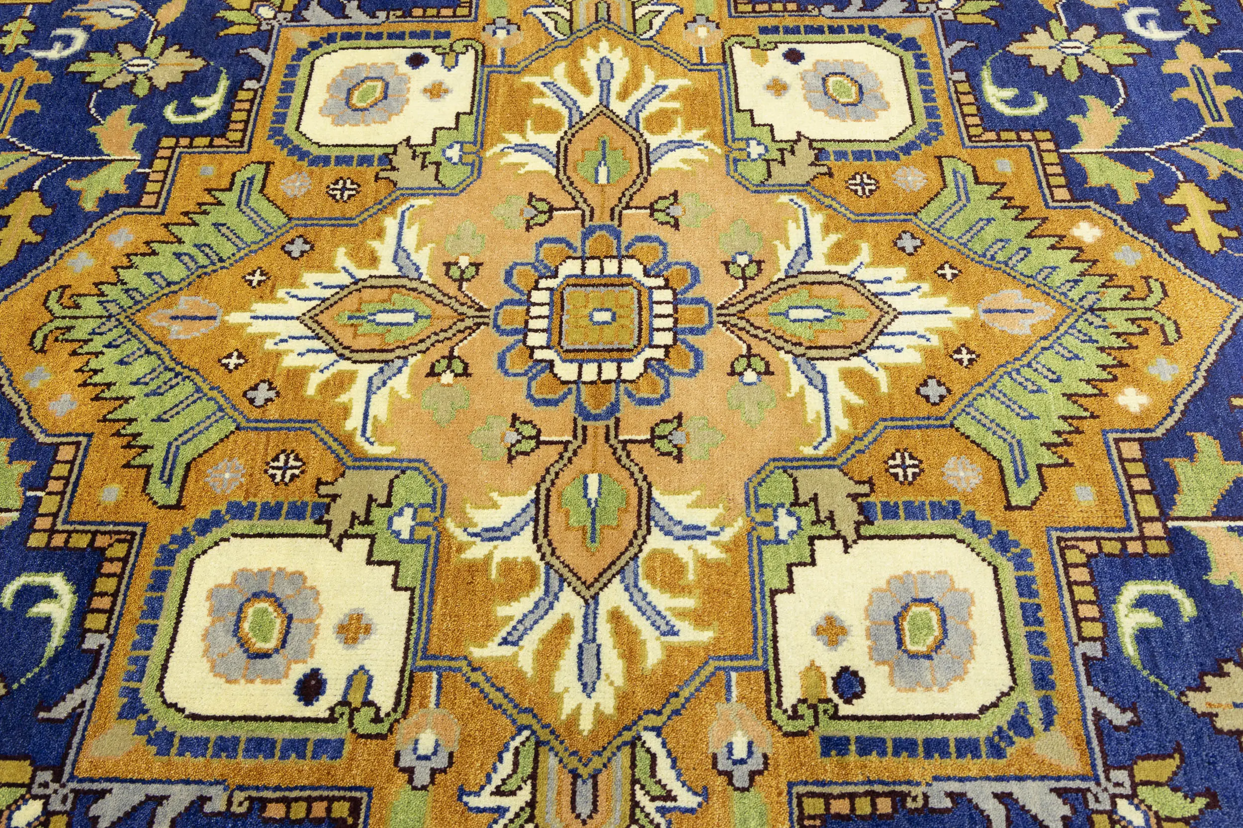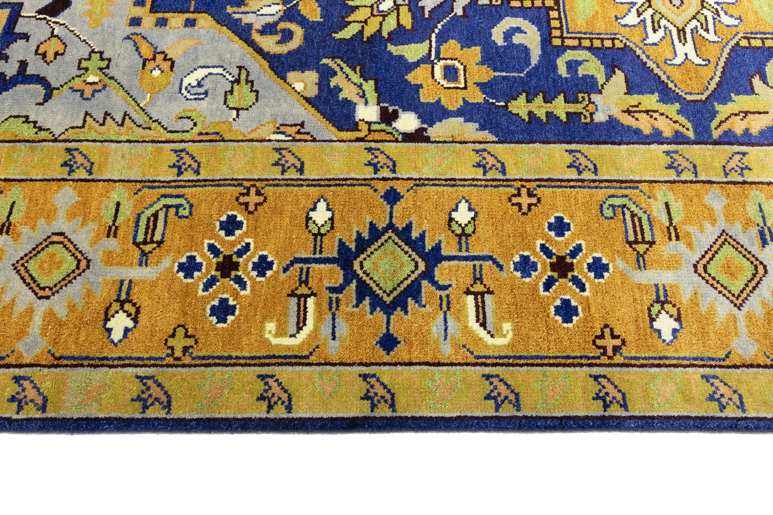 This original 10X14 Blue new Oriental rug was finely knotted by the hands of weavers influenced by a variety of amazing artistic designs, to recreate the aged look of the exceptional piece with a richness of color and embellished background field. What set this vintage style Oriental area rug from the others are the material and dye used (wool pile and cotton foundation), knot count, antique designs, fantastic grades, and its regional historical connection: it has deep roots, from the story of the people who produced it to the meaning of the symbols and colors displayed across its canvas that have been praised for centuries. This Indian home décor carpet will be completely cozy and inviting that never will go out of style! Also, this Oriental rug would be among your most valuable treasures, it is a great investment that increase in value over time, and it will last a lifetime because was woven with high-quality, all-natural wool. Eco-friendly, opulent yet affordable; this rug will give you an extra pop of character to help define your home environment with luxury and warmth that will capture the eyes and attention of your audience (homeowners, designers, decorators, family and friends).