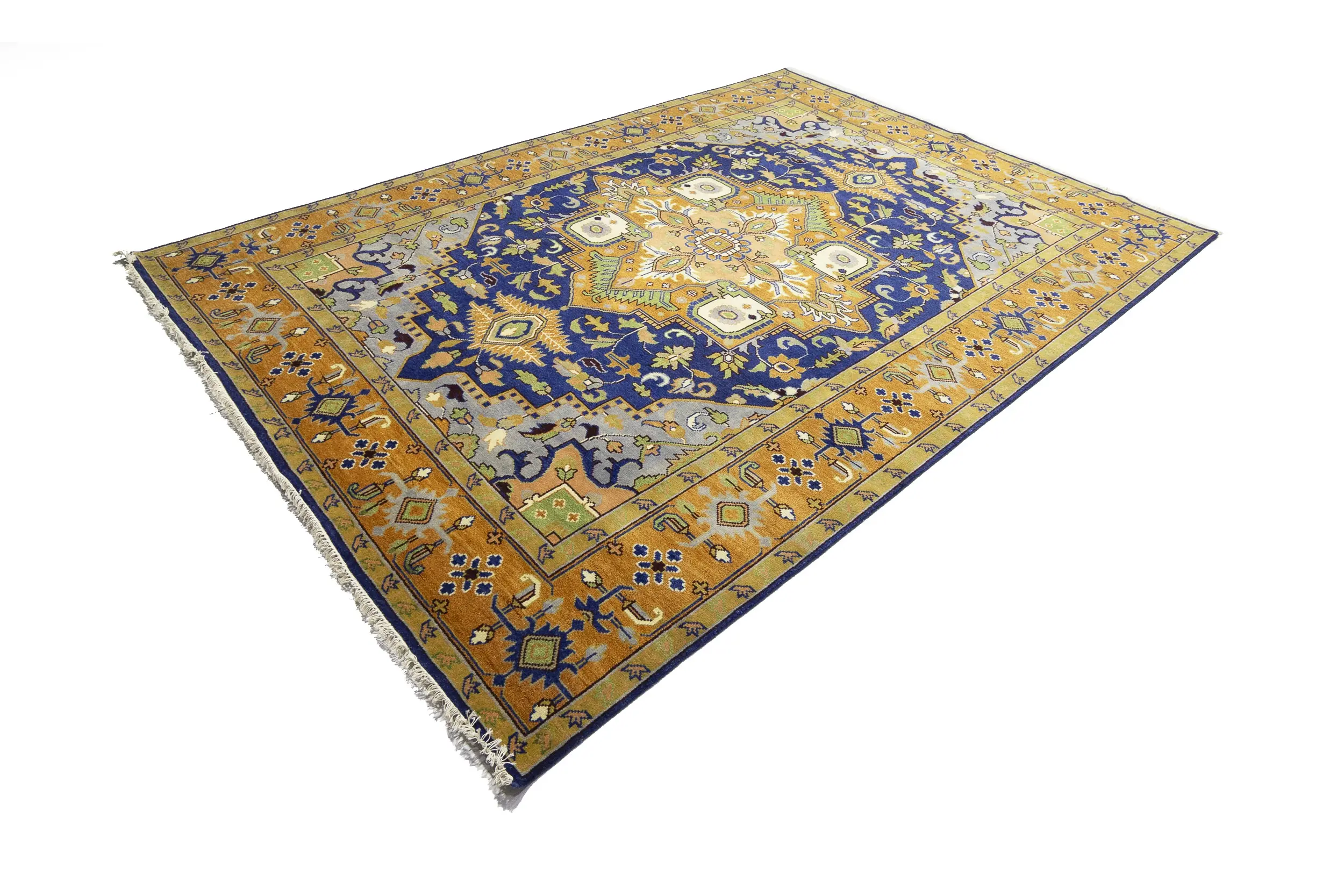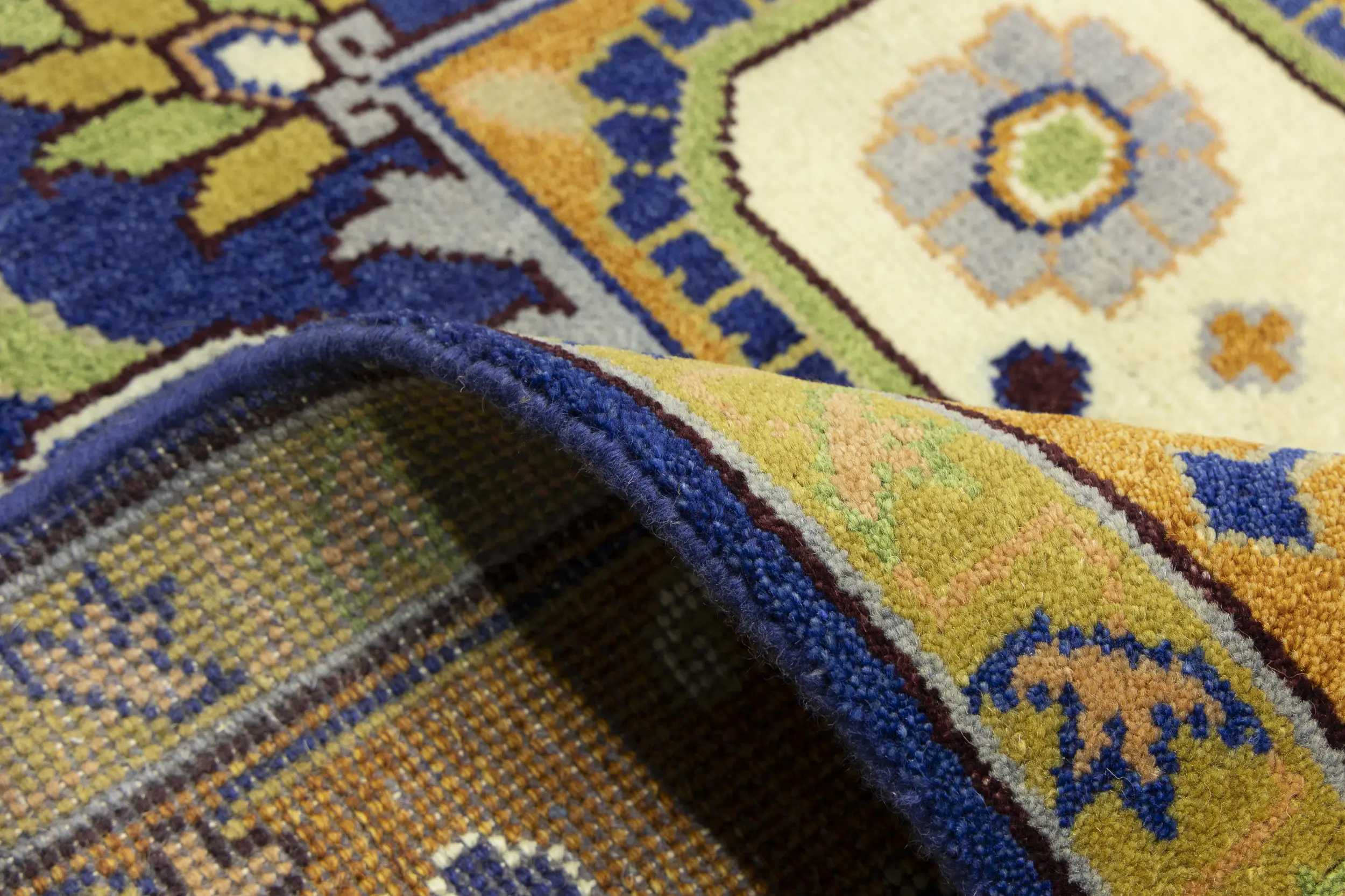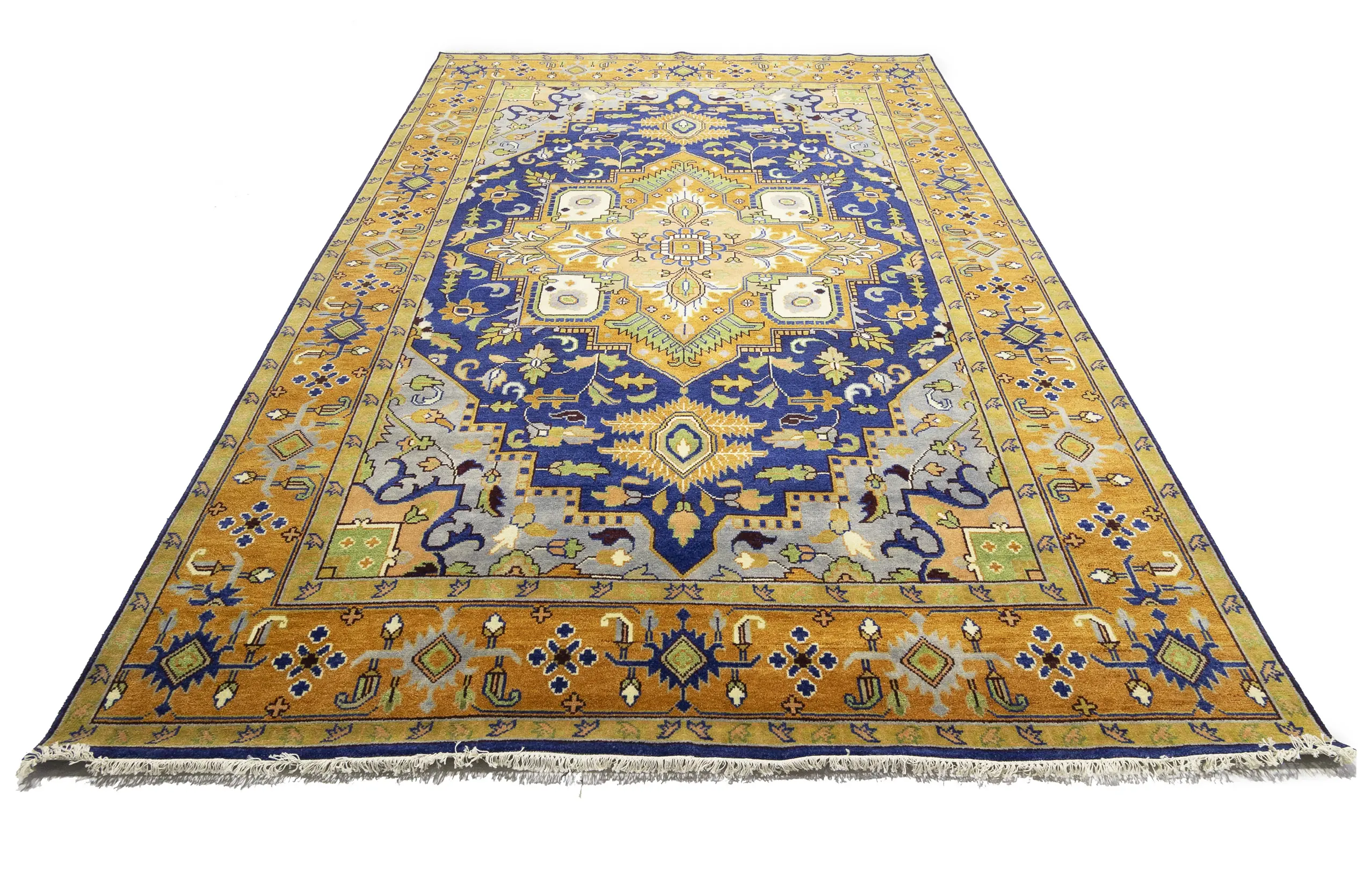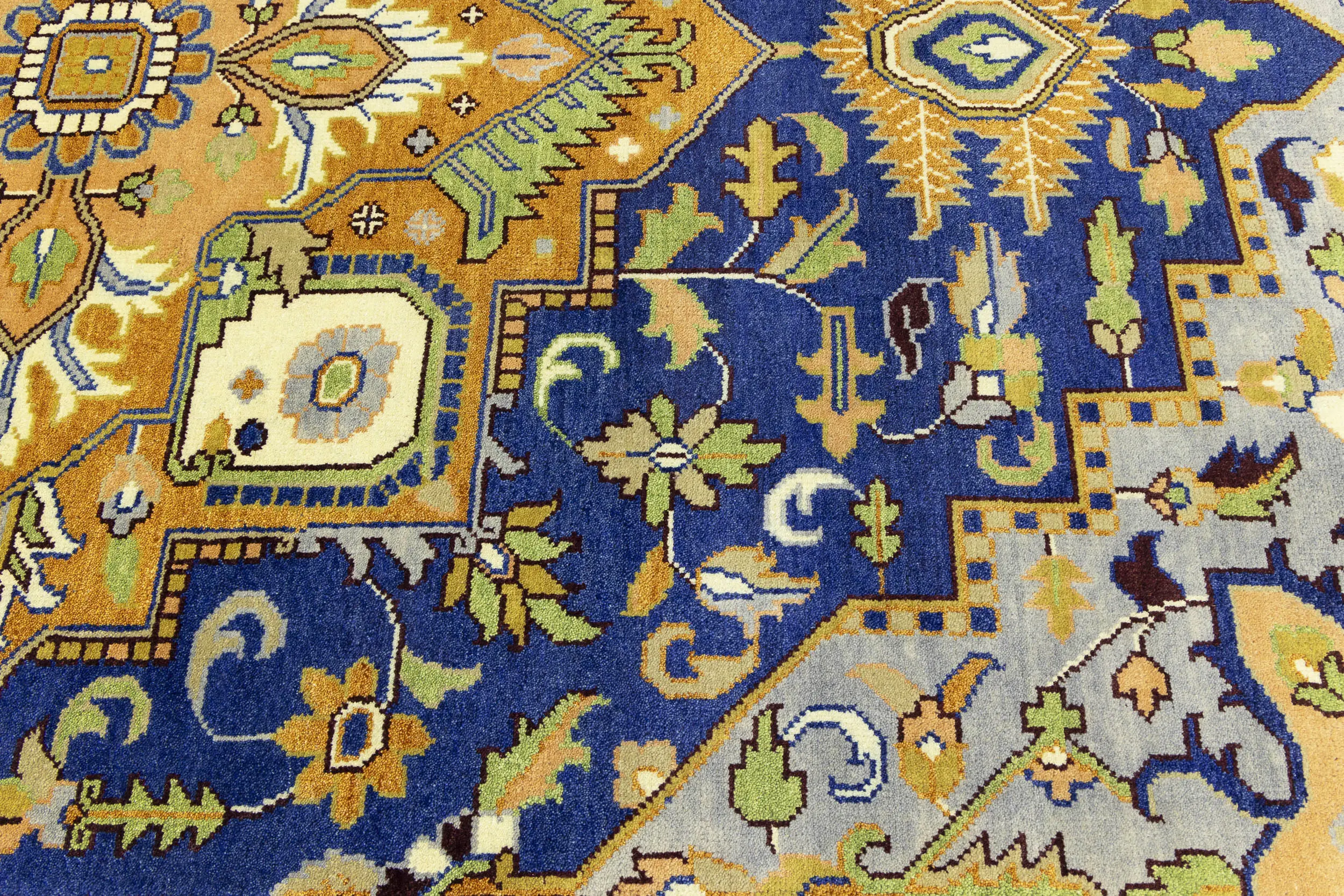 This original 10X14 Blue new Oriental rug was finely knotted by the hands of weavers influenced by a variety of amazing artistic designs, to recreate the aged look of the exceptional piece with a richness of color and embellished background field. What set this vintage style Oriental area rug from the others are the material and dye used (wool pile and cotton foundation), knot count, antique designs, fantastic grades, and its regional historical connection: it has deep roots, from the story of the people who produced it to the meaning of the symbols and colors displayed across its canvas that have been praised for centuries. This Indian home décor carpet will be completely cozy and inviting that never will go out of style! Also, this Oriental rug would be among your most valuable treasures, it is a great investment that increase in value over time, and it will last a lifetime because was woven with high-quality, all-natural wool. Eco-friendly, opulent yet affordable; this rug will give you an extra pop of character to help define your home environment with luxury and warmth that will capture the eyes and attention of your audience (homeowners, designers, decorators, family and friends).