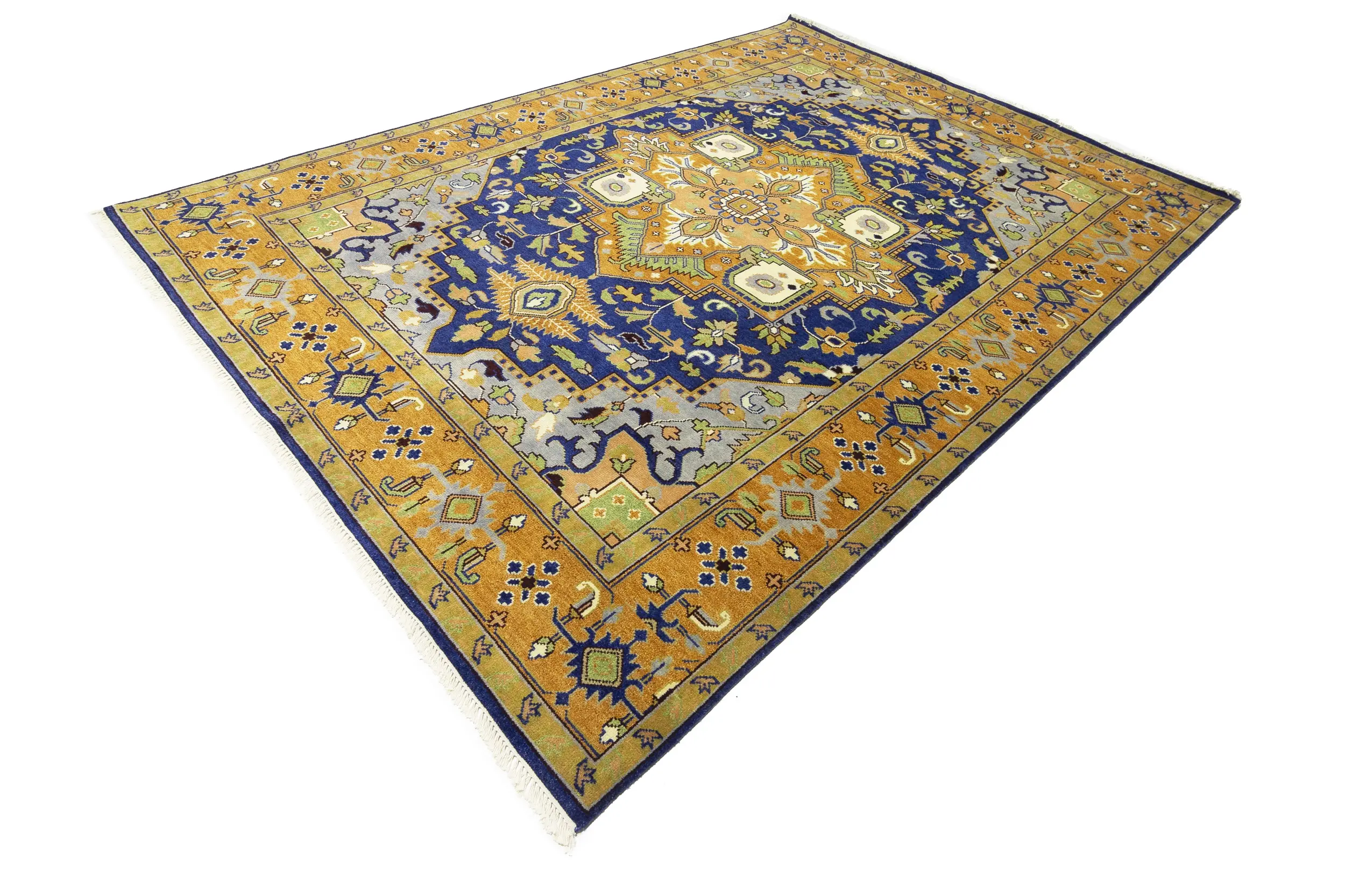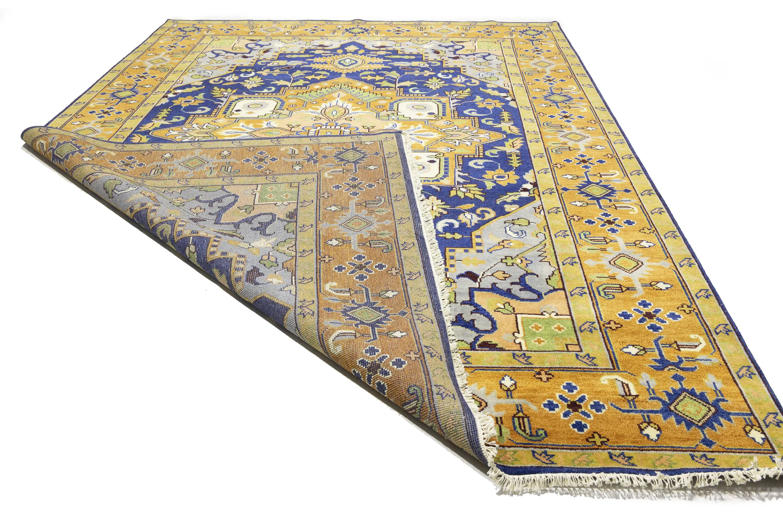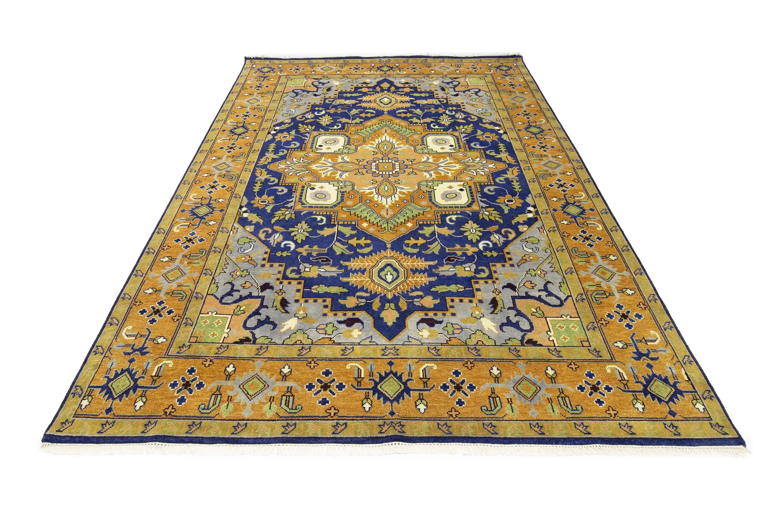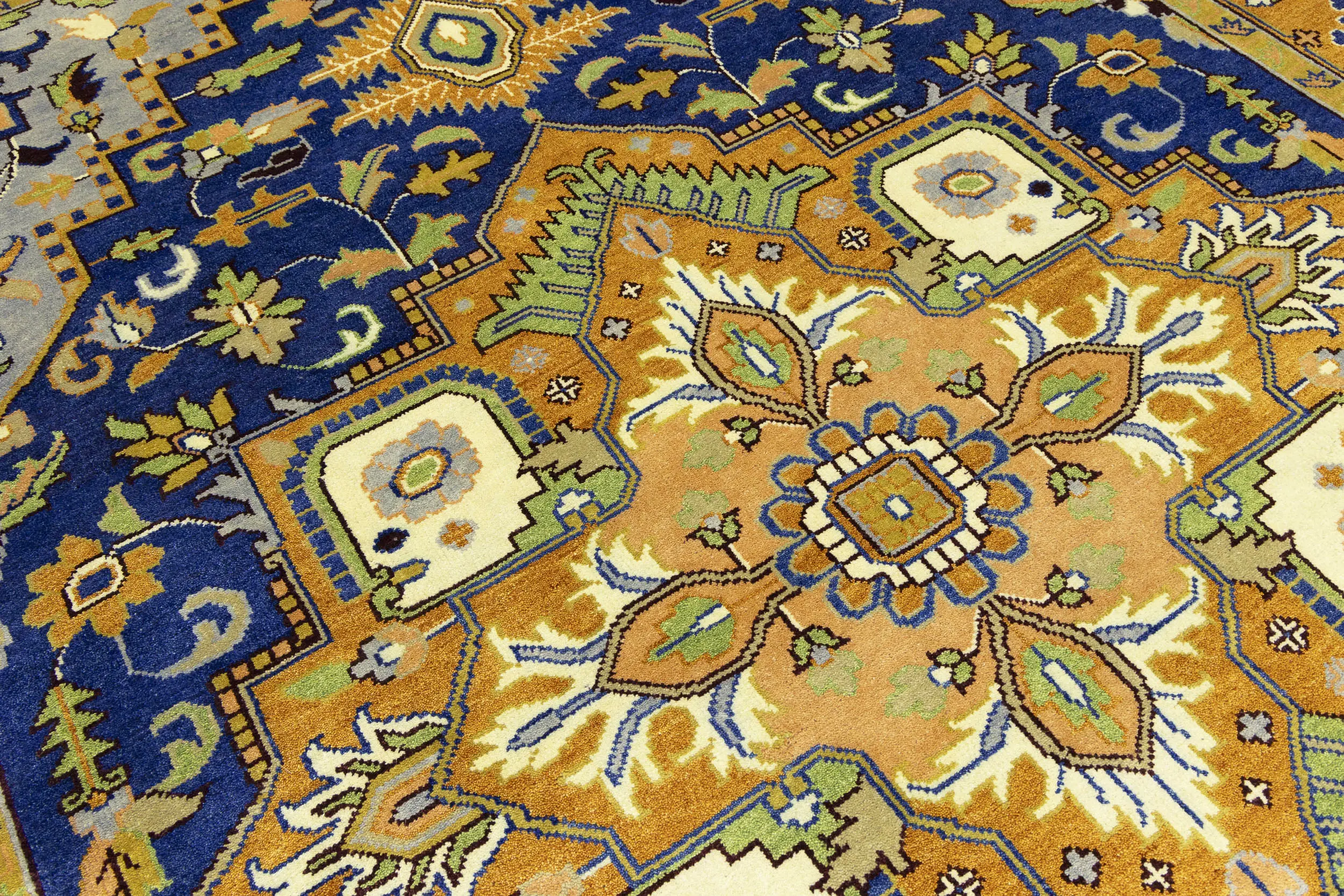 This original 10X14 Blue new Oriental rug was finely knotted by the hands of weavers influenced by a variety of amazing artistic designs, to recreate the aged look of the exceptional piece with a richness of color and embellished background field. What set this vintage style Oriental area rug from the others are the material and dye used (wool pile and cotton foundation), knot count, antique designs, fantastic grades, and its regional historical connection: it has deep roots, from the story of the people who produced it to the meaning of the symbols and colors displayed across its canvas that have been praised for centuries. This Indian home décor carpet will be completely cozy and inviting that never will go out of style! Also, this Oriental rug would be among your most valuable treasures, it is a great investment that increase in value over time, and it will last a lifetime because was woven with high-quality, all-natural wool. Eco-friendly, opulent yet affordable; this rug will give you an extra pop of character to help define your home environment with luxury and warmth that will capture the eyes and attention of your audience (homeowners, designers, decorators, family and friends).