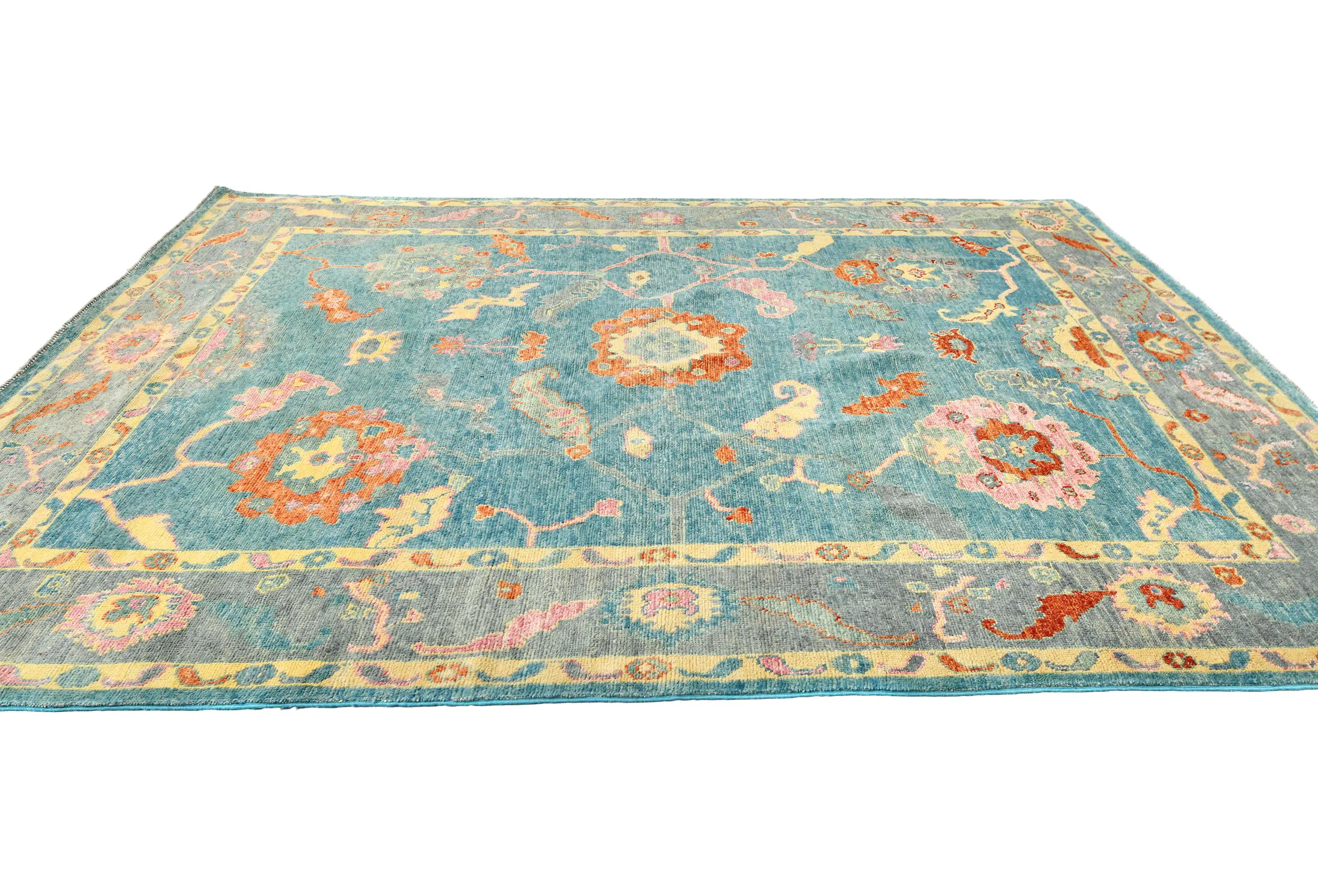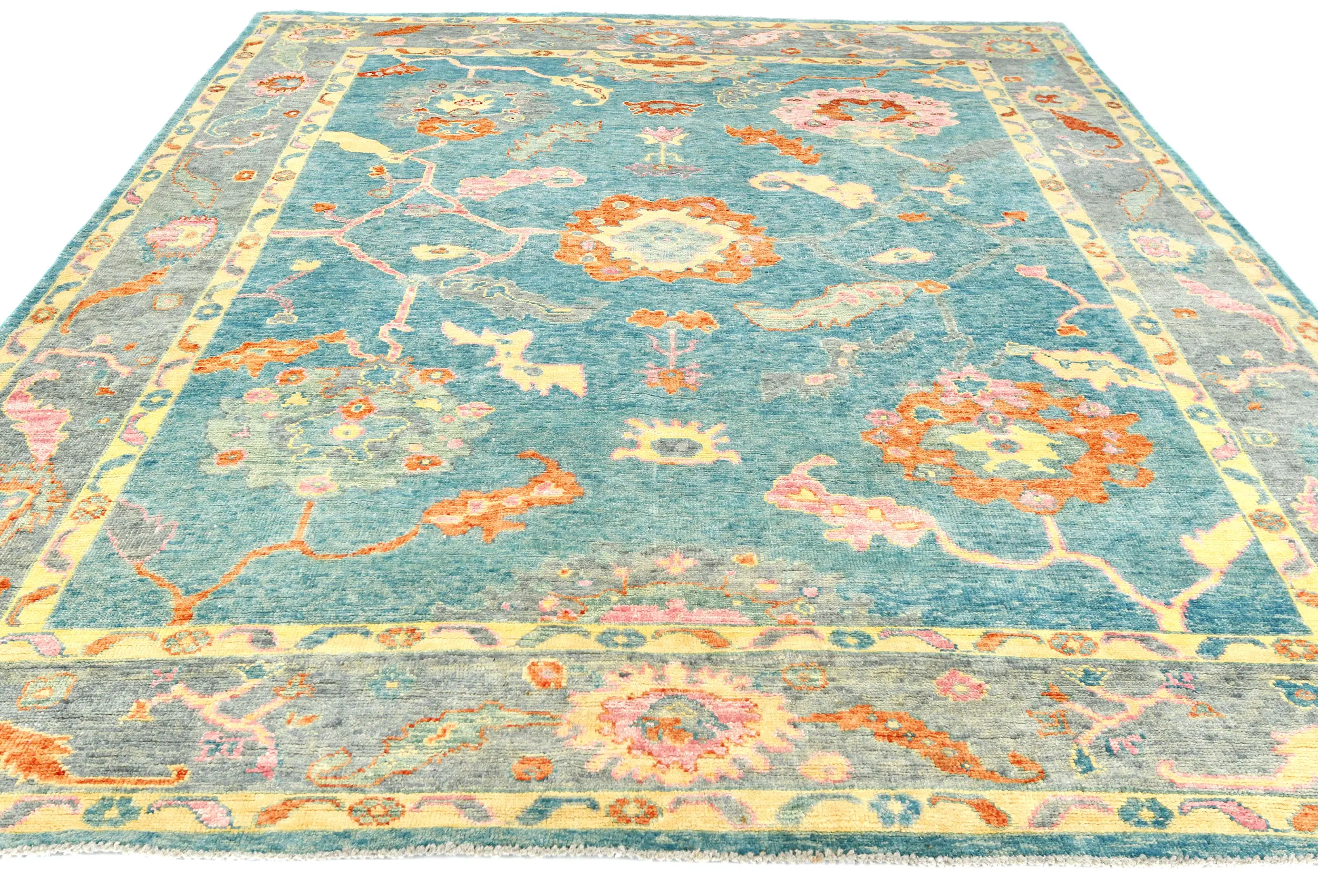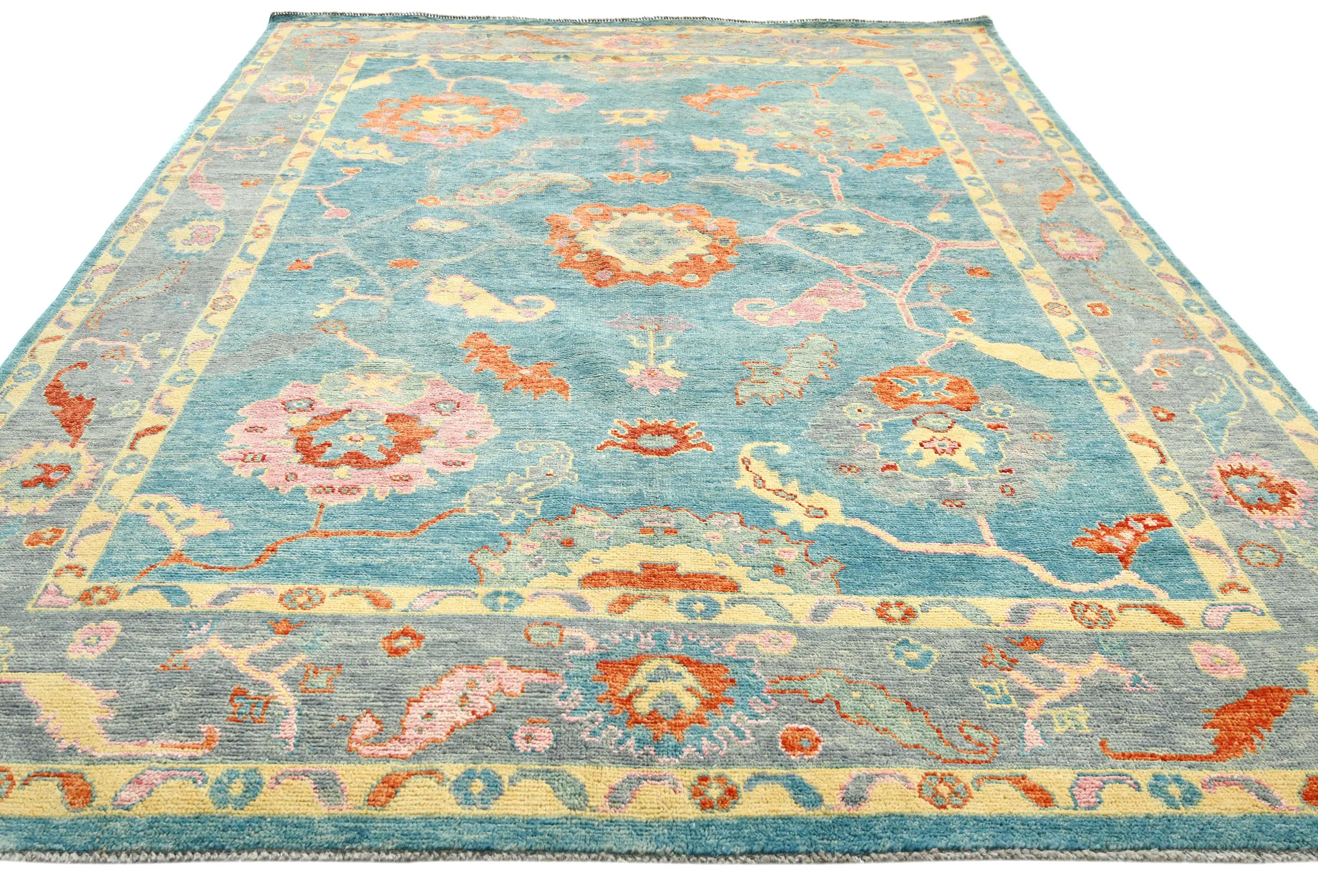 Muted Blue Floral 8X10 Oushak Chobi Oriental Rug