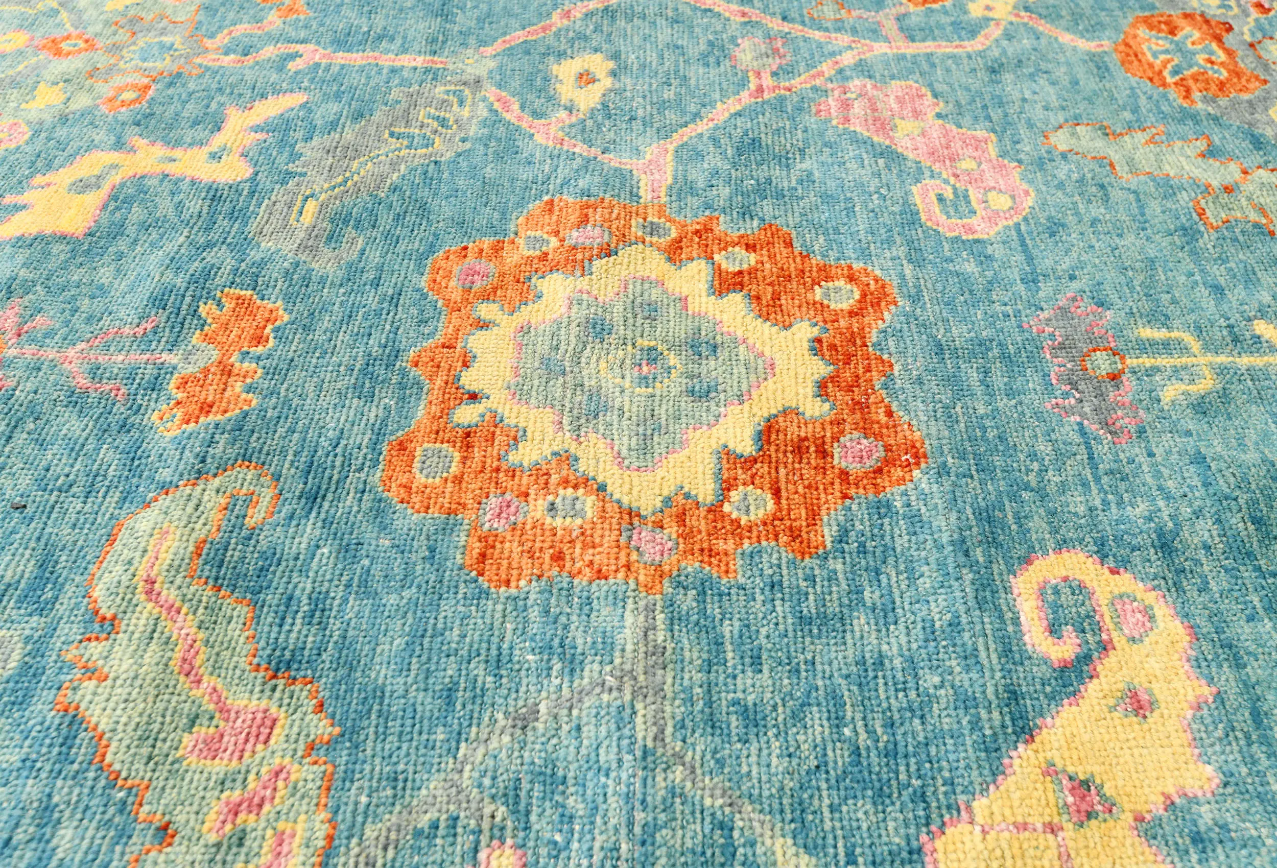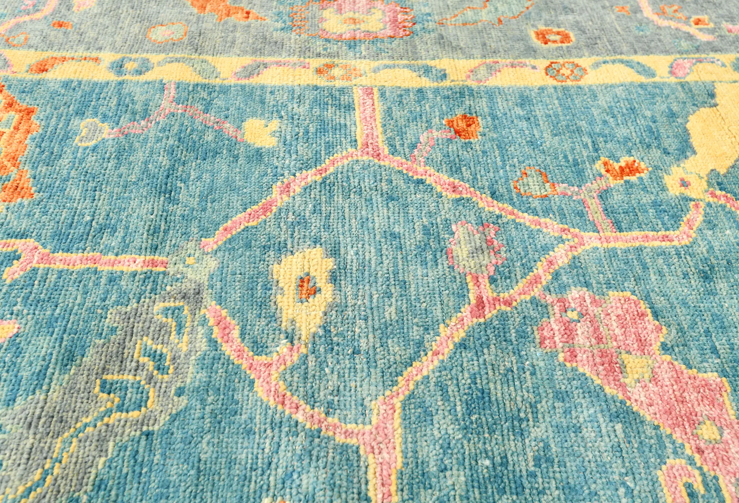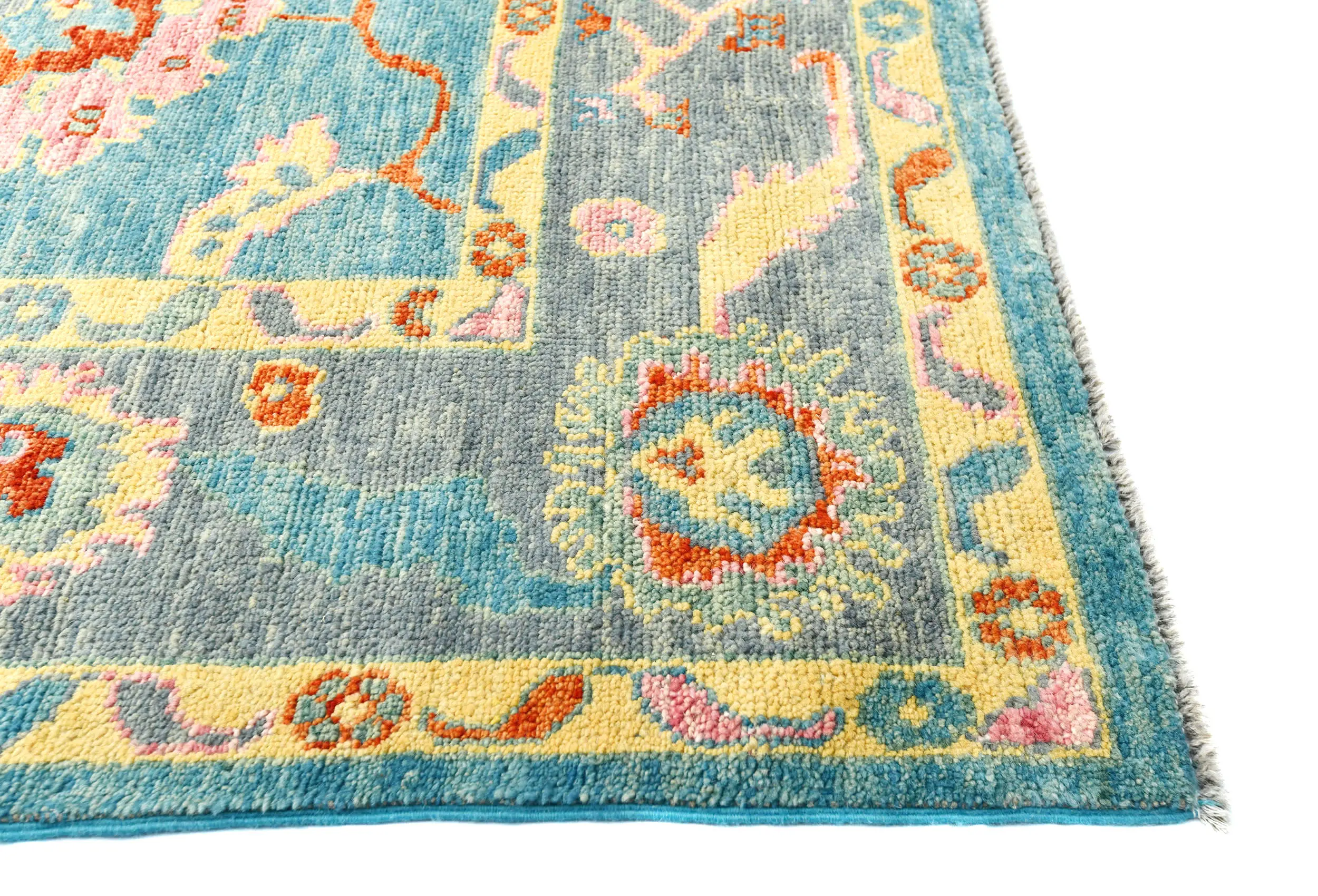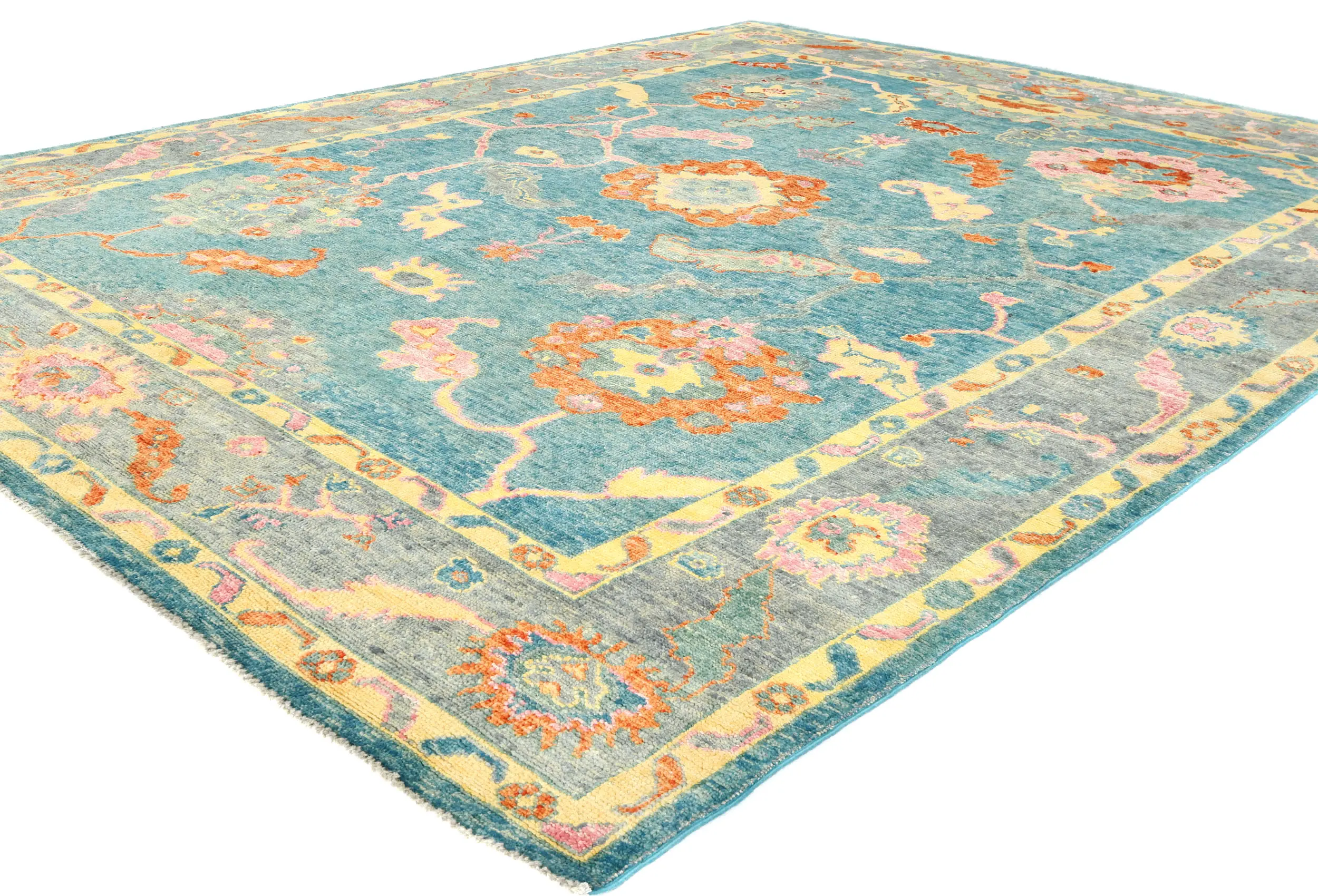 Muted Blue Floral 8X10 Oushak Chobi Oriental Rug