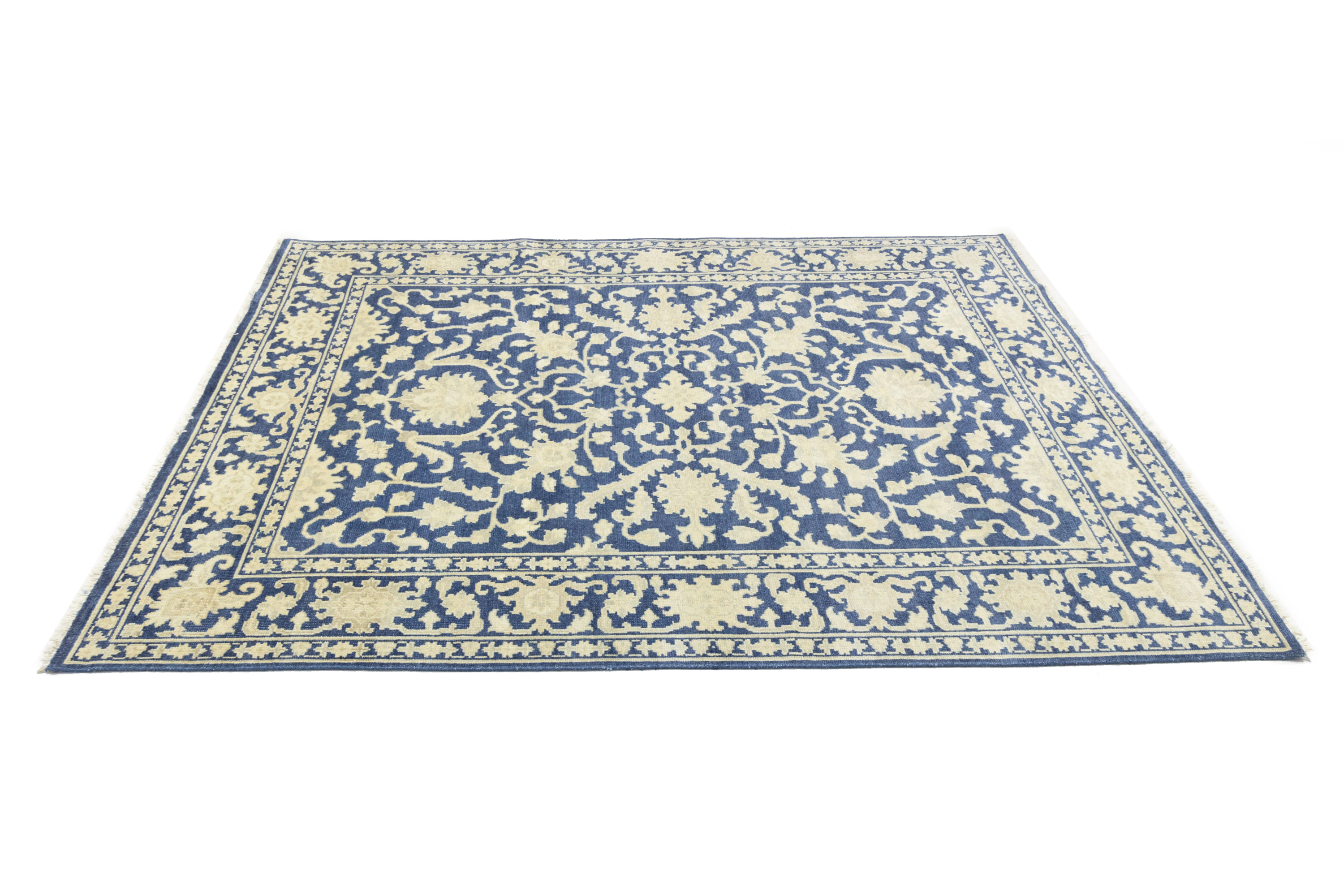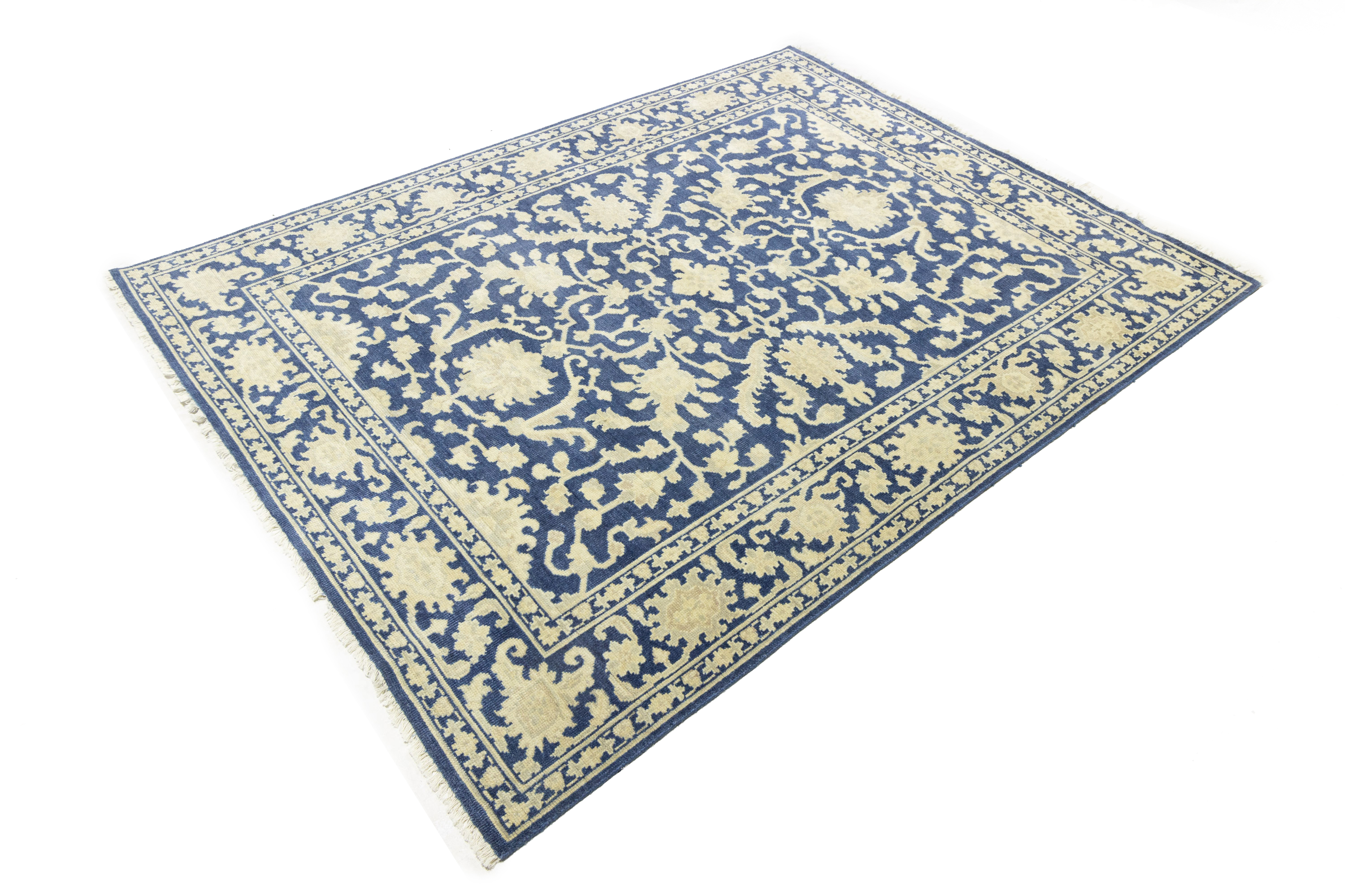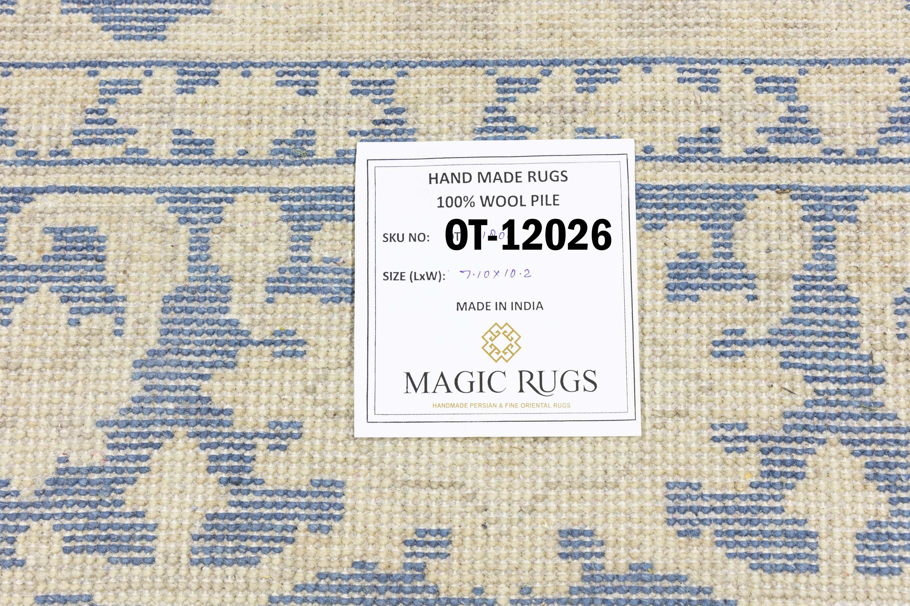 This genuine 8x10 Blue new Oriental rug was made by the hands of gifted weavers inspired by a variety of spectacular artistic designs, to recreate the aged look of the original piece with a richness of color and ornately patterned background field. What set this vintage style Oriental area rug from the others are the material and dye used (wool pile and cotton foundation), knot count, ancient designs, fantastic grades, and its regional historical connection: it has deep roots, from the story of the people who produced it to the meaning of the symbols and colors displayed across its canvas that have been praised for centuries. This Indian home décor carpet will be completely cozy and inviting that never will go out of style! Also, this Oriental rug would be among your most valuable treasures, it is a great investment that accrues value over time, and it will last for generations because was woven with high-quality, all-natural wool. Environmentally friendly, opulent yet affordable; this rug will give you a thorough amount of character to help define your living space with elegance and warmth that will capture the eyes and attention of your audience (homeowners, designers, decorators, family and friends). OT-12026