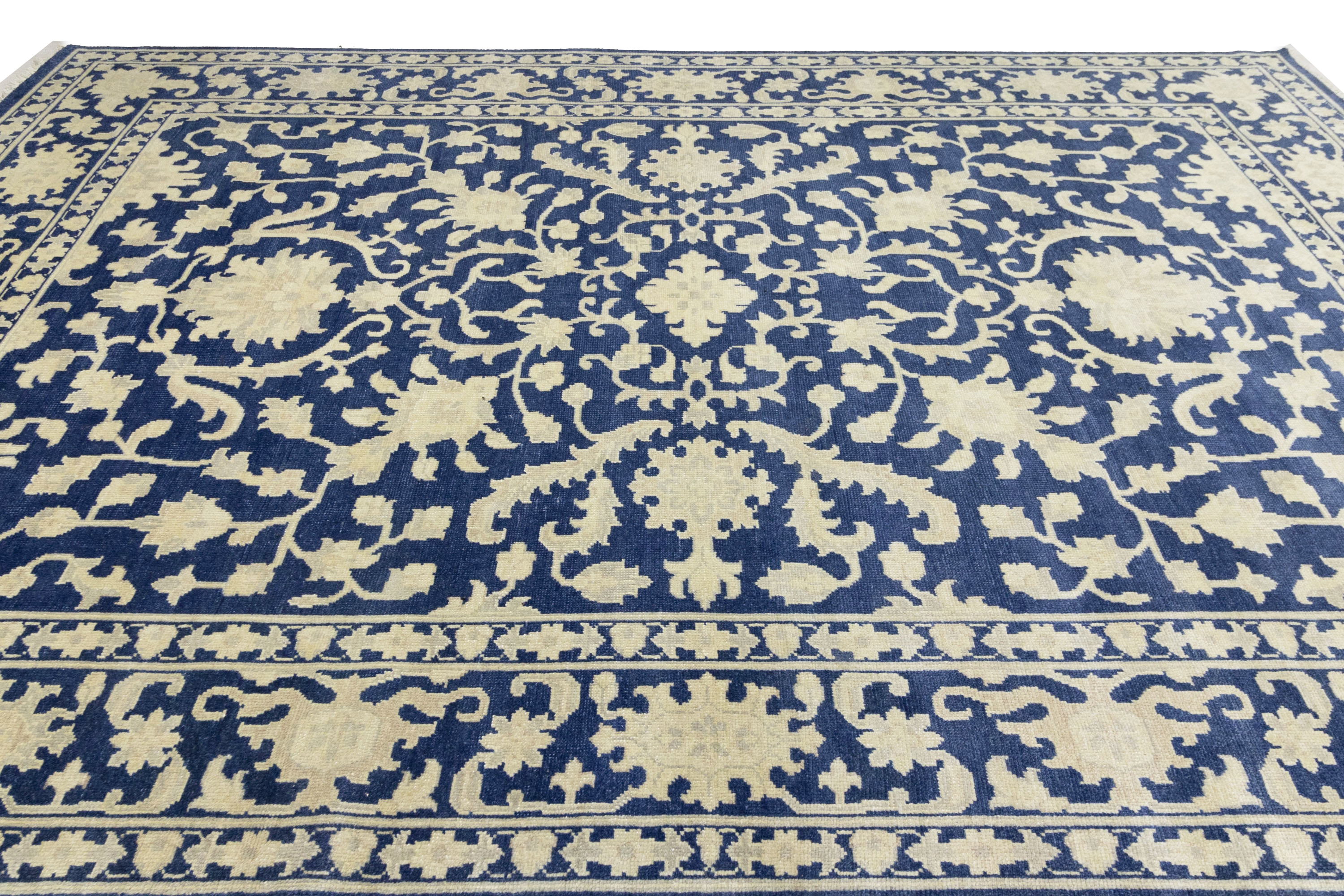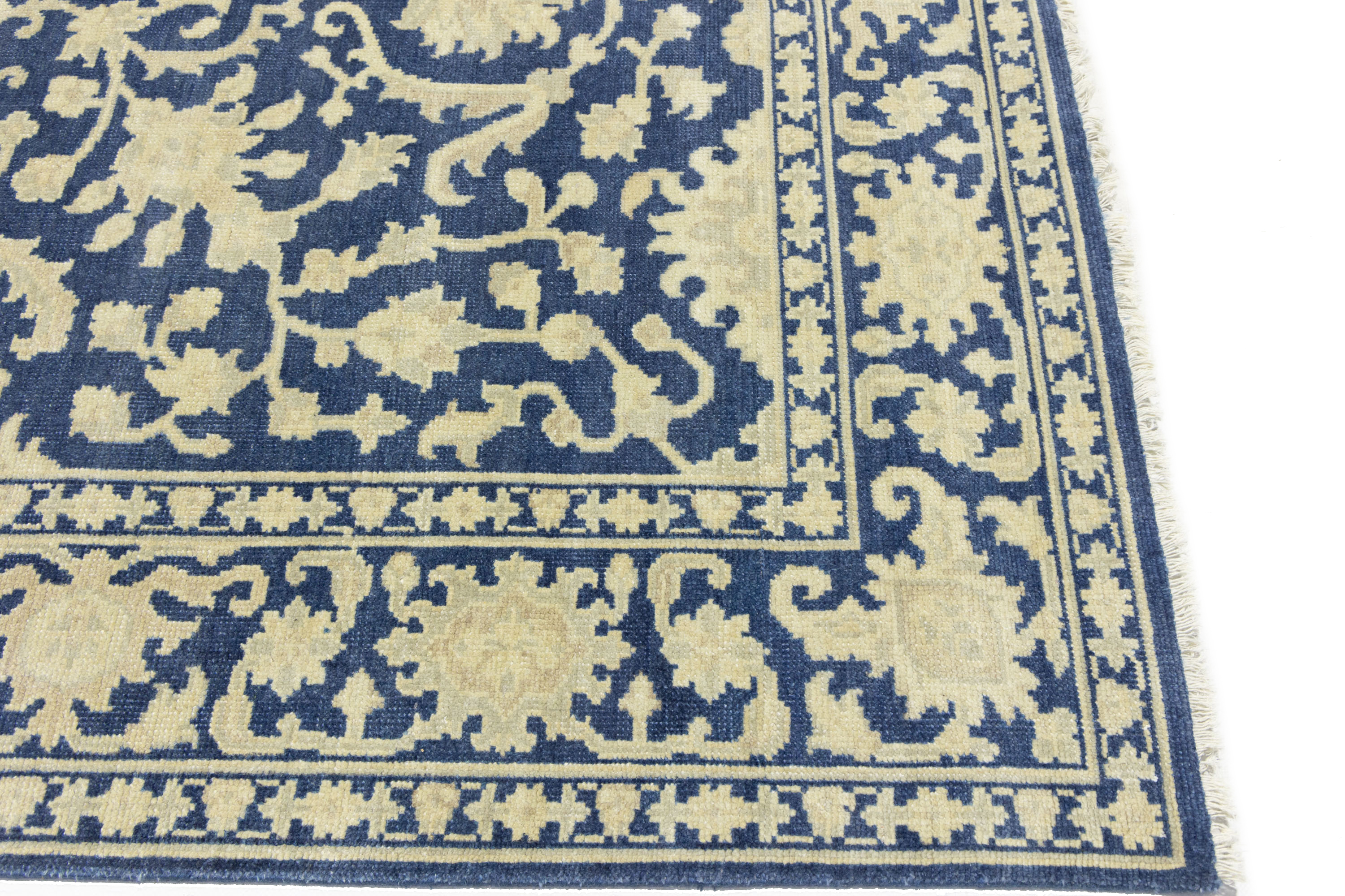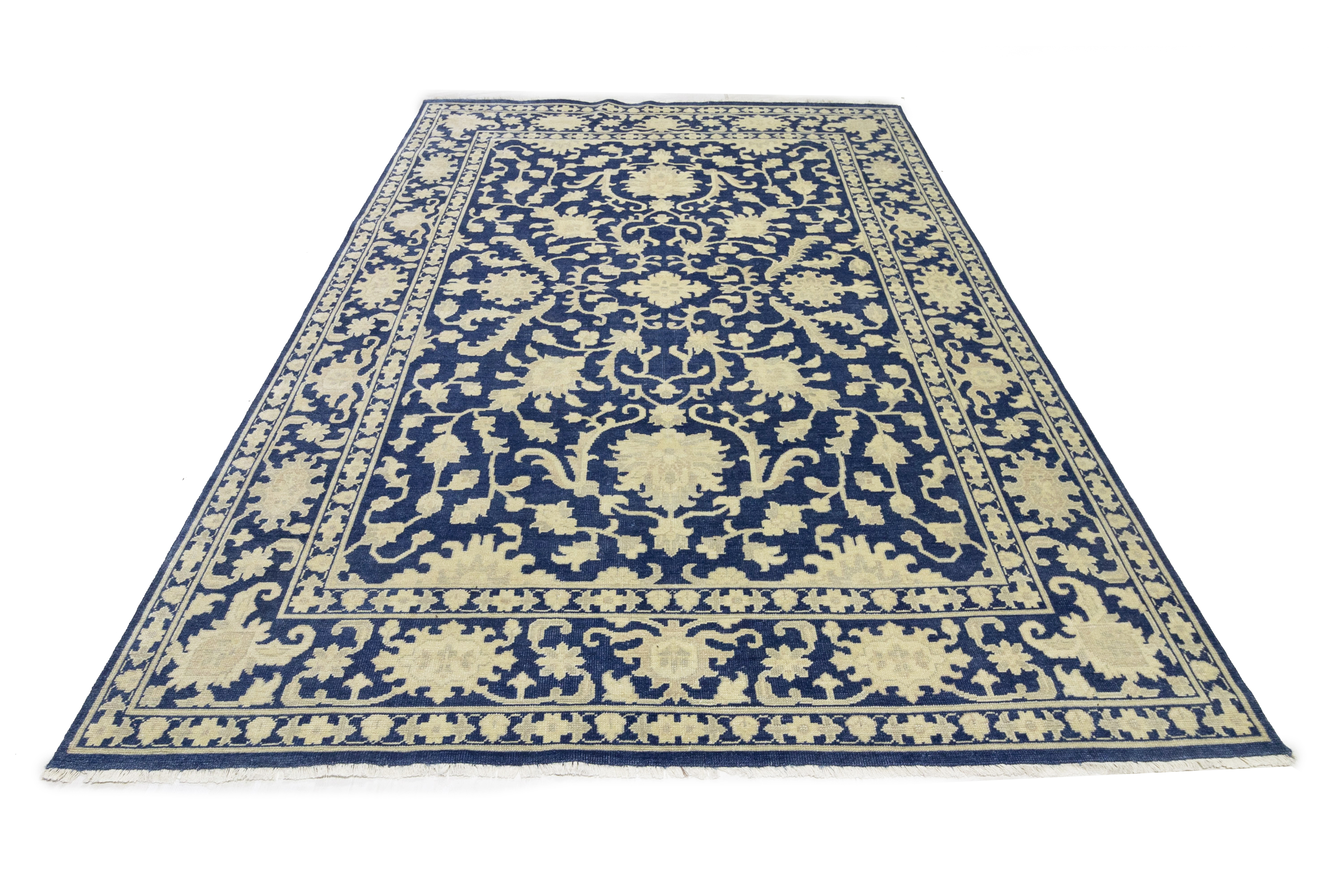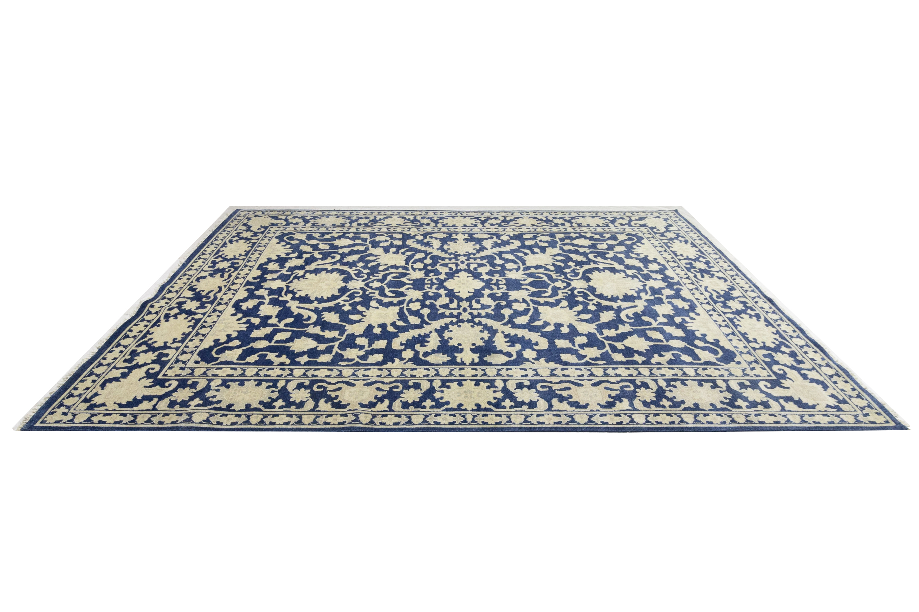 This genuine 8x10 Blue new Oriental rug was made by the hands of gifted weavers inspired by a variety of spectacular artistic designs, to recreate the aged look of the original piece with a richness of color and ornately patterned background field. What set this vintage style Oriental area rug from the others are the material and dye used (wool pile and cotton foundation), knot count, ancient designs, fantastic grades, and its regional historical connection: it has deep roots, from the story of the people who produced it to the meaning of the symbols and colors displayed across its canvas that have been praised for centuries. This Indian home décor carpet will be completely cozy and inviting that never will go out of style! Also, this Oriental rug would be among your most valuable treasures, it is a great investment that accrues value over time, and it will last for generations because was woven with high-quality, all-natural wool. Environmentally friendly, opulent yet affordable; this rug will give you a thorough amount of character to help define your living space with elegance and warmth that will capture the eyes and attention of your audience (homeowners, designers, decorators, family and friends). OT-12026