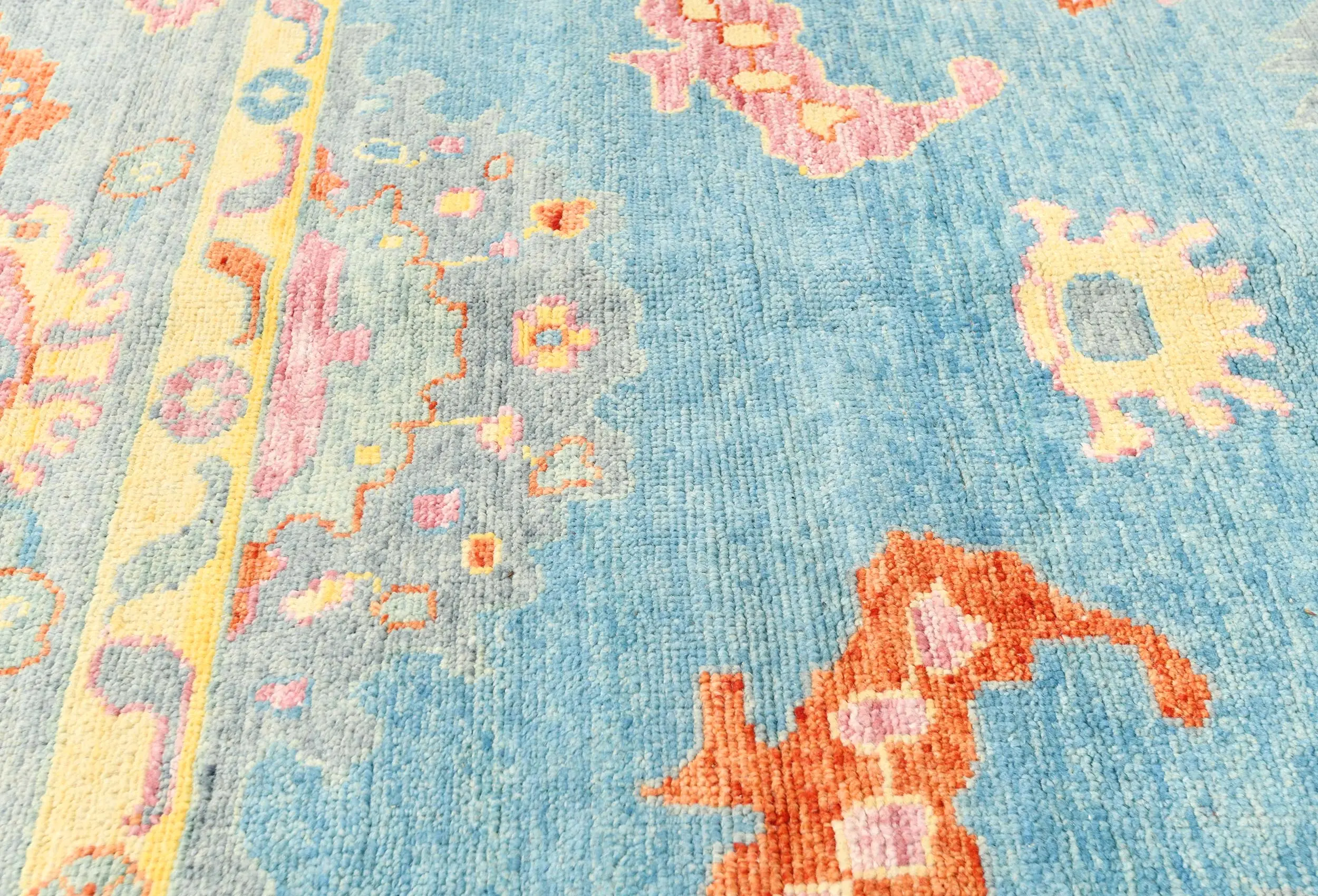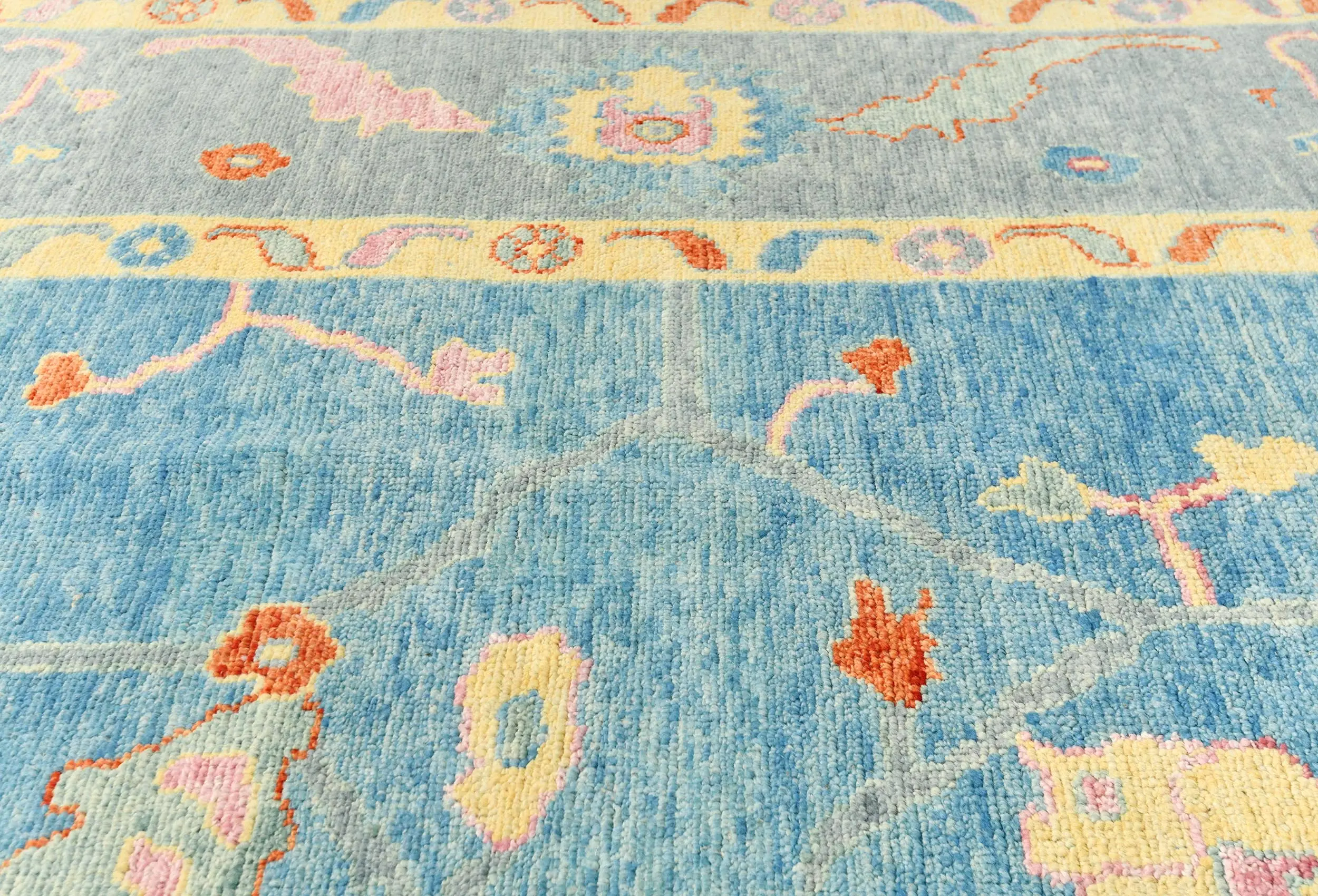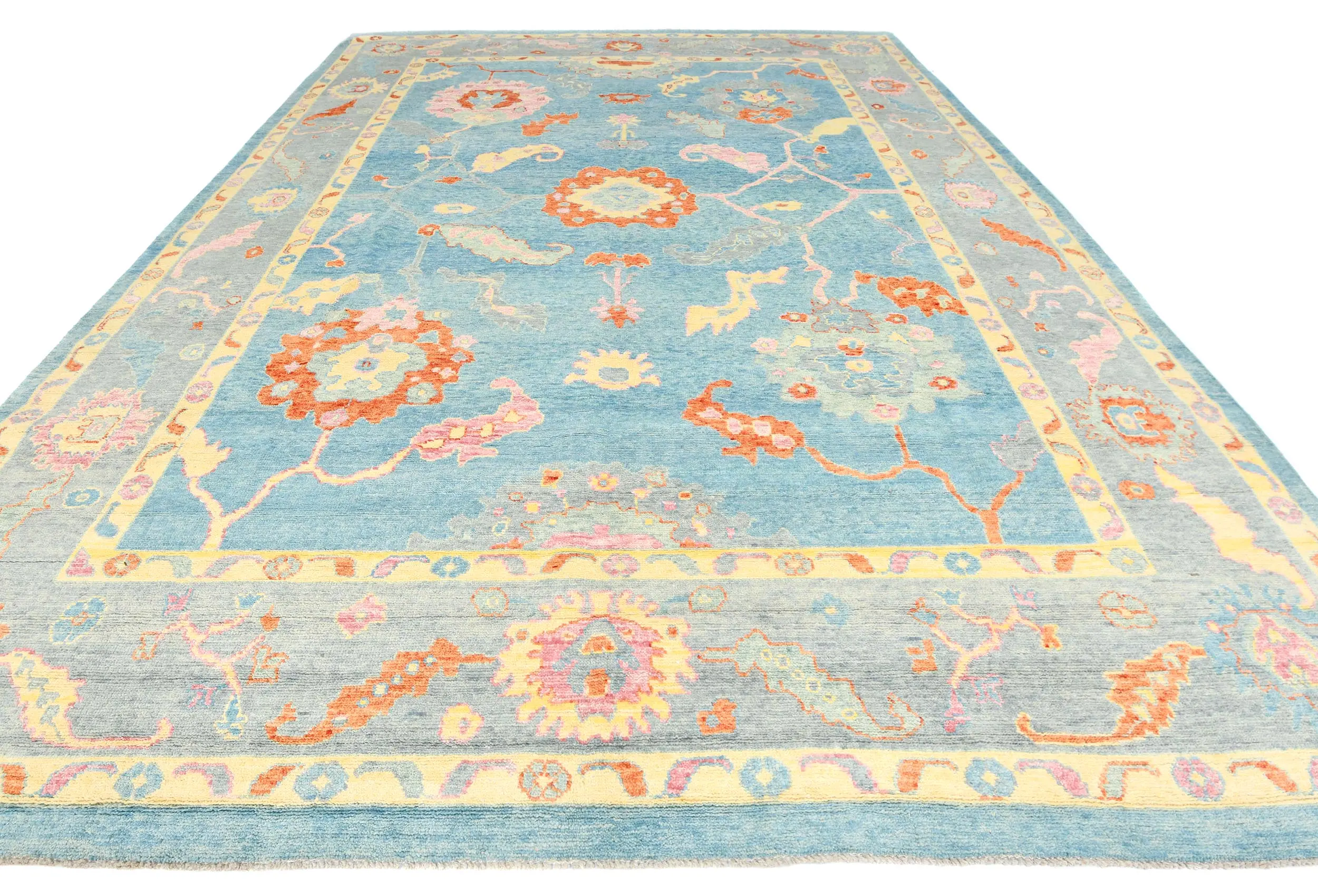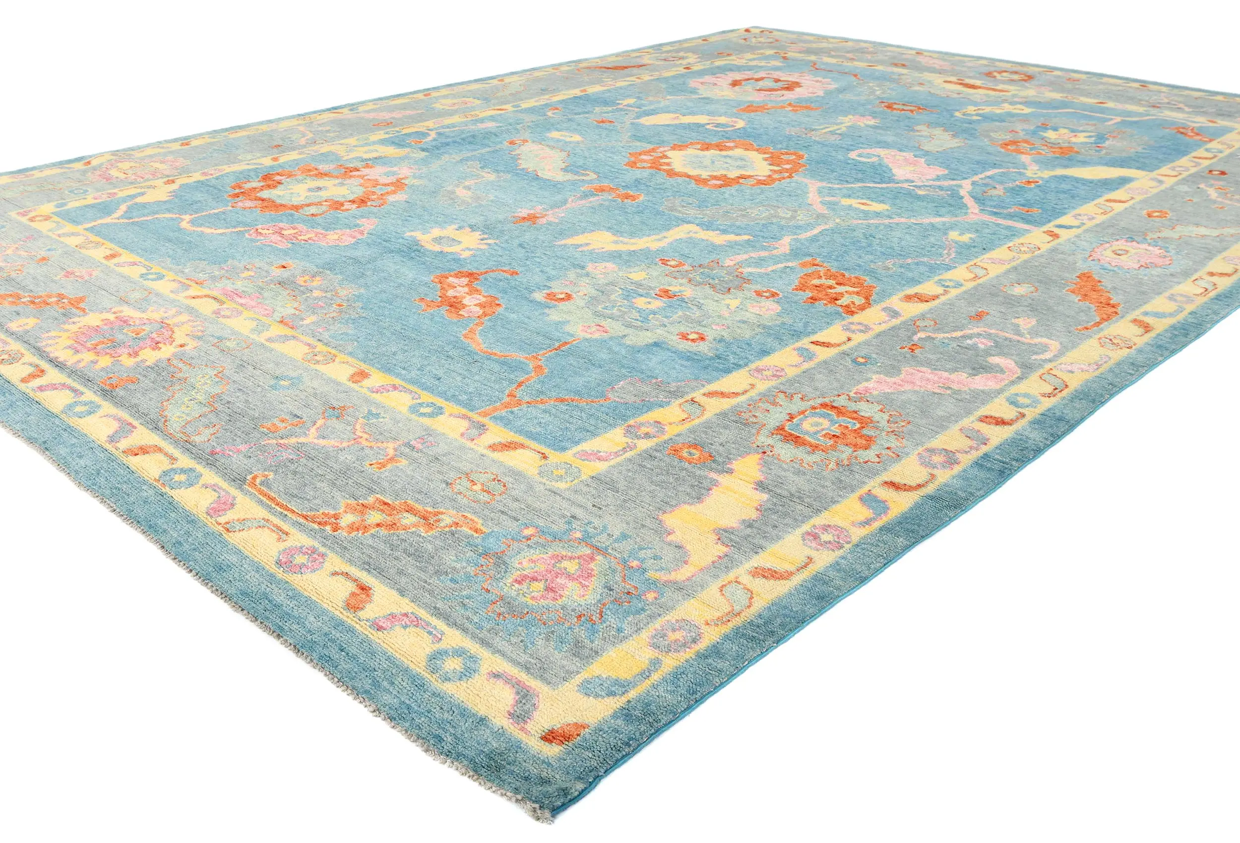 Handmade 10X14 blue Oushak oriental rug made with vegetable dyes (fine wool pile and cotton foundation), superior knot count, and alluring ancient designs. This Oriental rug never will go out of style and would be among your most valuable treasures.