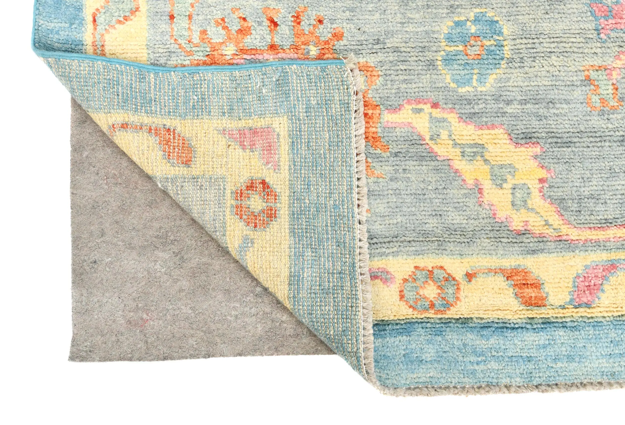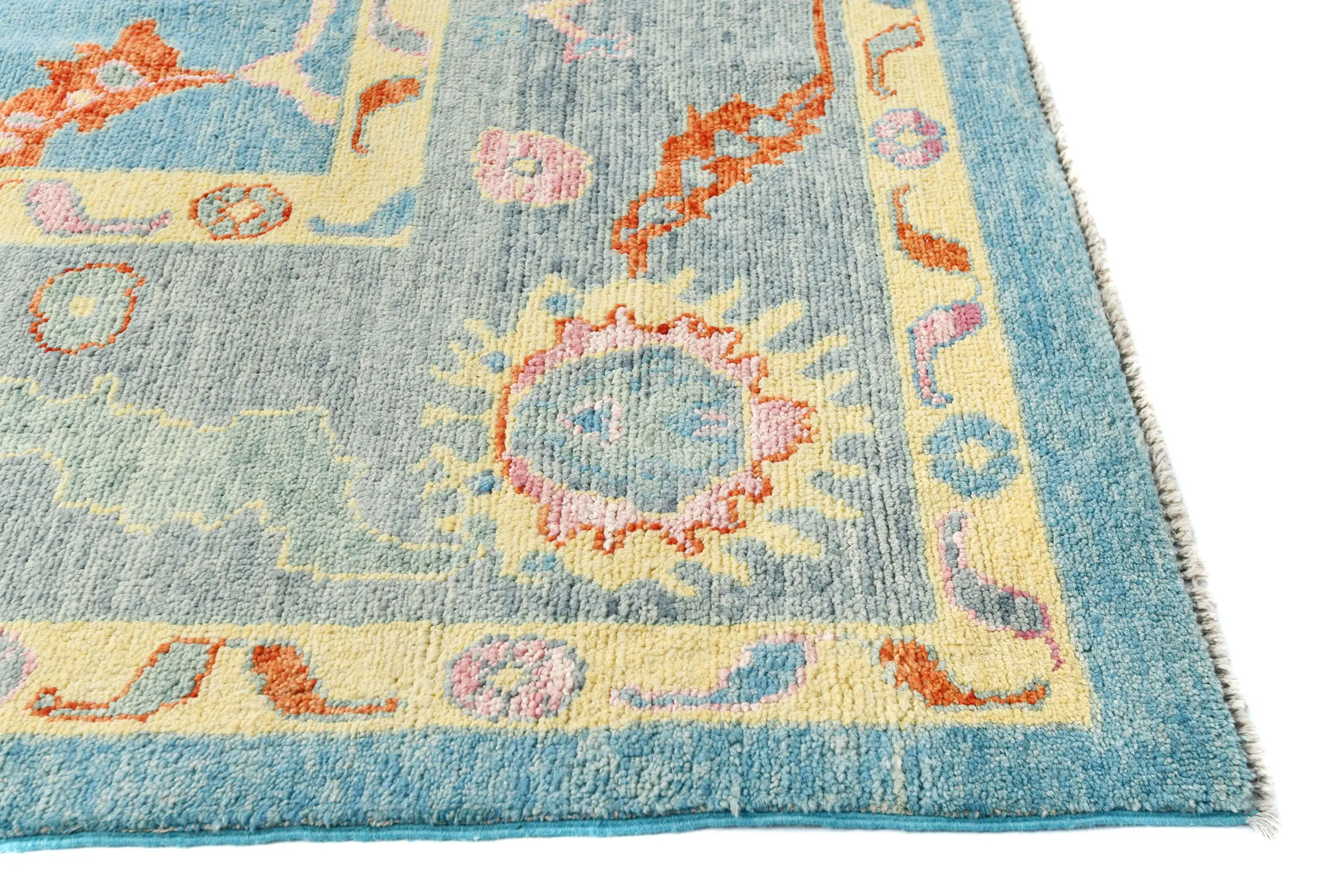 Muted Blue Floral Transitional 10X14 Oushak Oriental Rug