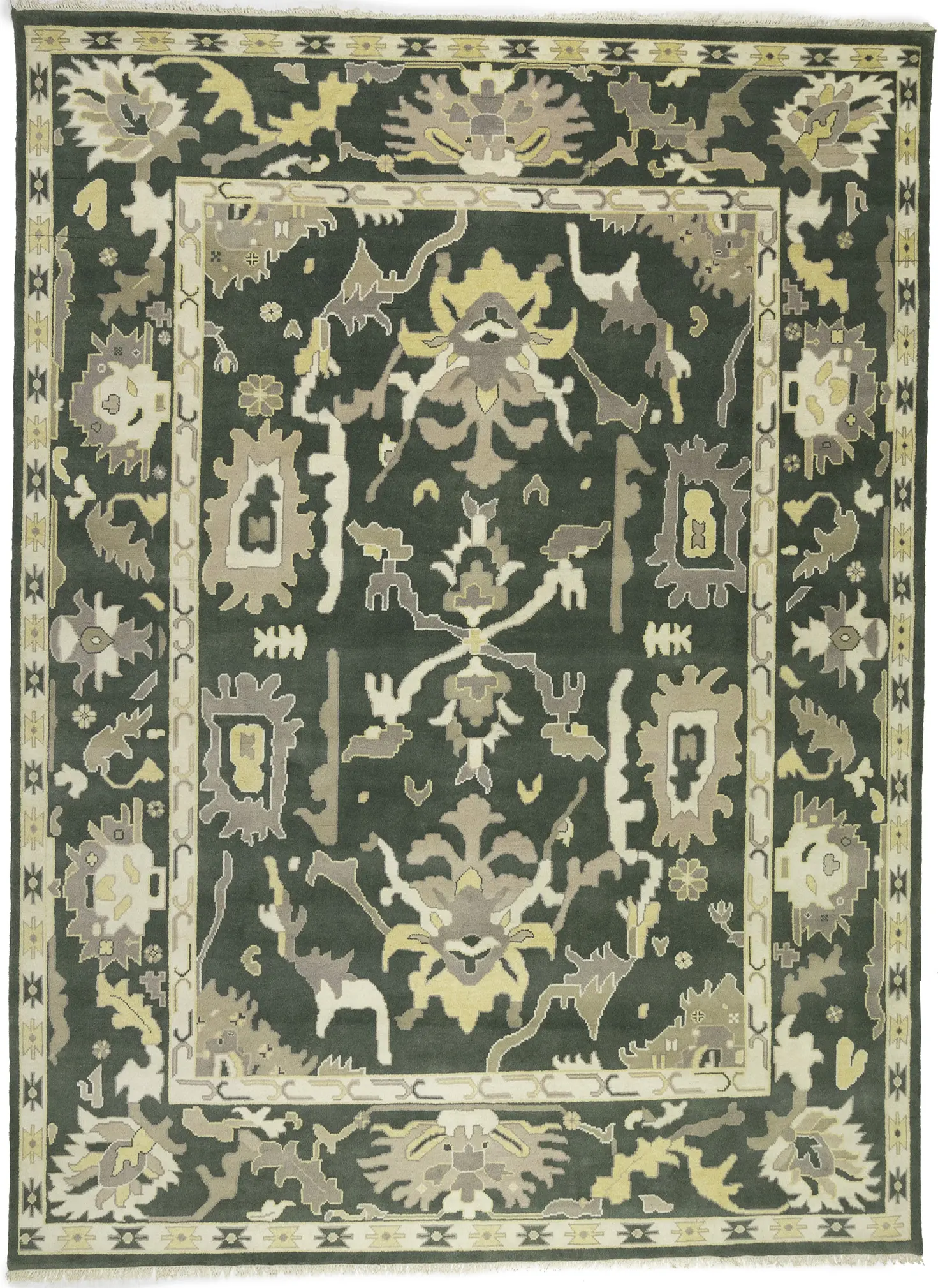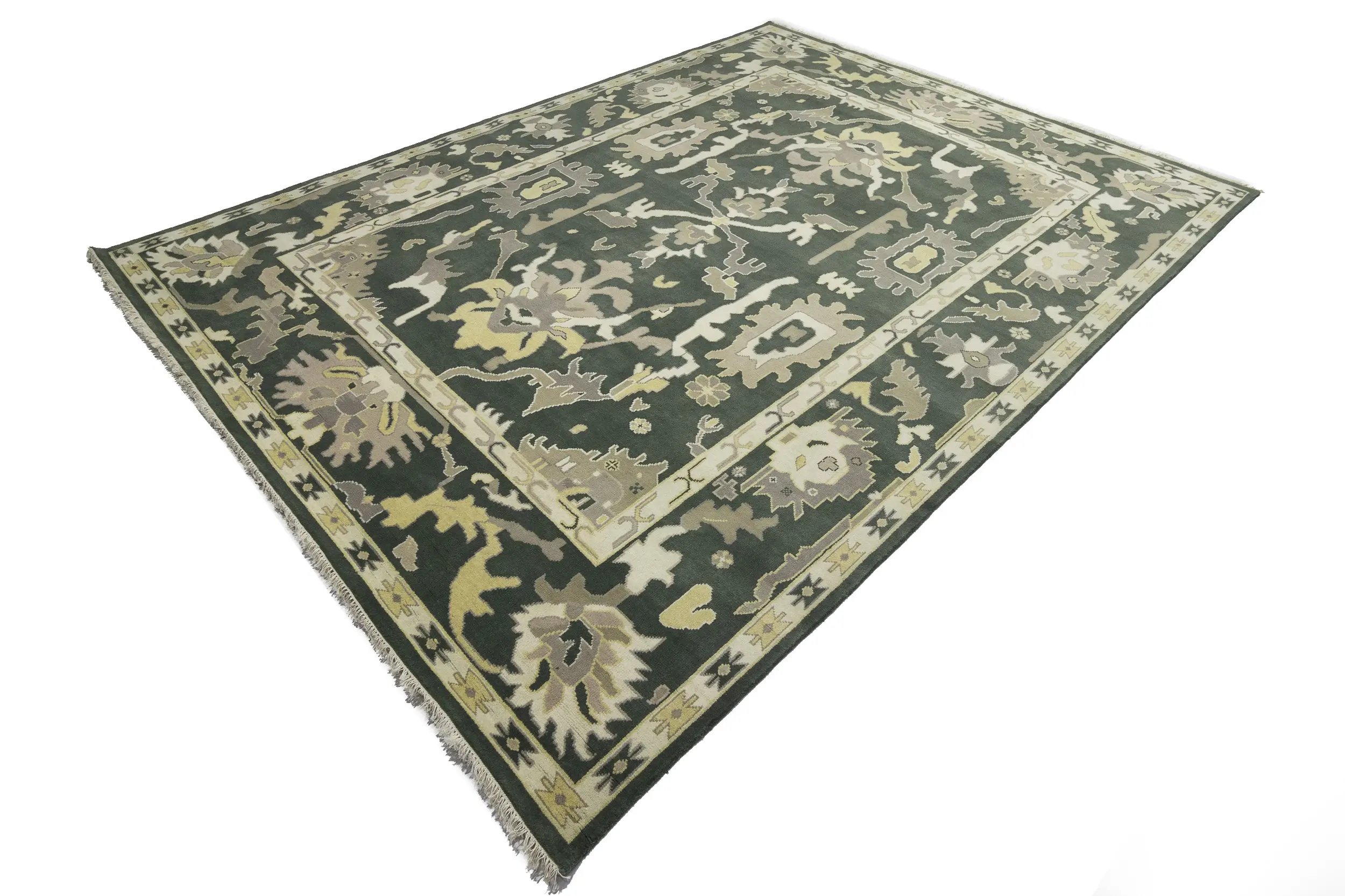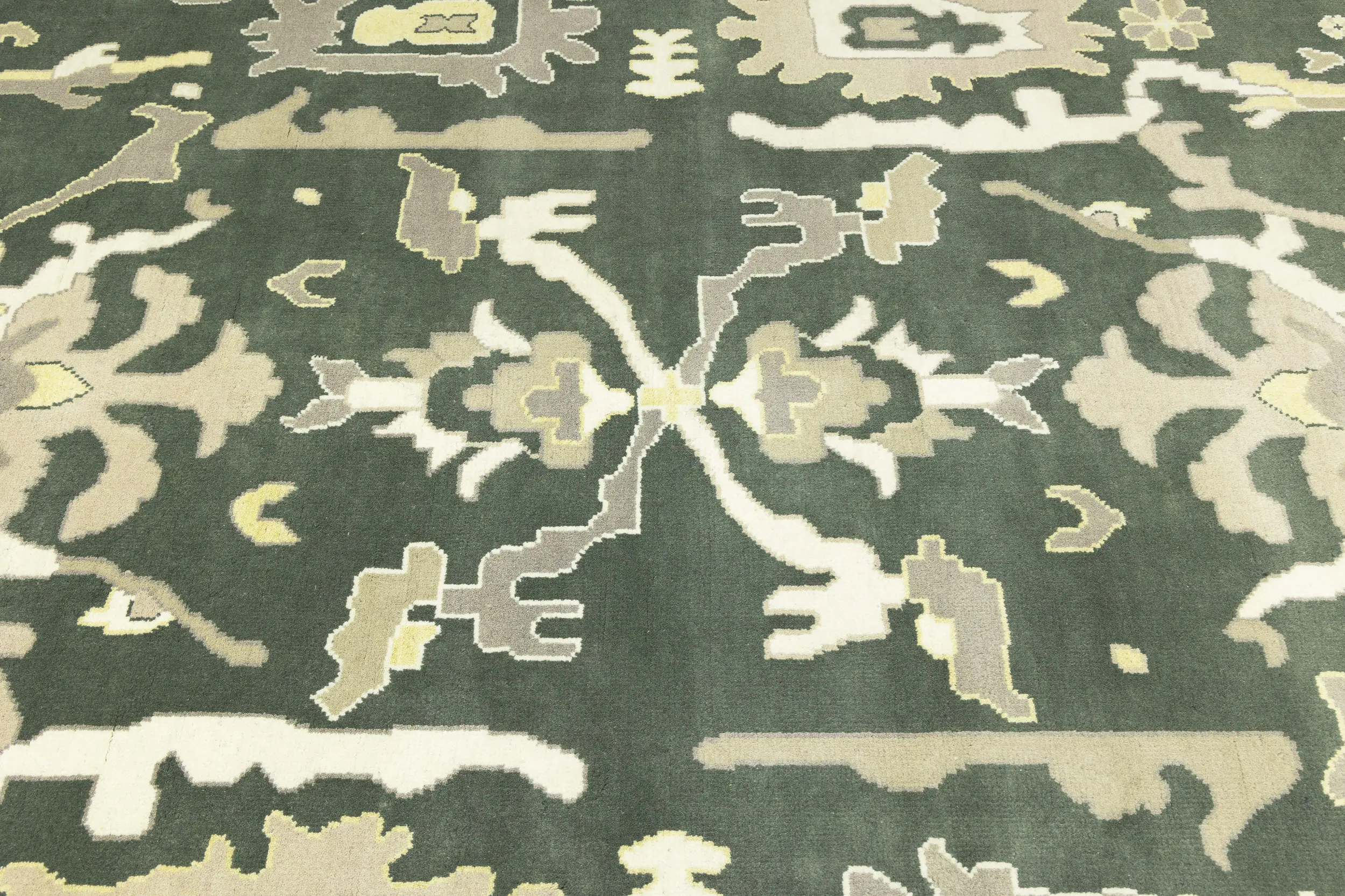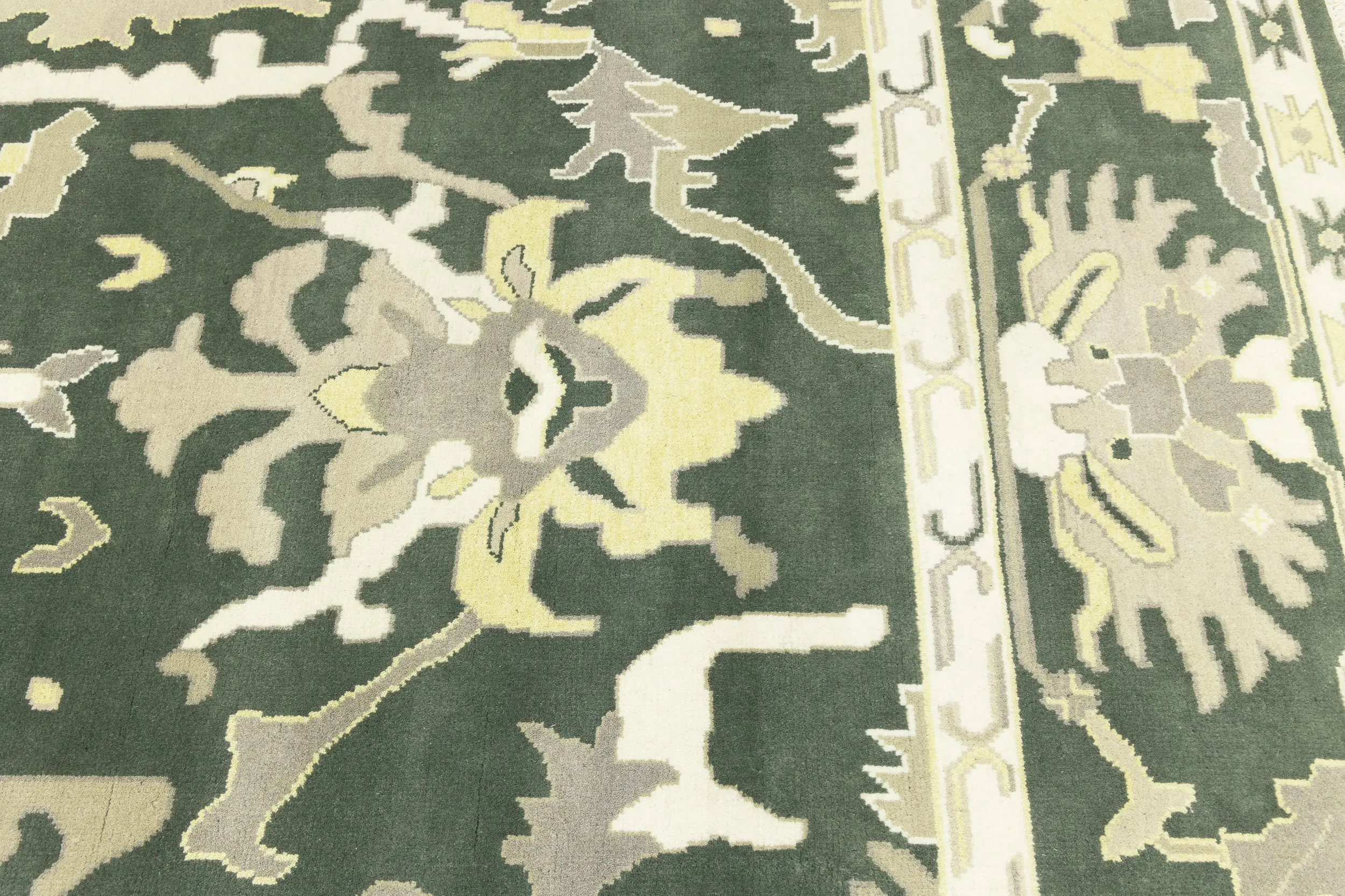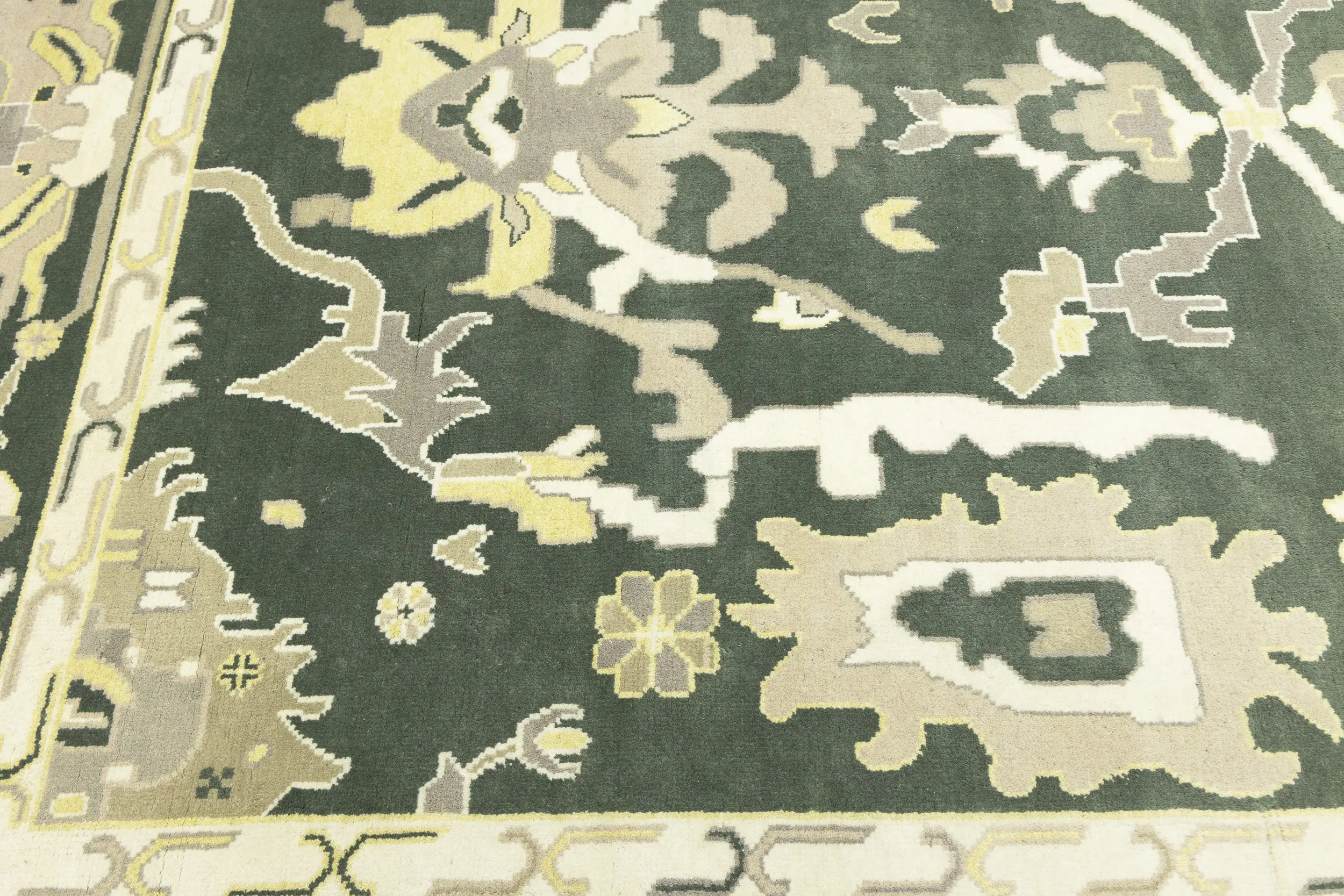 This original 10X14 Green Slate new Oriental rug was finely knotted by the hands of weavers influenced by a variety of amazing artistic designs, to recreate the aged look of the exceptional piece with a richness of color and embellished background field. What set this vintage style Oriental area rug from the others are the material and dye used (wool pile and cotton foundation), knot count, antique designs, fantastic grades, and its regional historical connection: it has deep roots, from the story of the people who produced it to the meaning of the symbols and colors displayed across its canvas that have been praised for centuries. This Indian home décor carpet will be completely cozy and inviting that never will go out of style! Also, this Oriental rug would be among your most valuable treasures, it is a great investment that increase in value over time, and it will last a lifetime because was woven with high-quality, all-natural wool. Eco-friendly, opulent yet affordable; this rug will give you an extra pop of character to help define your home environment with luxury and warmth that will capture the eyes and attention of your audience (homeowners, designers, decorators, family and friends).
