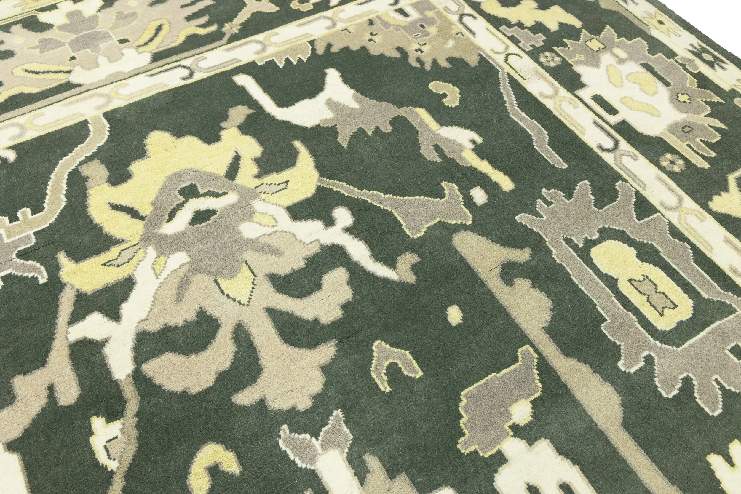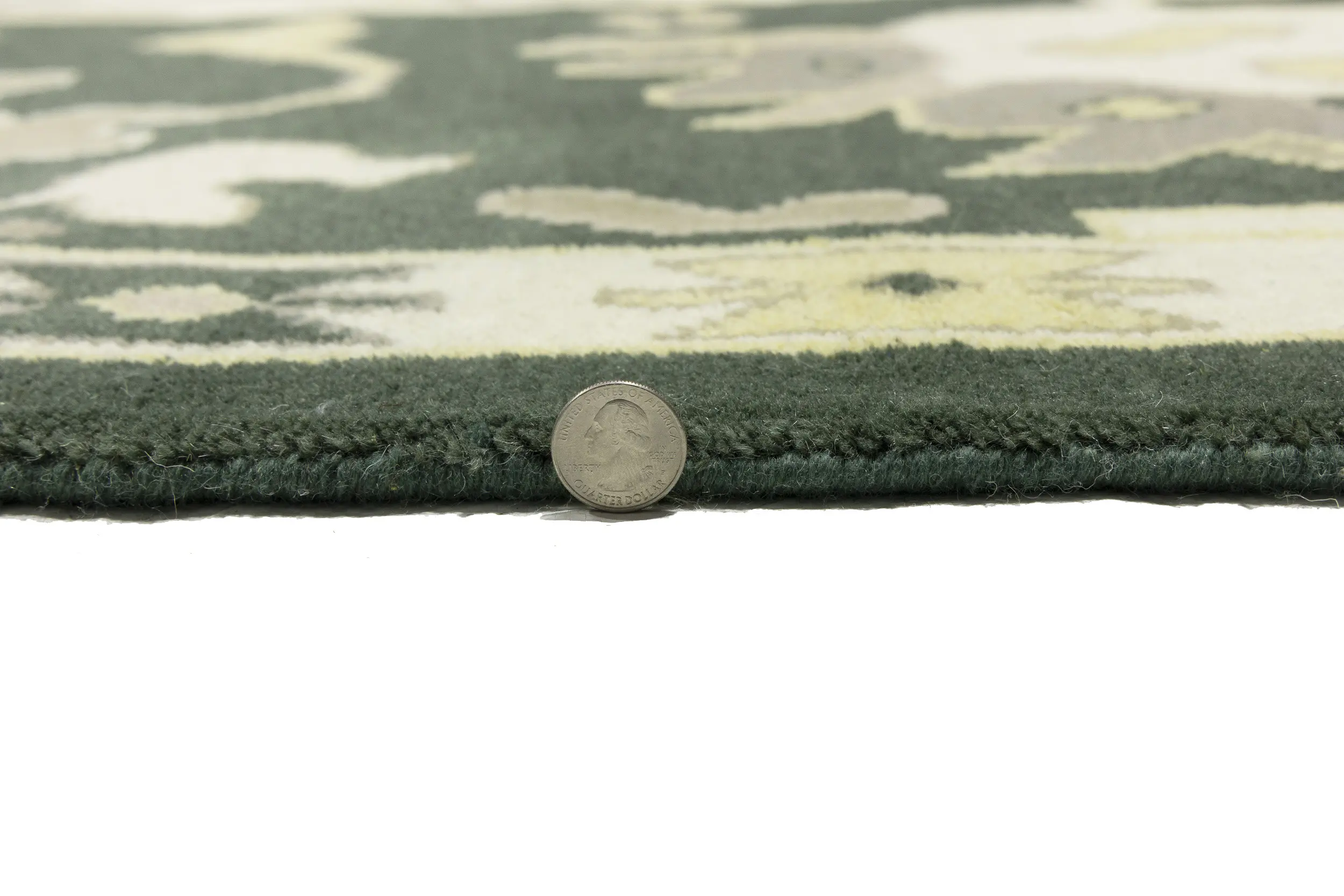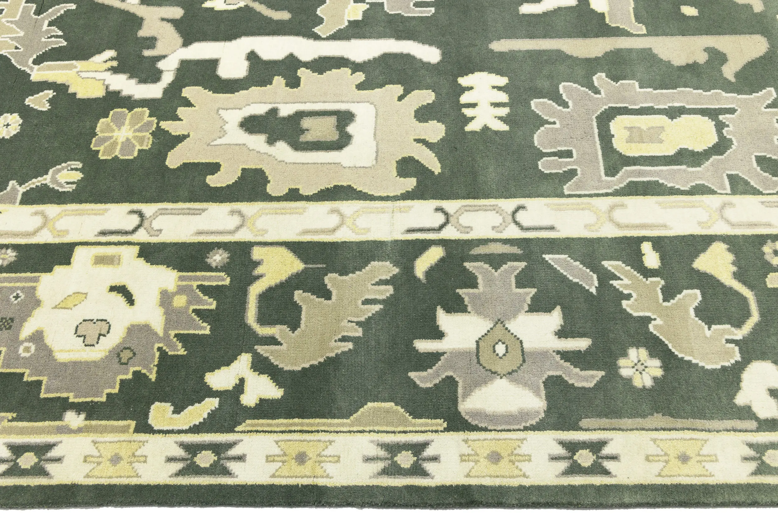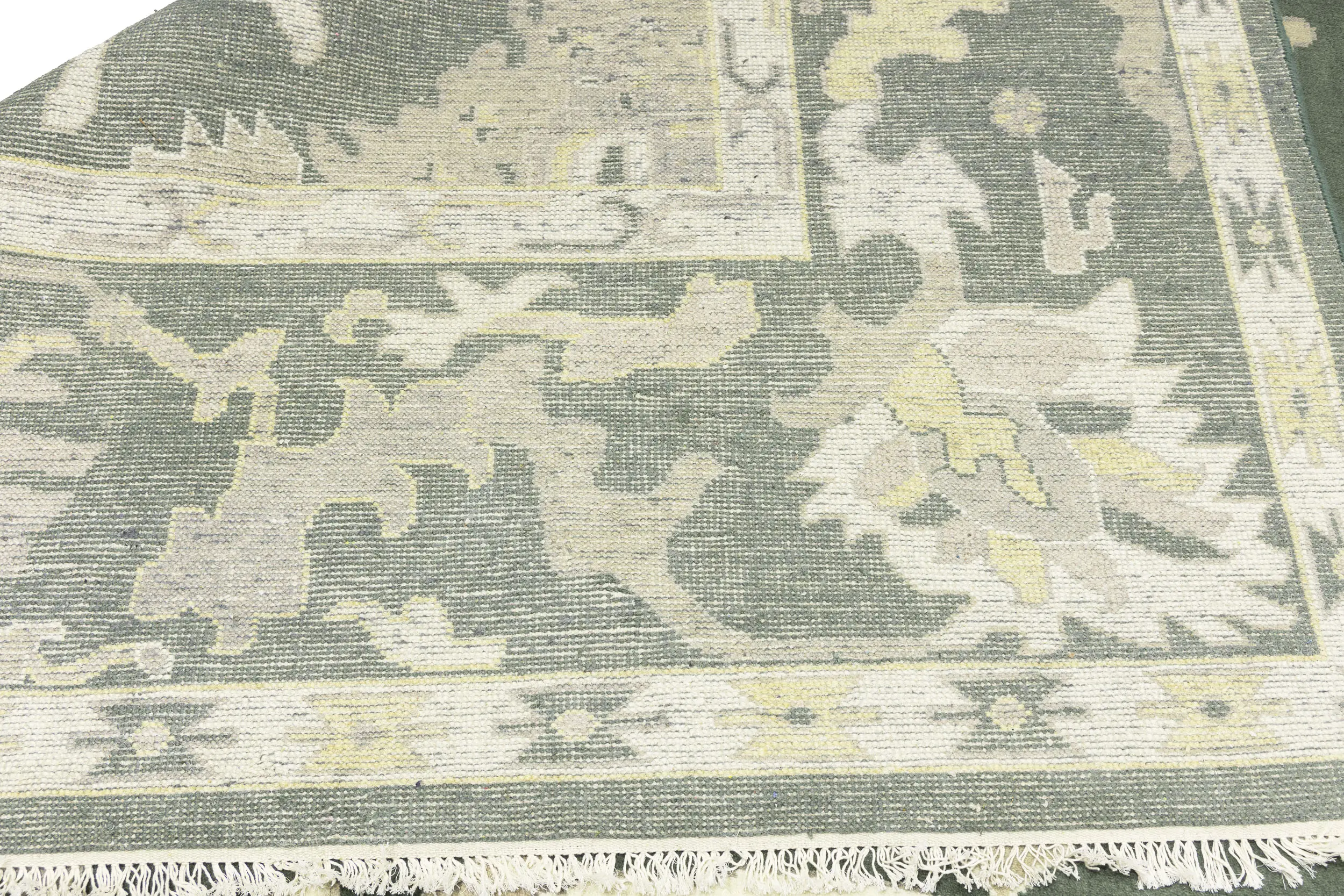 This original 10X14 Green Slate new Oriental rug was finely knotted by the hands of weavers influenced by a variety of amazing artistic designs, to recreate the aged look of the exceptional piece with a richness of color and embellished background field. What set this vintage style Oriental area rug from the others are the material and dye used (wool pile and cotton foundation), knot count, antique designs, fantastic grades, and its regional historical connection: it has deep roots, from the story of the people who produced it to the meaning of the symbols and colors displayed across its canvas that have been praised for centuries. This Indian home décor carpet will be completely cozy and inviting that never will go out of style! Also, this Oriental rug would be among your most valuable treasures, it is a great investment that increase in value over time, and it will last a lifetime because was woven with high-quality, all-natural wool. Eco-friendly, opulent yet affordable; this rug will give you an extra pop of character to help define your home environment with luxury and warmth that will capture the eyes and attention of your audience (homeowners, designers, decorators, family and friends).