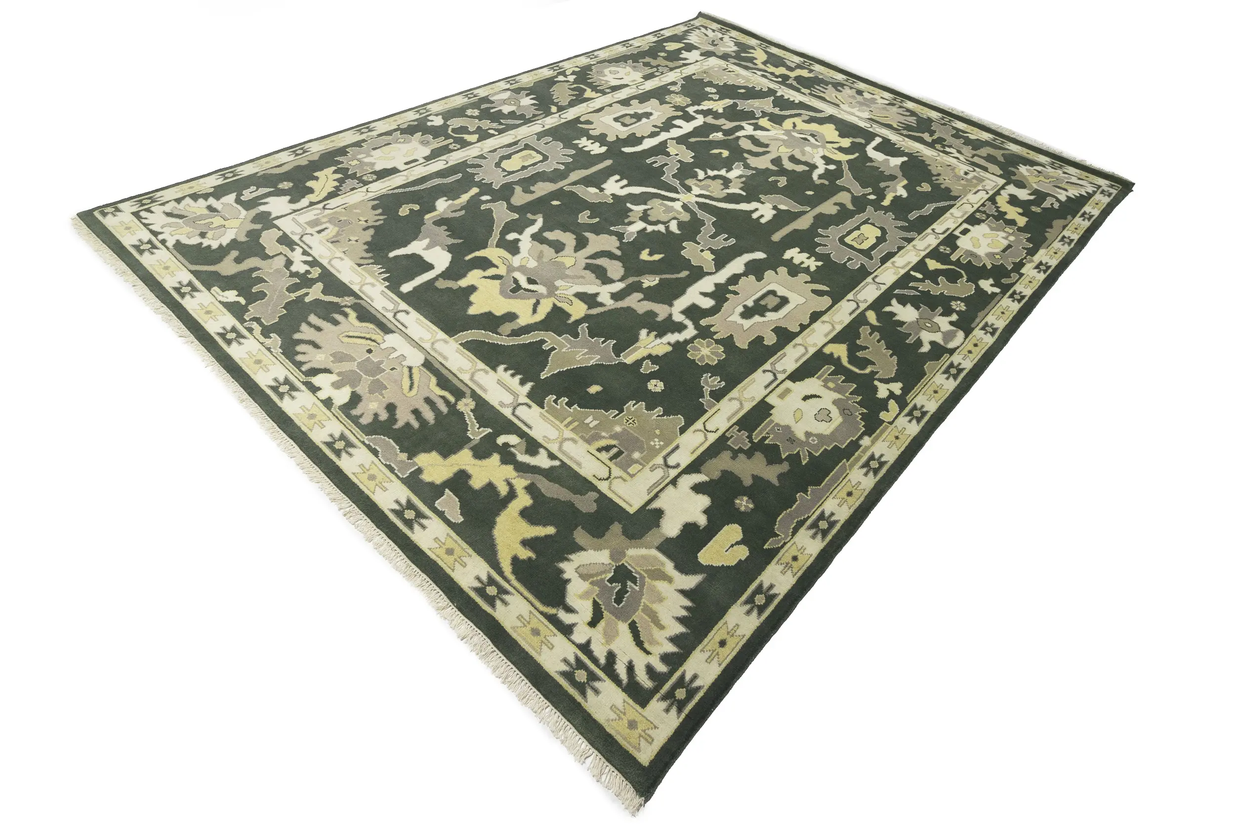 Hand Knotted 10X14 Green Slate oriental rug made with natural dyes (fine wool pile and cotton foundation), superior knot count, and alluring ancient designs. This Oriental rug never will go out of style and would be among your most valuable treasures.