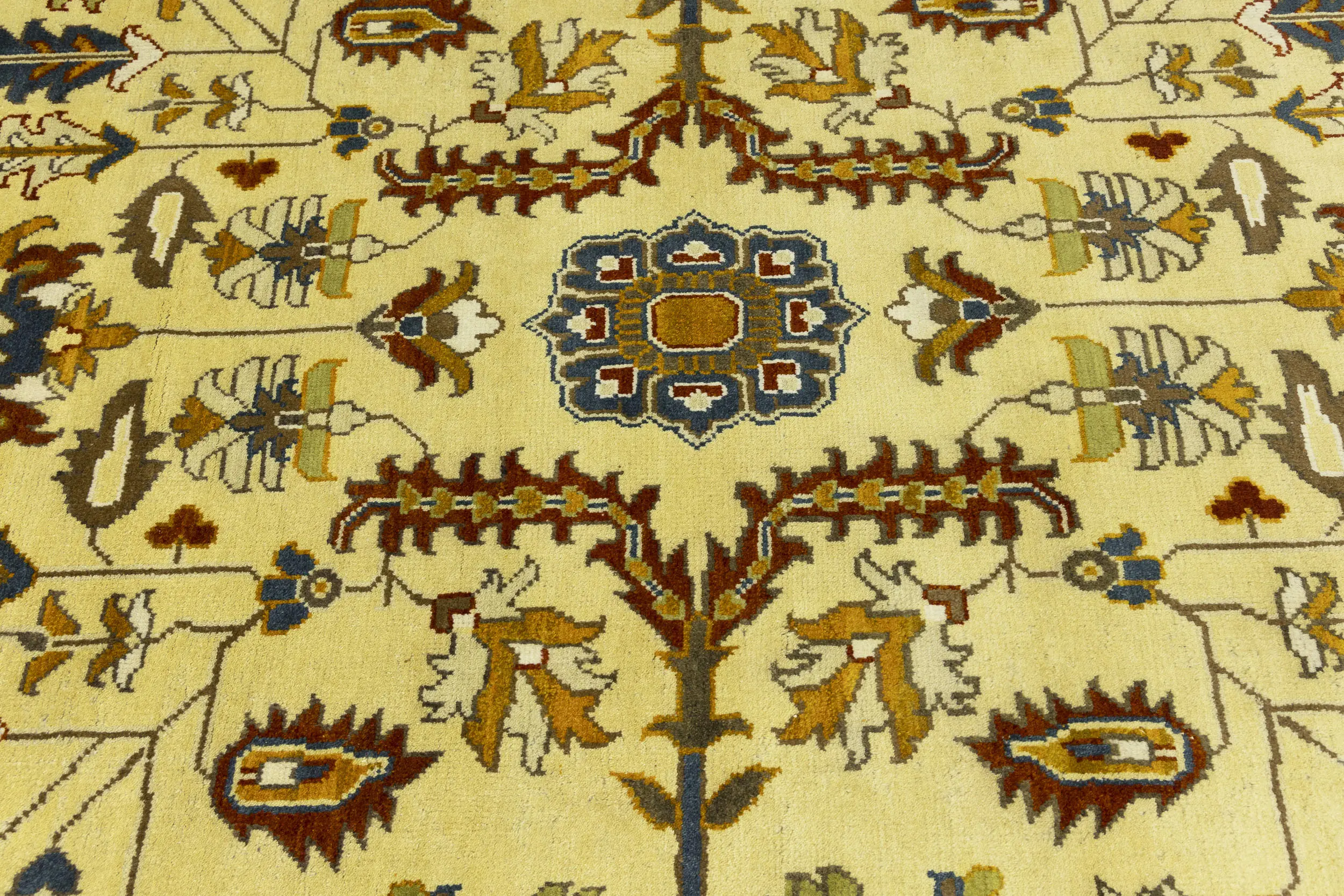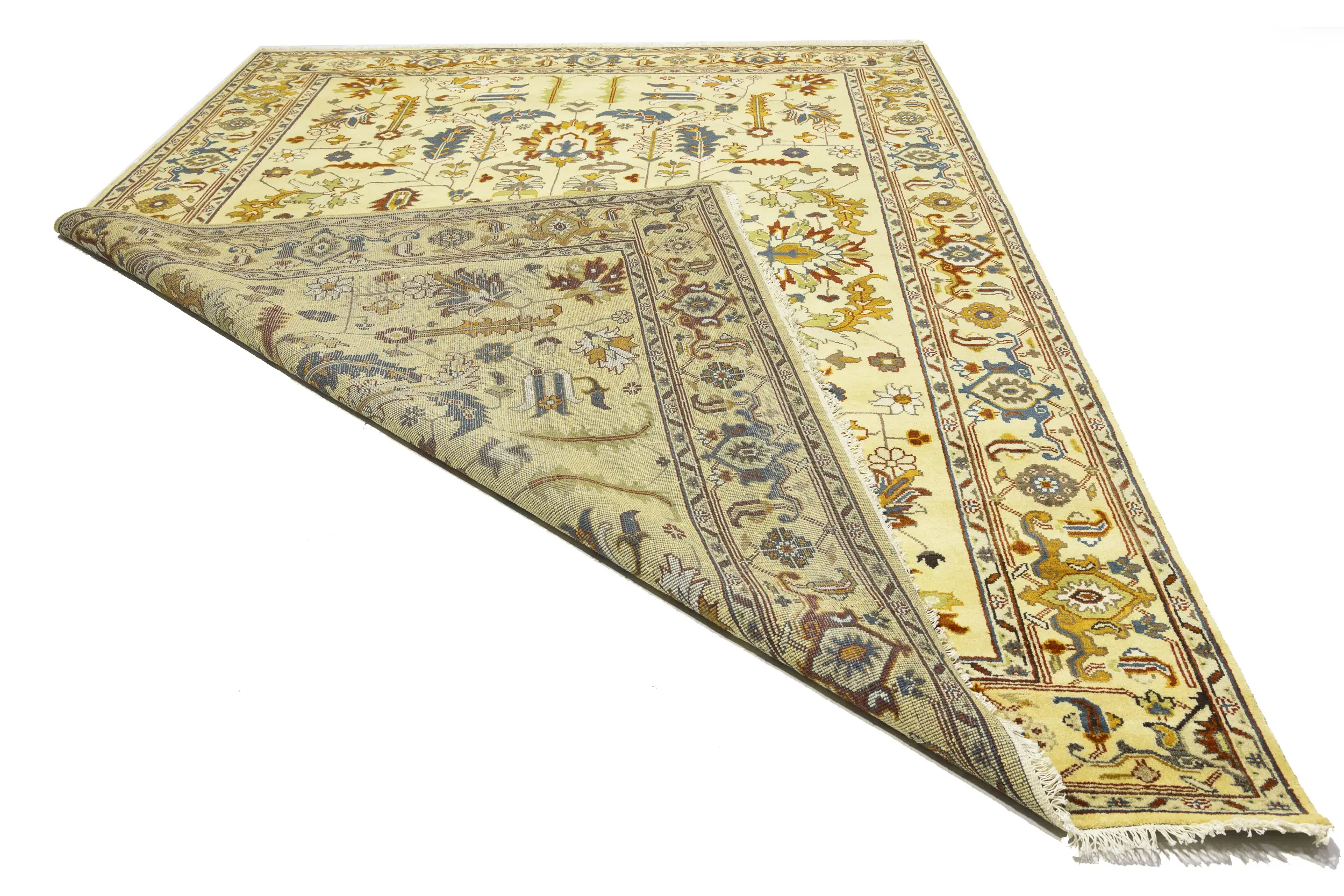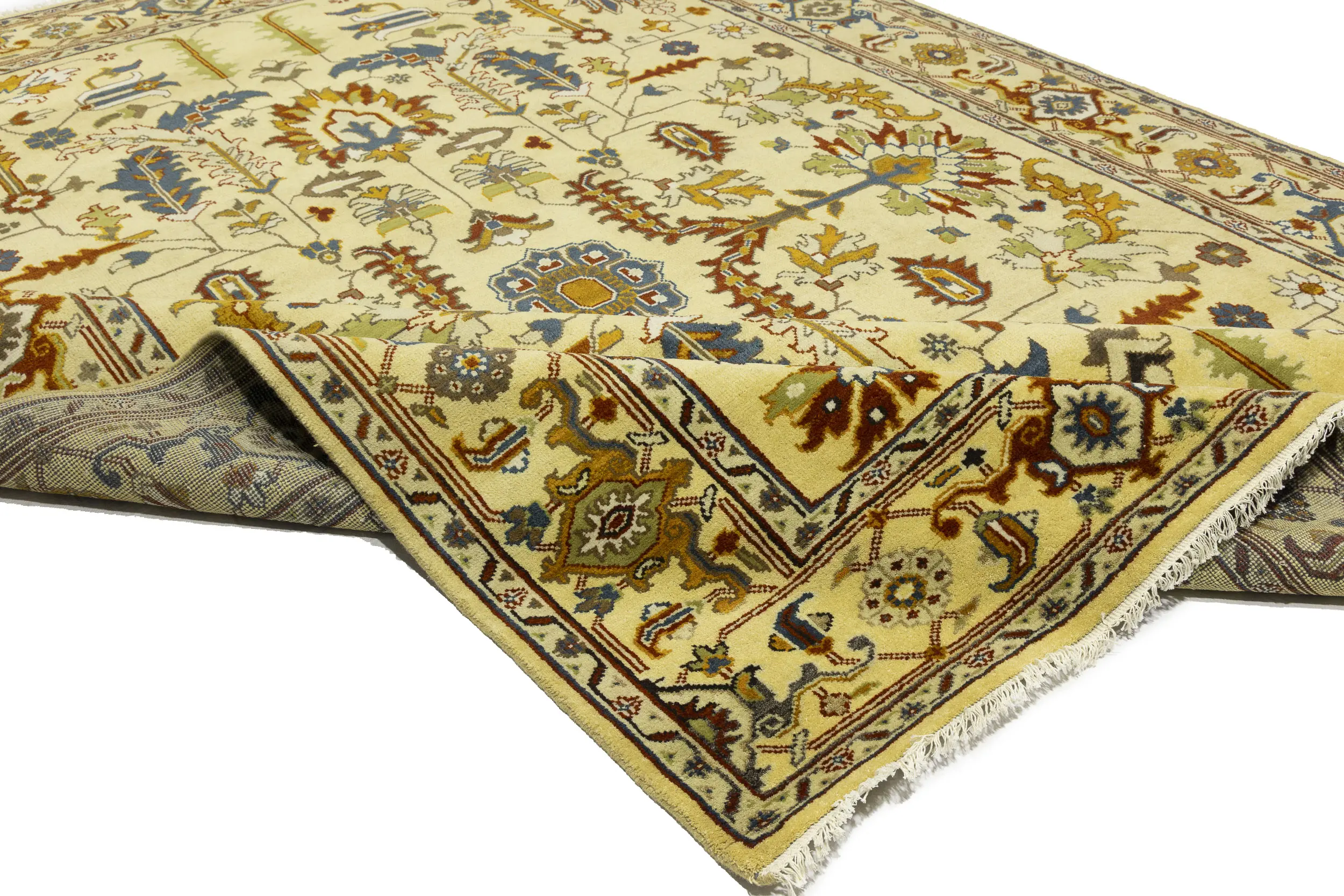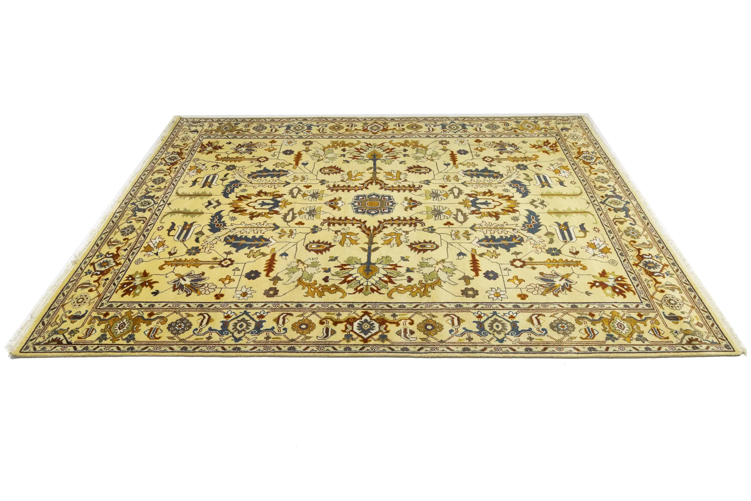 Handmade 10X14 Yellowish Cream oriental rug made with vegetable dyes (fine wool pile and cotton foundation), superior knot count, and appealing ancient designs. This Oriental rug never will go out of style and would be among your most valuable treasures.