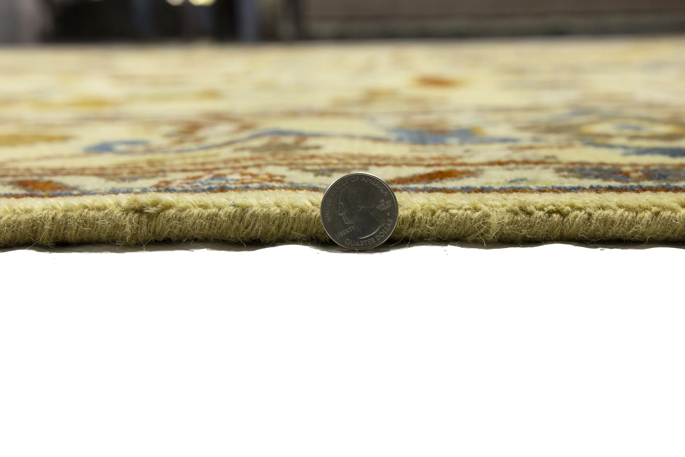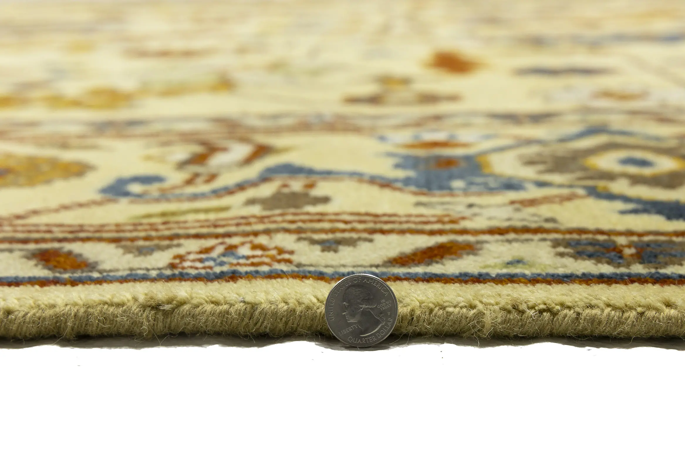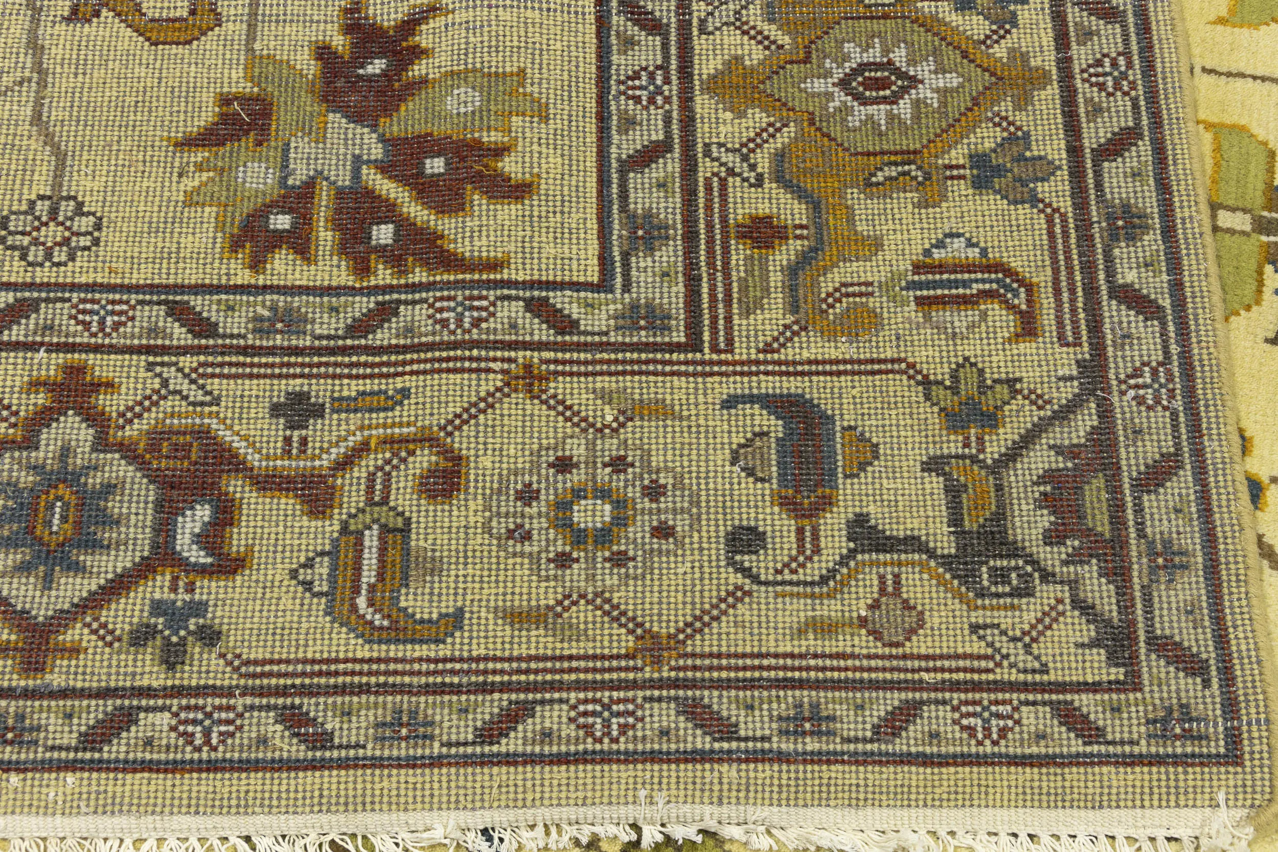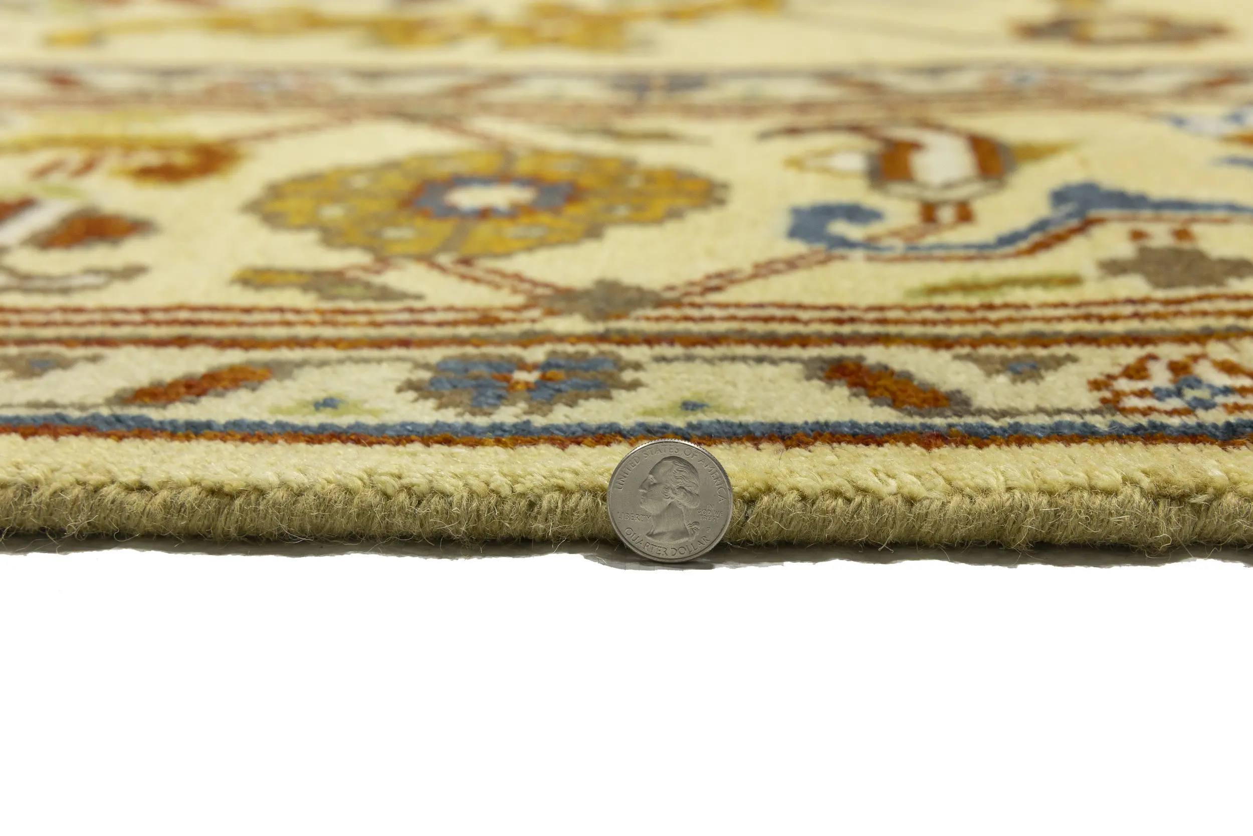 Handmade 10X14 Yellowish Cream oriental rug made with vegetable dyes (fine wool pile and cotton foundation), superior knot count, and appealing ancient designs. This Oriental rug never will go out of style and would be among your most valuable treasures.
