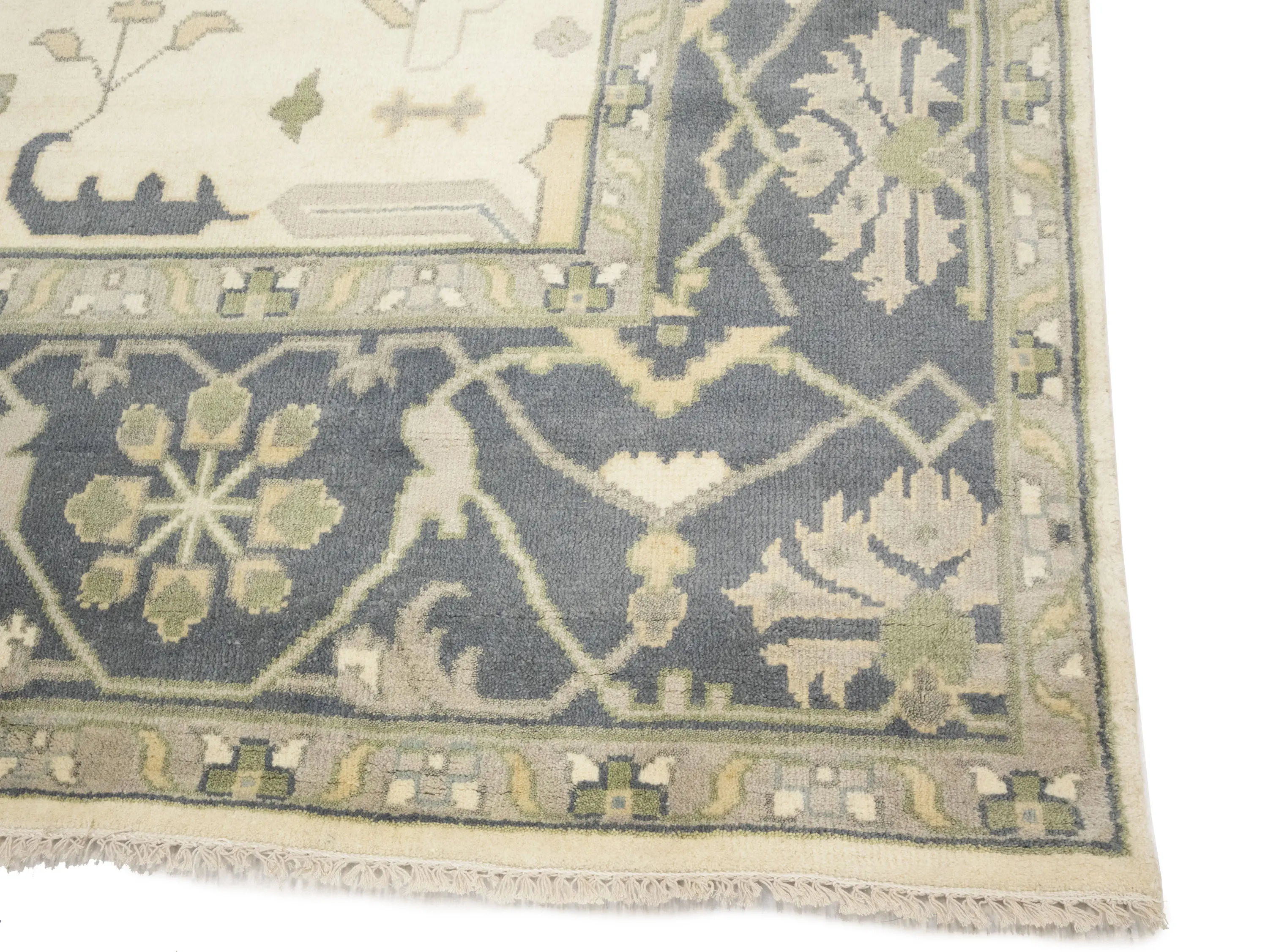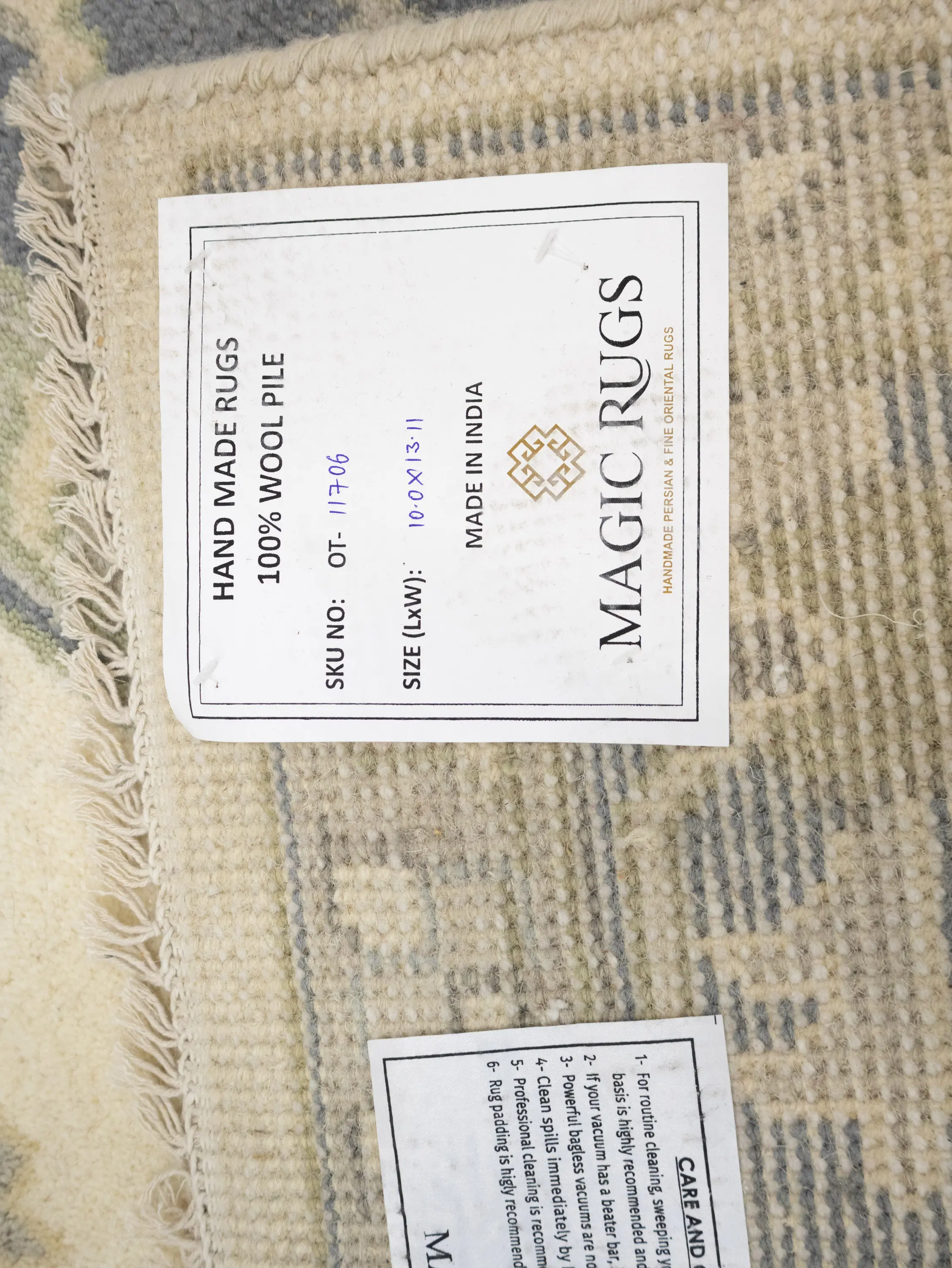 This genuine 10X14 cream new Oriental rug was made by the hands of gifted weavers inspired by a variety of spectacular artistic designs, to recreate the aged look of the original piece with a richness of color and ornately patterned background field. What set this vintage style Oriental area rug from the others are the material and dye used (wool pile and cotton foundation), knot count, ancient designs, fantastic grades, and its regional historical connection: it has deep roots, from the story of the people who produced it to the meaning of the symbols and colors displayed across its canvas that have been praised for centuries. This Indian home décor carpet will be completely cozy and inviting that never will go out of style! Also, this Oriental rug would be among your most valuable treasures, it is a great investment that accrues value over time, and it will last for generations because was woven with high-quality, all-natural wool. Environmentally friendly, opulent yet affordable; this rug will give you a thorough amount of character to help define your living space with elegance and warmth that will capture the eyes and attention of your audience (homeowners, designers, decorators, family and friends).