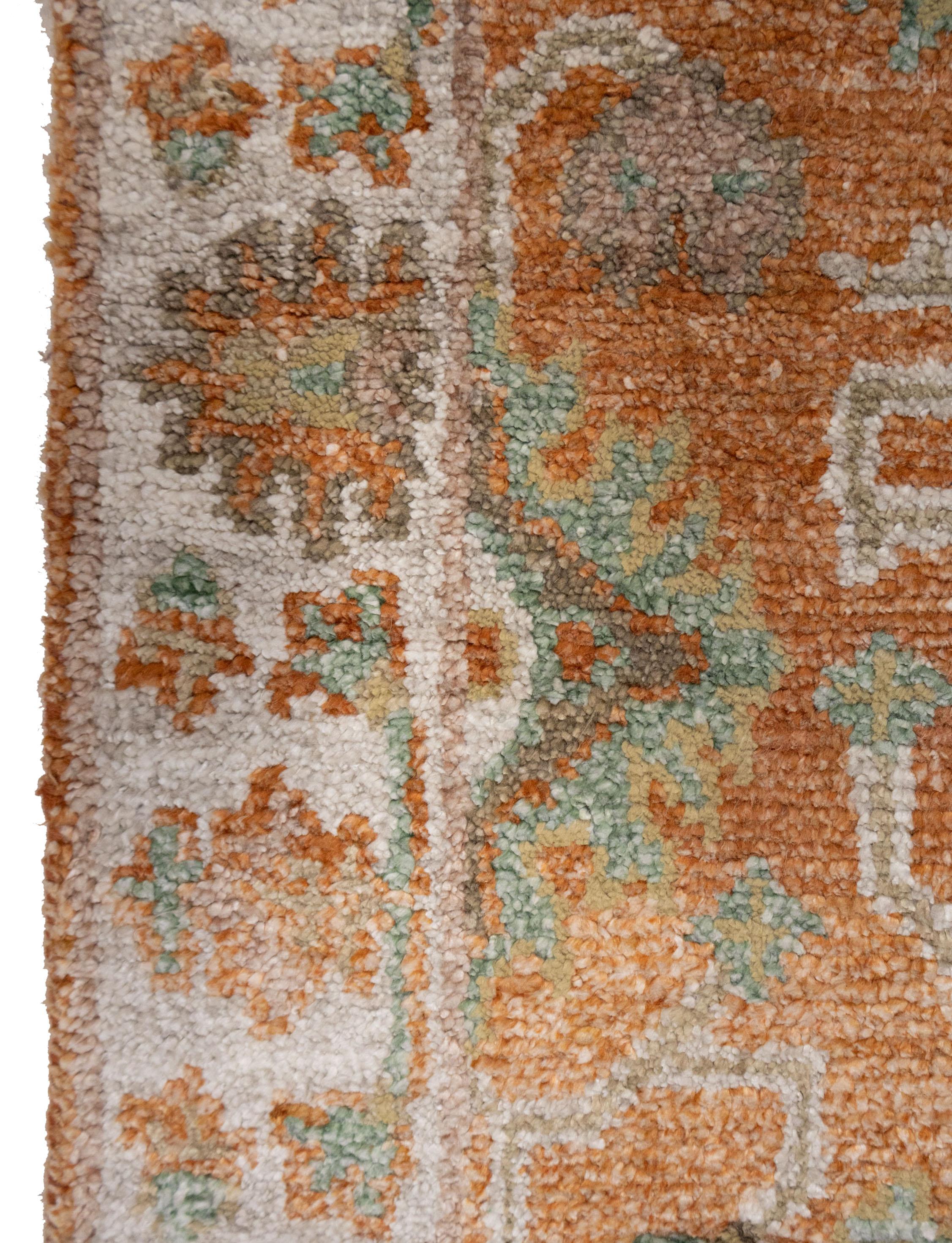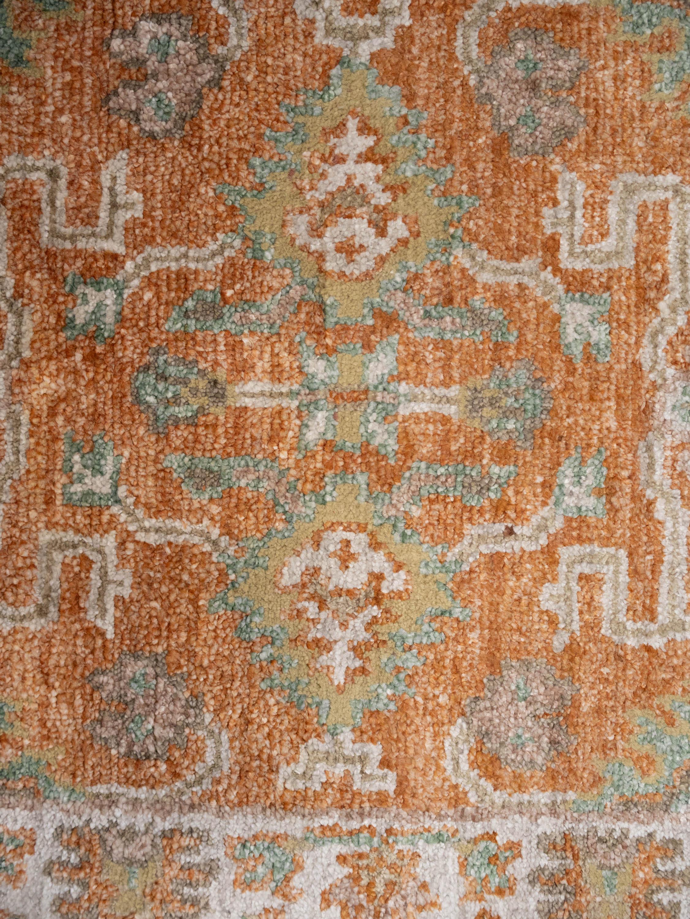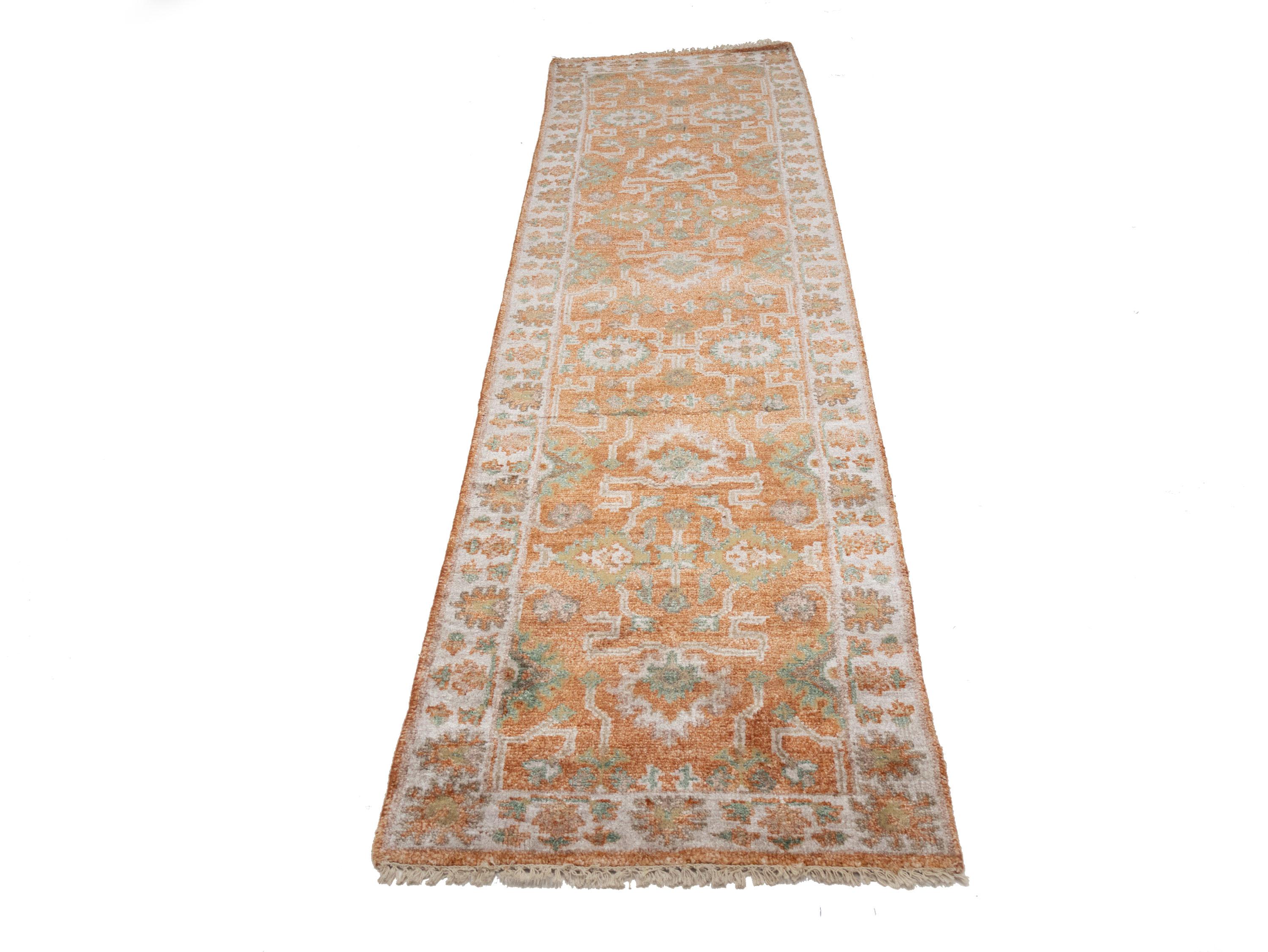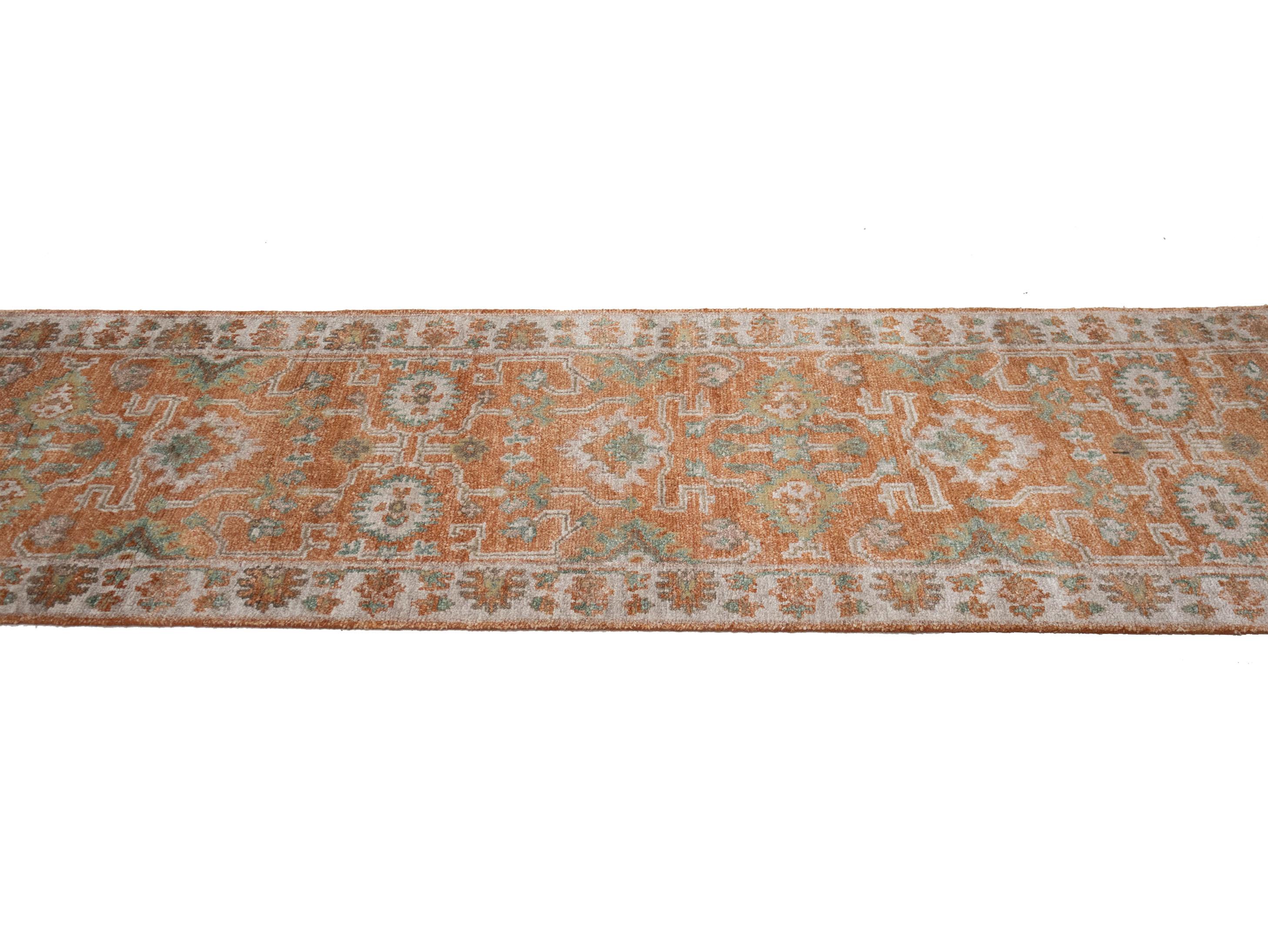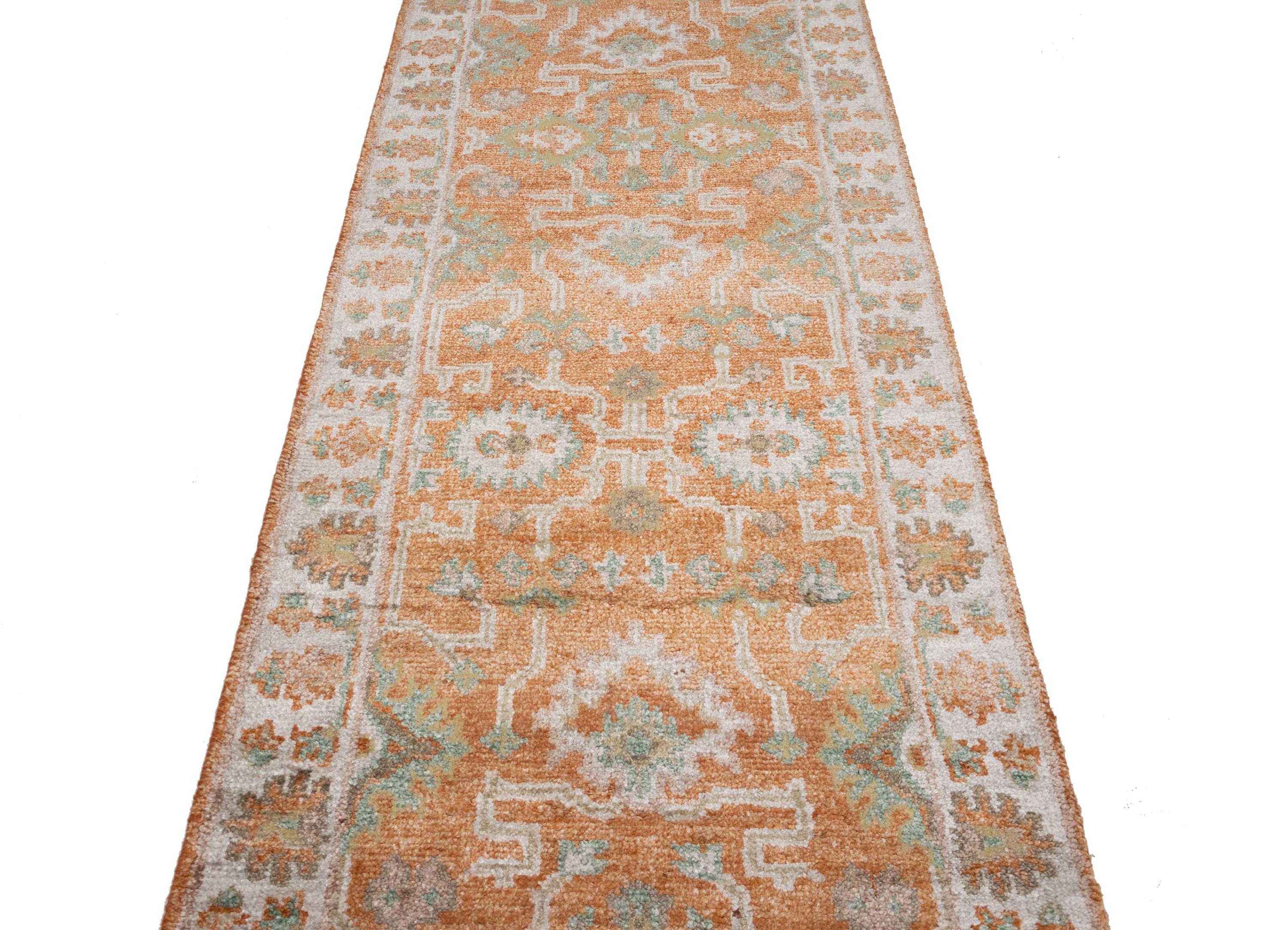 This original 2'6X9'9 muted colors new Oriental runner was finely knotted by the hands of weavers influenced by a variety of amazing artistic designs, to recreate the aged look of the exceptional piece with a richness of color and embellished background field. What set this vintage style Oriental area runner from the others are the material and dye used (wool pile and cotton foundation), knot count, antique designs, fantastic grades, and its regional historical connection: it has deep roots, from the story of the people who produced it to the meaning of the symbols and colors displayed across its canvas that have been praised for centuries. This Indian home décor carpet will be completely cozy and inviting that never will go out of style! Also, this Oriental runner would be among your most valuable treasures, it is a great investment that increase in value over time, and it will last a lifetime because was woven with high-quality, all-natural wool. Eco-friendly, opulent yet affordable; this rug will give you an extra pop of character to help define your home environment with luxury and warmth that will capture the eyes and attention of your audience (homeowners, designers, decorators, family and friends). OT-11822