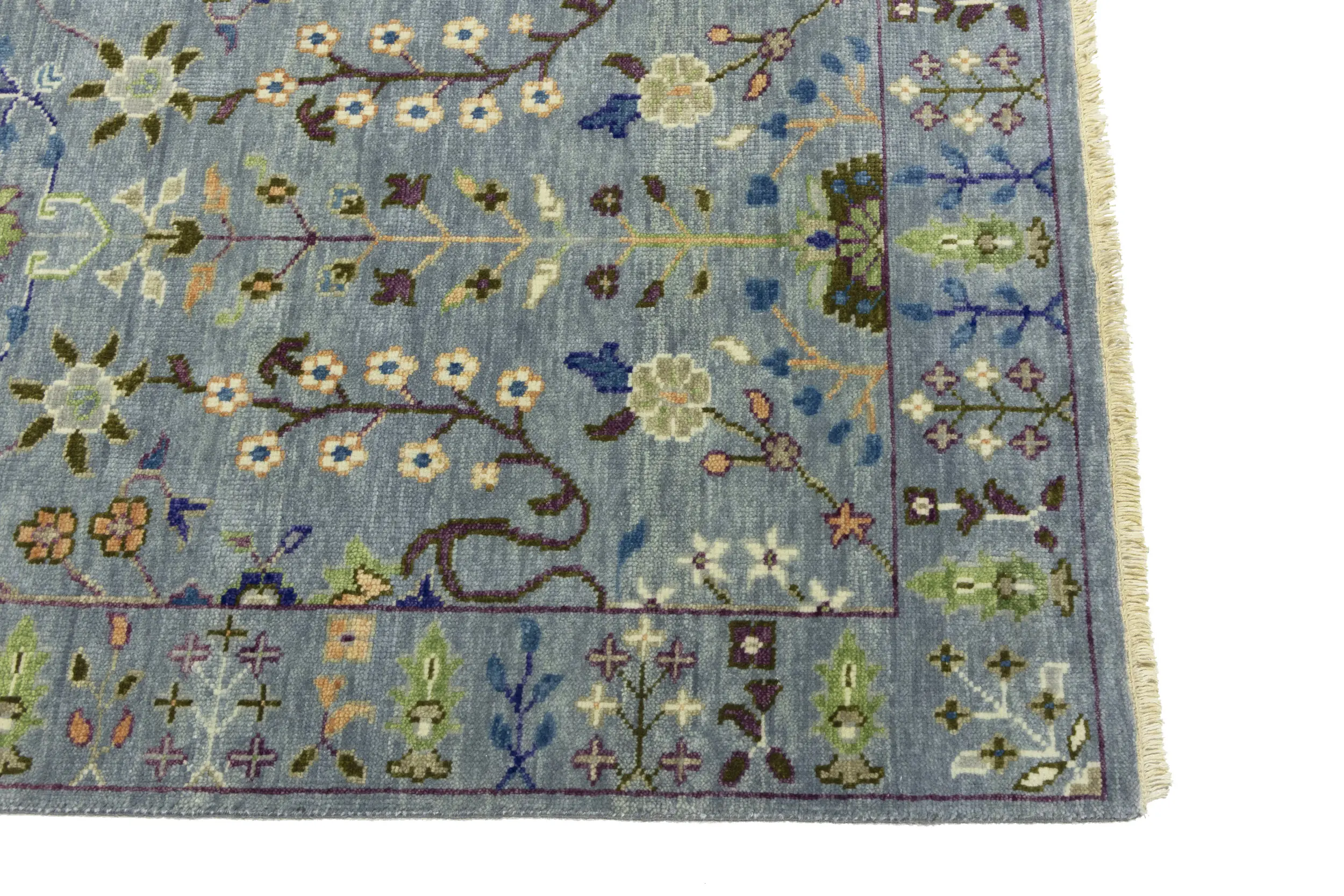 This genuine 3X5 blue new Oriental rug was made by the hands of gifted weavers inspired by a variety of spectacular artistic designs, to recreate the aged look of the original piece with a richness of color and ornately patterned background field. What set this vintage style Oriental area rug from the others are the material and dye used (wool pile and cotton foundation), knot count, ancient designs, fantastic grades, and its regional historical connection: it has deep roots, from the story of the people who produced it to the meaning of the symbols and colors displayed across its canvas that have been praised for centuries. This Indian home décor carpet will be completely cozy and inviting that never will go out of style! Also, this Oriental rug would be among your most valuable treasures, it is a great investment that accrues value over time, and it will last for generations because was woven with high-quality, all-natural wool. Environmentally friendly, opulent yet affordable; this rug will give you a thorough amount of character to help define your living space with elegance and warmth that will capture the eyes and attention of your audience (homeowners, designers, decorators, family and friends).