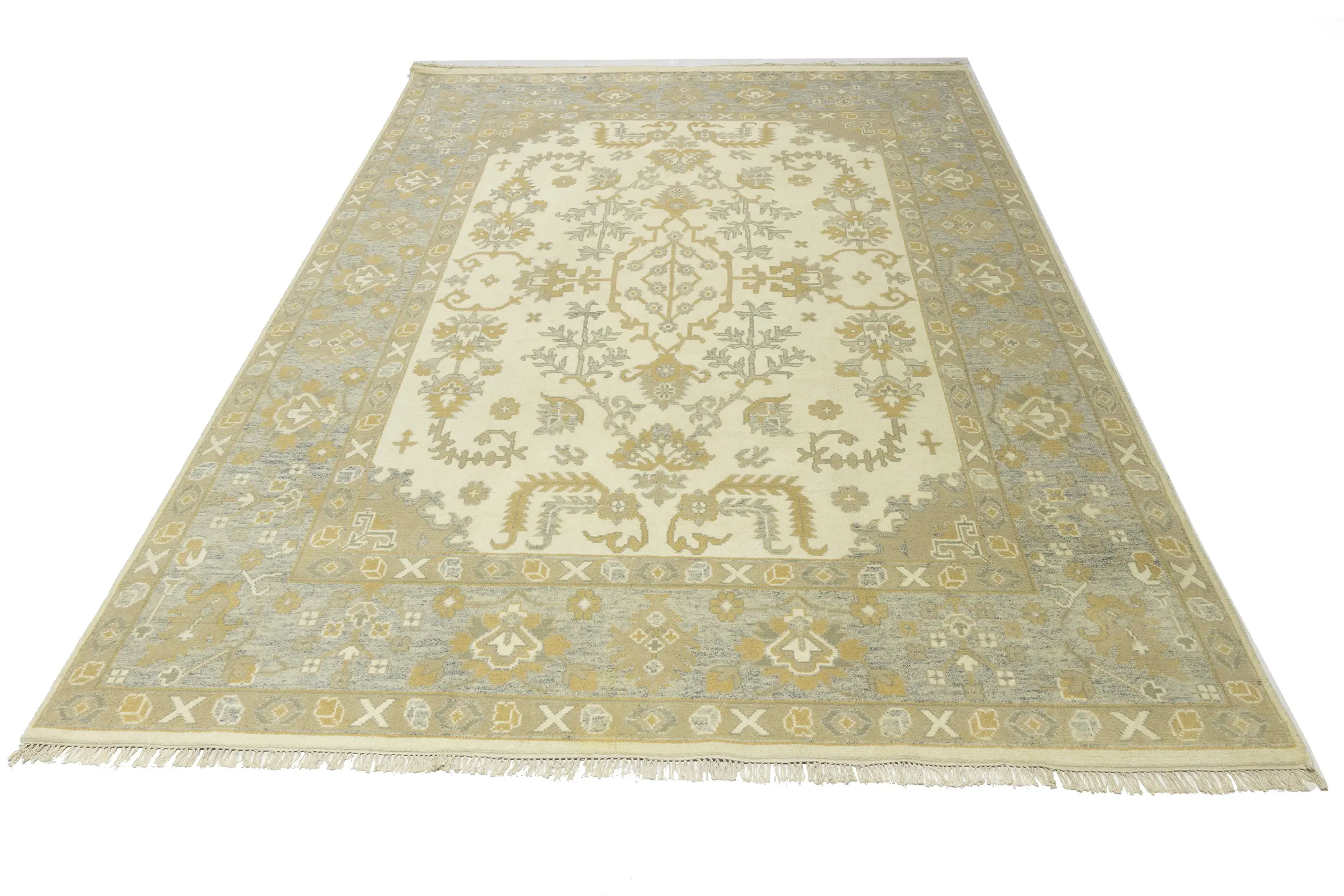 Muted Cream Floral 9X12 Oushak Chobi Oriental Rug