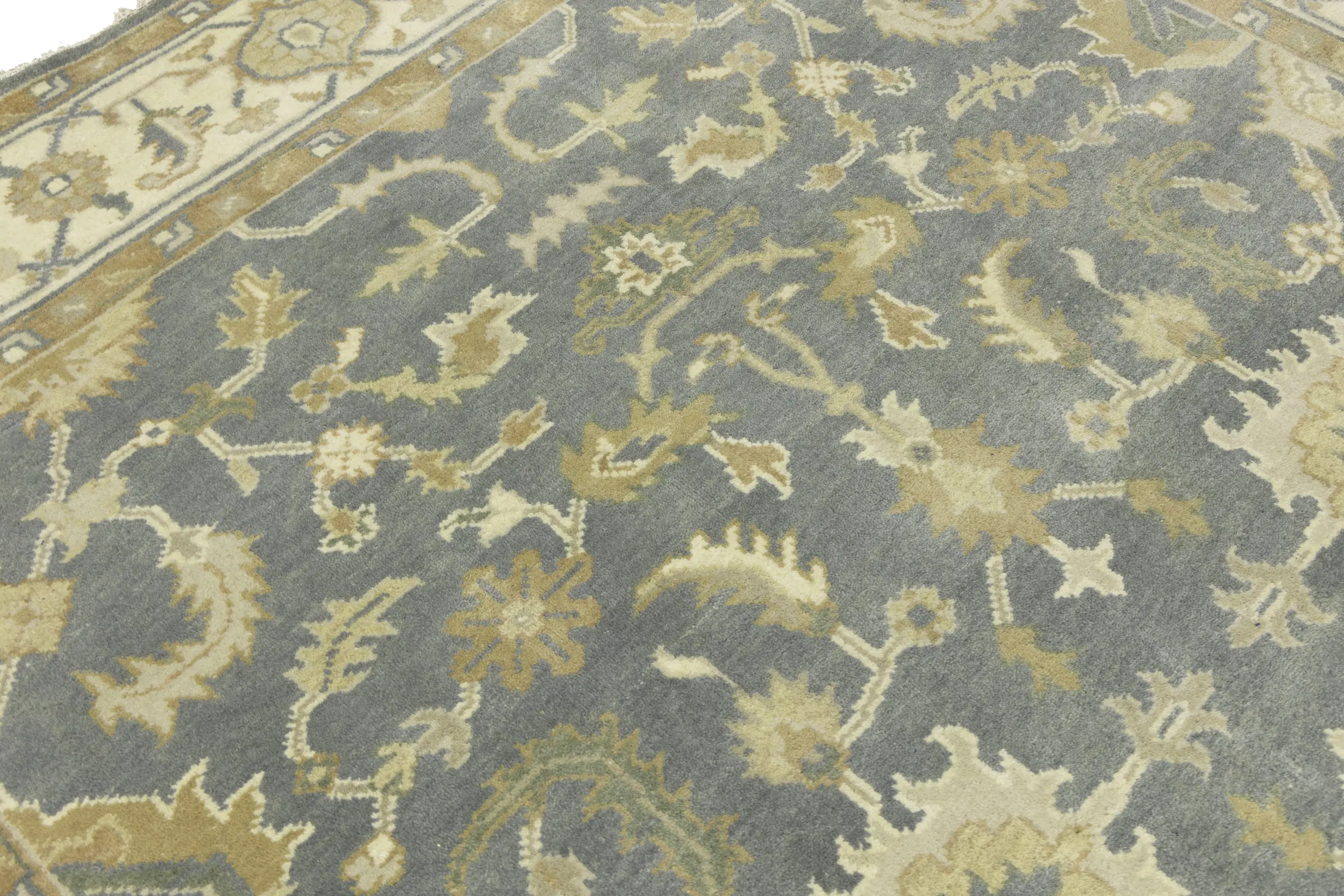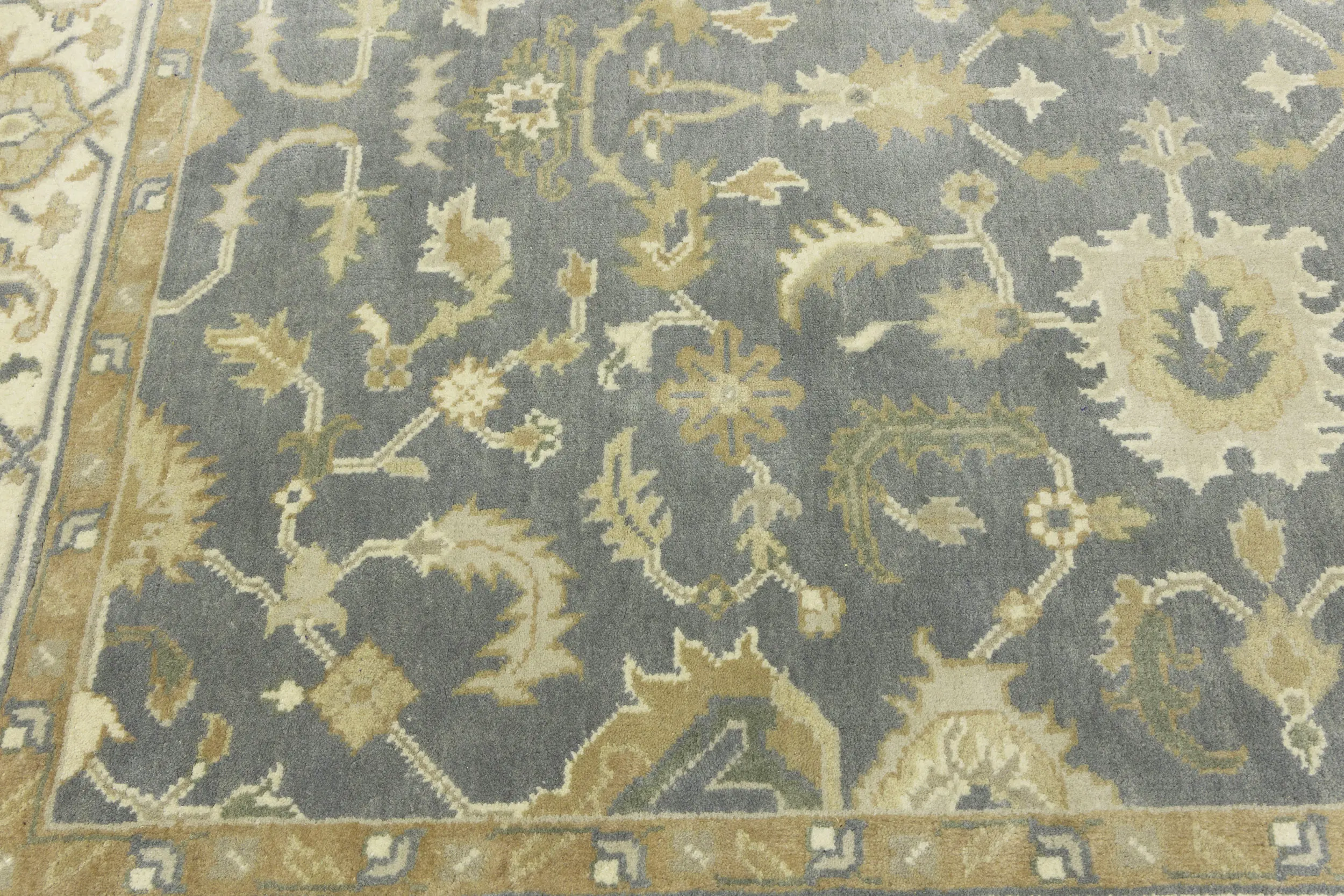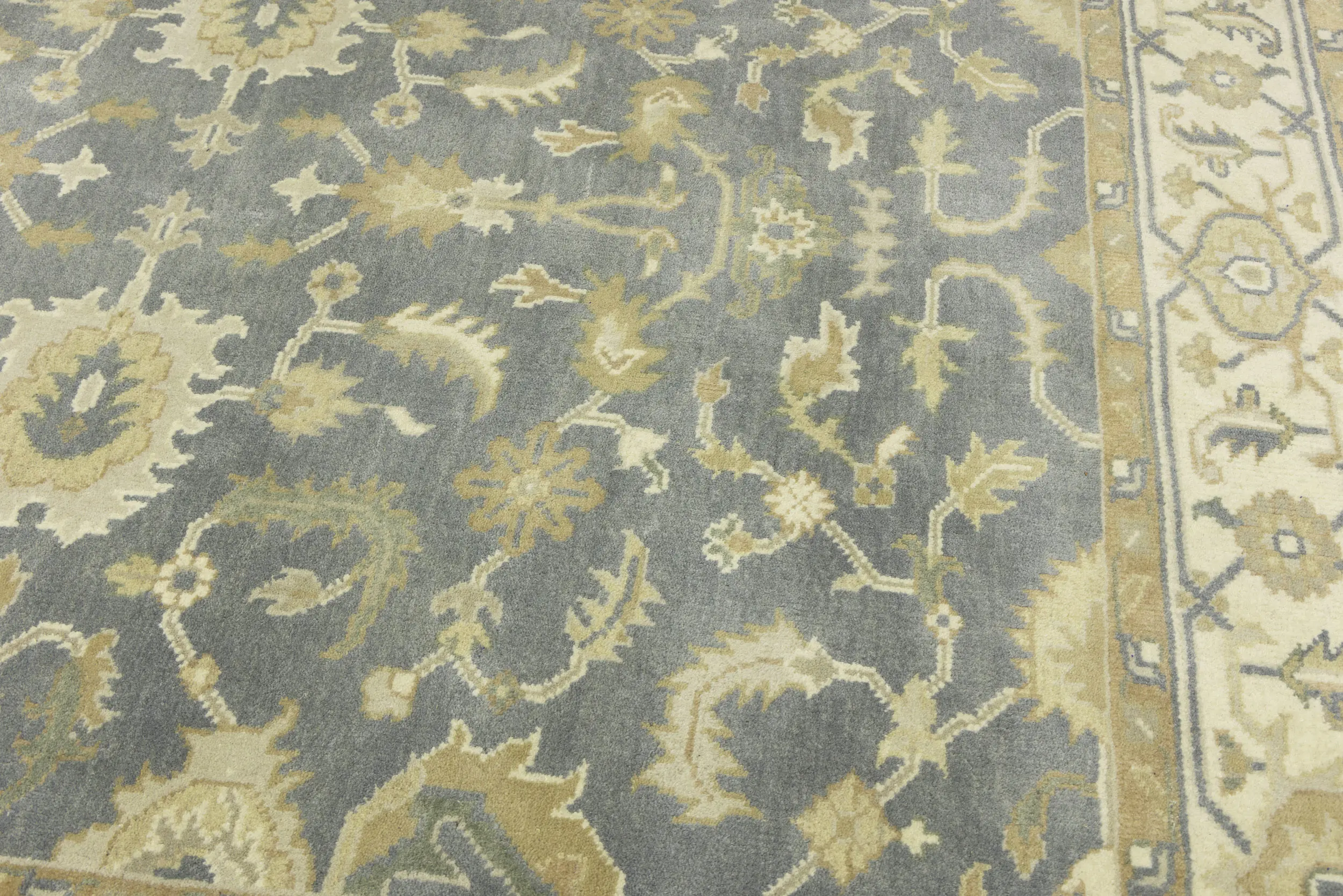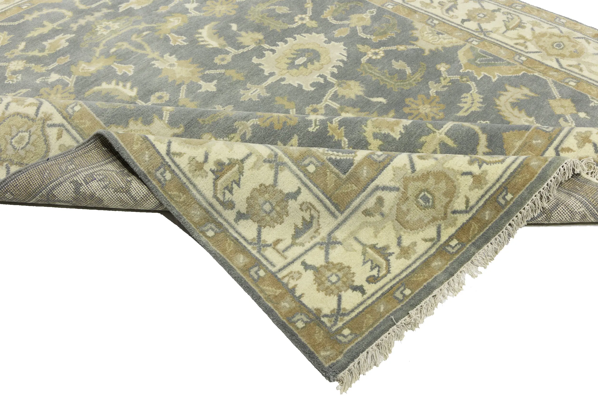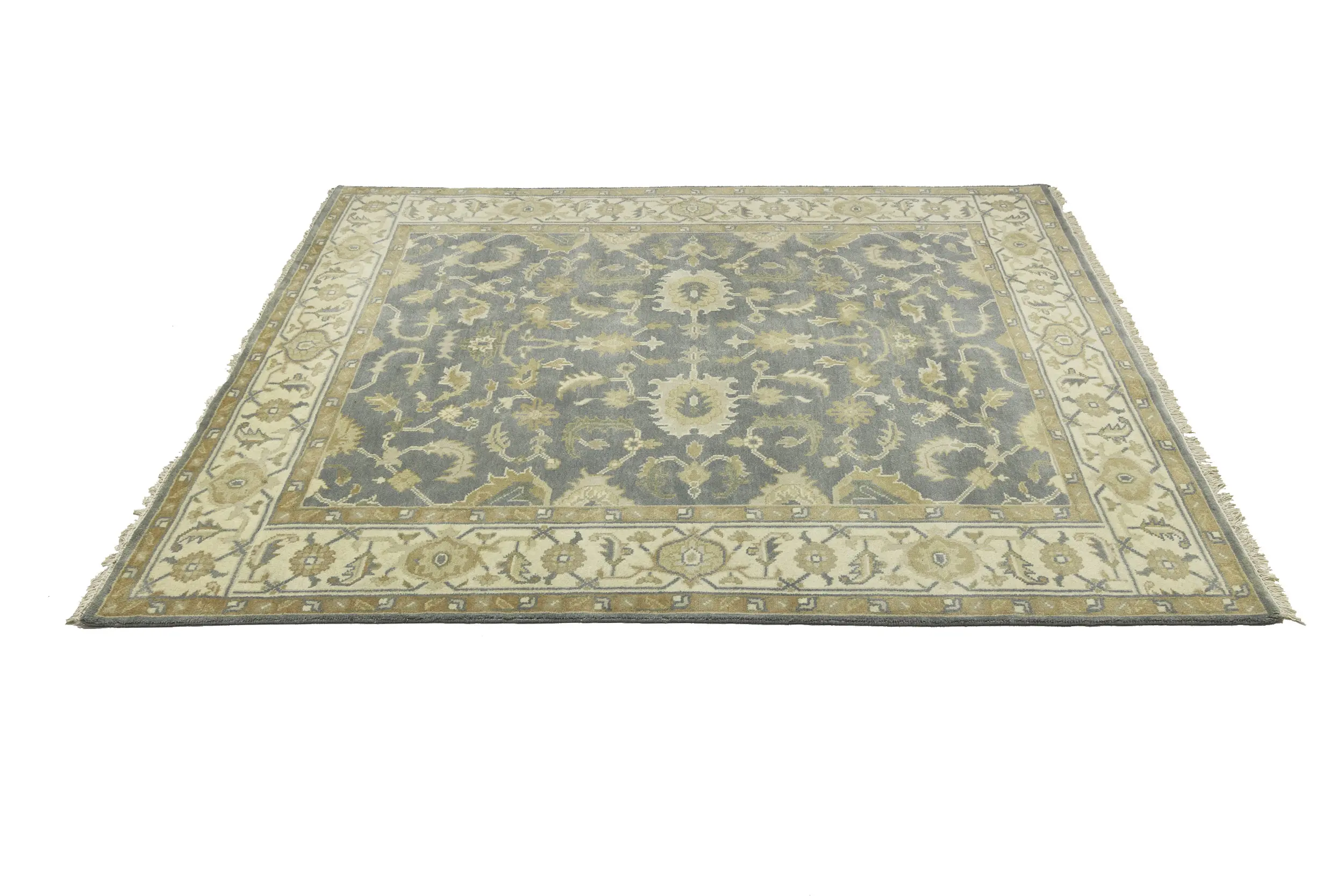 This original 8X10 Gray new Oriental rug was finely knotted by the hands of weavers influenced by a variety of amazing artistic designs, to recreate the aged look of the exceptional piece with a richness of color and embellished background field. What set this vintage style Oriental area rug from the others are the material and dye used (wool pile and cotton foundation), knot count, antique designs, fantastic grades, and its regional historical connection: it has deep roots, from the story of the people who produced it to the meaning of the symbols and colors displayed across its canvas that have been praised for centuries. This Indian home décor carpet will be completely cozy and inviting that never will go out of style! Also, this Oriental rug would be among your most valuable treasures, it is a great investment that increase in value over time, and it will last a lifetime because was woven with high-quality, all-natural wool. Eco-friendly, opulent yet affordable; this rug/runner will give you an extra pop of character to help define your home environment with luxury and warmth that will capture the eyes and attention of your audience (homeowners, designers, decorators, family and friends).